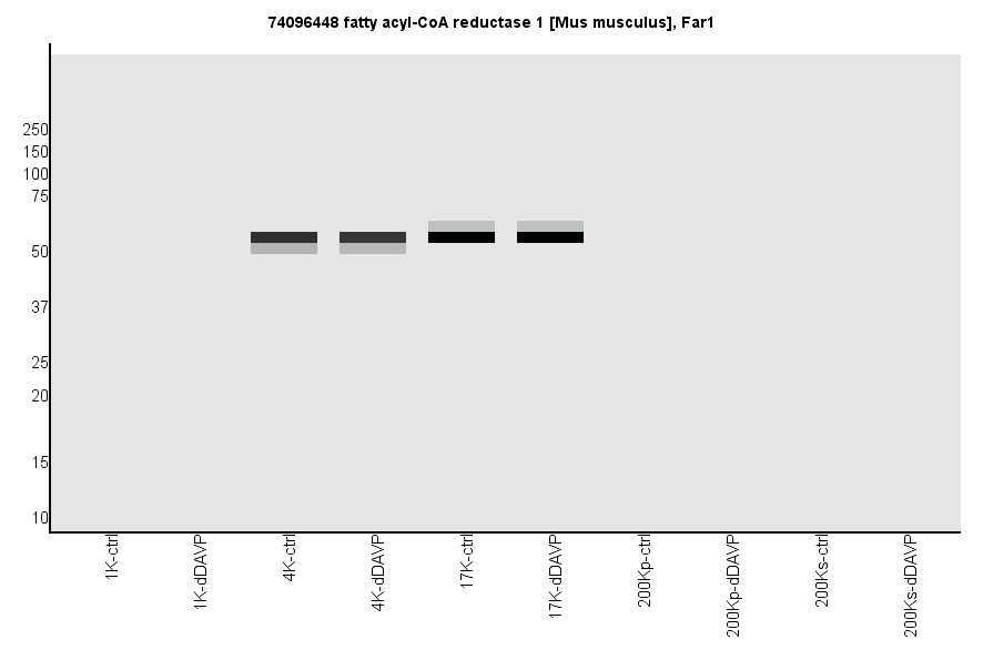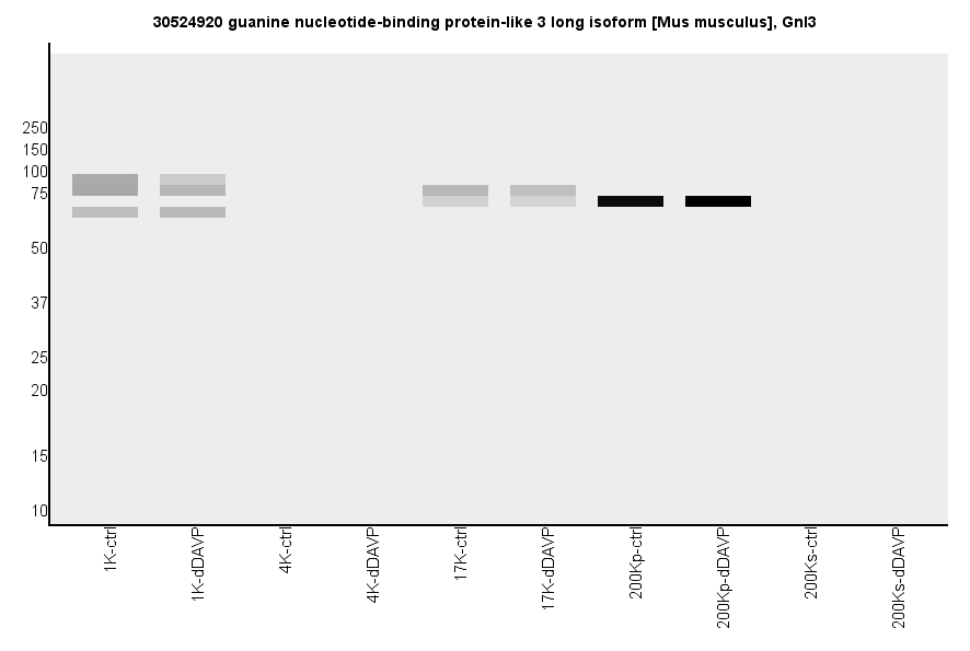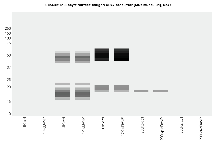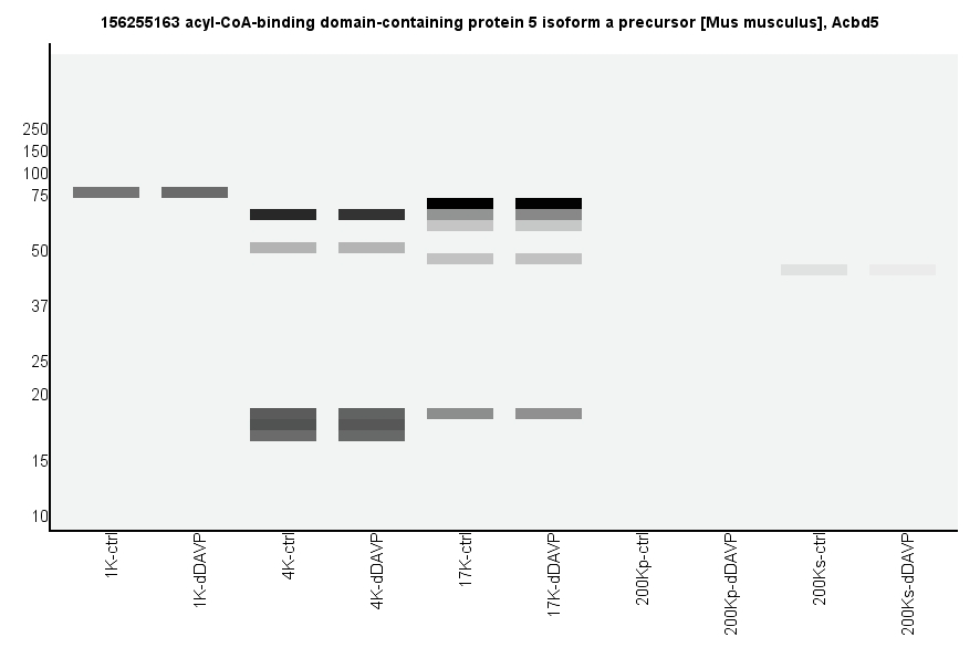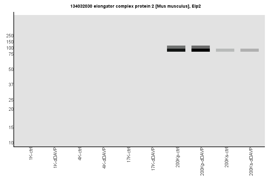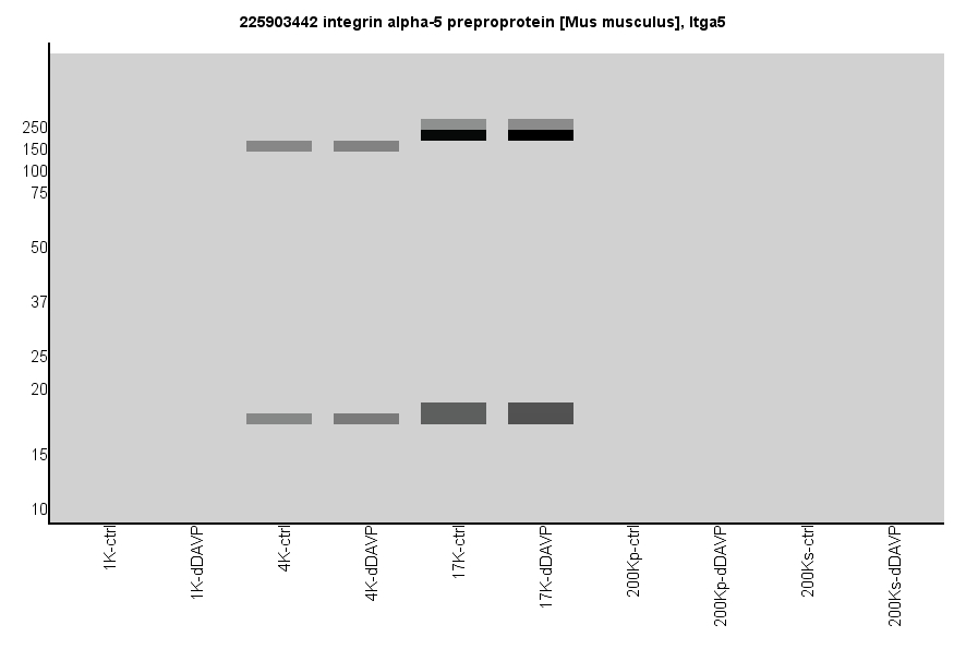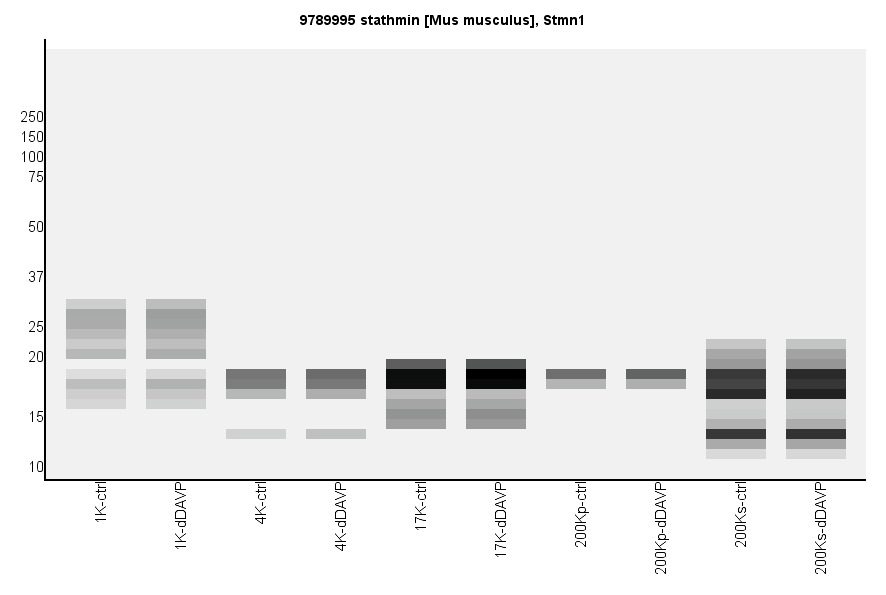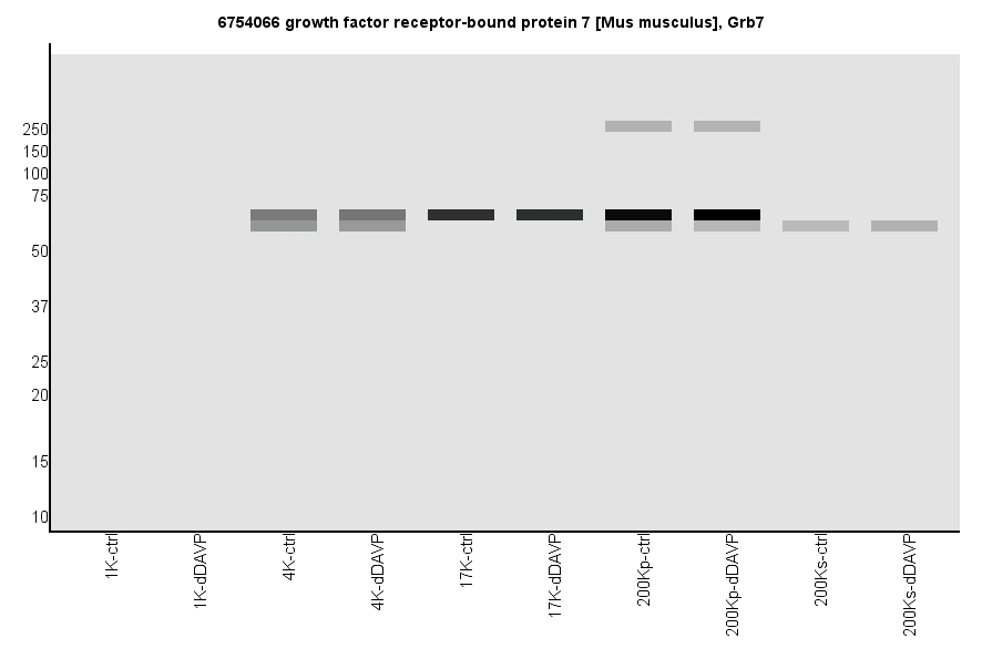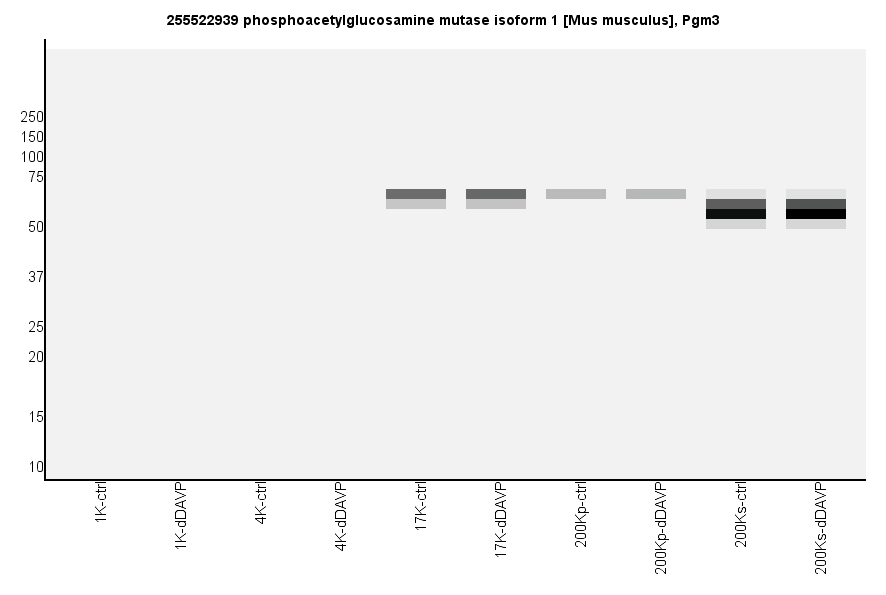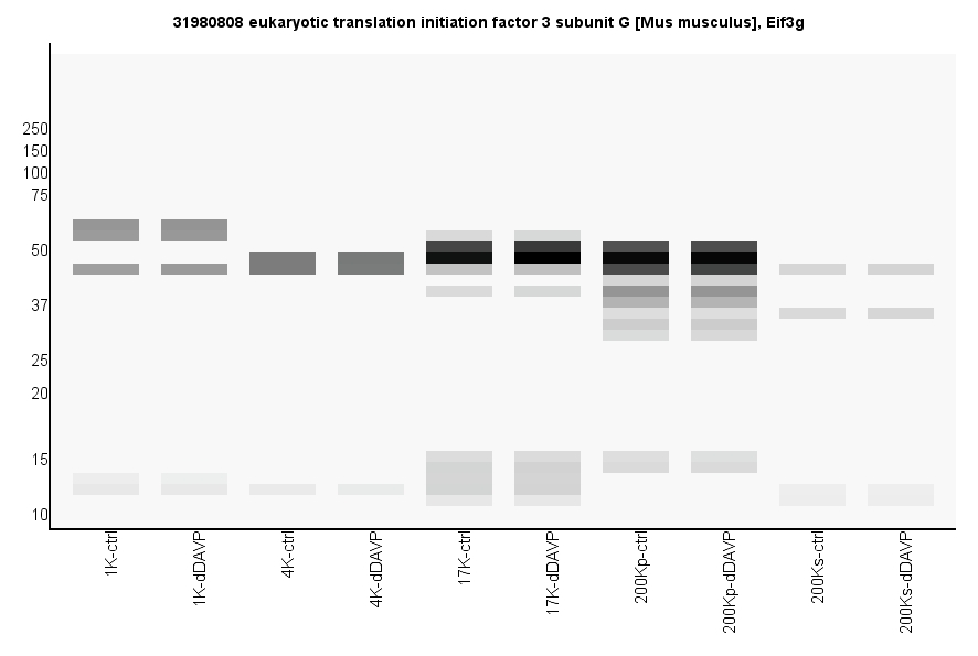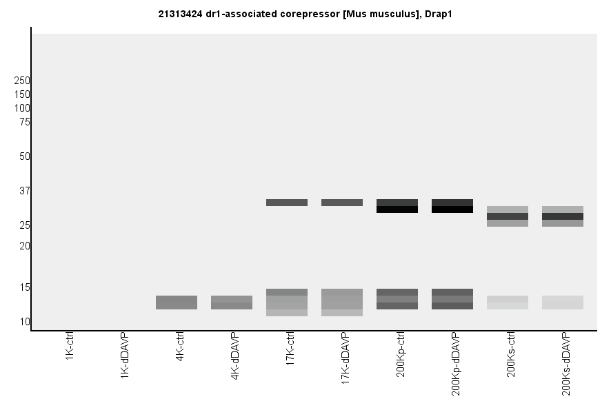 The virtual western blot images show data normalized using a logarithmic conversion scale to map peptide intensities to gray-scale levels. Using this conversion method, low-abundance peptides are generally visible in the blot images. Switch back to the default linear conversion scale database page.