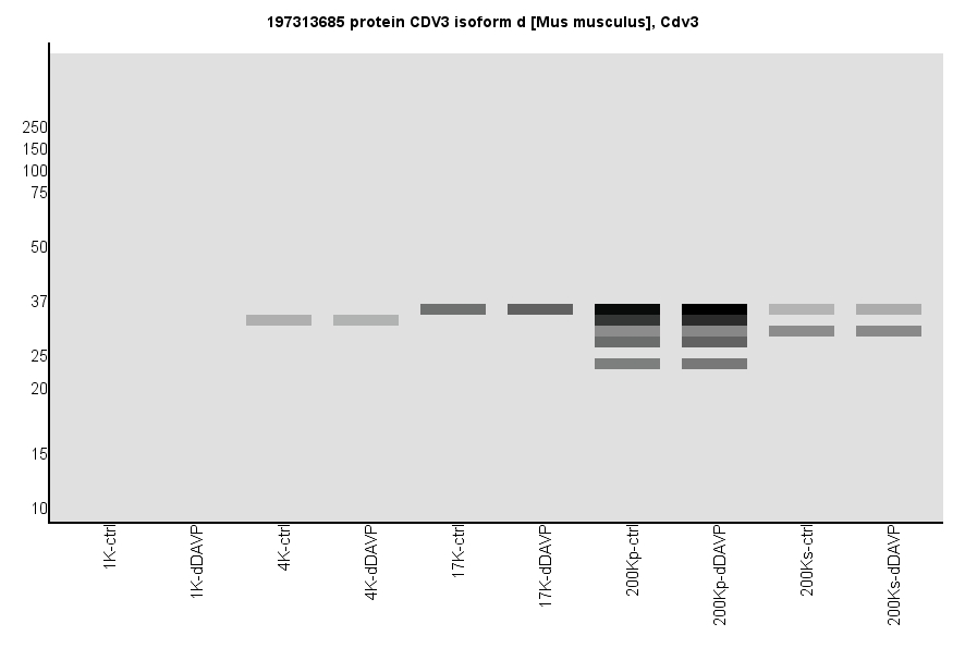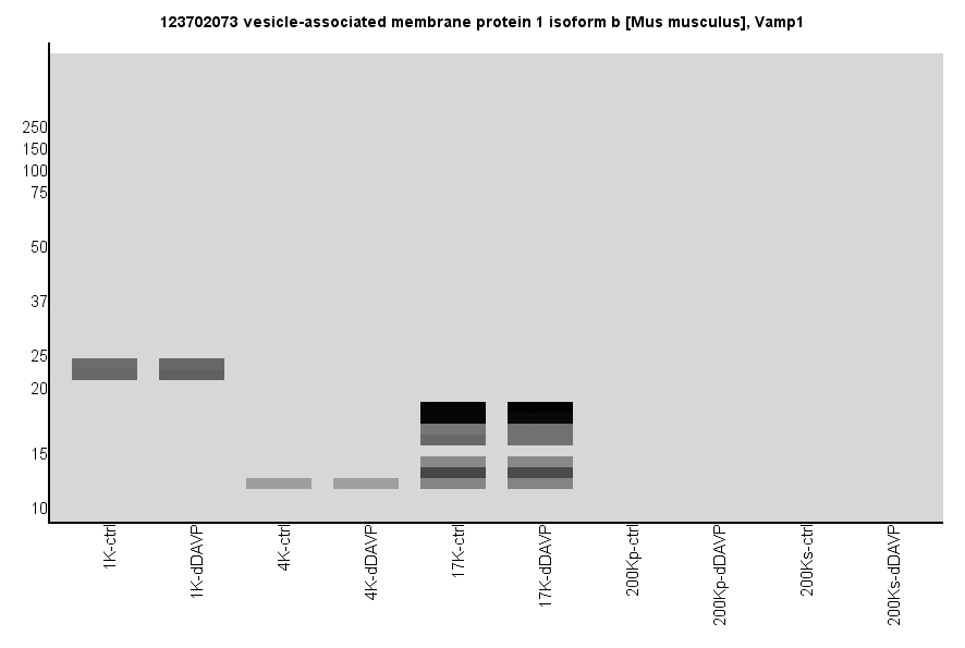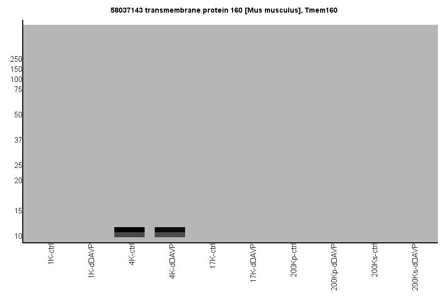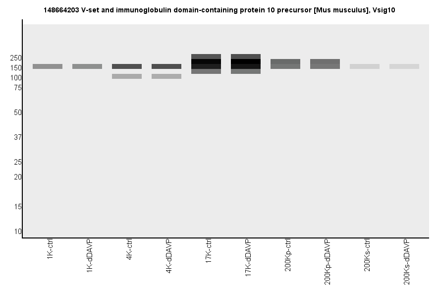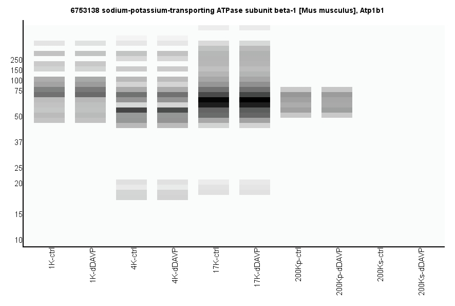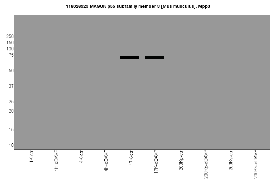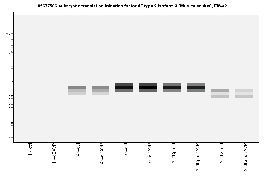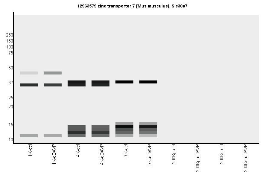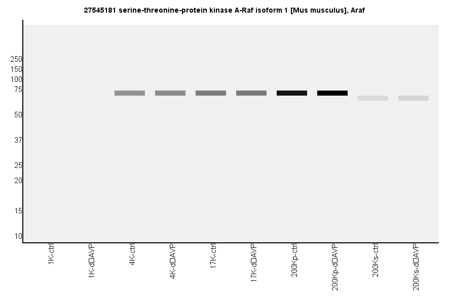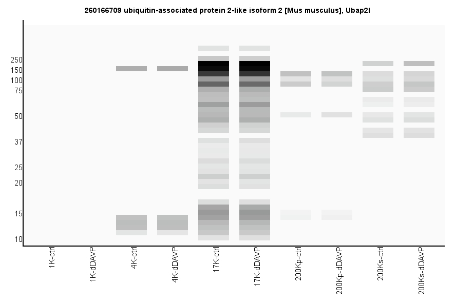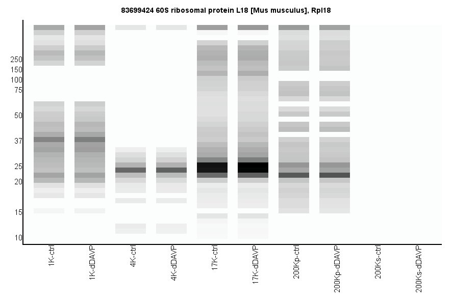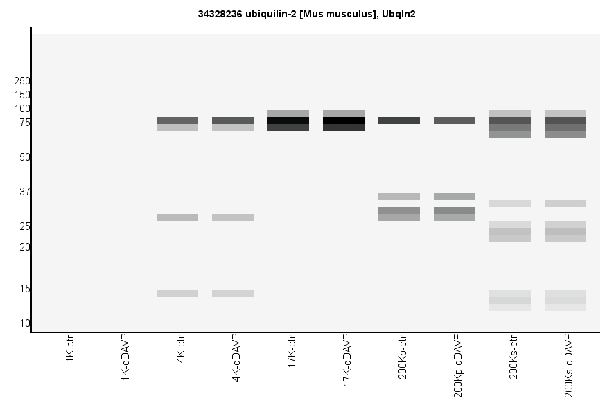 The virtual western blot images show data normalized using a logarithmic conversion scale to map peptide intensities to gray-scale levels. Using this conversion method, low-abundance peptides are generally visible in the blot images. Switch back to the default linear conversion scale database page.