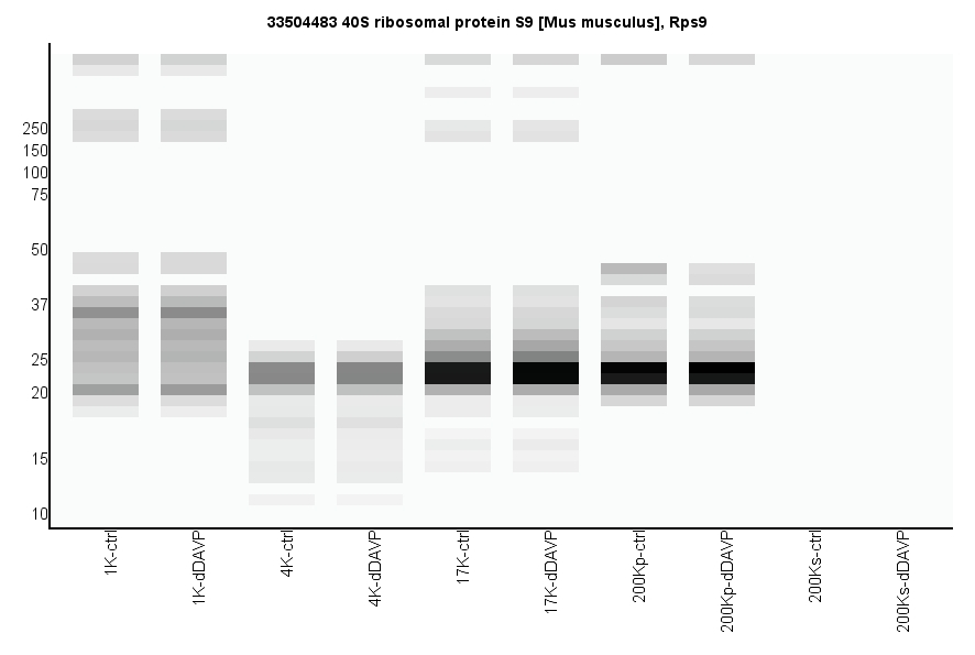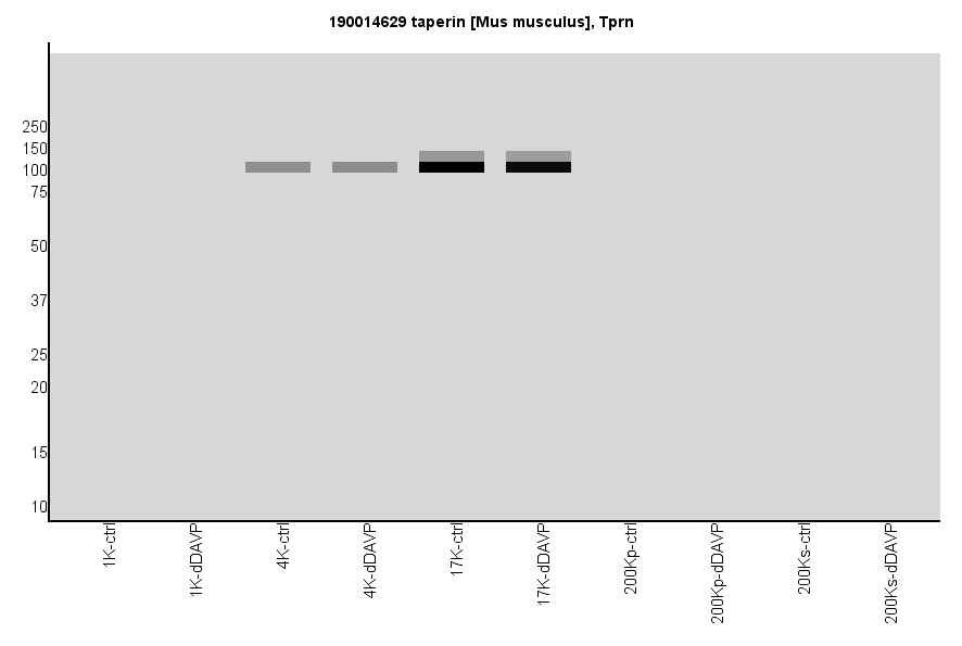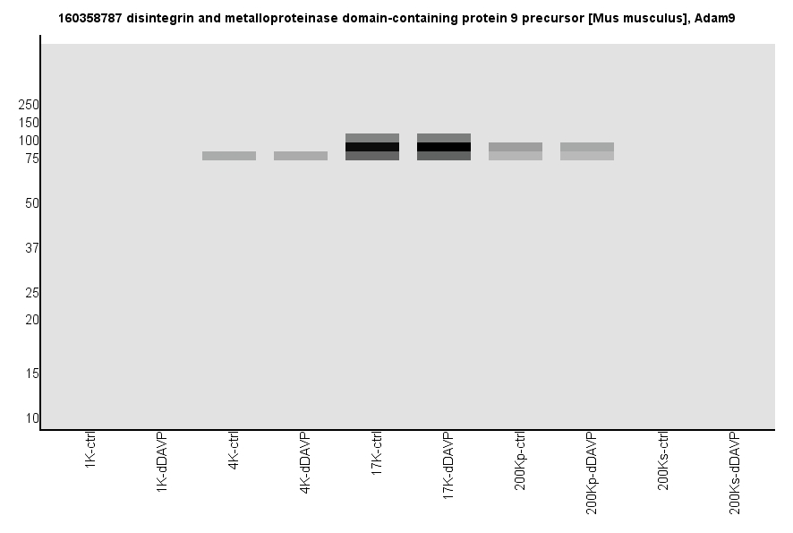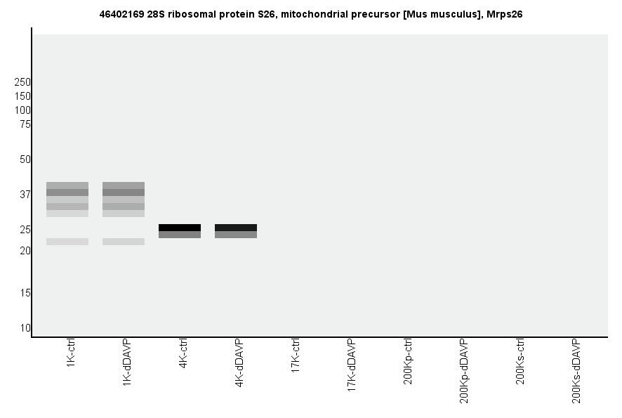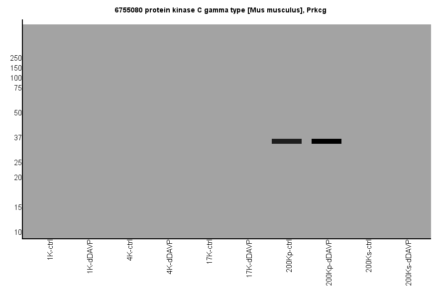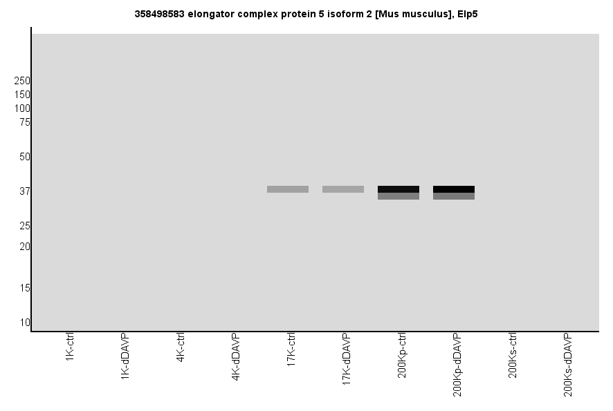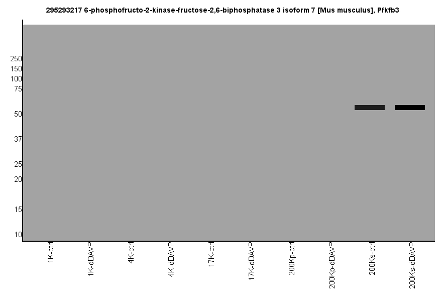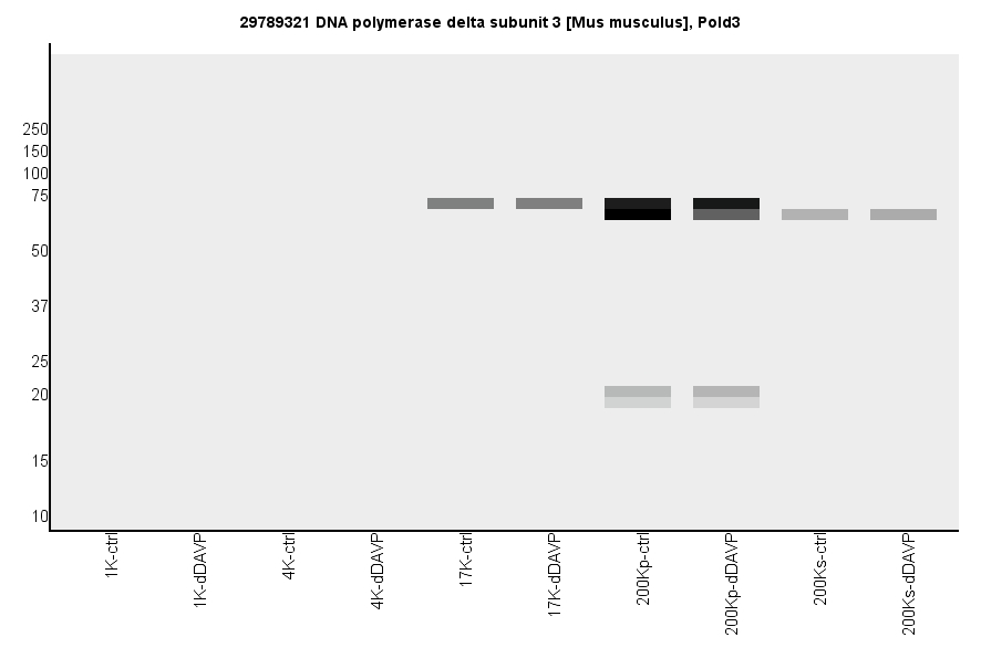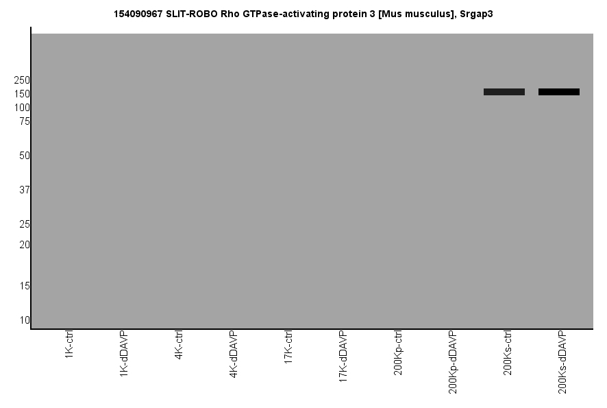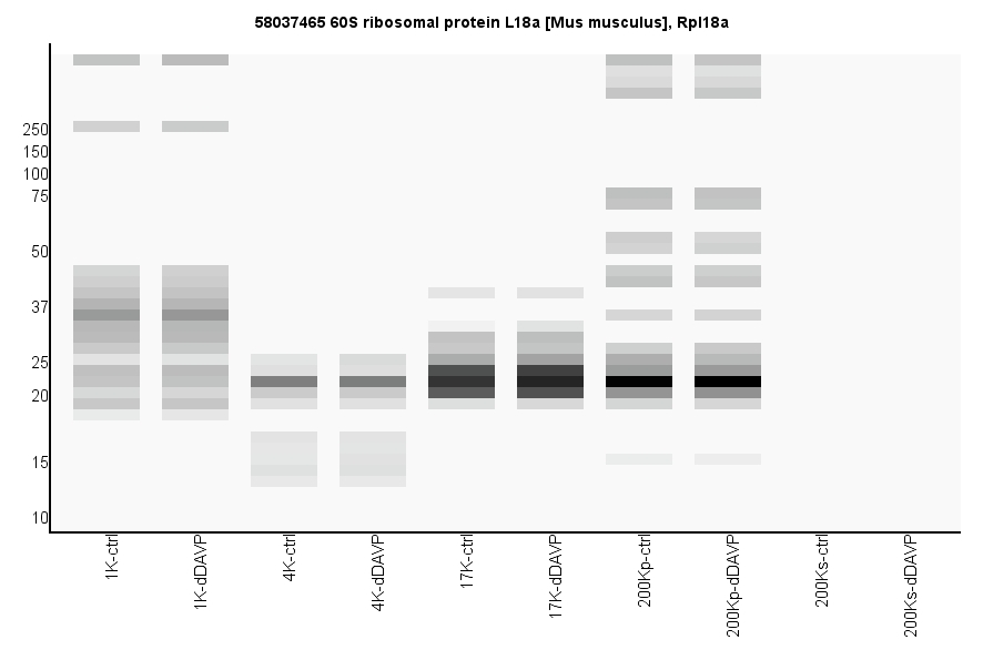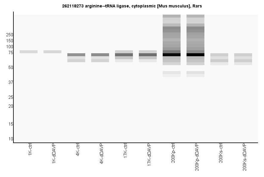 The virtual western blot images show data normalized using a logarithmic conversion scale to map peptide intensities to gray-scale levels. Using this conversion method, low-abundance peptides are generally visible in the blot images. Switch back to the default linear conversion scale database page.