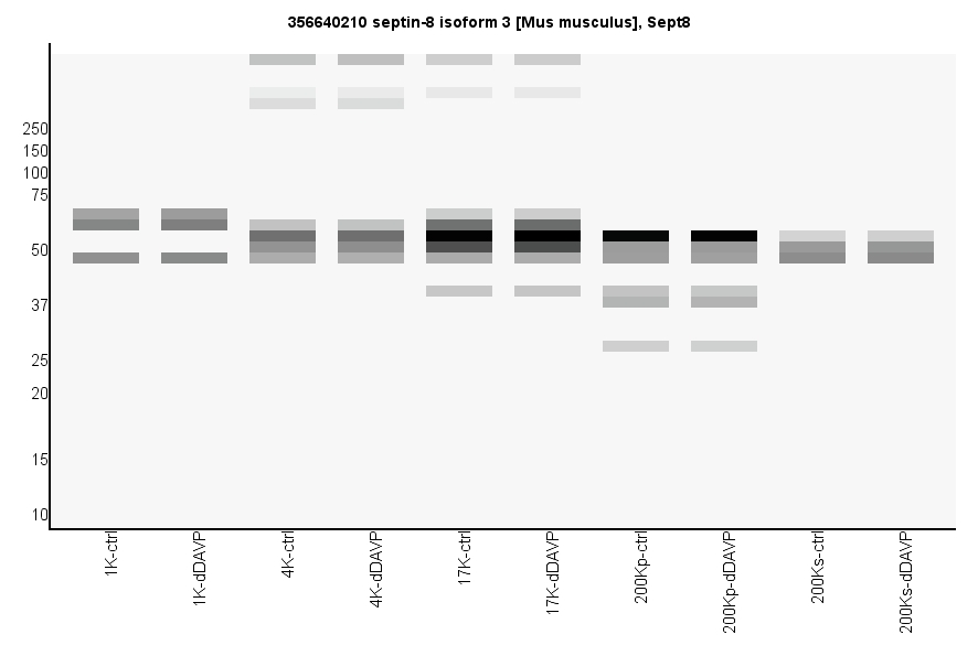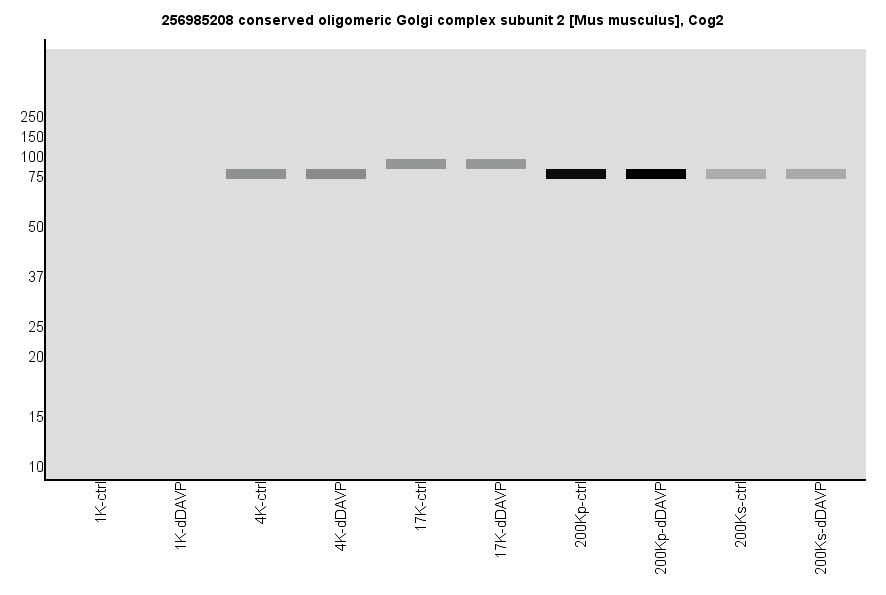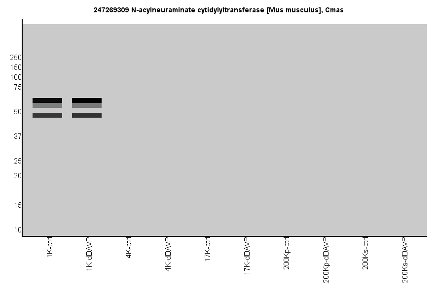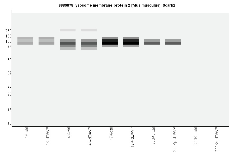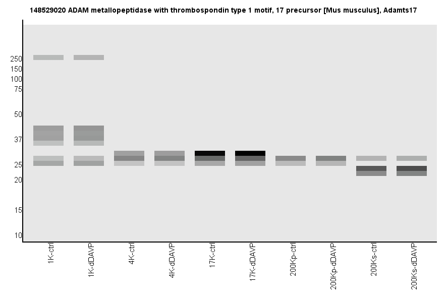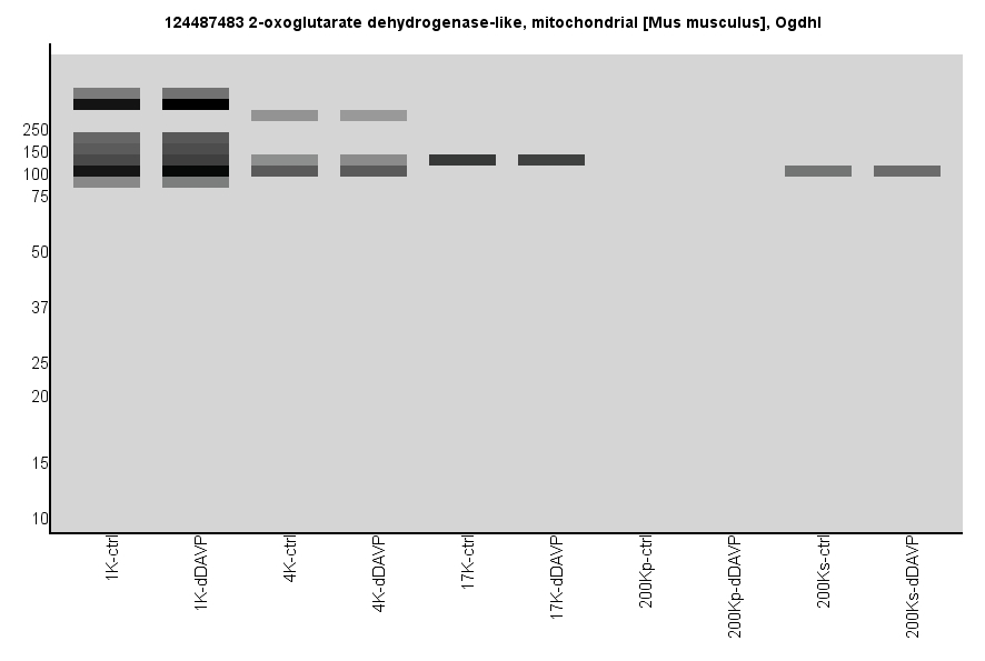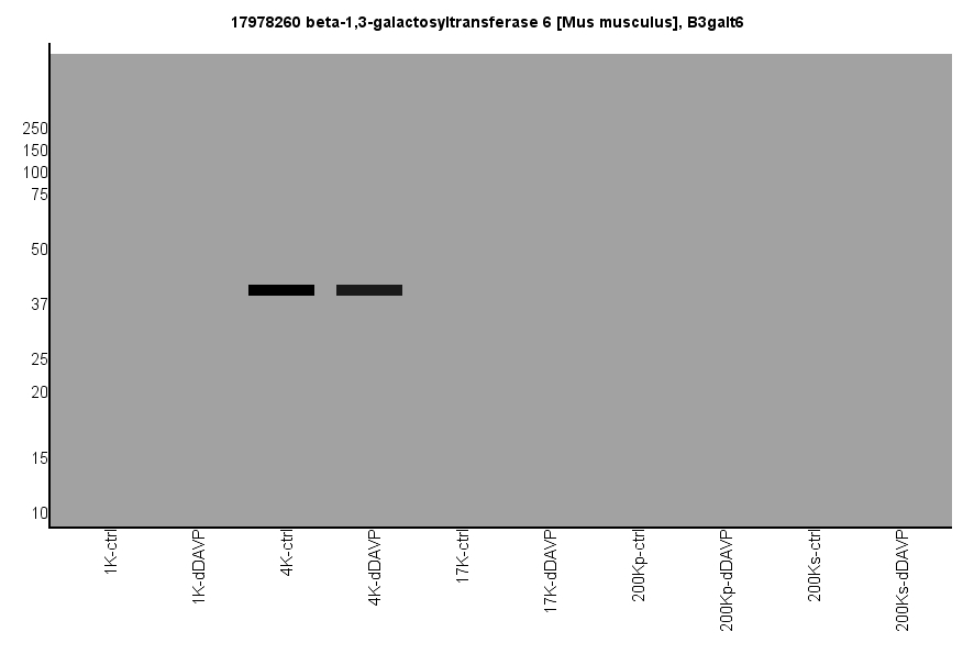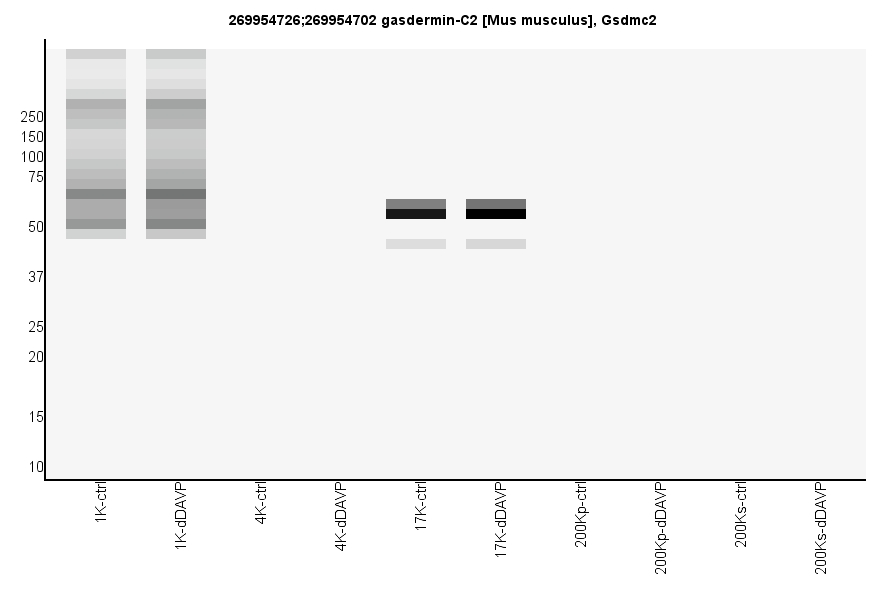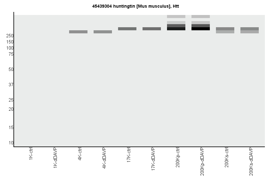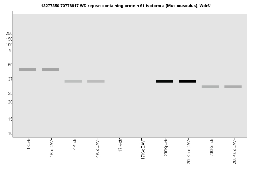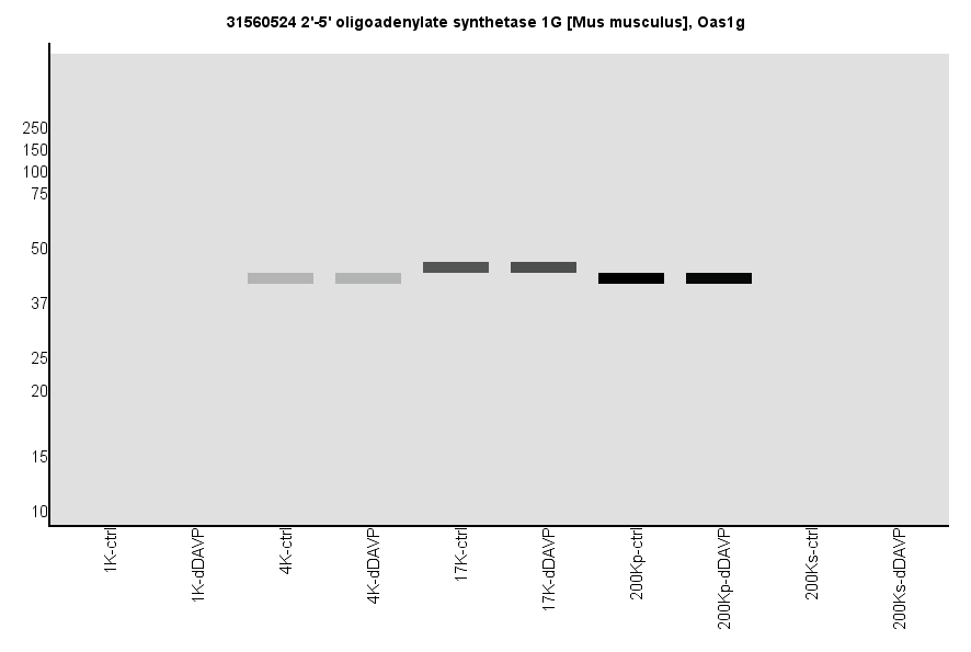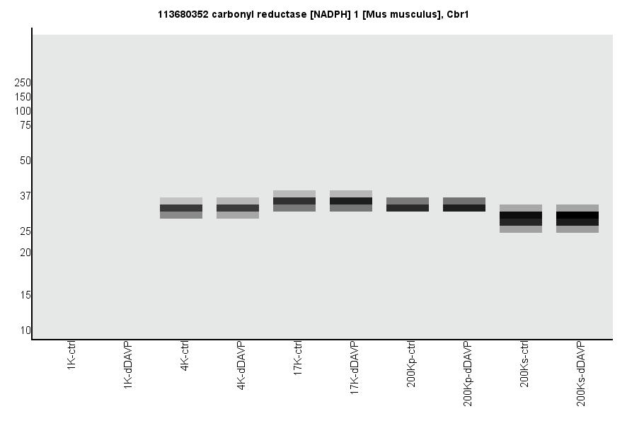 The virtual western blot images show data normalized using a logarithmic conversion scale to map peptide intensities to gray-scale levels. Using this conversion method, low-abundance peptides are generally visible in the blot images. Switch back to the default linear conversion scale database page.