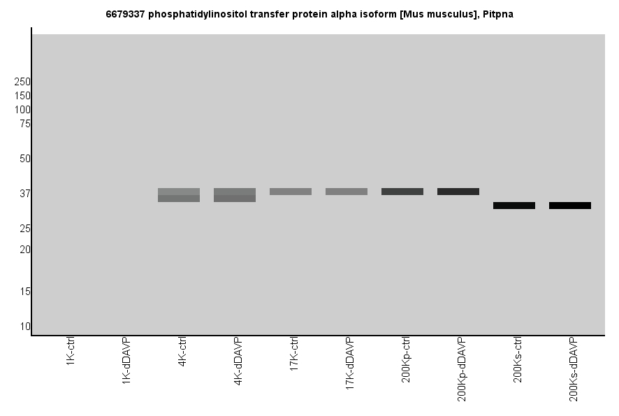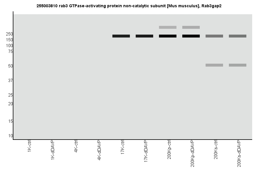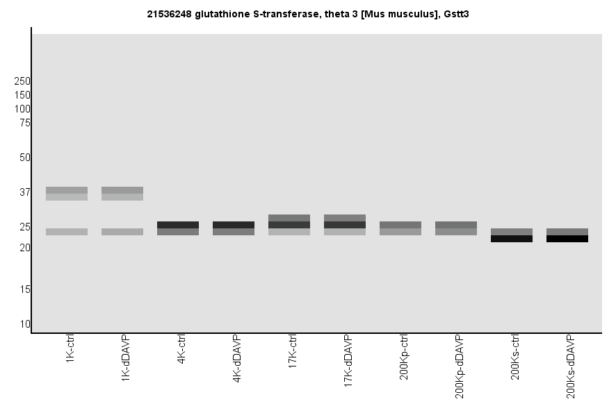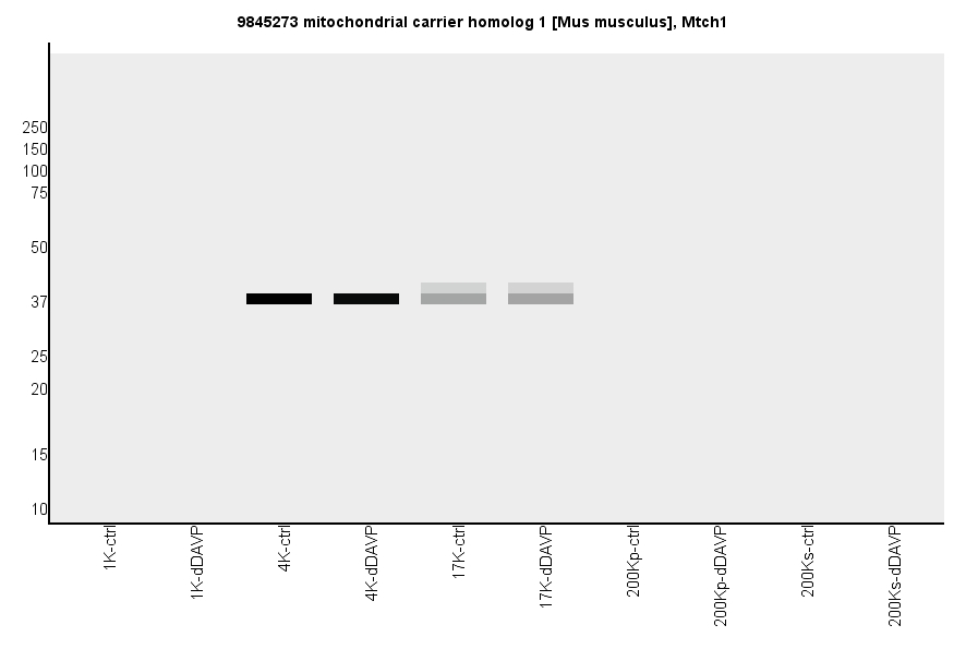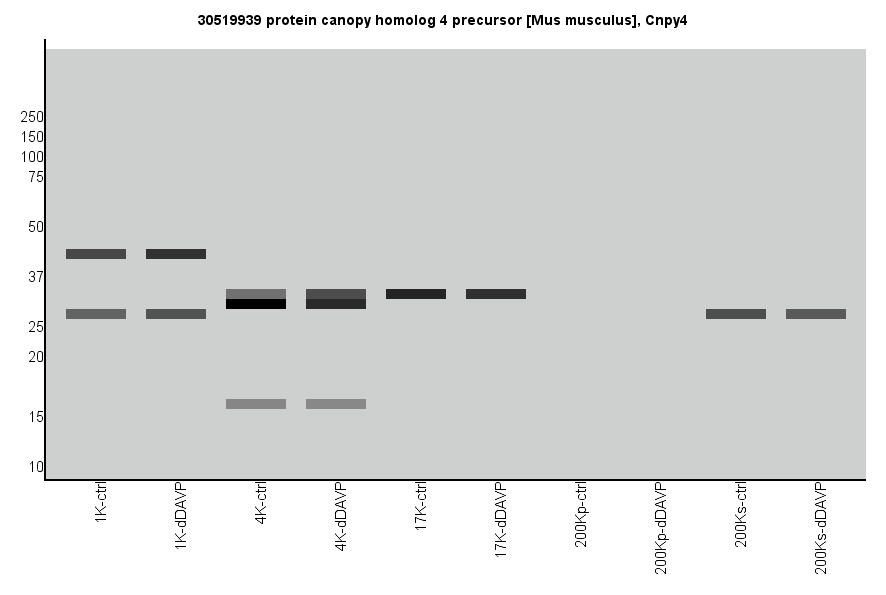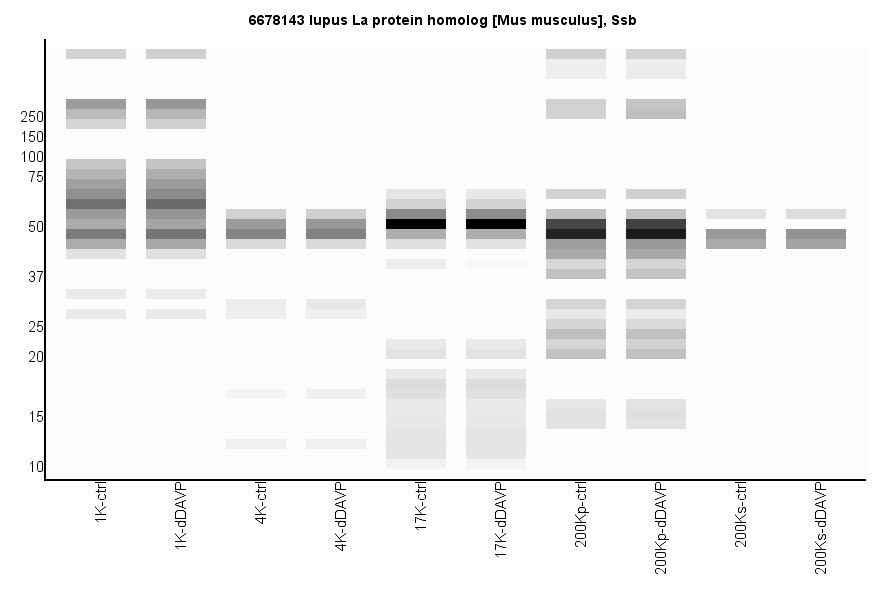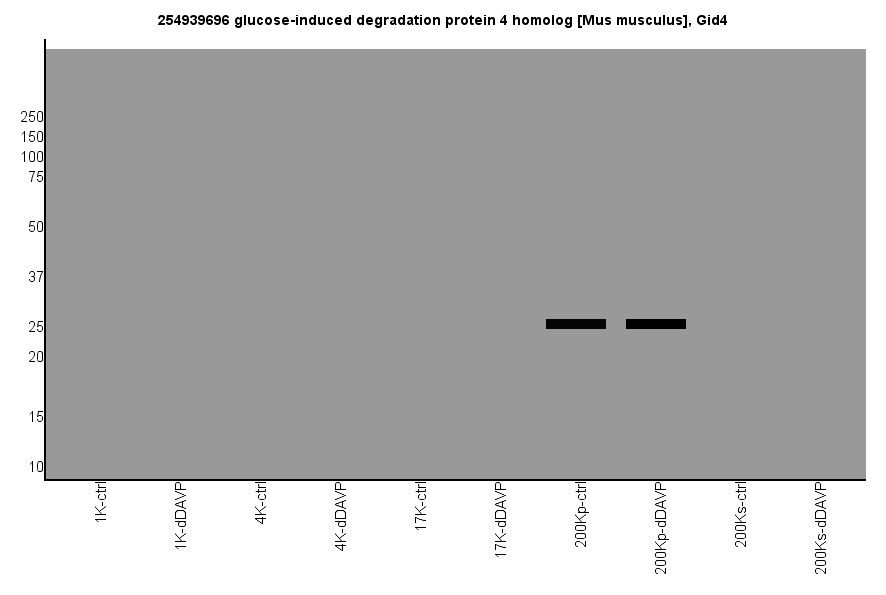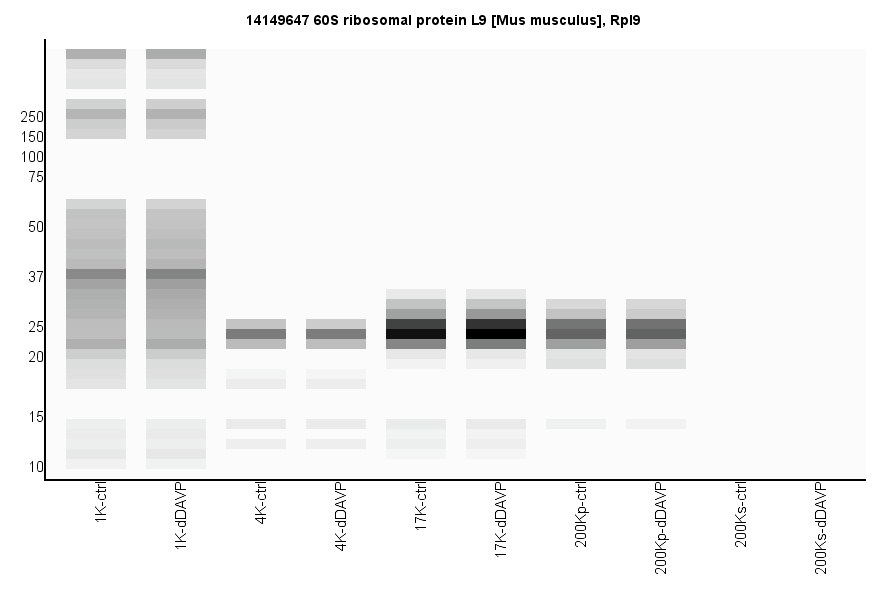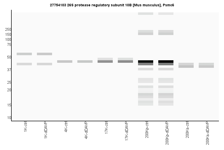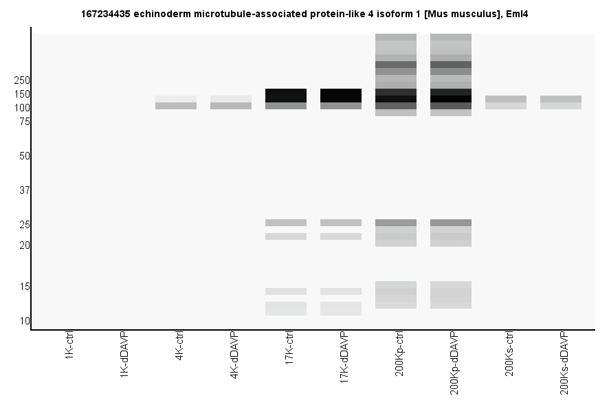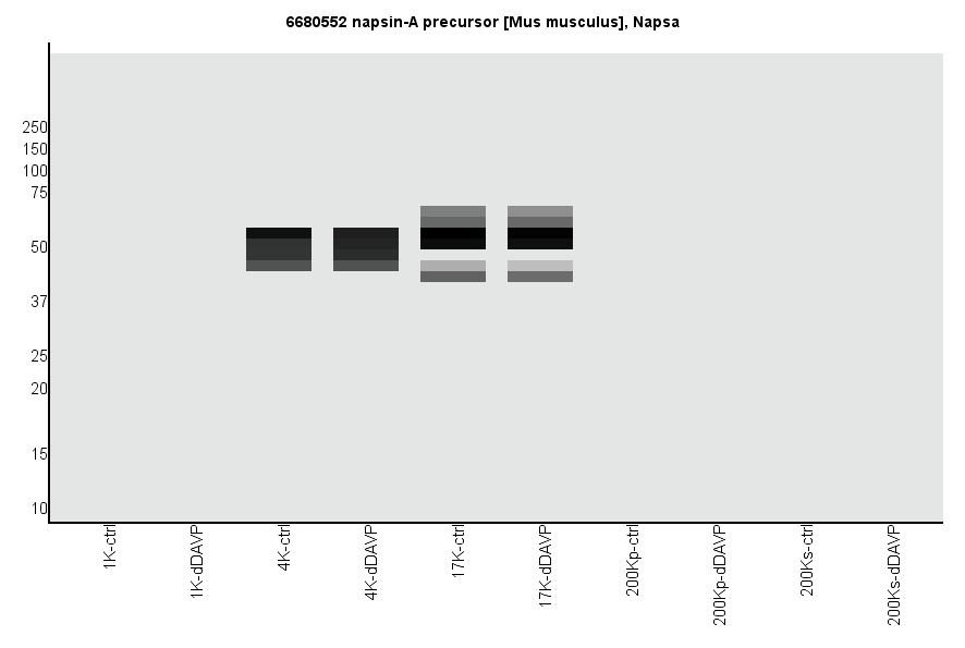 The virtual western blot images show data normalized using a logarithmic conversion scale to map peptide intensities to gray-scale levels. Using this conversion method, low-abundance peptides are generally visible in the blot images. Switch back to the default linear conversion scale database page.