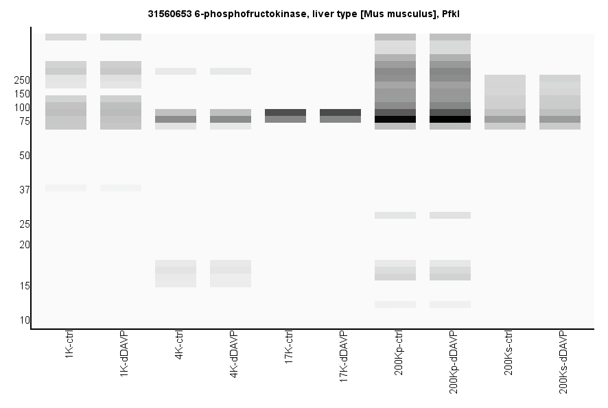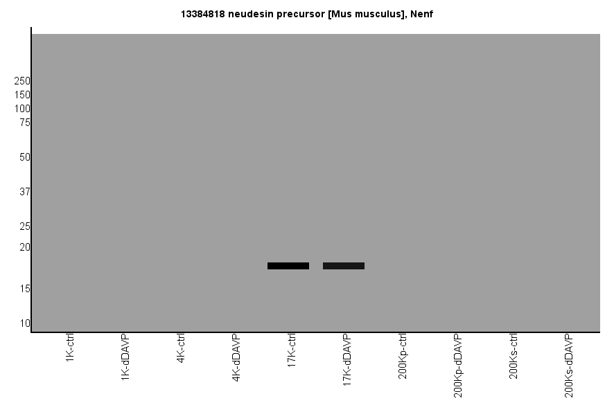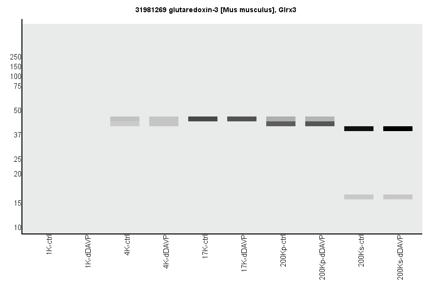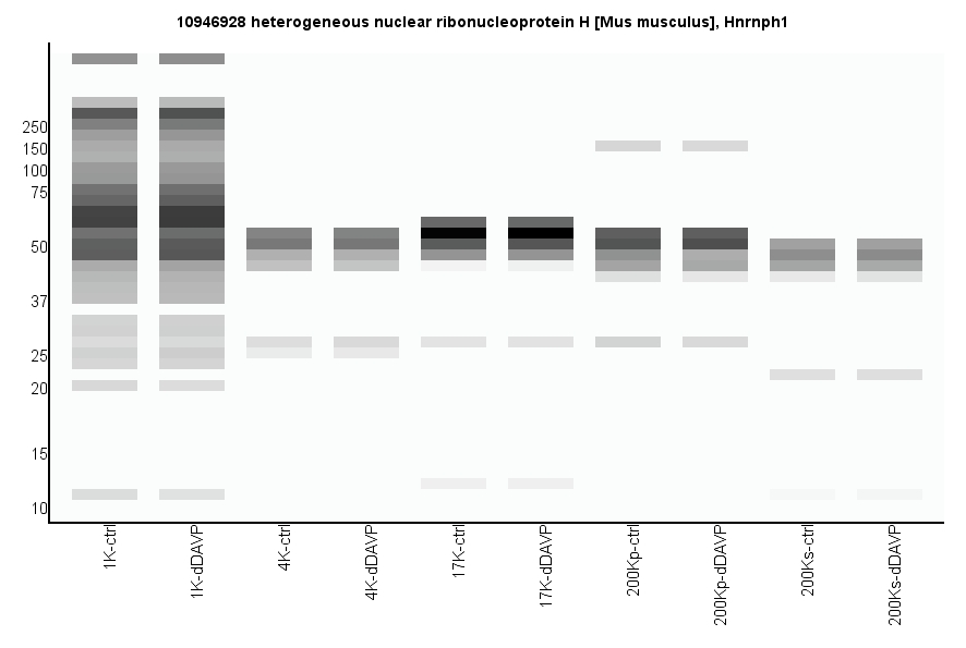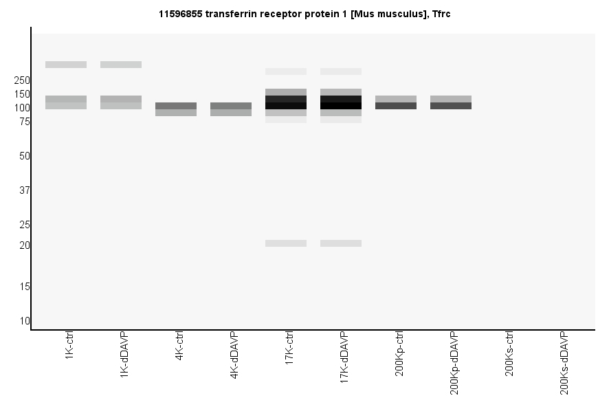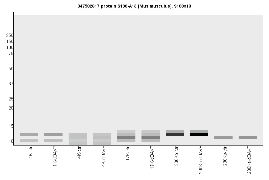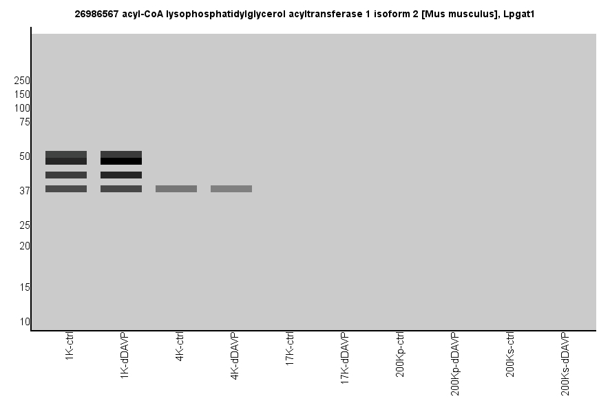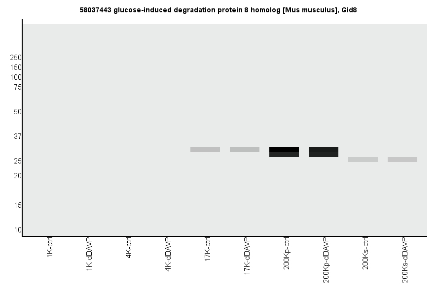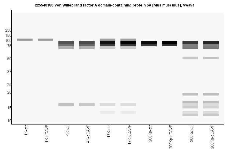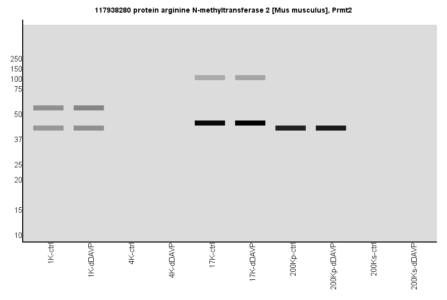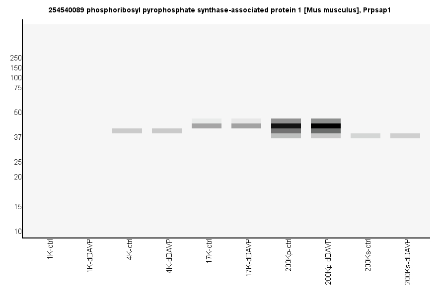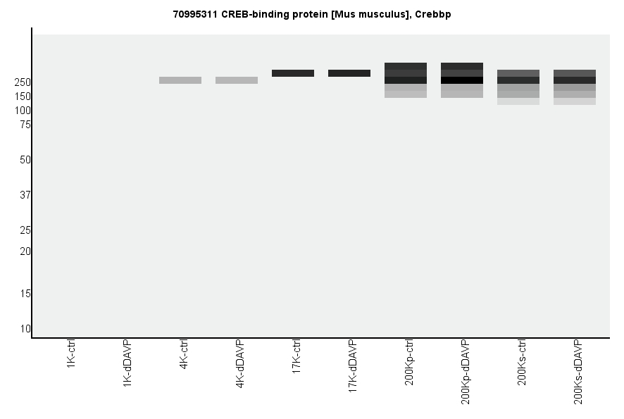 The virtual western blot images show data normalized using a logarithmic conversion scale to map peptide intensities to gray-scale levels. Using this conversion method, low-abundance peptides are generally visible in the blot images. Switch back to the default linear conversion scale database page.