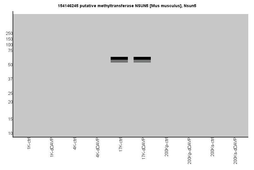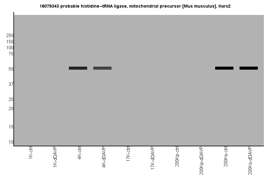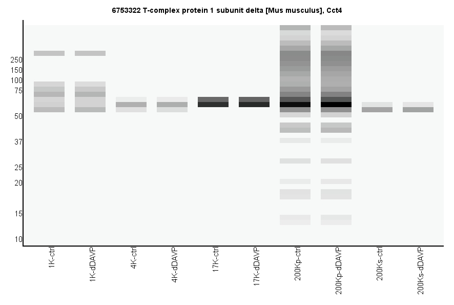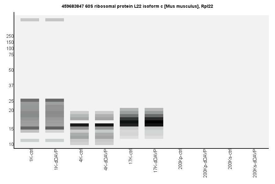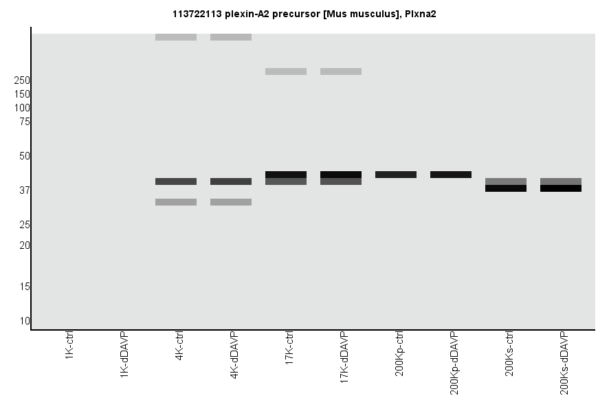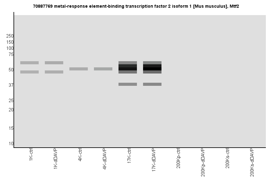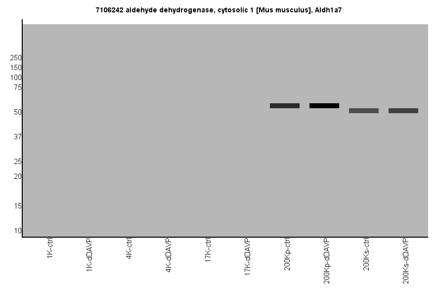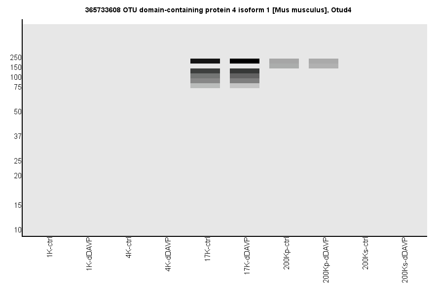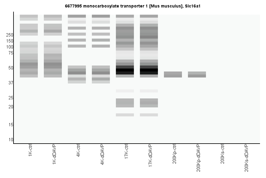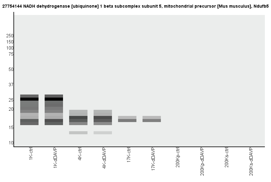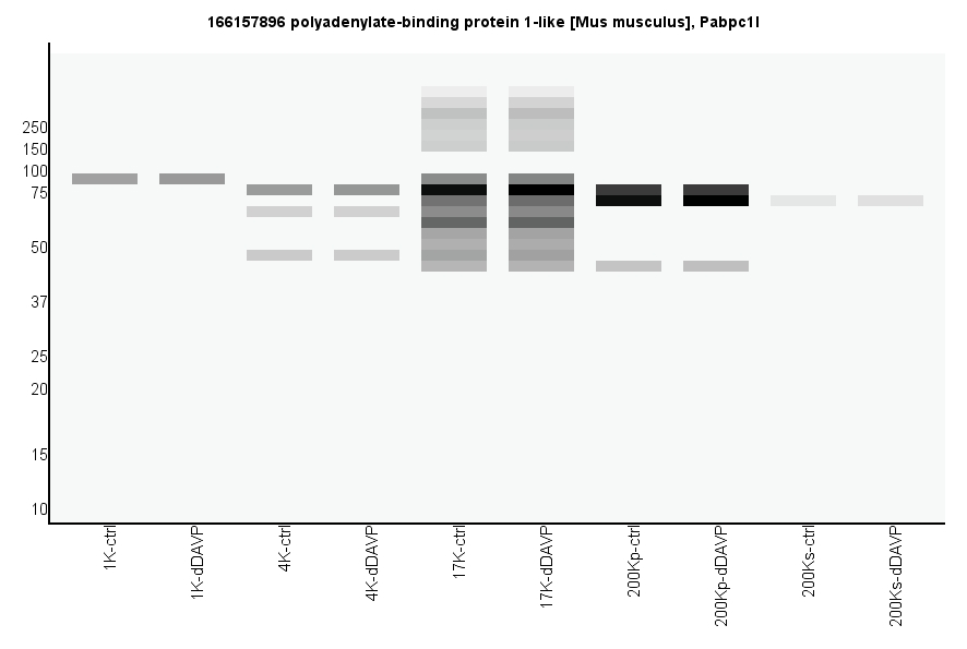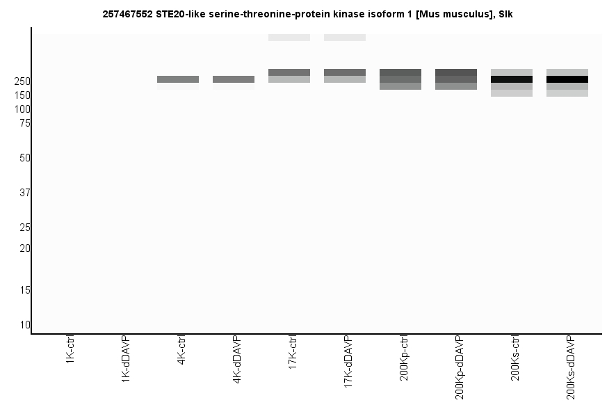 The virtual western blot images show data normalized using a logarithmic conversion scale to map peptide intensities to gray-scale levels. Using this conversion method, low-abundance peptides are generally visible in the blot images. Switch back to the default linear conversion scale database page.