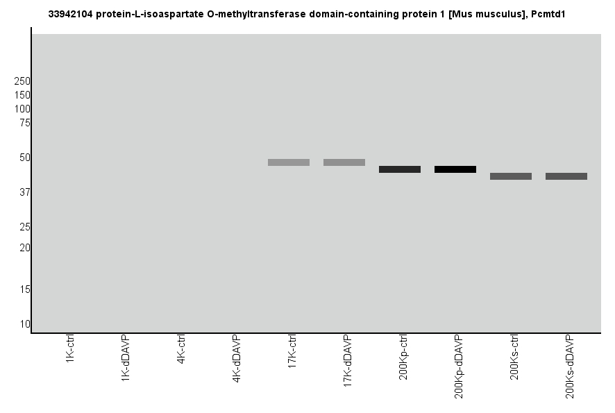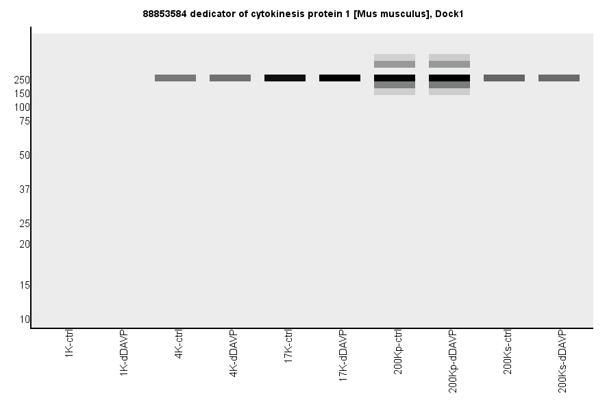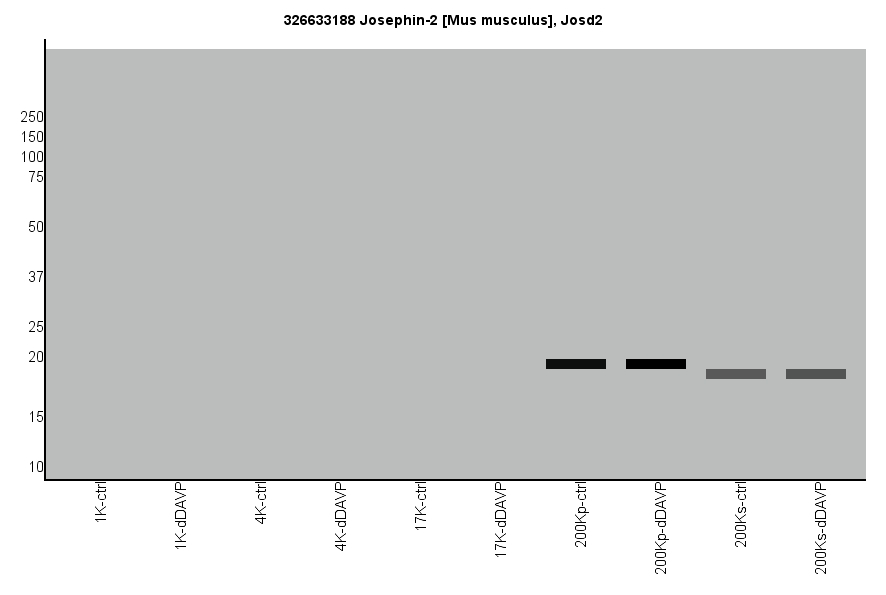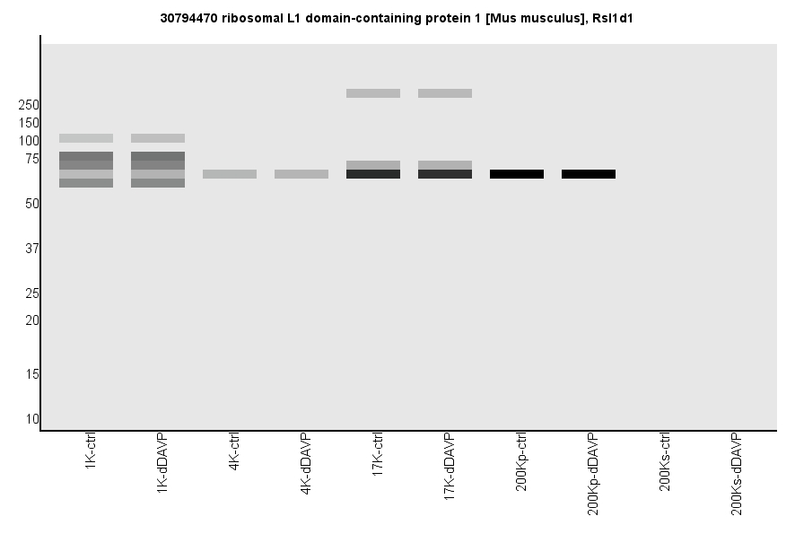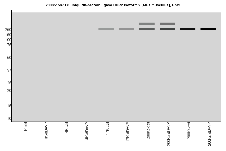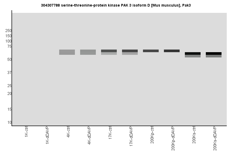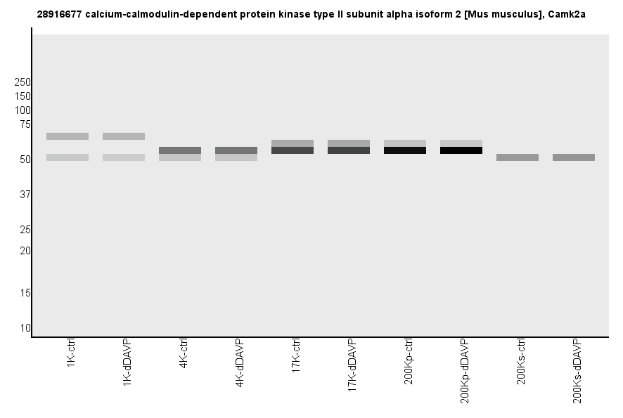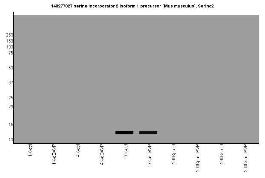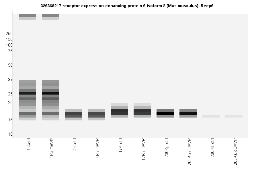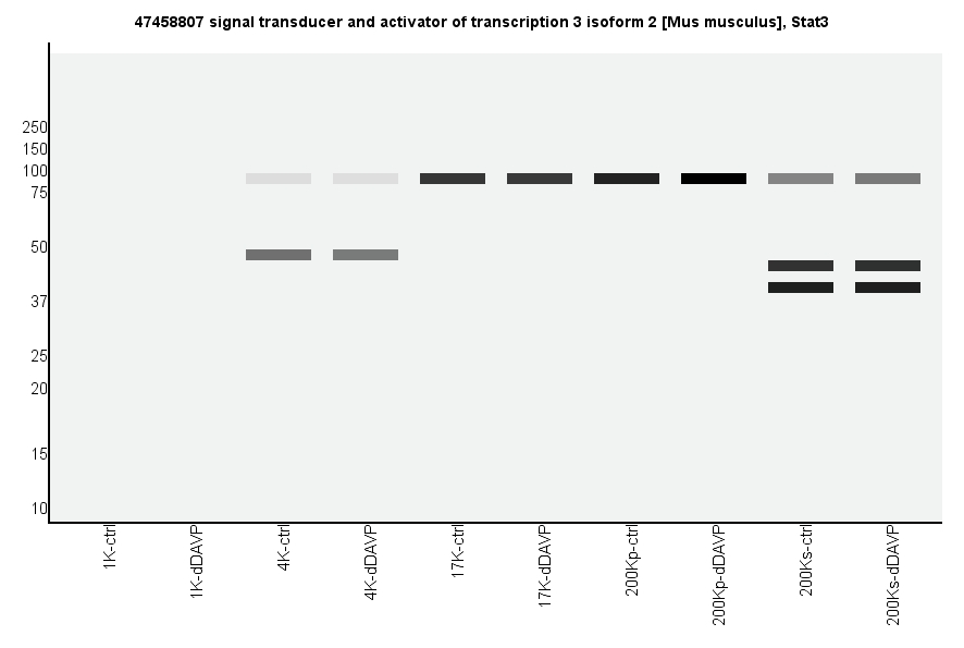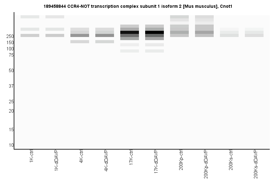 The virtual western blot images show data normalized using a logarithmic conversion scale to map peptide intensities to gray-scale levels. Using this conversion method, low-abundance peptides are generally visible in the blot images. Switch back to the default linear conversion scale database page.