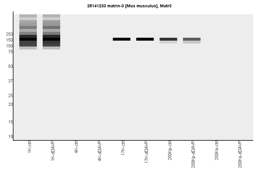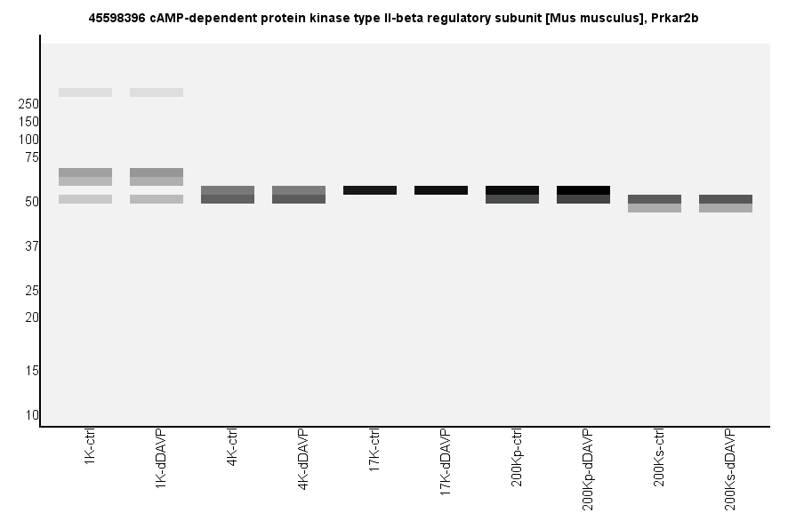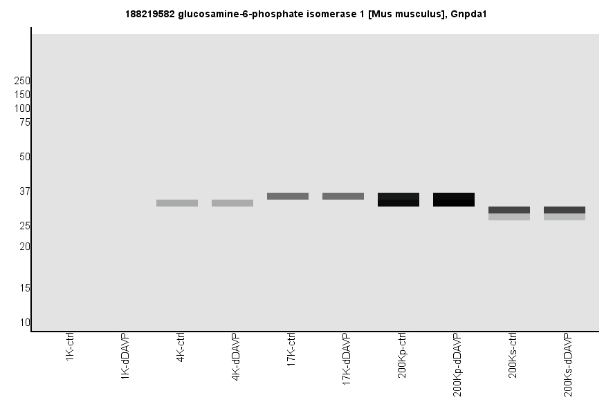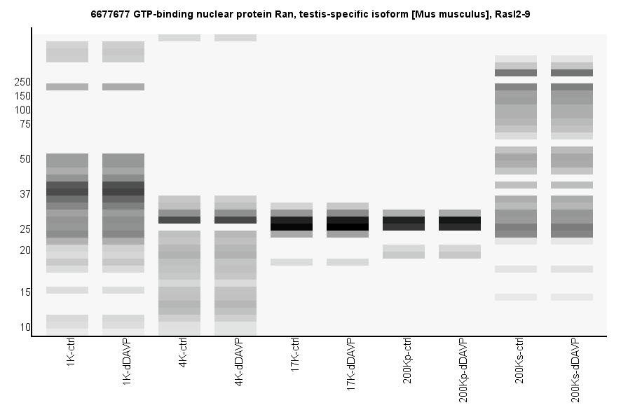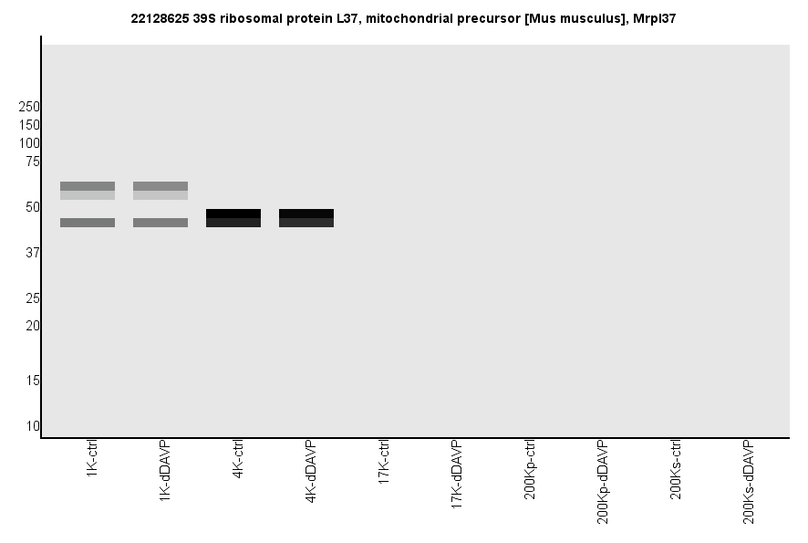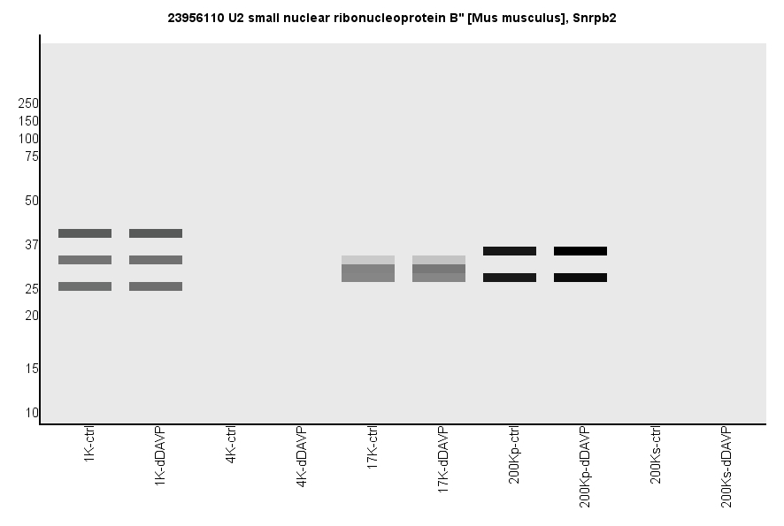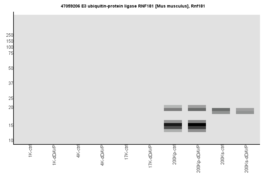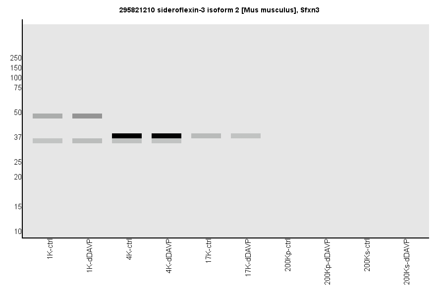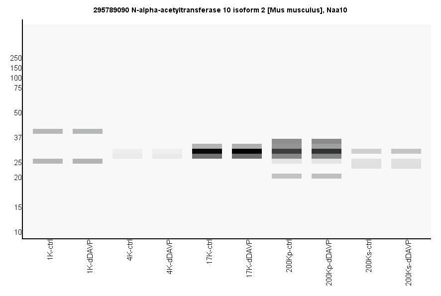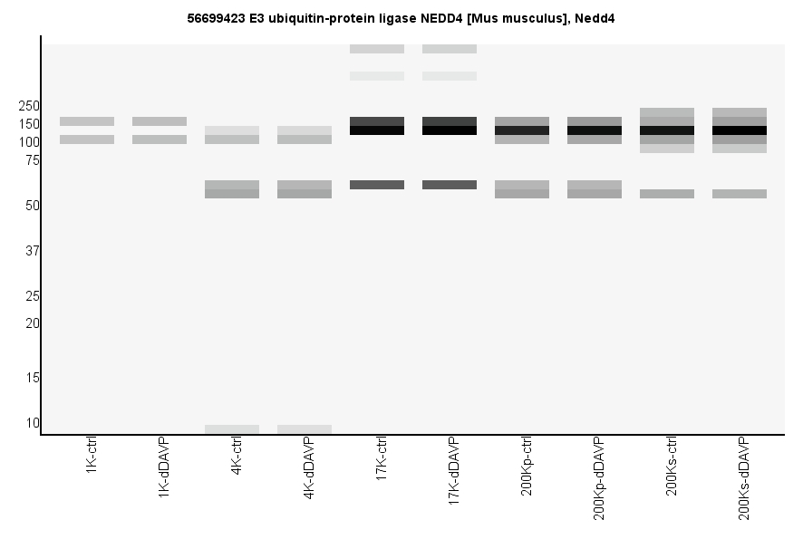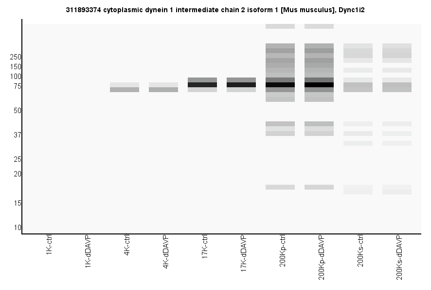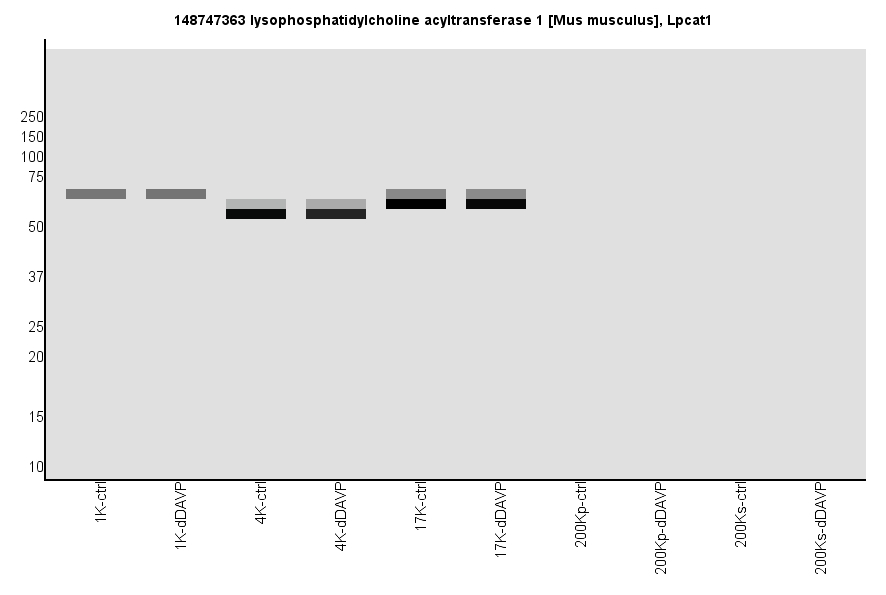 The virtual western blot images show data normalized using a logarithmic conversion scale to map peptide intensities to gray-scale levels. Using this conversion method, low-abundance peptides are generally visible in the blot images. Switch back to the default linear conversion scale database page.