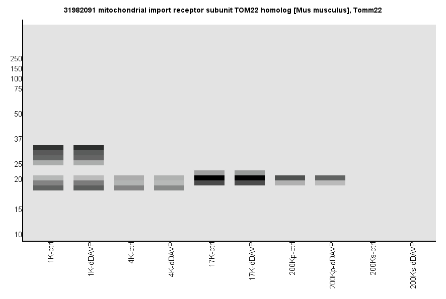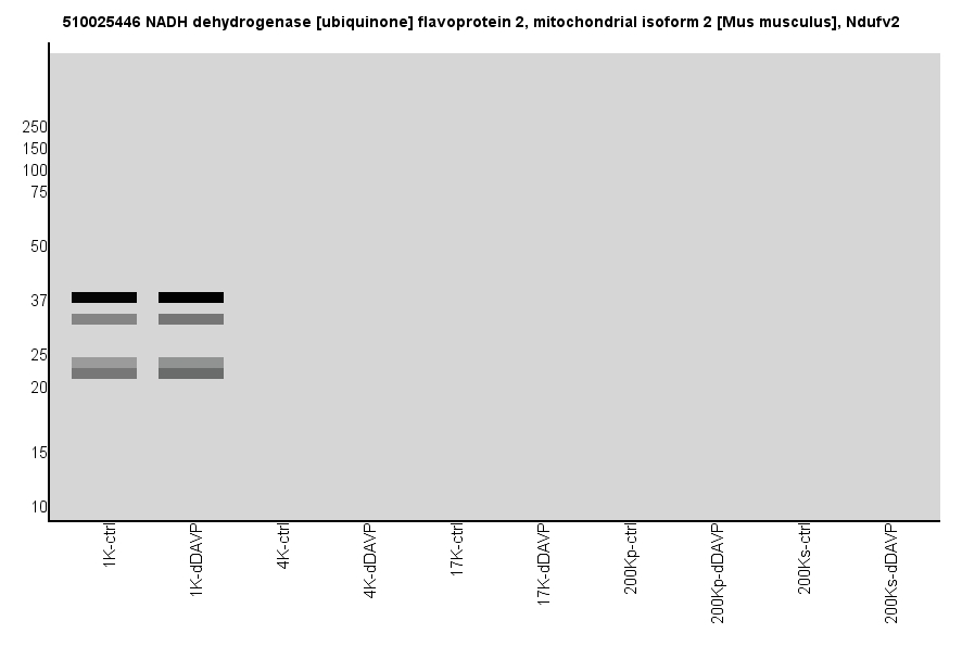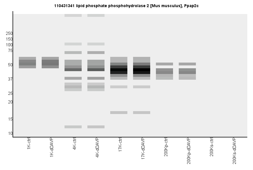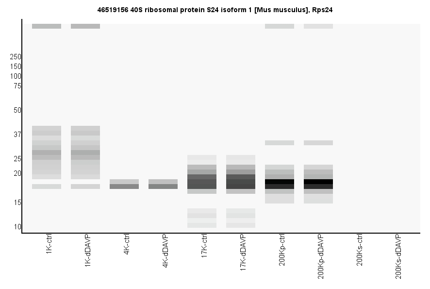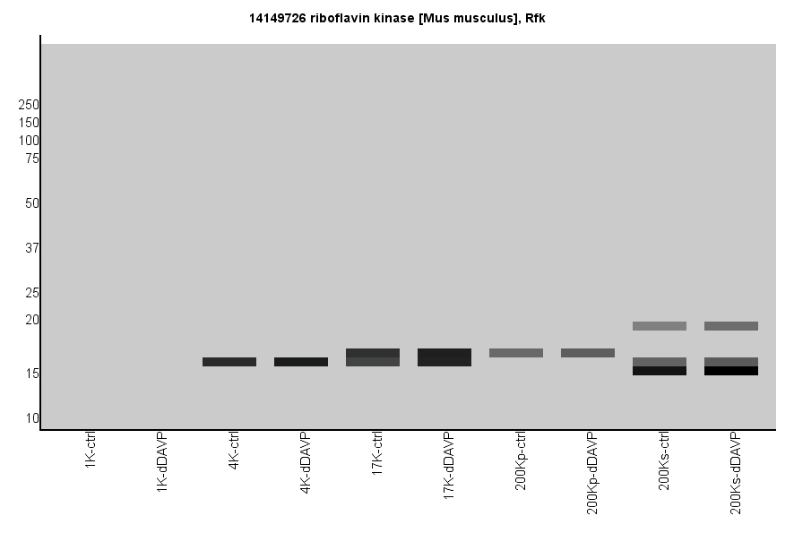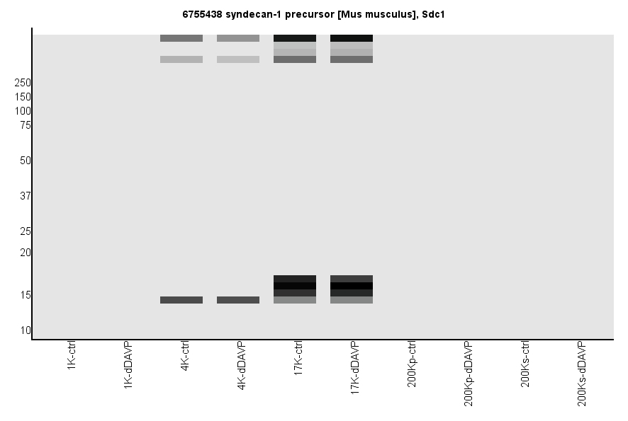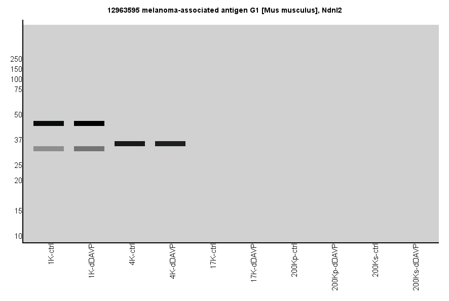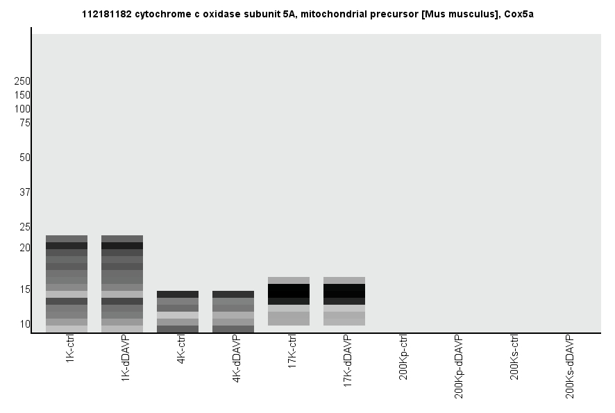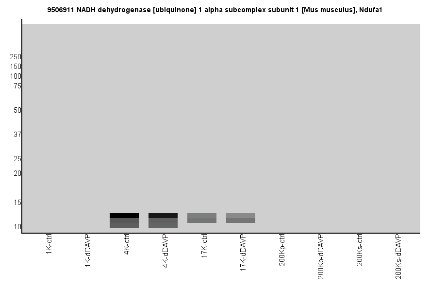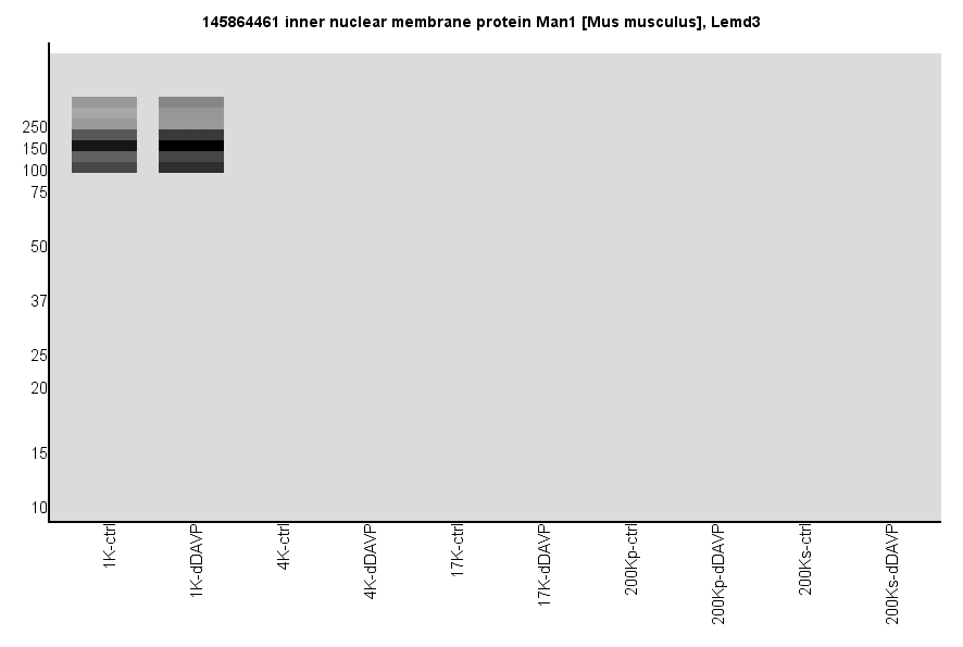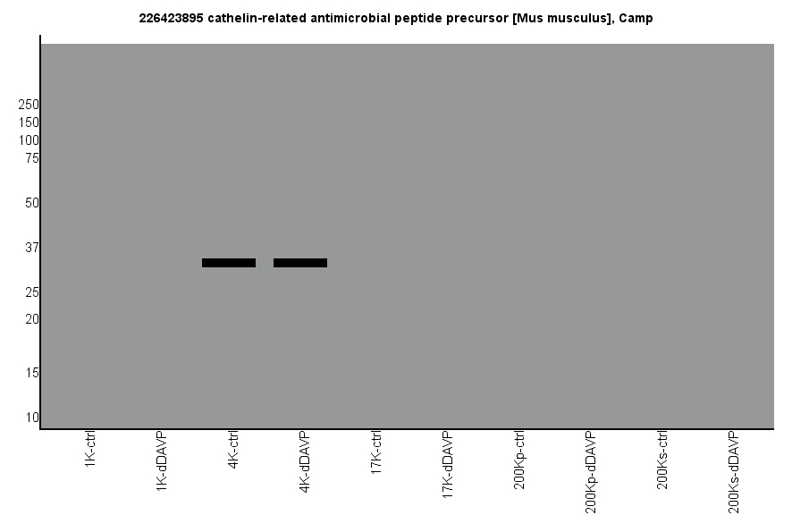 The virtual western blot images show data normalized using a logarithmic conversion scale to map peptide intensities to gray-scale levels. Using this conversion method, low-abundance peptides are generally visible in the blot images. Switch back to the default linear conversion scale database page.
