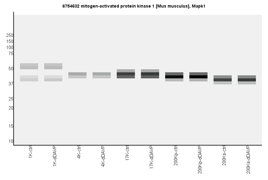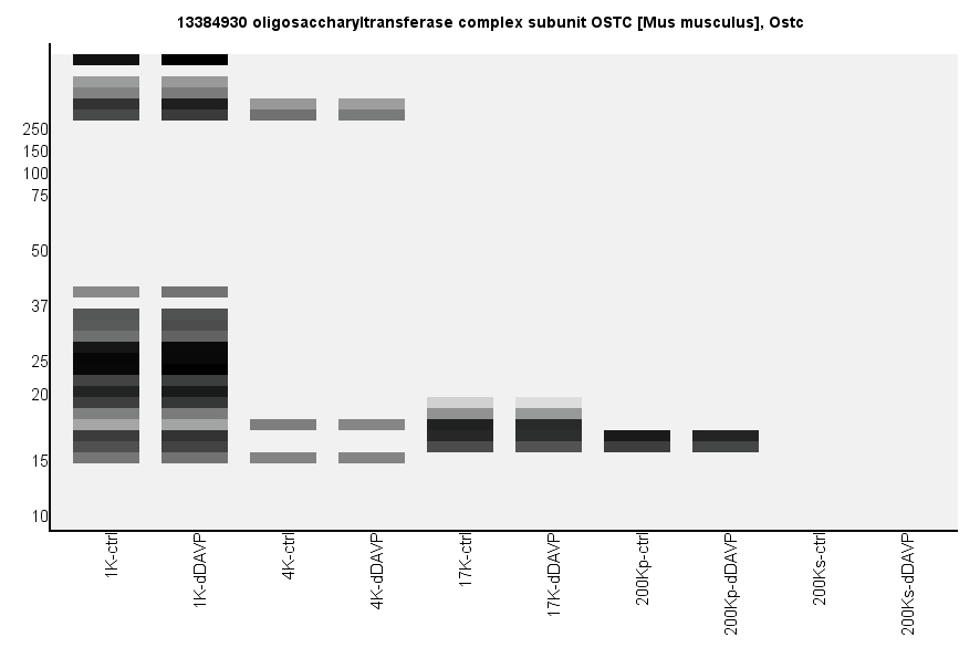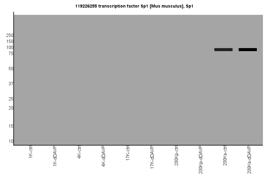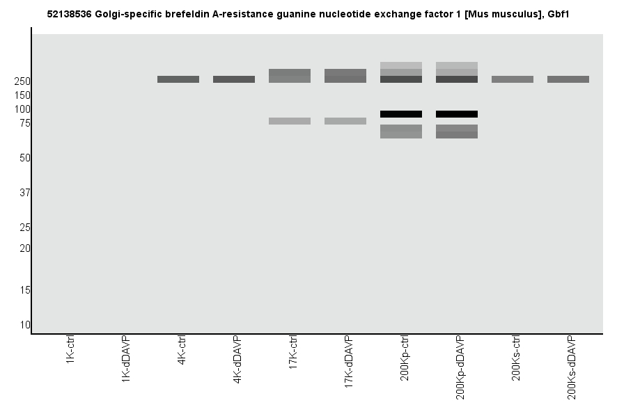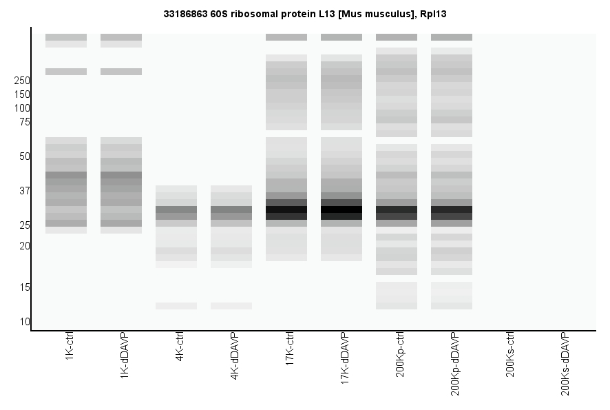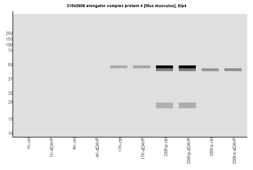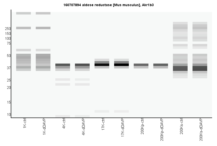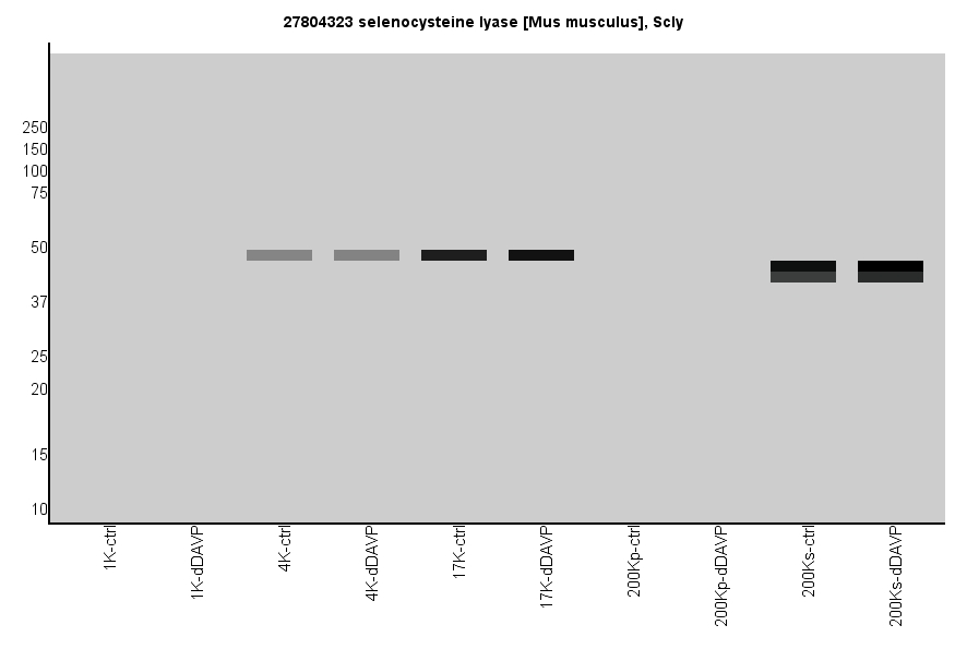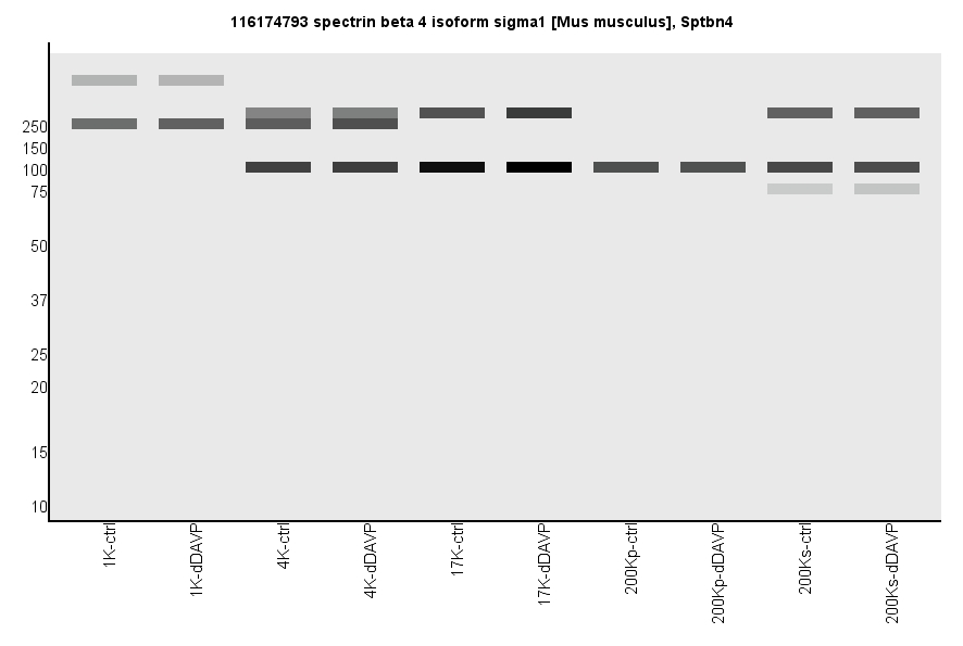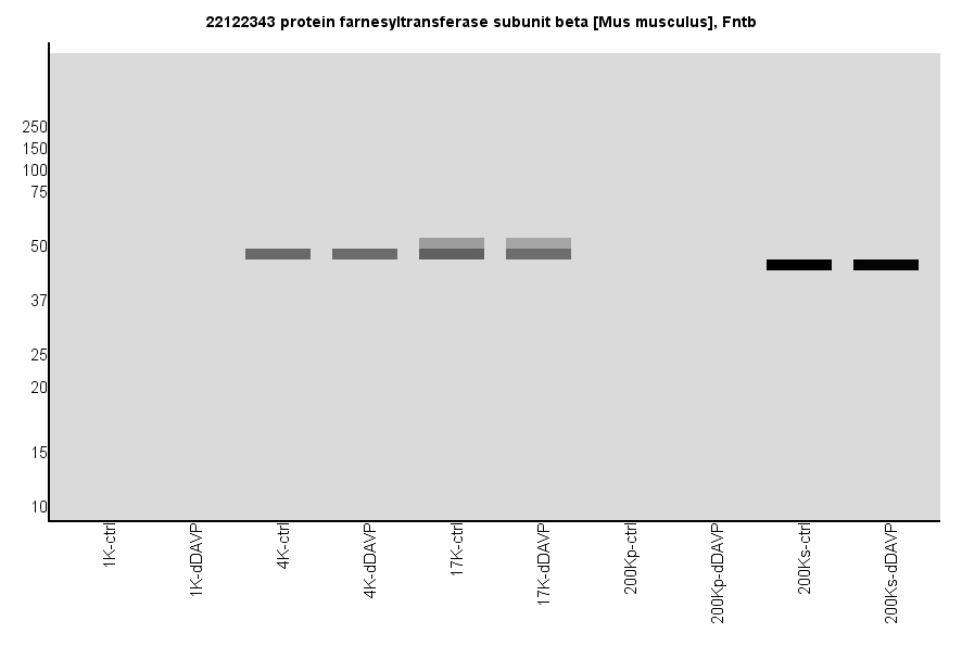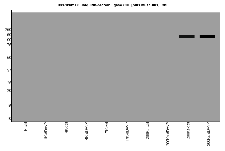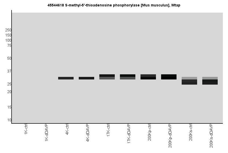 The virtual western blot images show data normalized using a logarithmic conversion scale to map peptide intensities to gray-scale levels. Using this conversion method, low-abundance peptides are generally visible in the blot images. Switch back to the default linear conversion scale database page.
