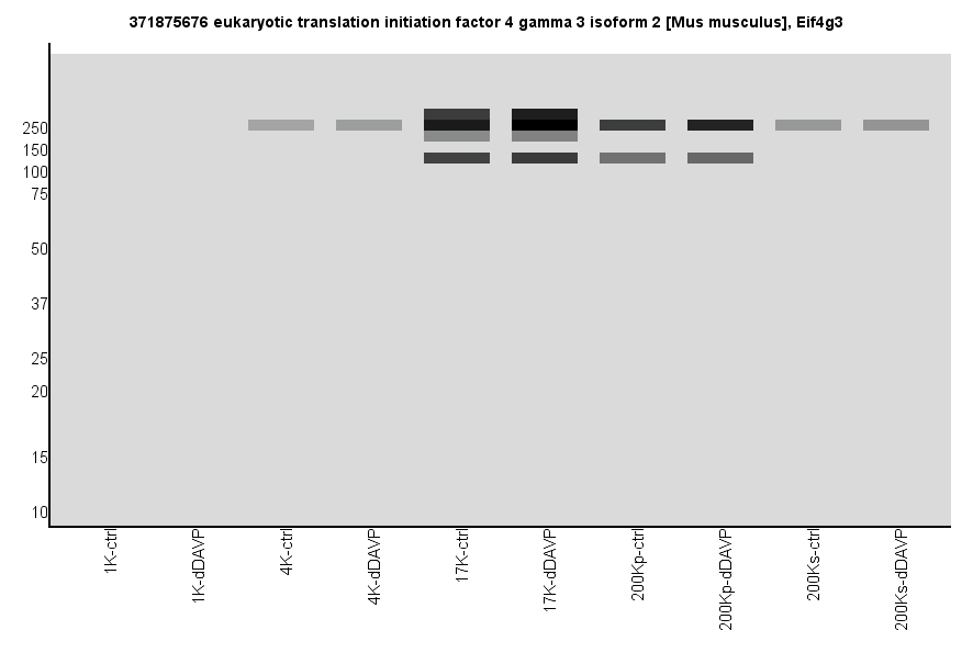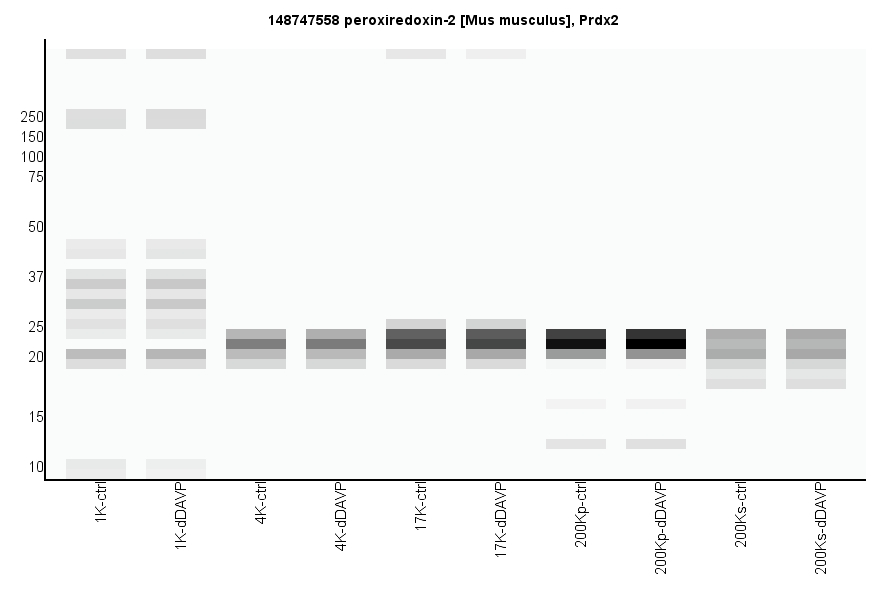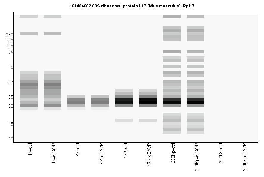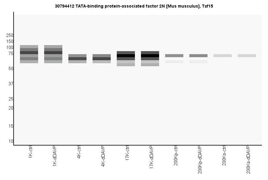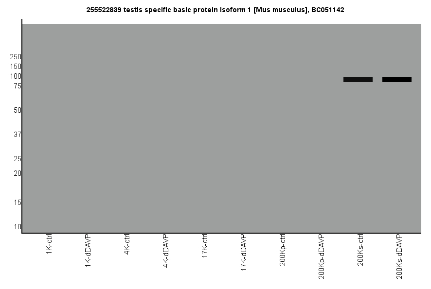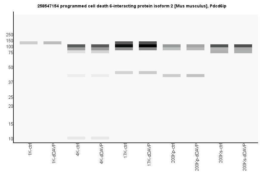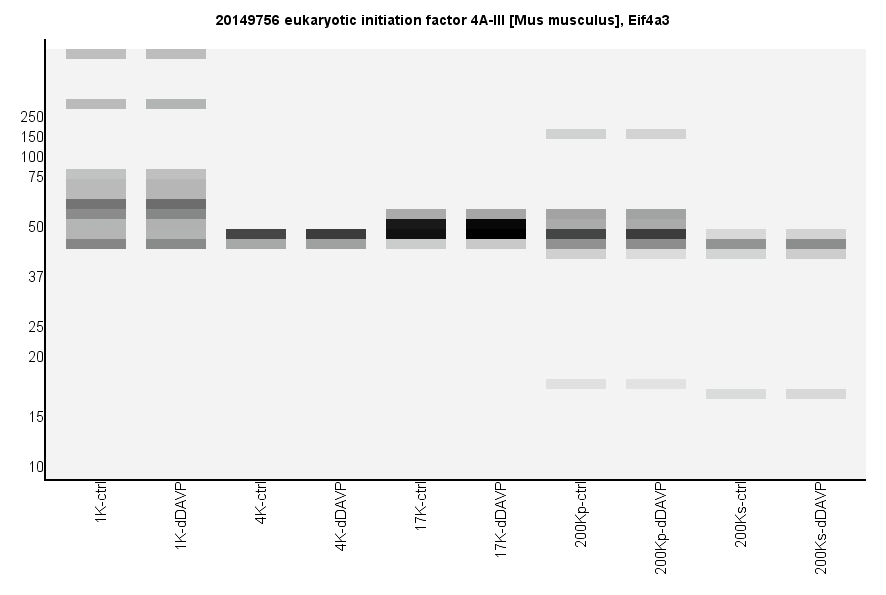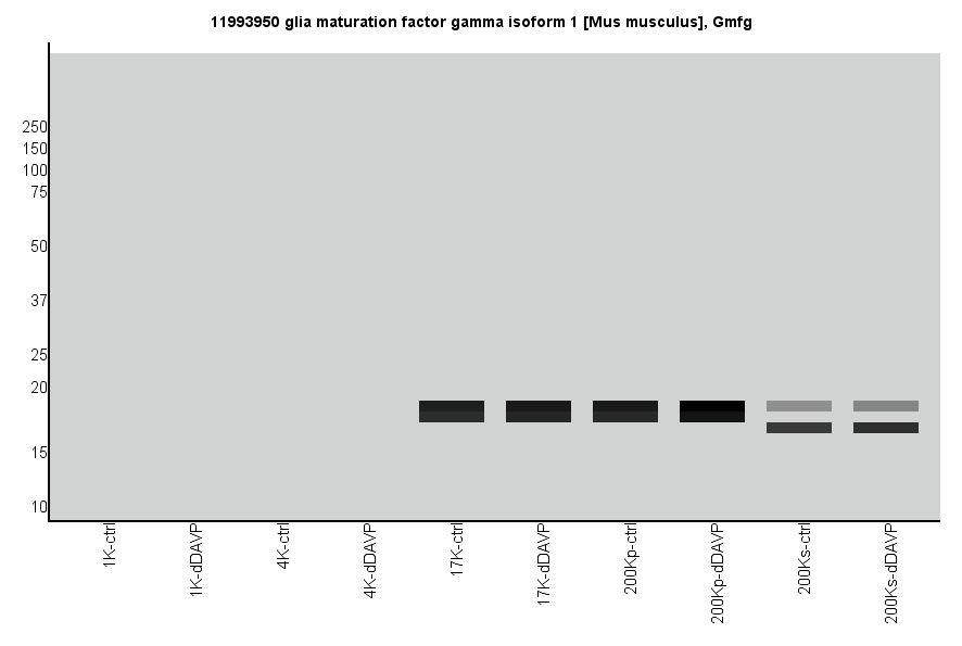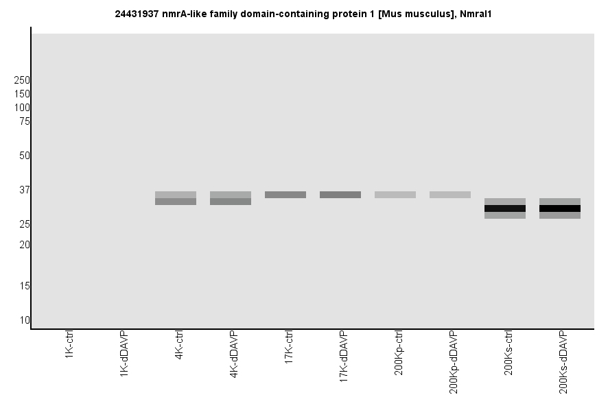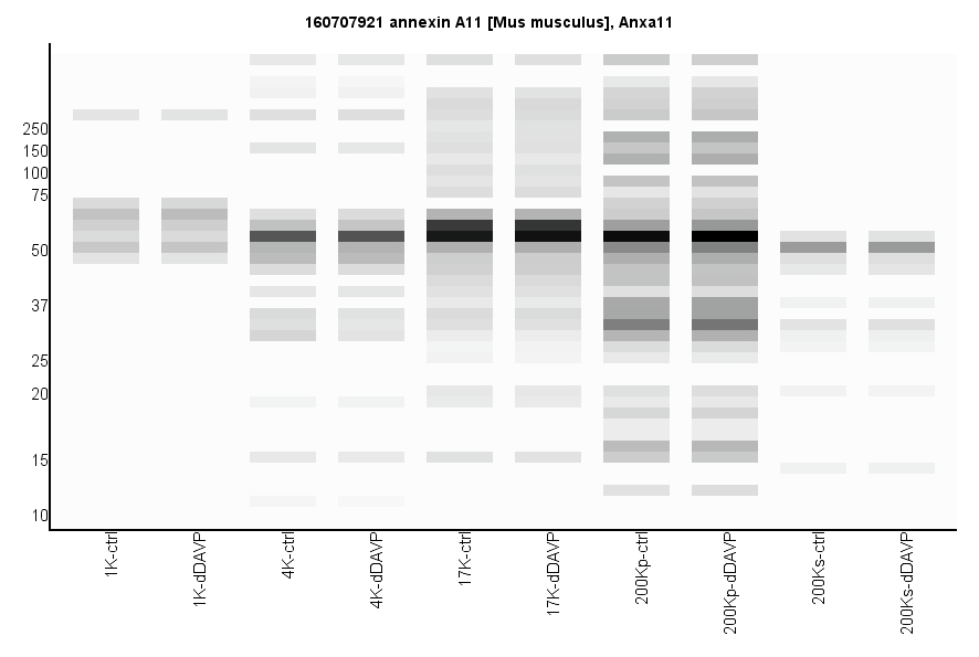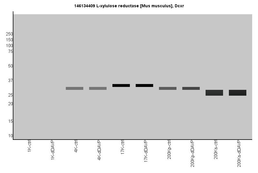 The virtual western blot images show data normalized using a logarithmic conversion scale to map peptide intensities to gray-scale levels. Using this conversion method, low-abundance peptides are generally visible in the blot images. Switch back to the default linear conversion scale database page.