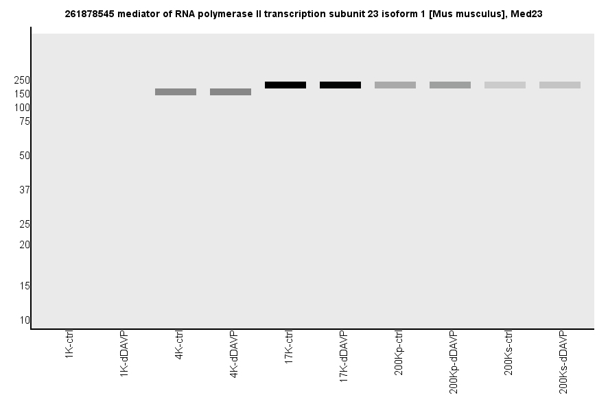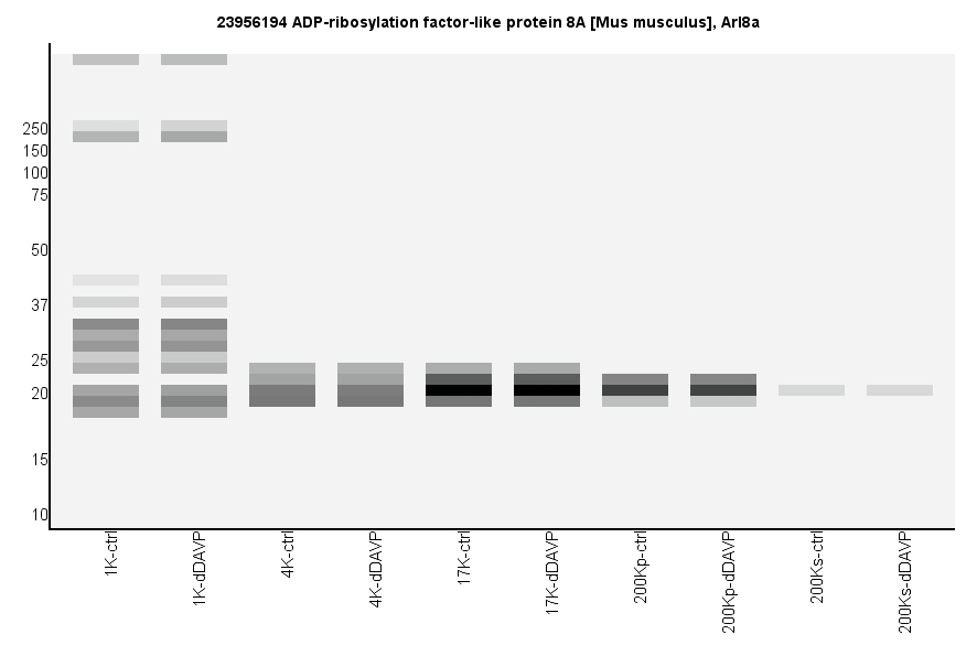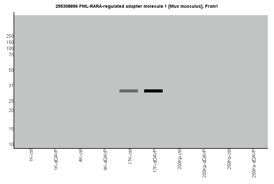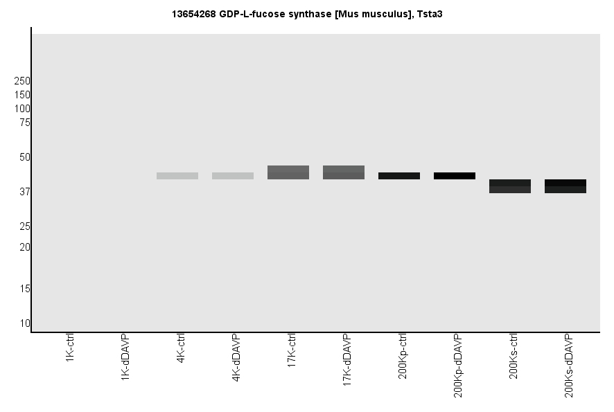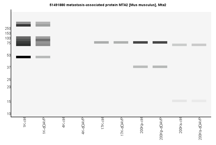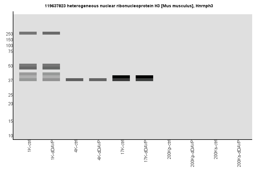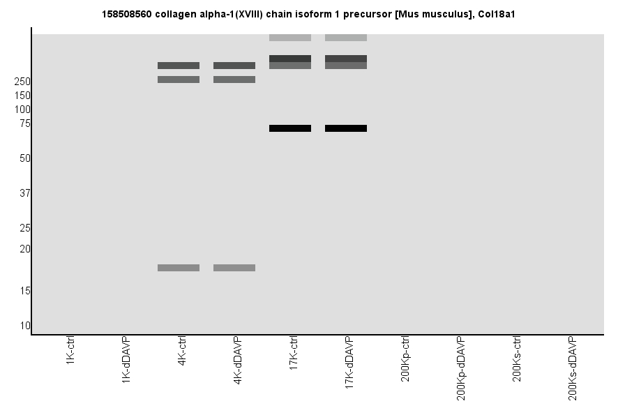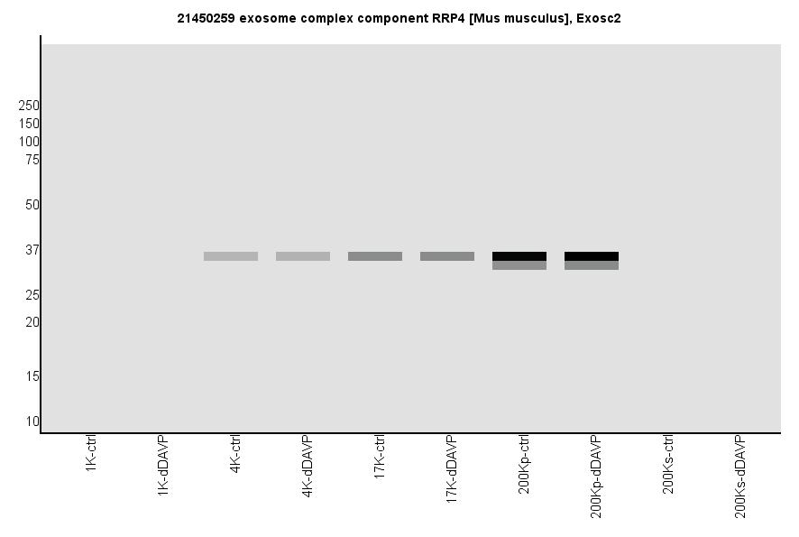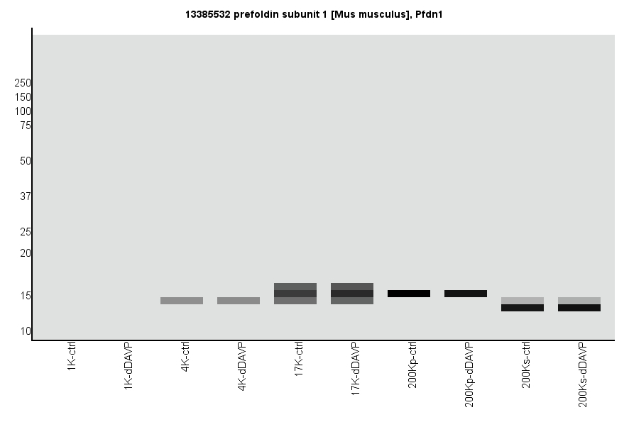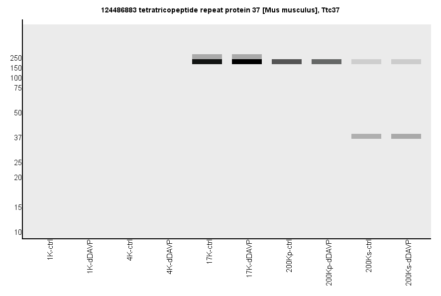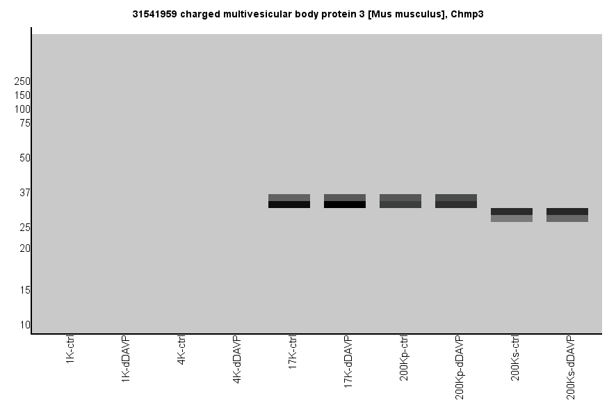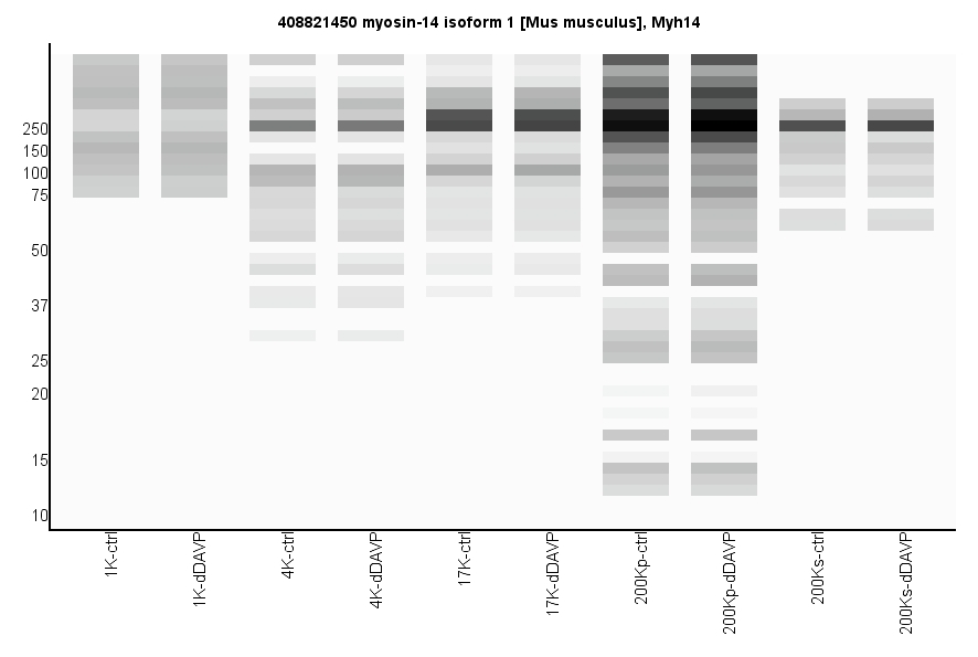 The virtual western blot images show data normalized using a logarithmic conversion scale to map peptide intensities to gray-scale levels. Using this conversion method, low-abundance peptides are generally visible in the blot images. Switch back to the default linear conversion scale database page.