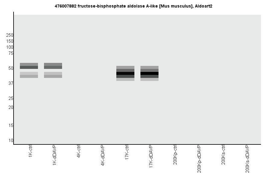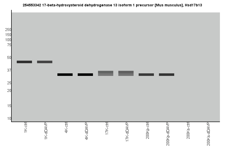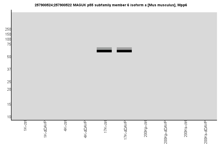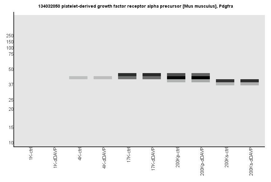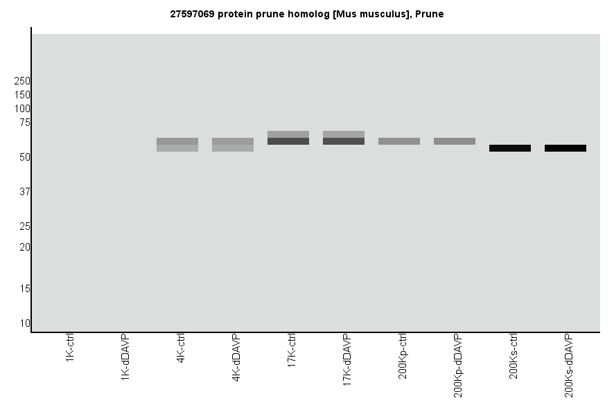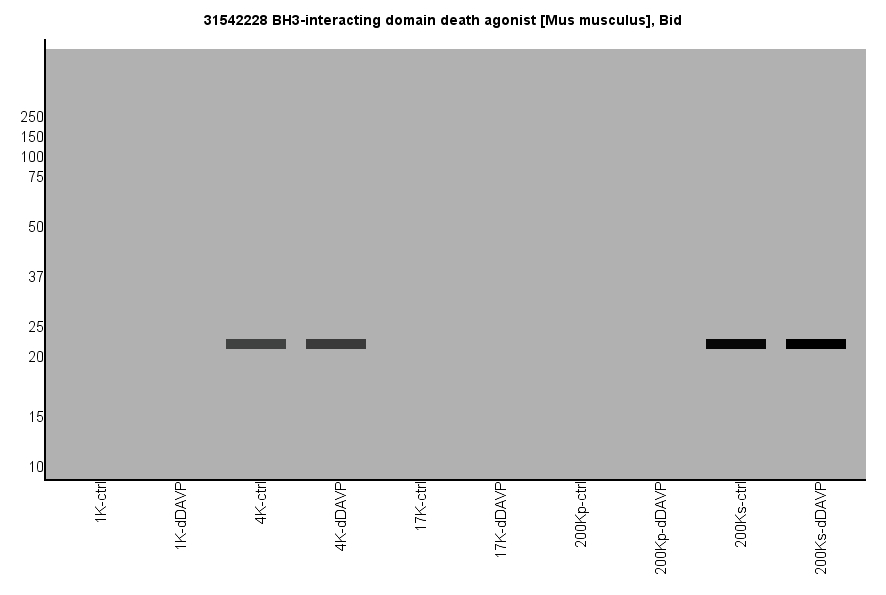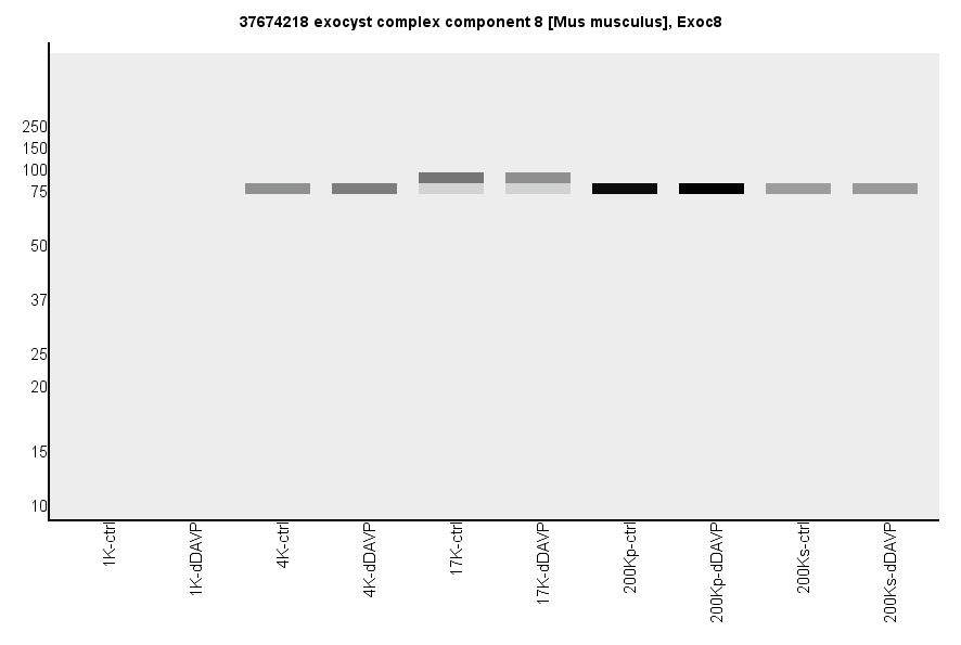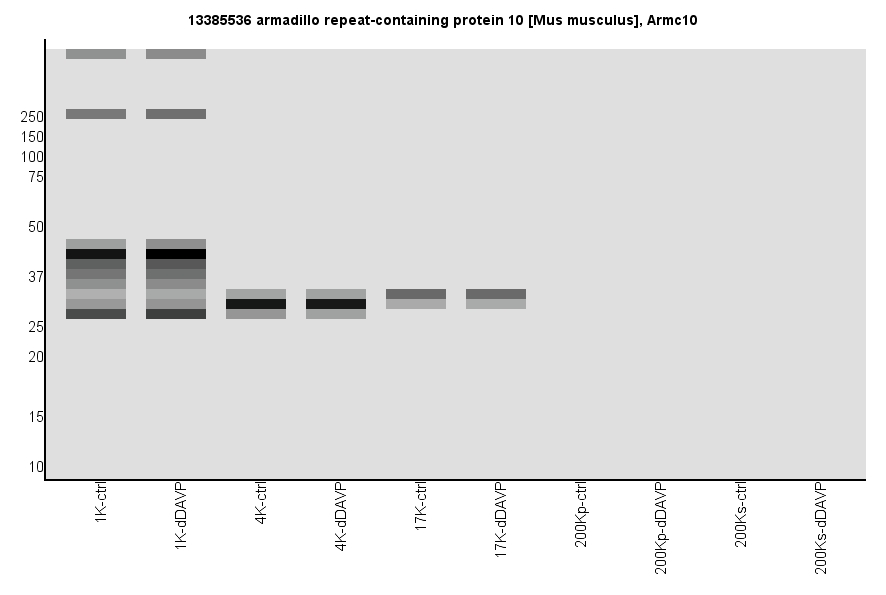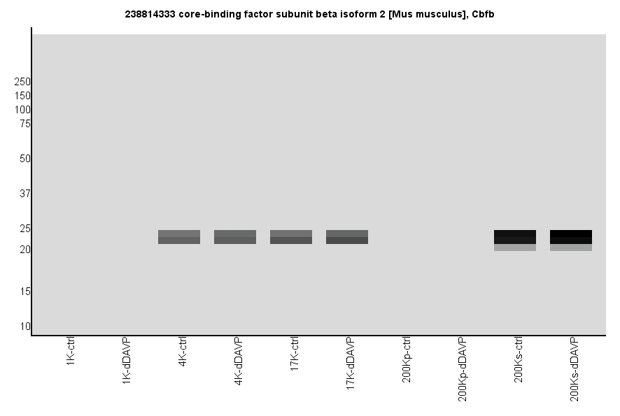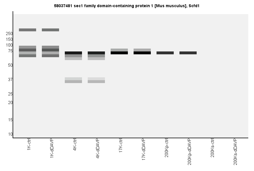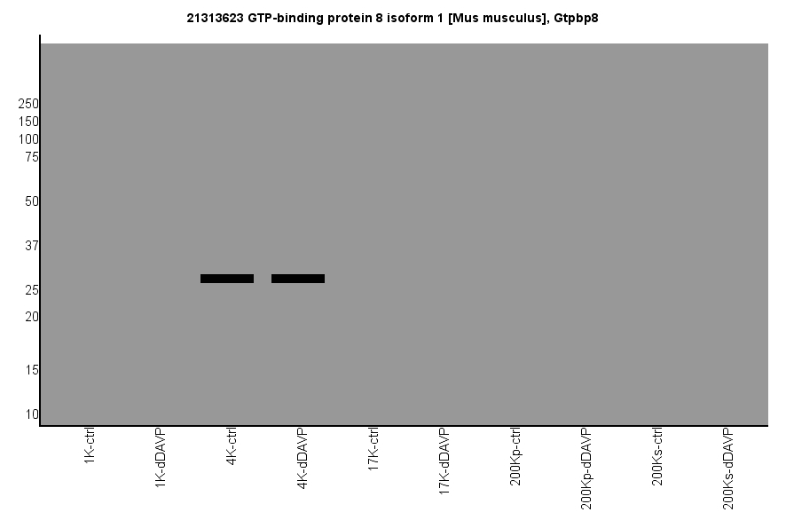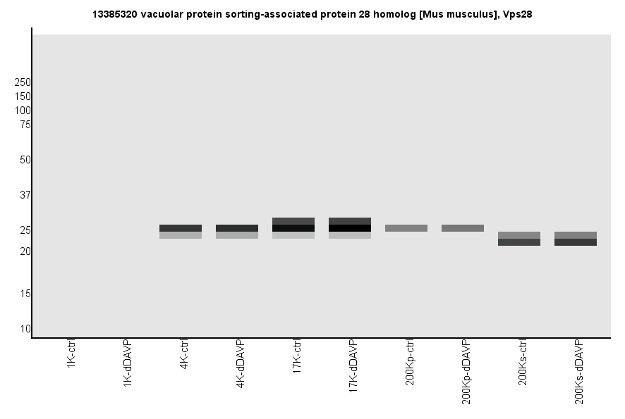 The virtual western blot images show data normalized using a logarithmic conversion scale to map peptide intensities to gray-scale levels. Using this conversion method, low-abundance peptides are generally visible in the blot images. Switch back to the default linear conversion scale database page.