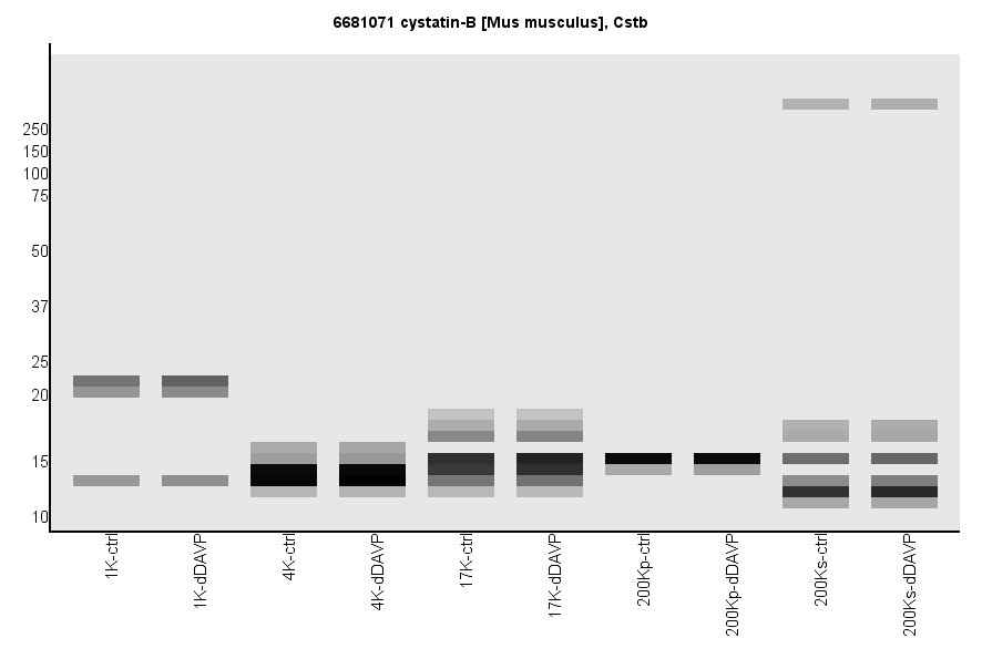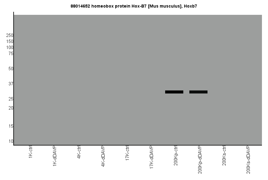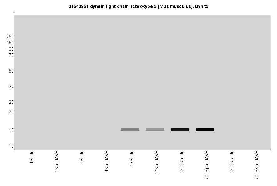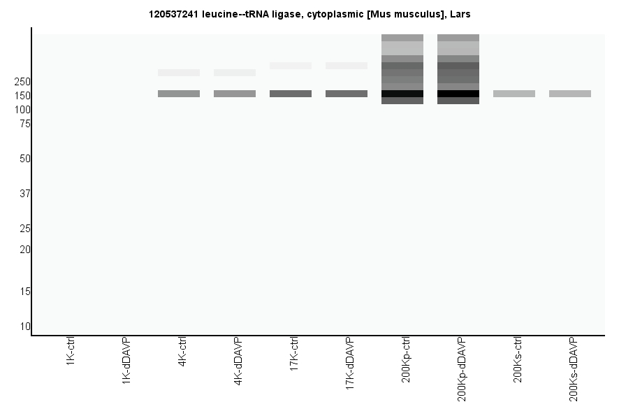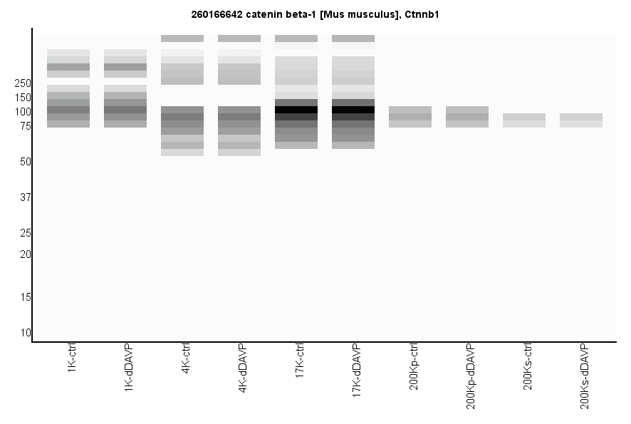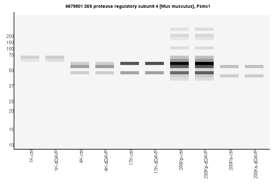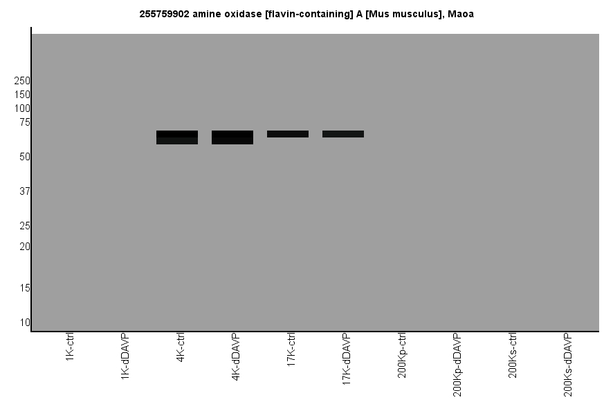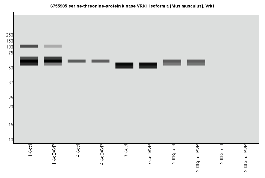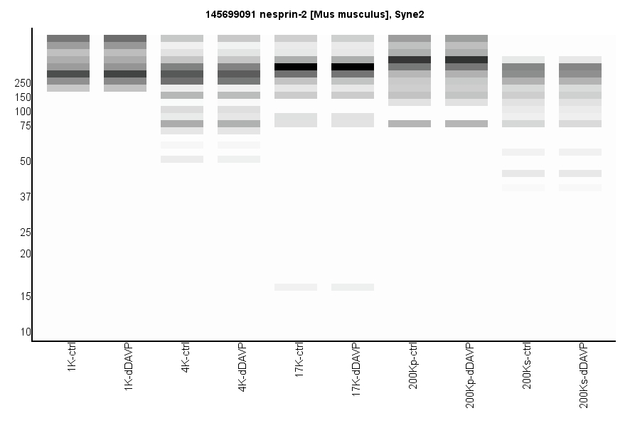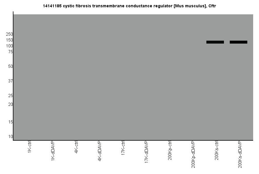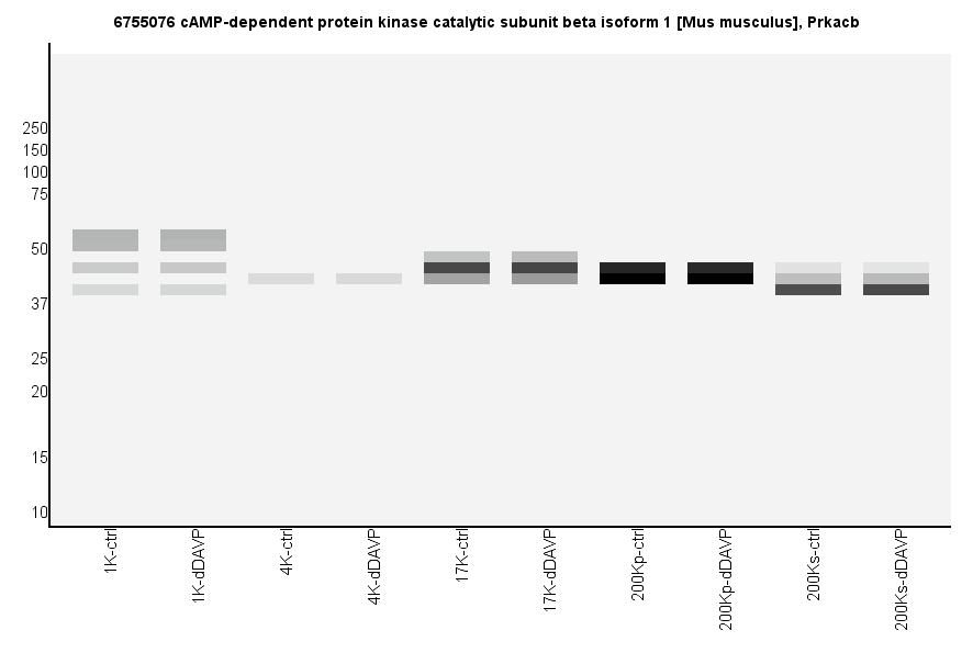The virtual western blot images show data normalized using a logarithmic conversion scale to map peptide intensities to gray-scale levels. Using this conversion method, low-abundance peptides are generally visible in the blot images. Switch back to the default linear conversion scale database page.