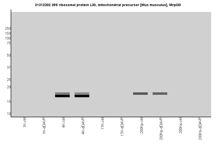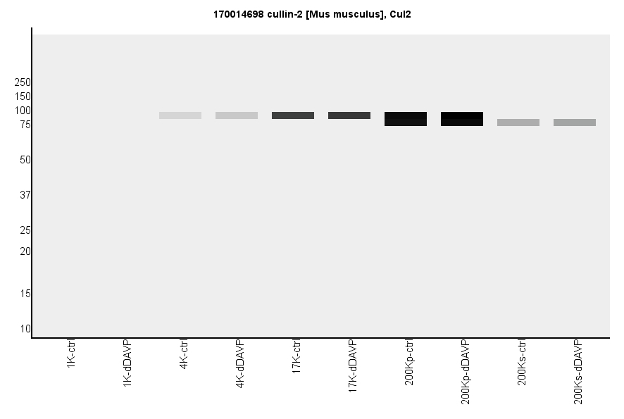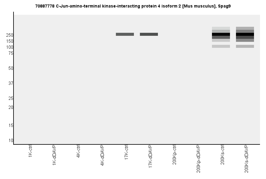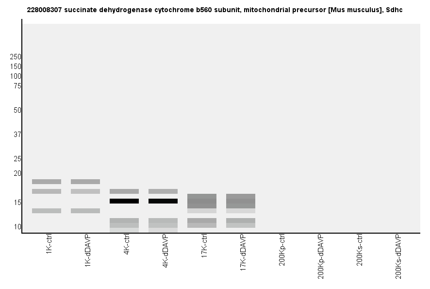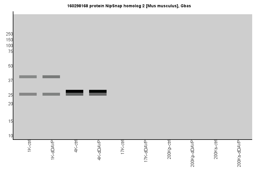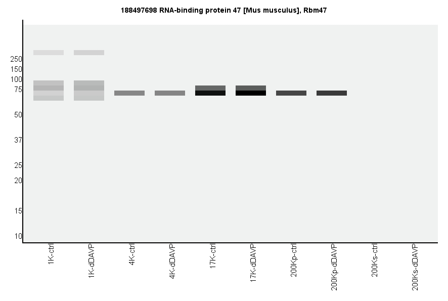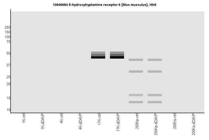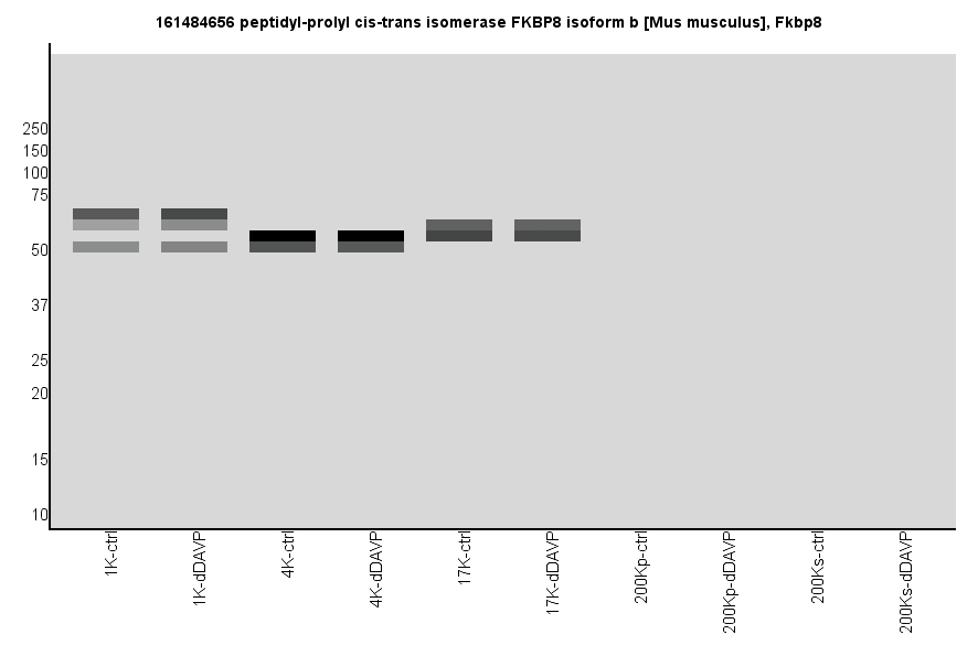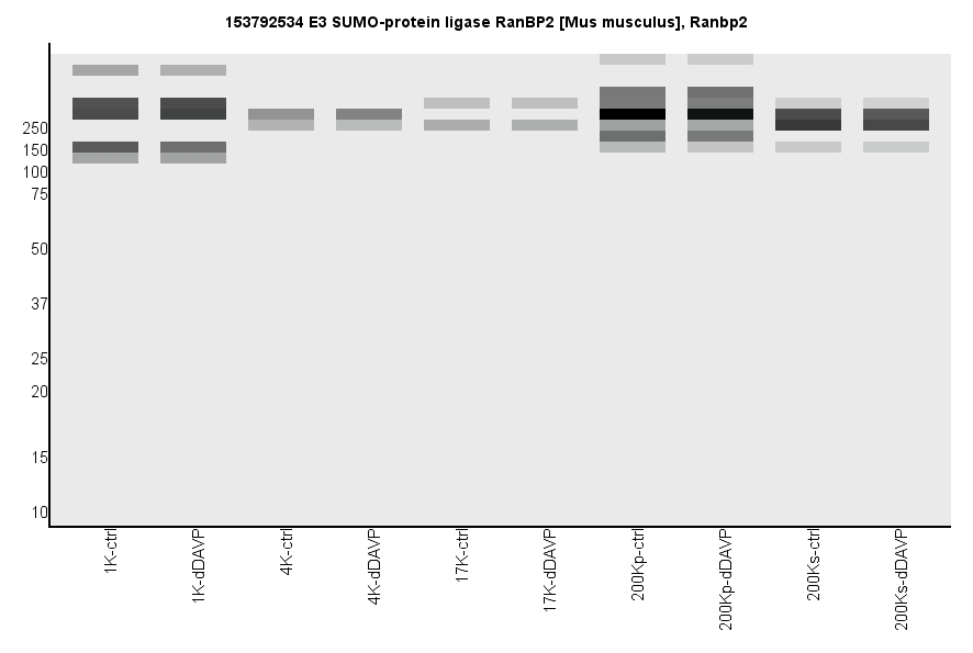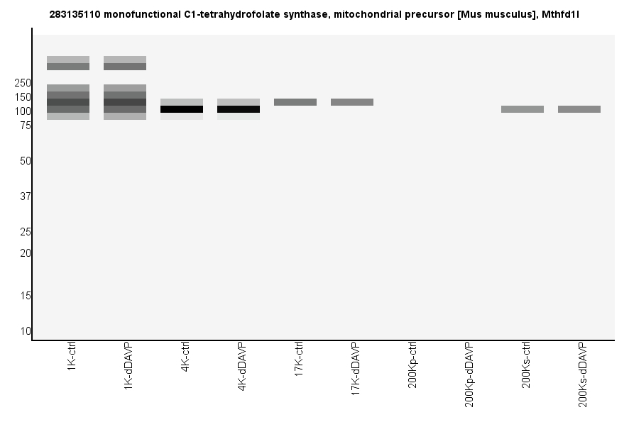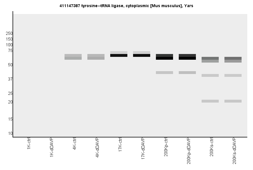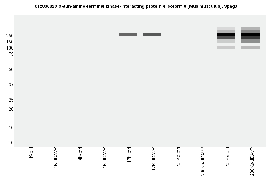 The virtual western blot images show data normalized using a logarithmic conversion scale to map peptide intensities to gray-scale levels. Using this conversion method, low-abundance peptides are generally visible in the blot images. Switch back to the default linear conversion scale database page.