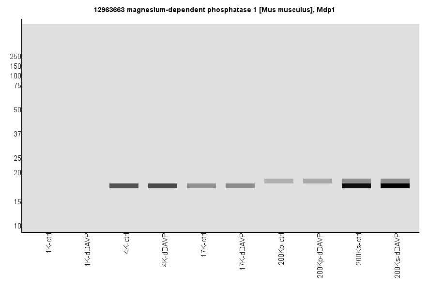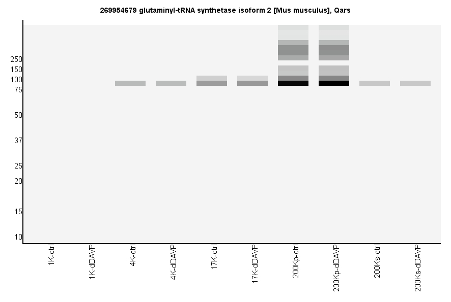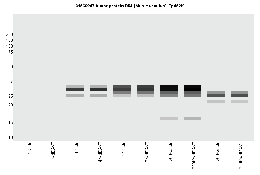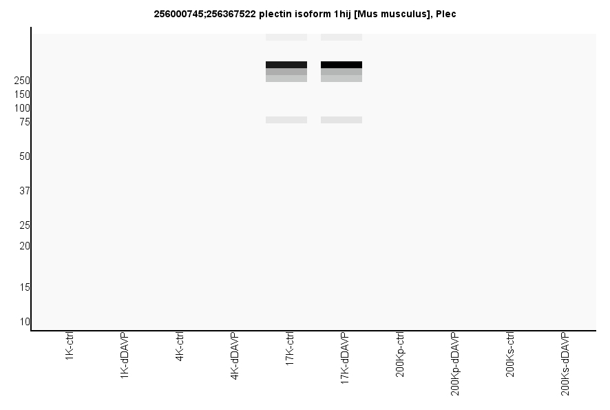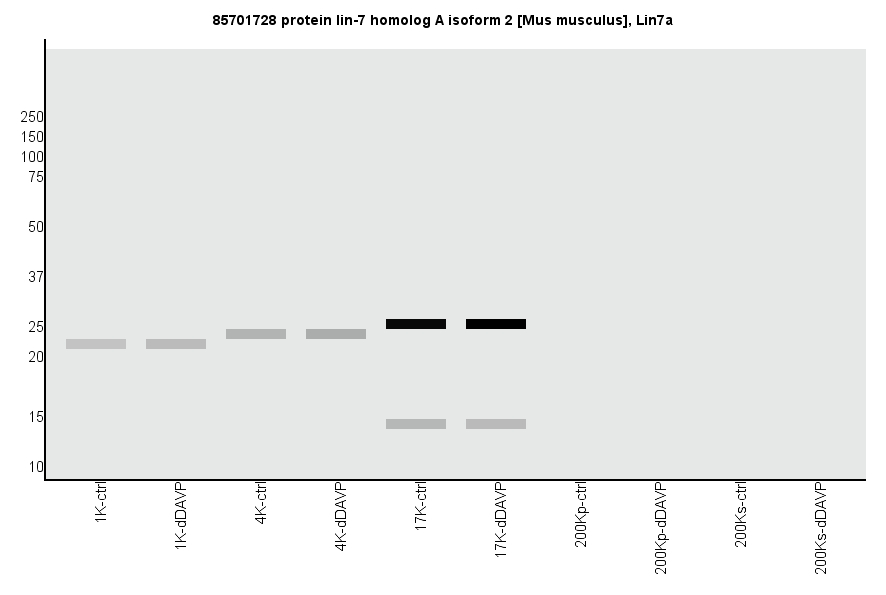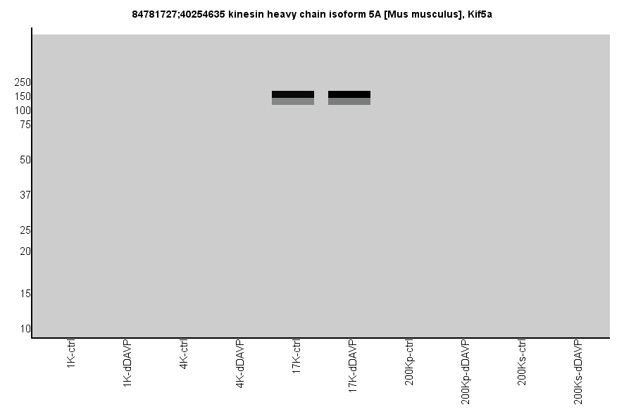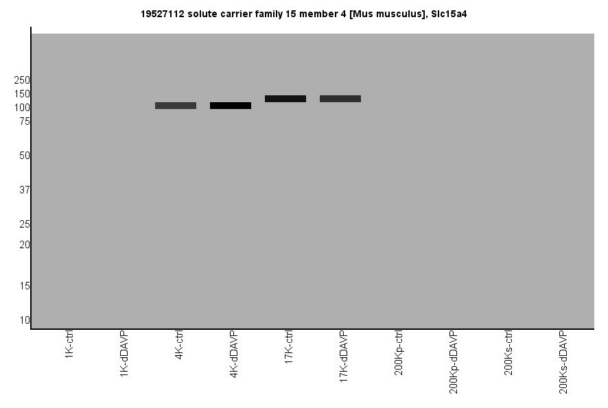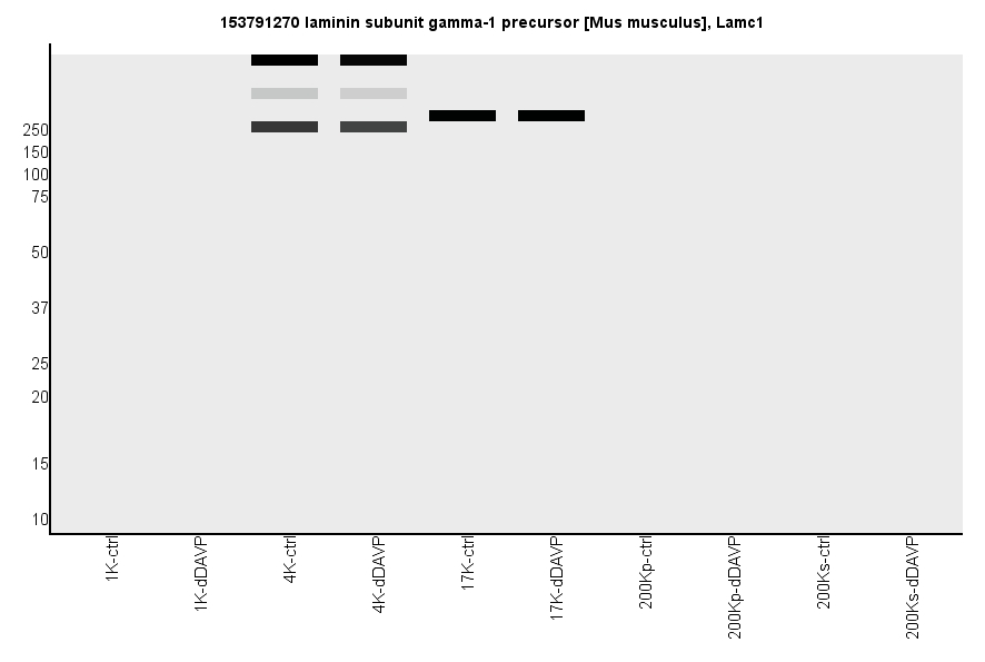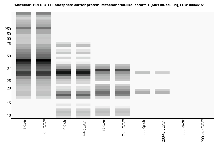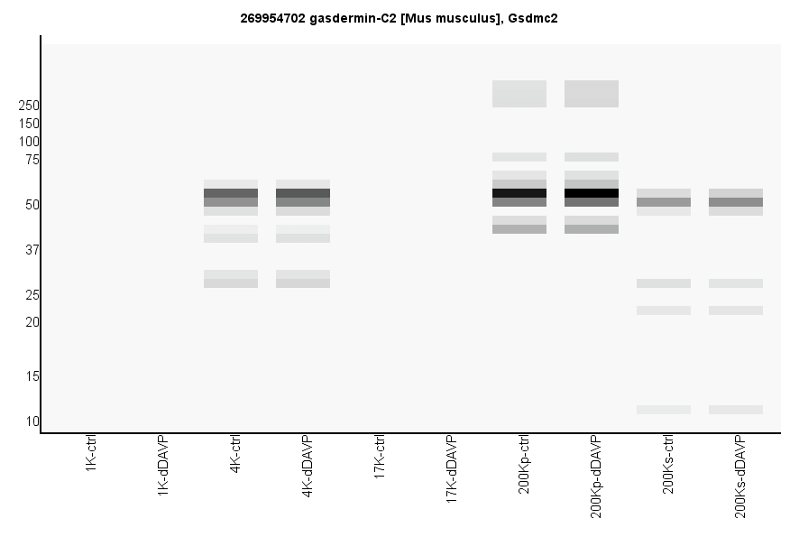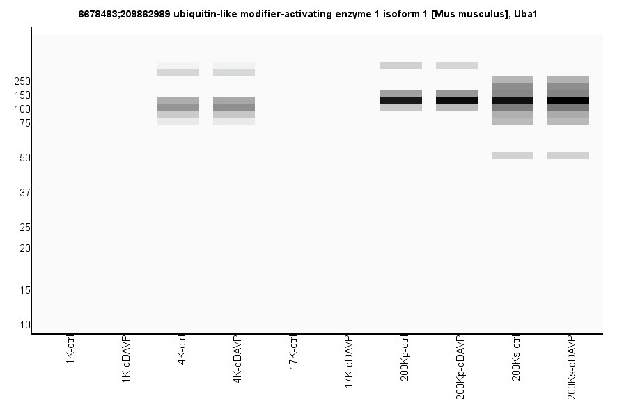 The virtual western blot images show data normalized using a logarithmic conversion scale to map peptide intensities to gray-scale levels. Using this conversion method, low-abundance peptides are generally visible in the blot images. Switch back to the default linear conversion scale database page.