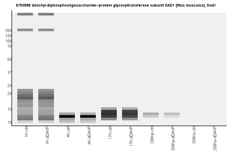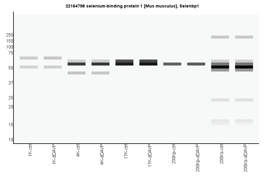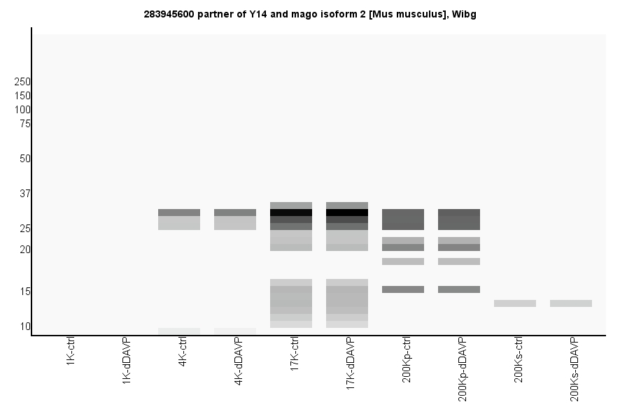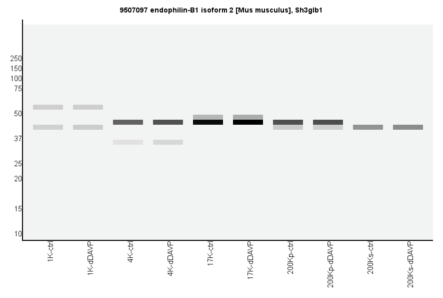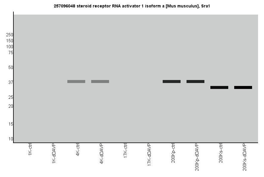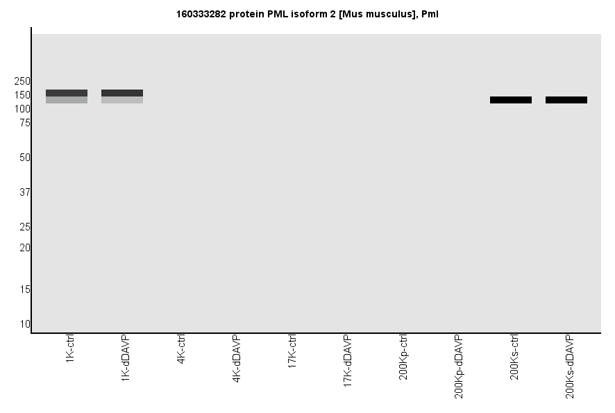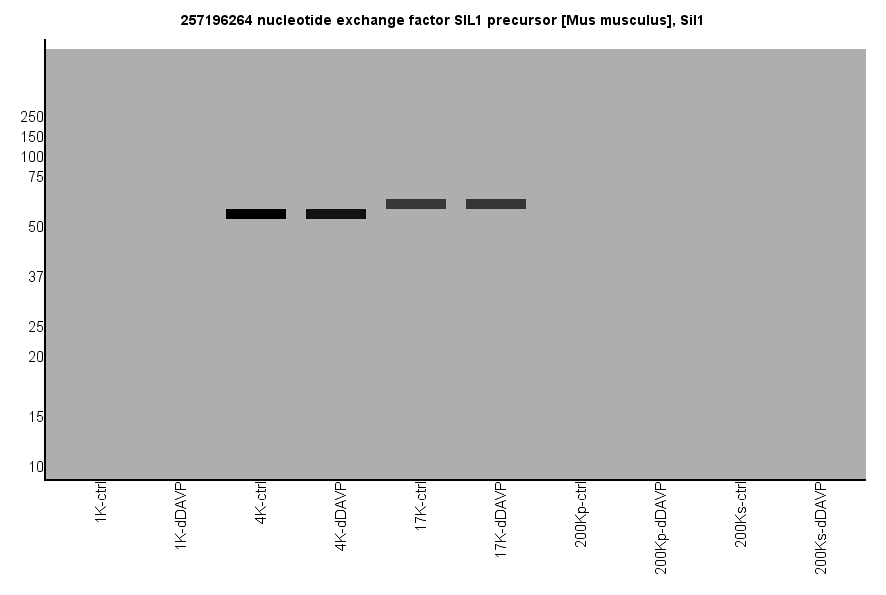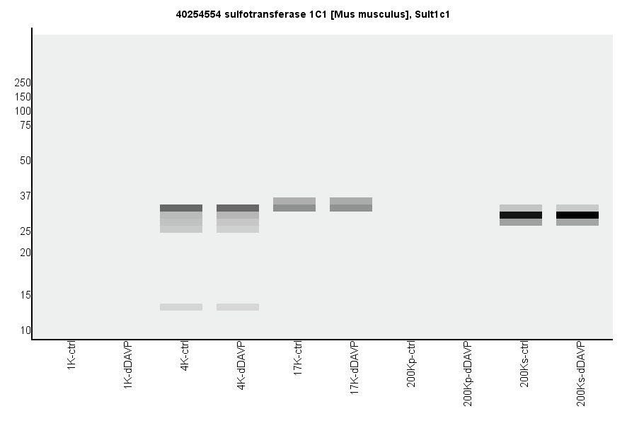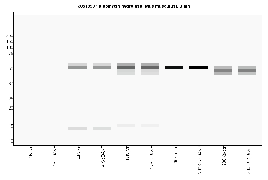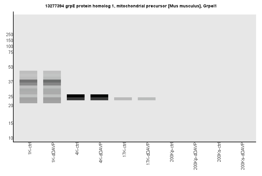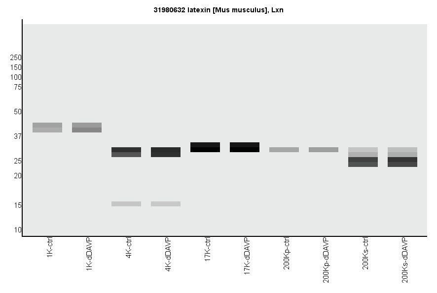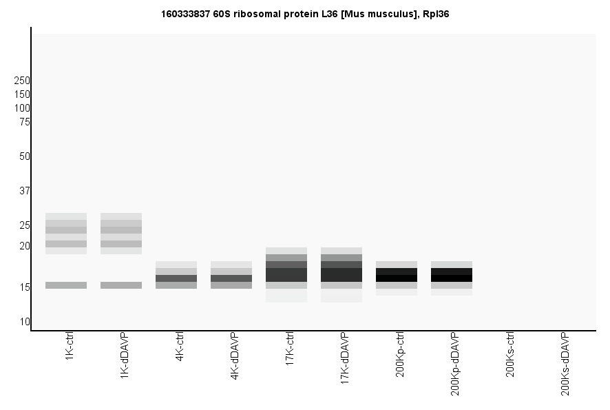 The virtual western blot images show data normalized using a logarithmic conversion scale to map peptide intensities to gray-scale levels. Using this conversion method, low-abundance peptides are generally visible in the blot images. Switch back to the default linear conversion scale database page.