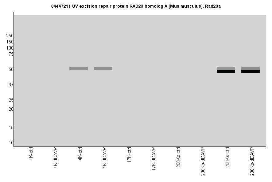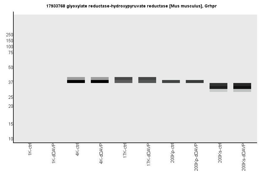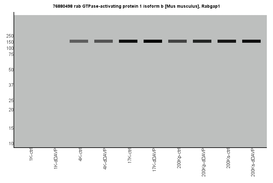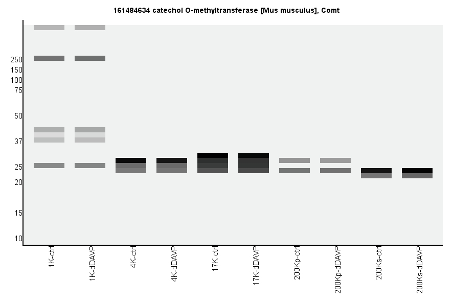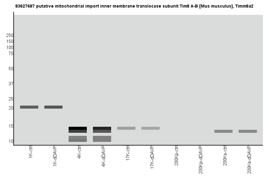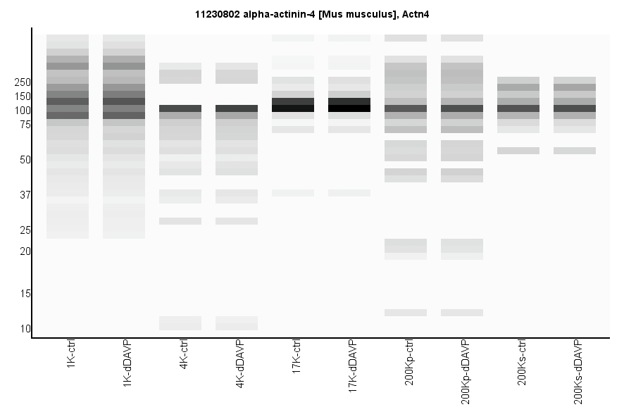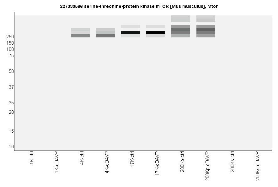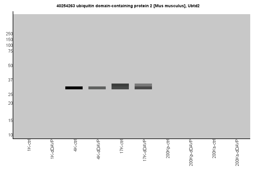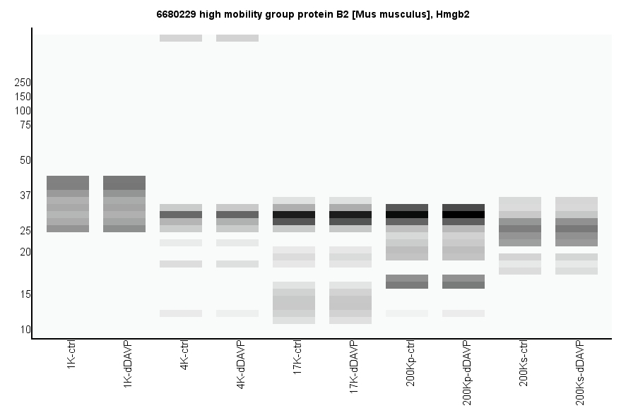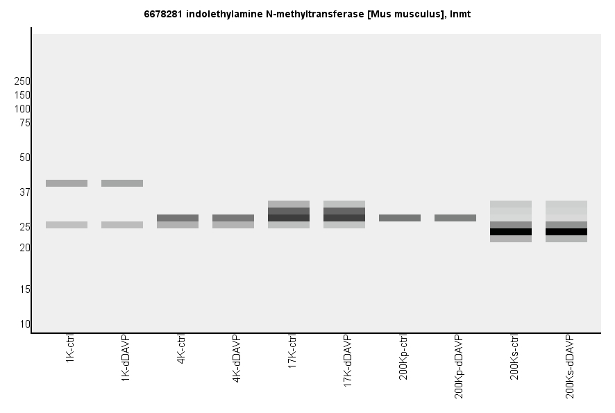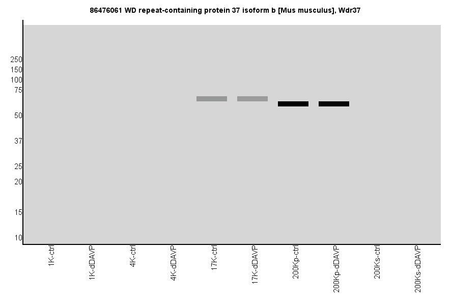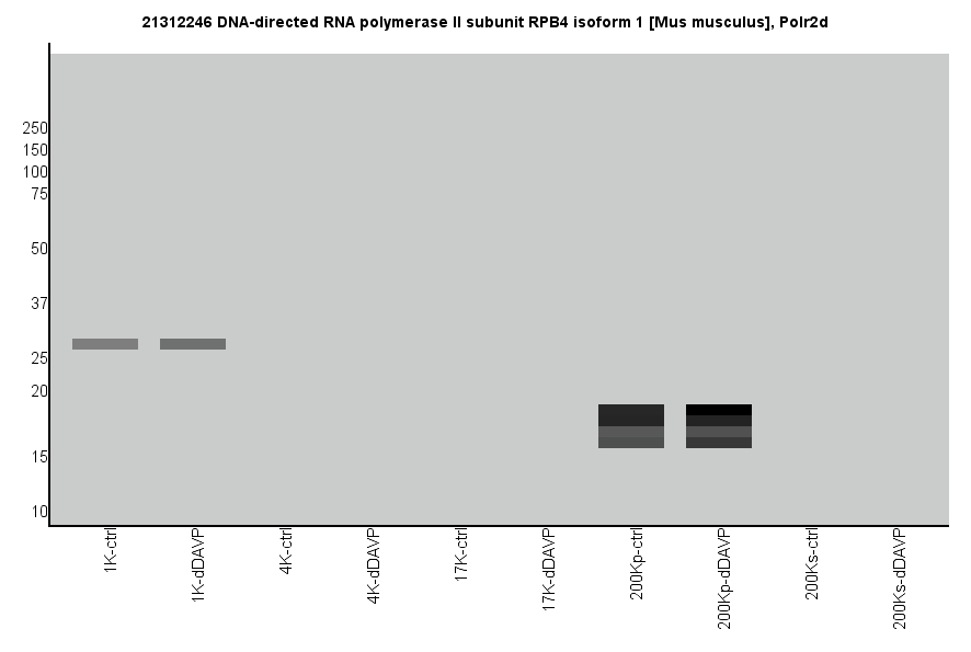 The virtual western blot images show data normalized using a logarithmic conversion scale to map peptide intensities to gray-scale levels. Using this conversion method, low-abundance peptides are generally visible in the blot images. Switch back to the default linear conversion scale database page.