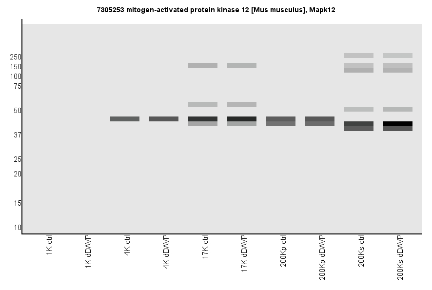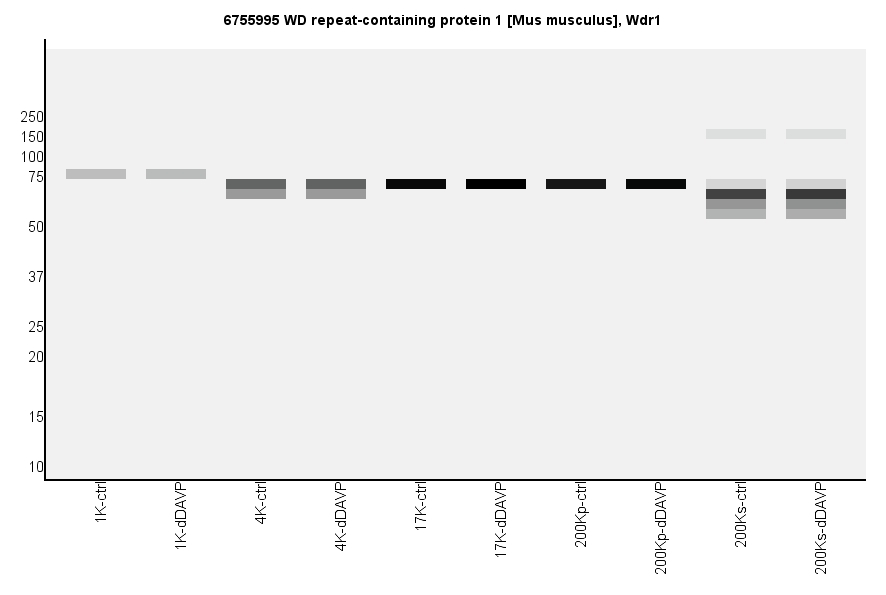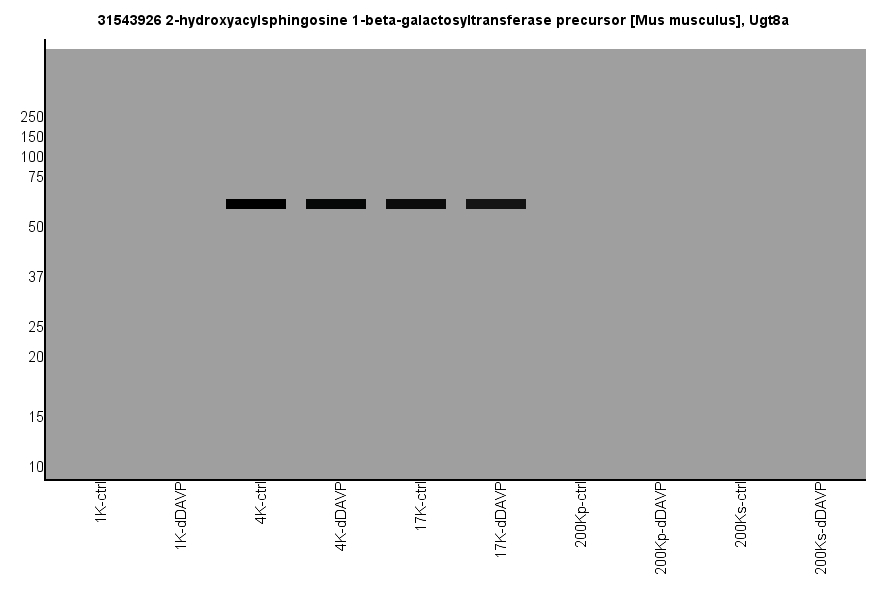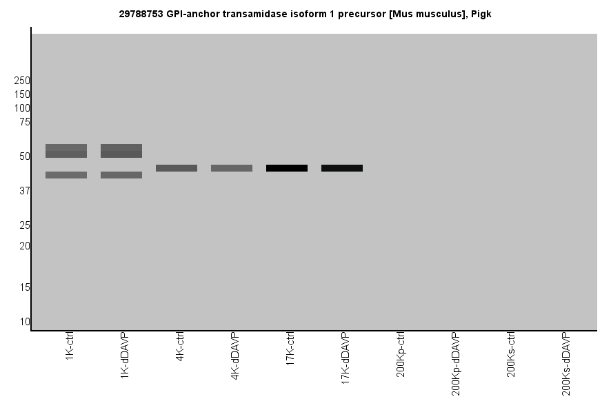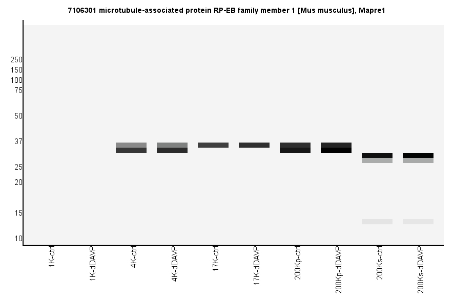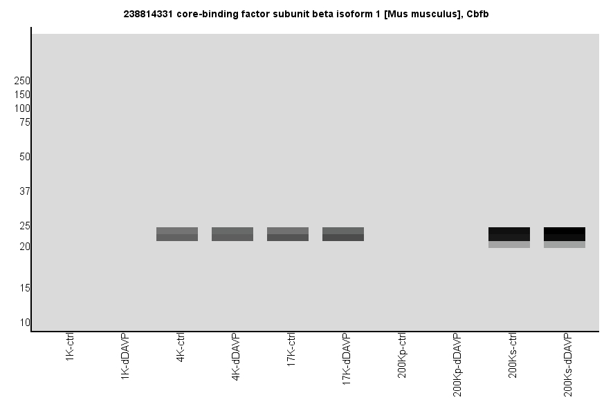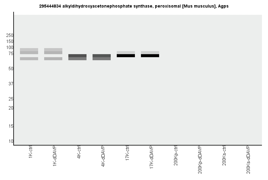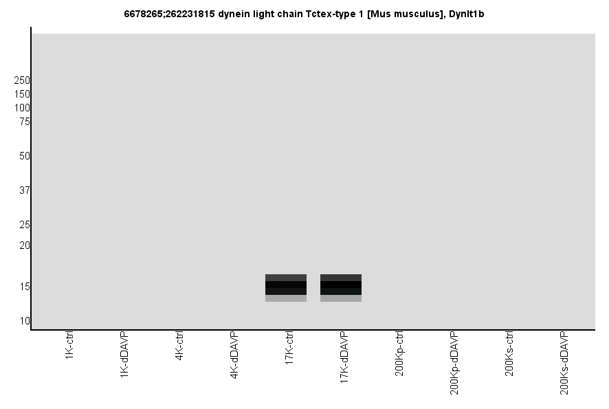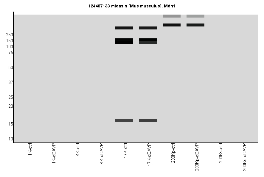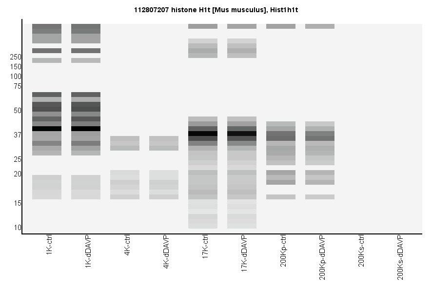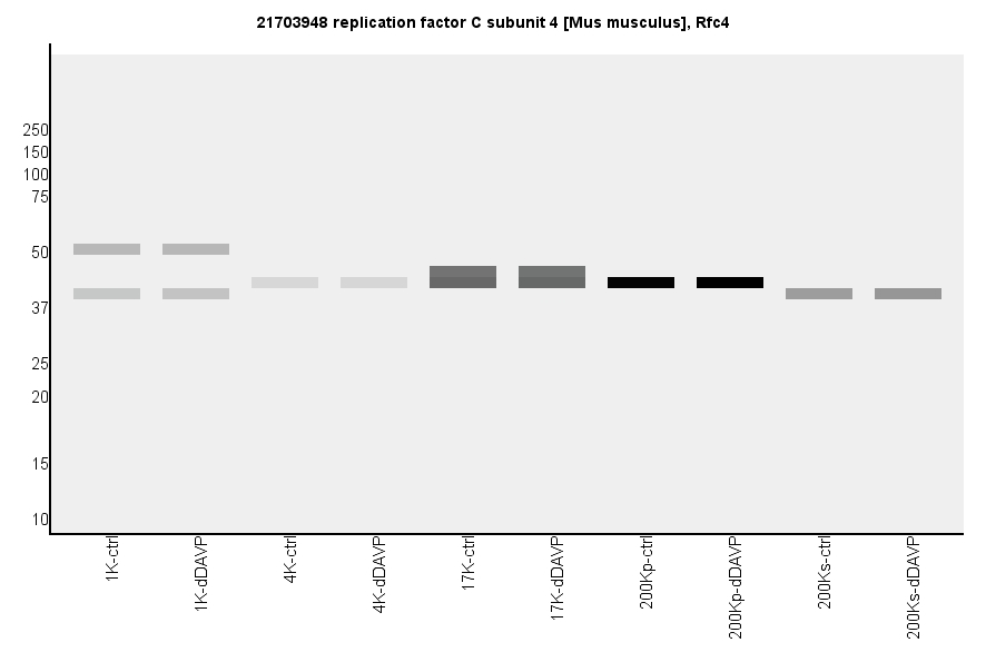 The virtual western blot images show data normalized using a logarithmic conversion scale to map peptide intensities to gray-scale levels. Using this conversion method, low-abundance peptides are generally visible in the blot images. Switch back to the default linear conversion scale database page.