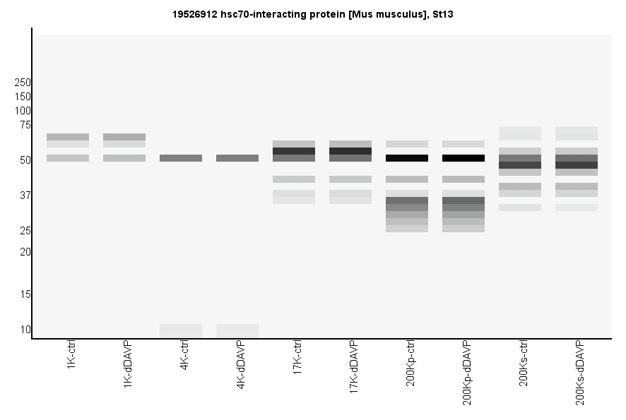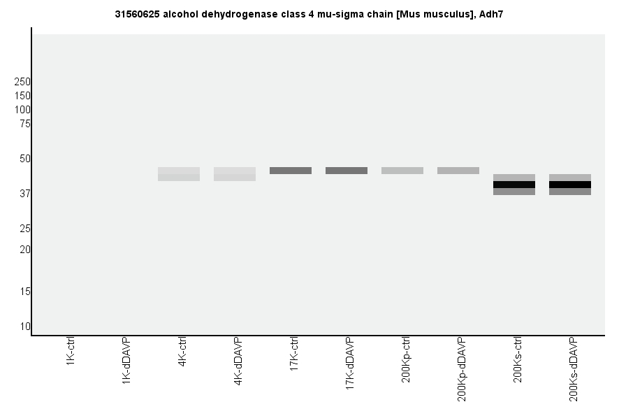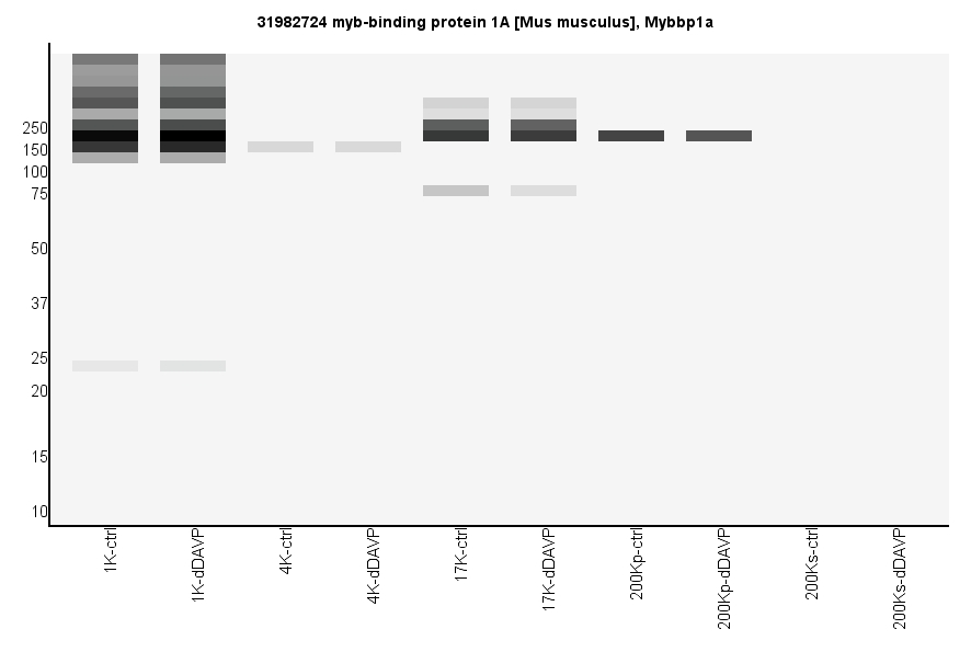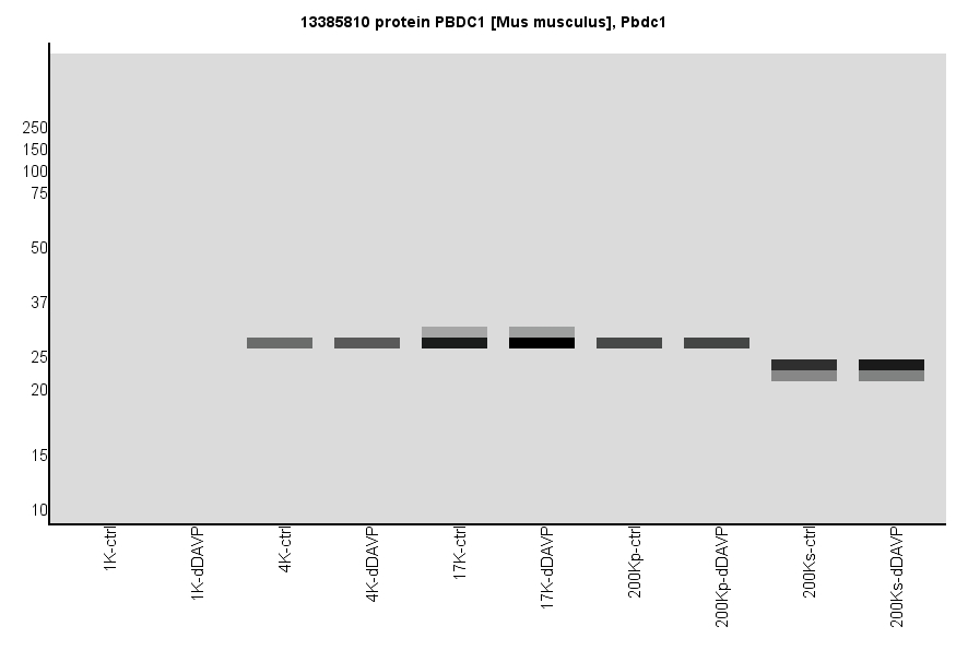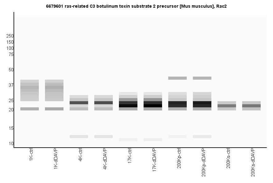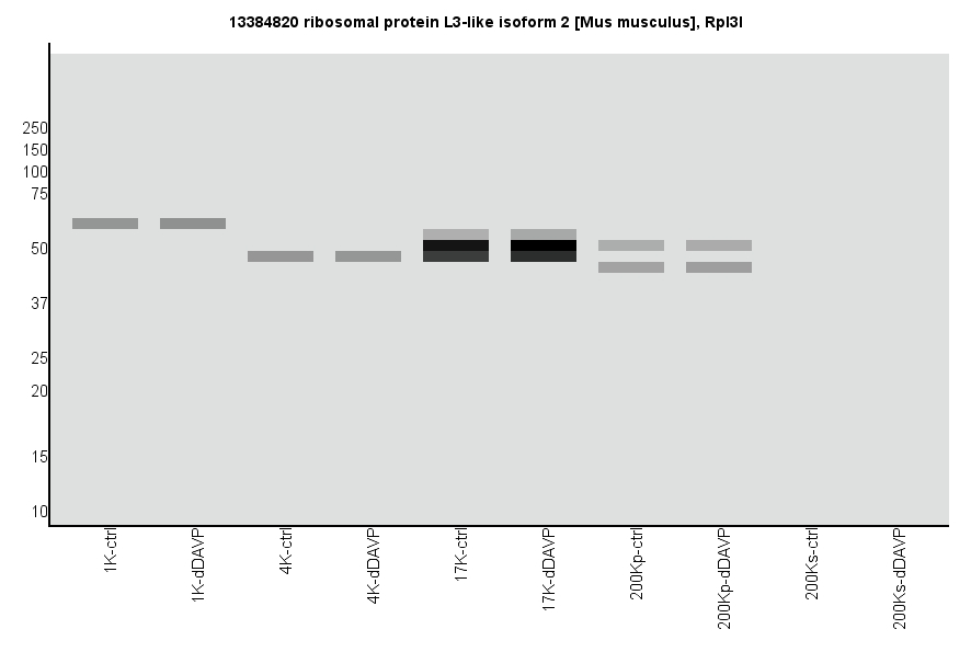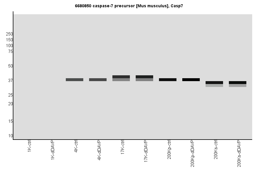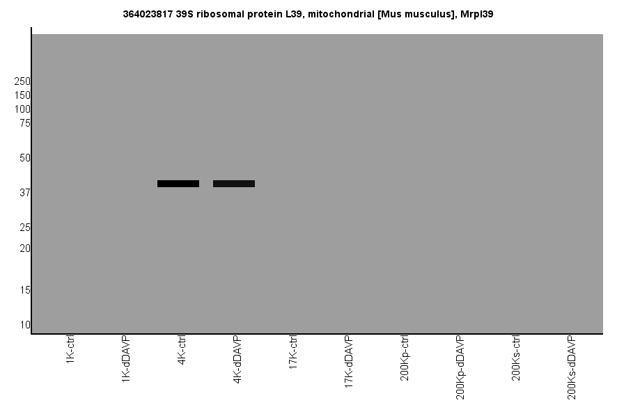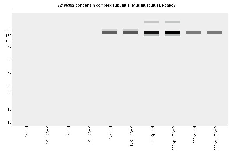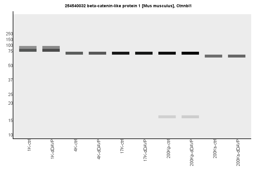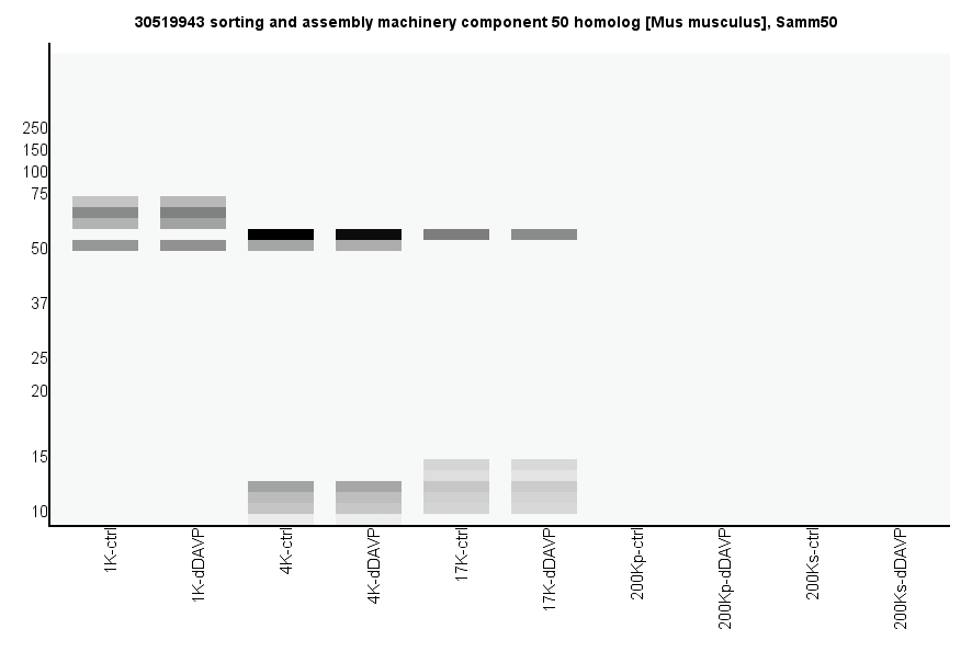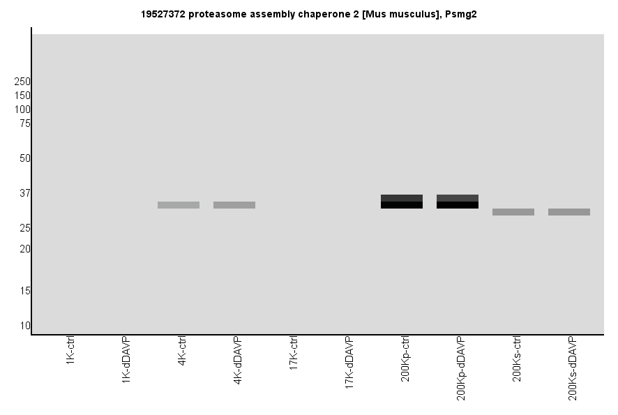The virtual western blot images show data normalized using a logarithmic conversion scale to map peptide intensities to gray-scale levels. Using this conversion method, low-abundance peptides are generally visible in the blot images. Switch back to the default linear conversion scale database page.