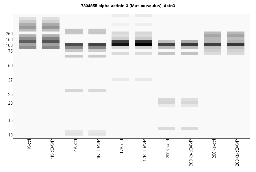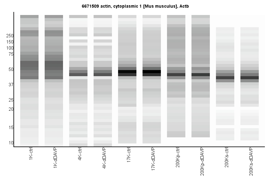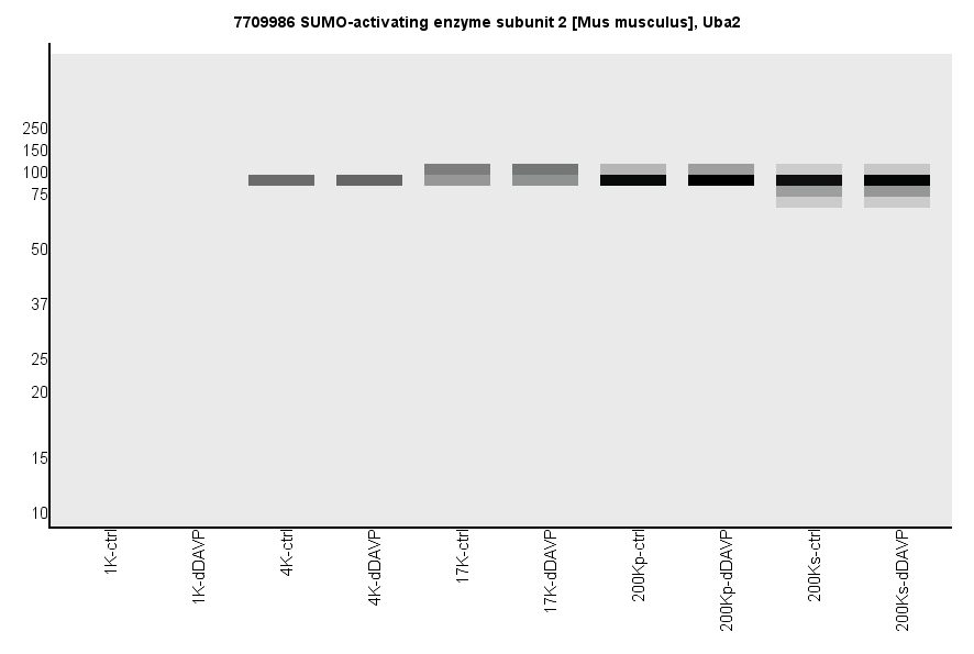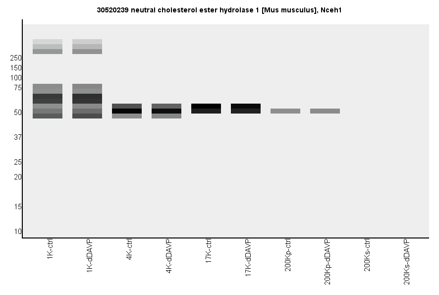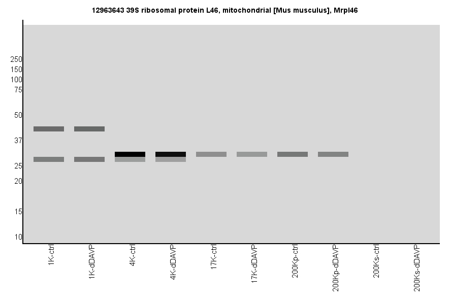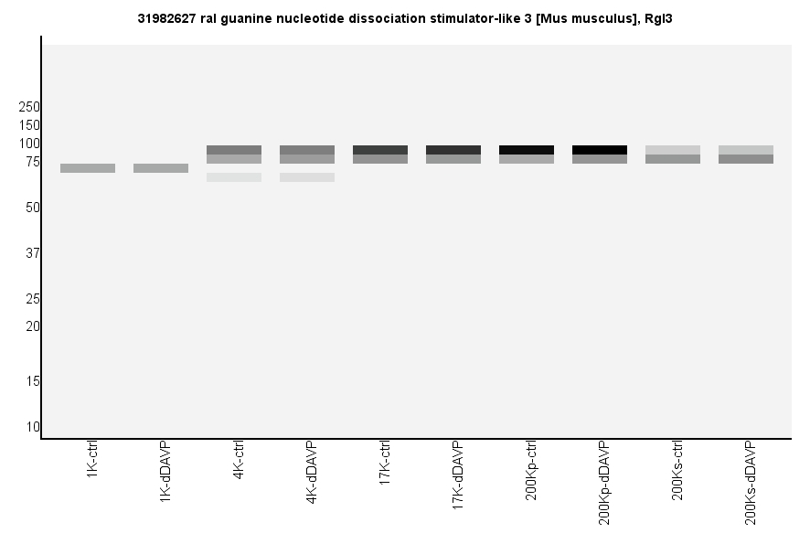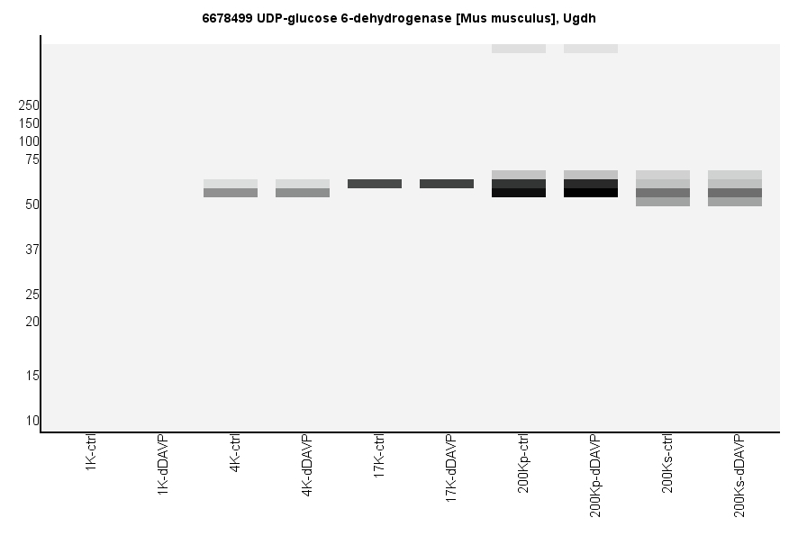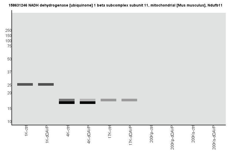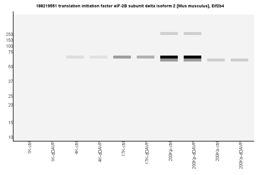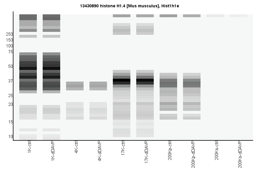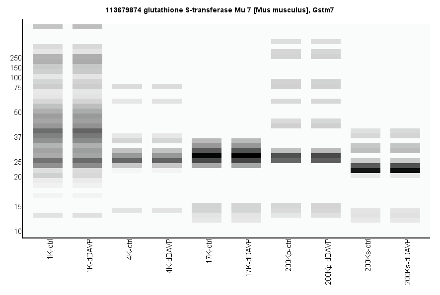 The virtual western blot images show data normalized using a logarithmic conversion scale to map peptide intensities to gray-scale levels. Using this conversion method, low-abundance peptides are generally visible in the blot images. Switch back to the default linear conversion scale database page.