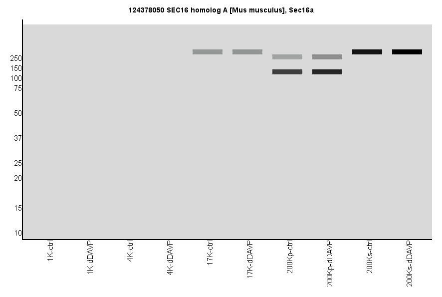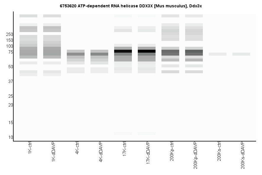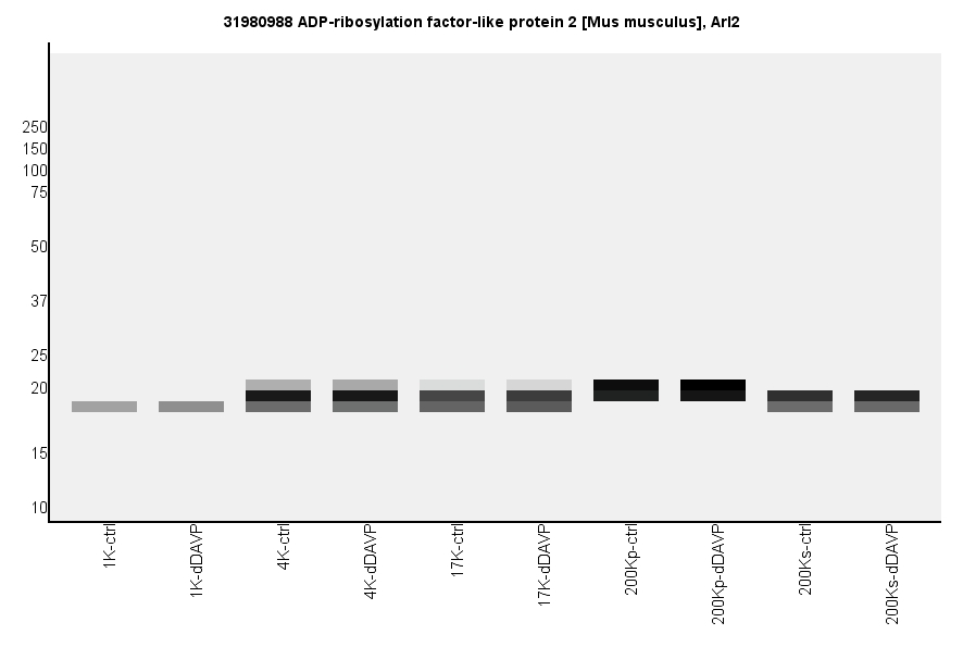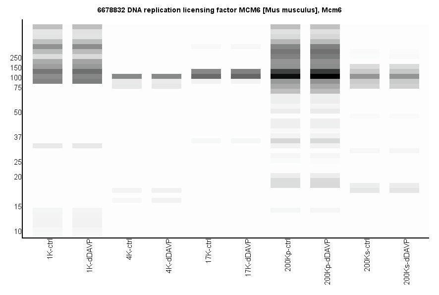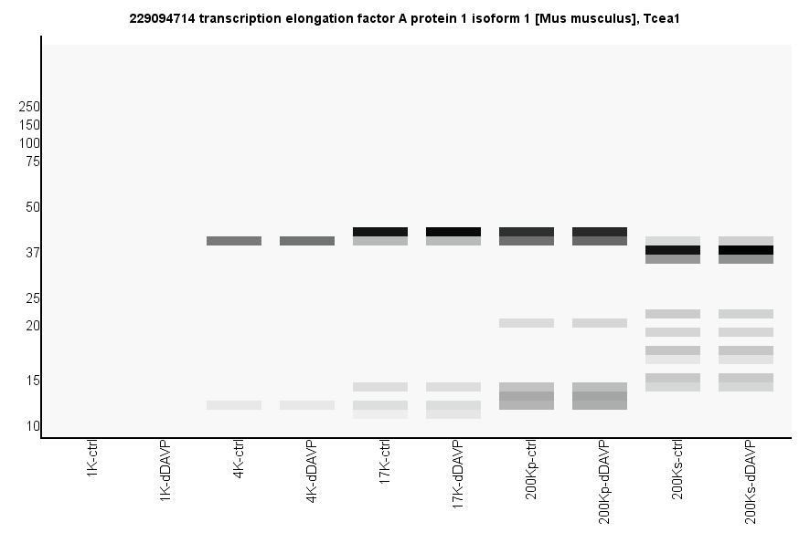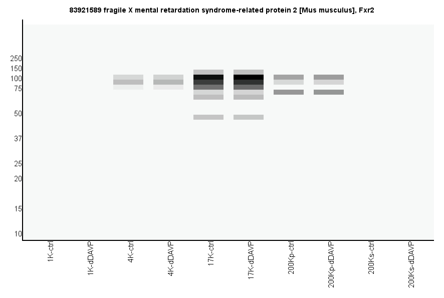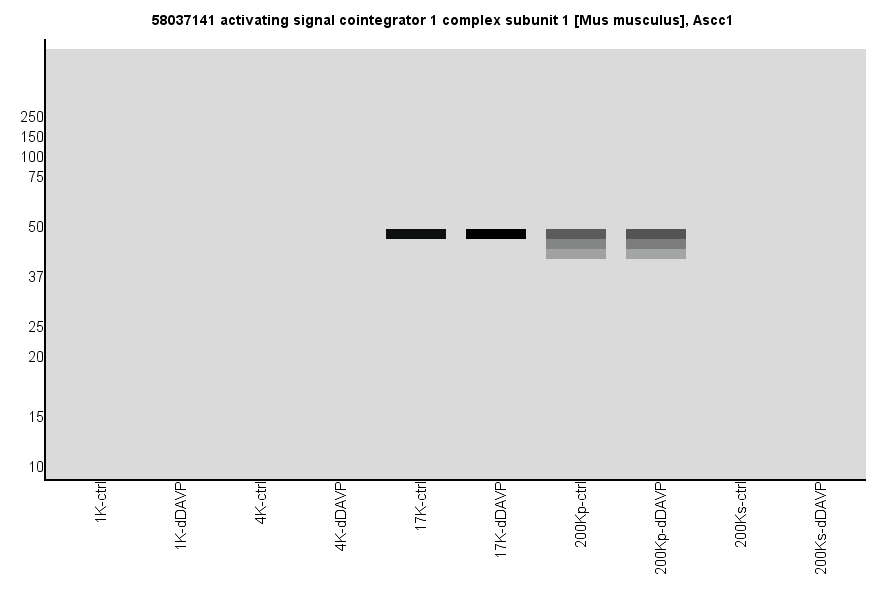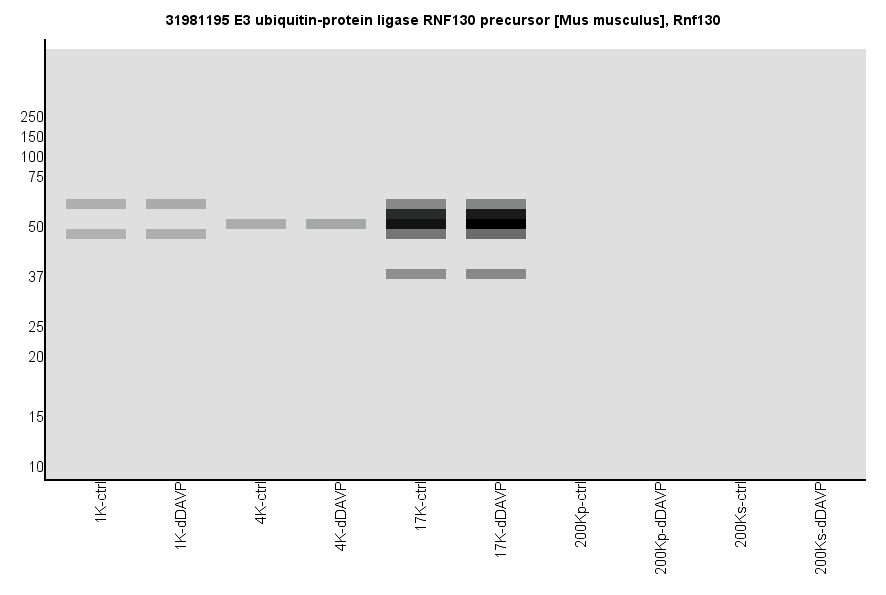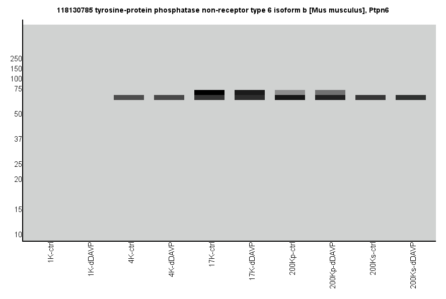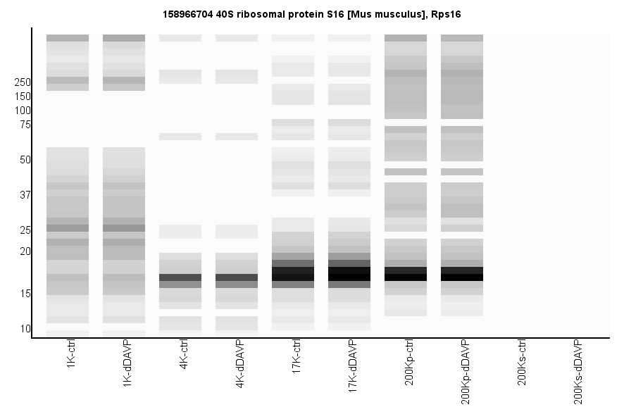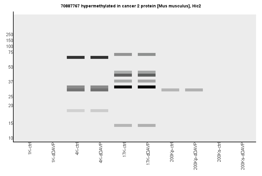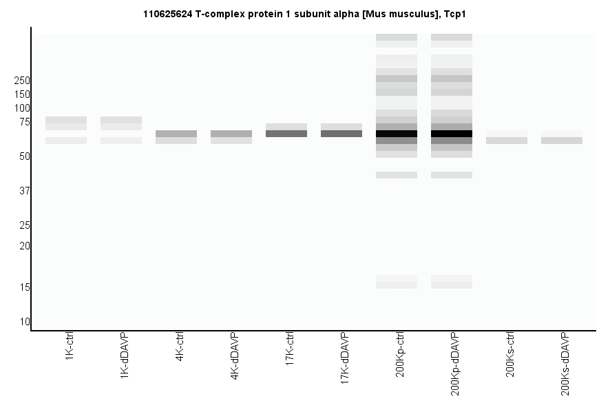 The virtual western blot images show data normalized using a logarithmic conversion scale to map peptide intensities to gray-scale levels. Using this conversion method, low-abundance peptides are generally visible in the blot images. Switch back to the default linear conversion scale database page.