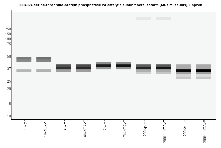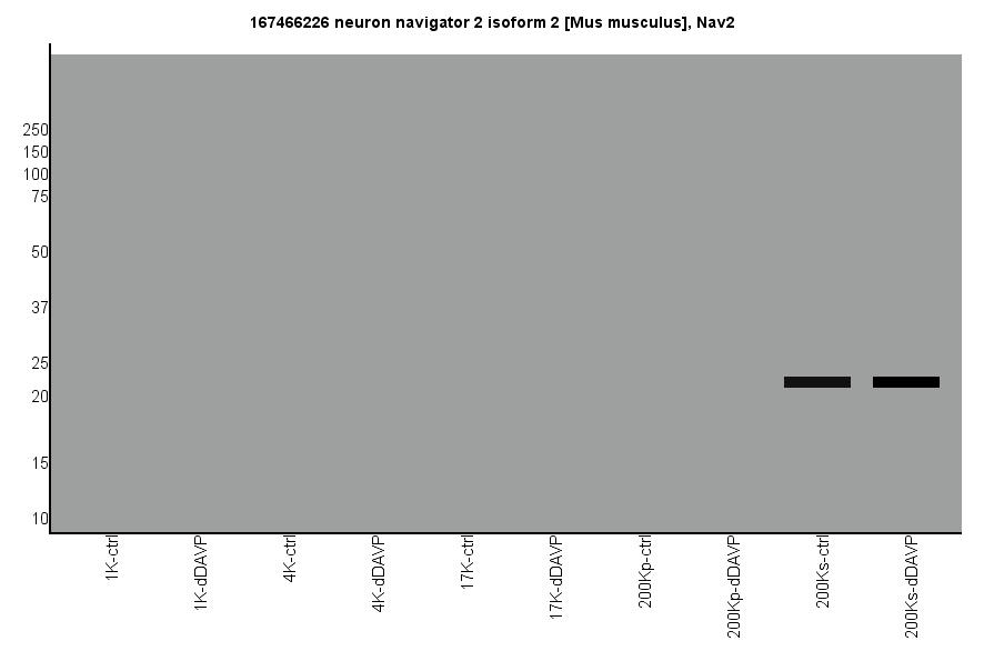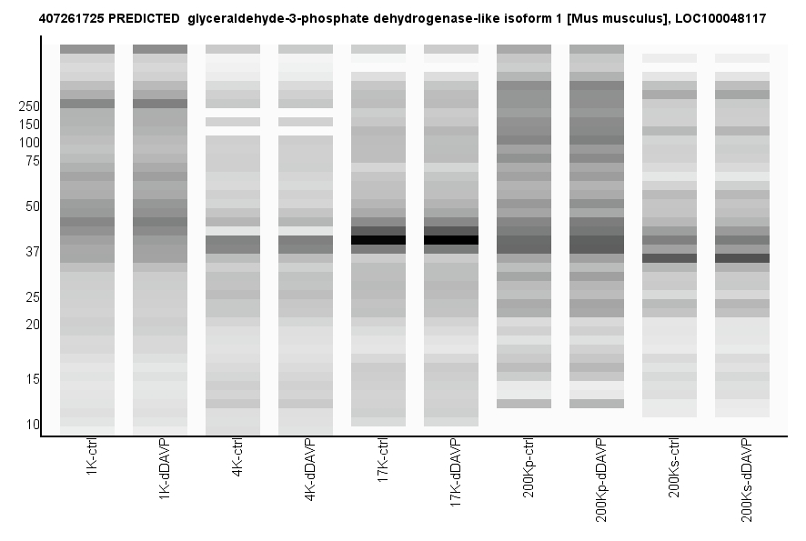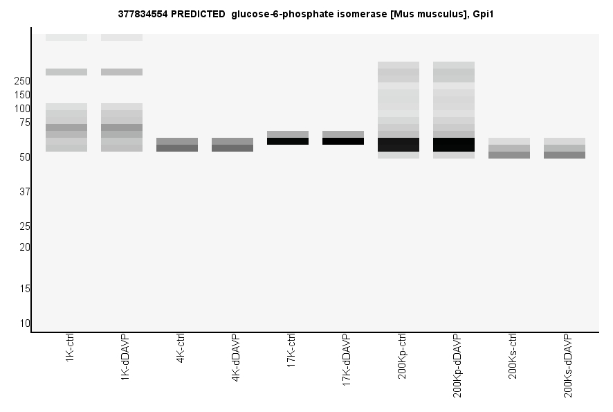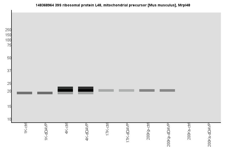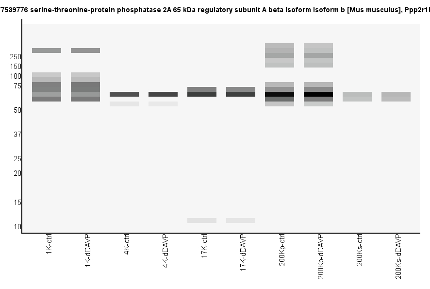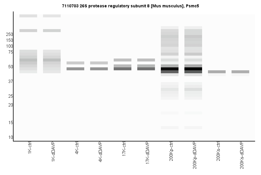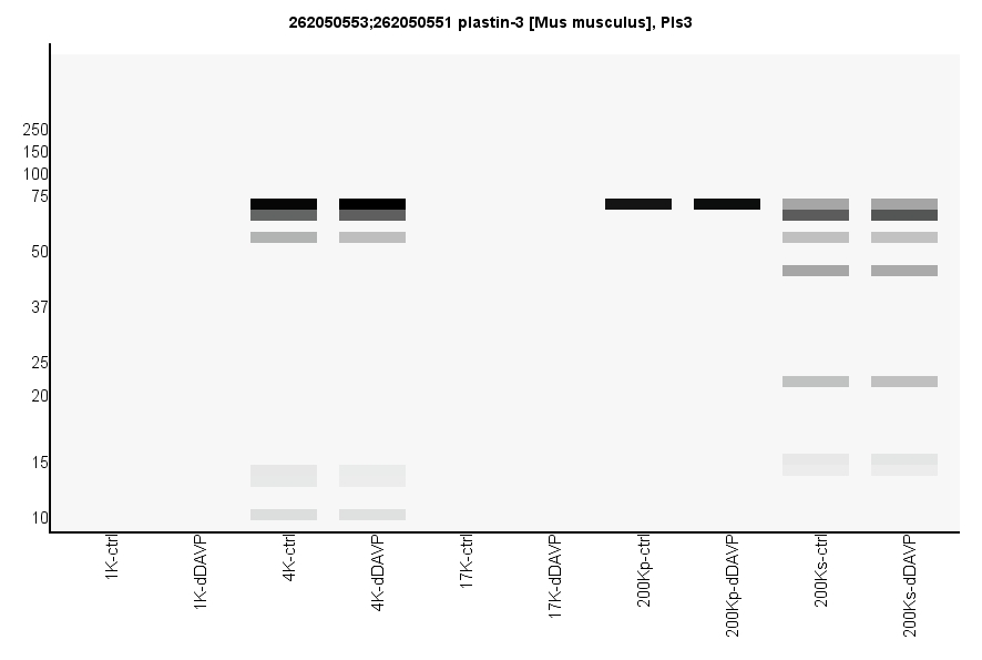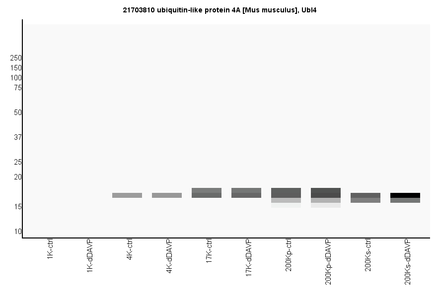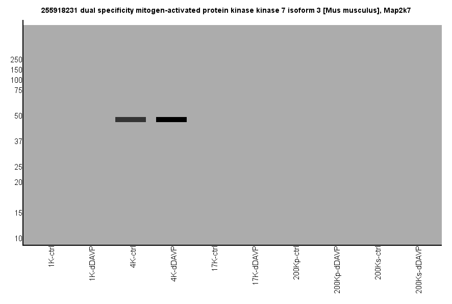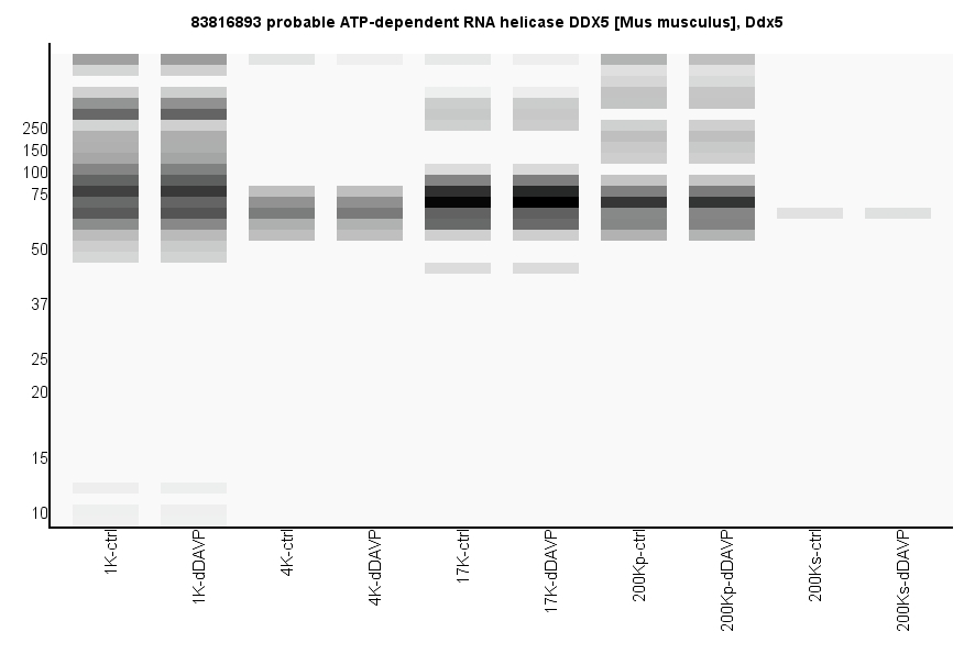 The virtual western blot images show data normalized using a logarithmic conversion scale to map peptide intensities to gray-scale levels. Using this conversion method, low-abundance peptides are generally visible in the blot images. Switch back to the default linear conversion scale database page.
