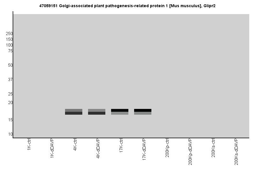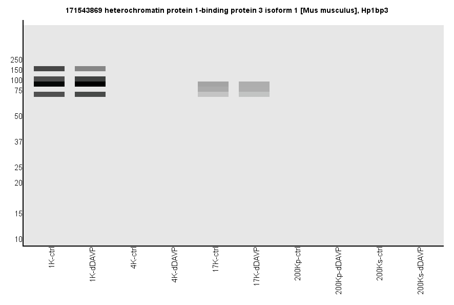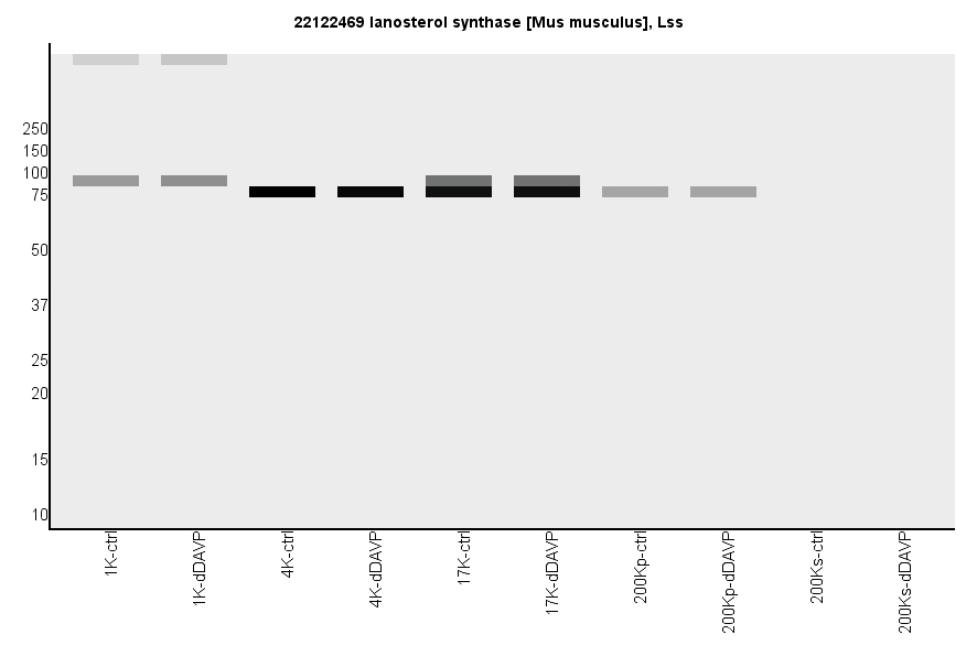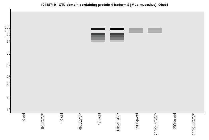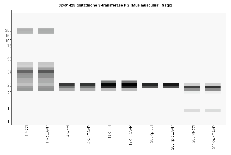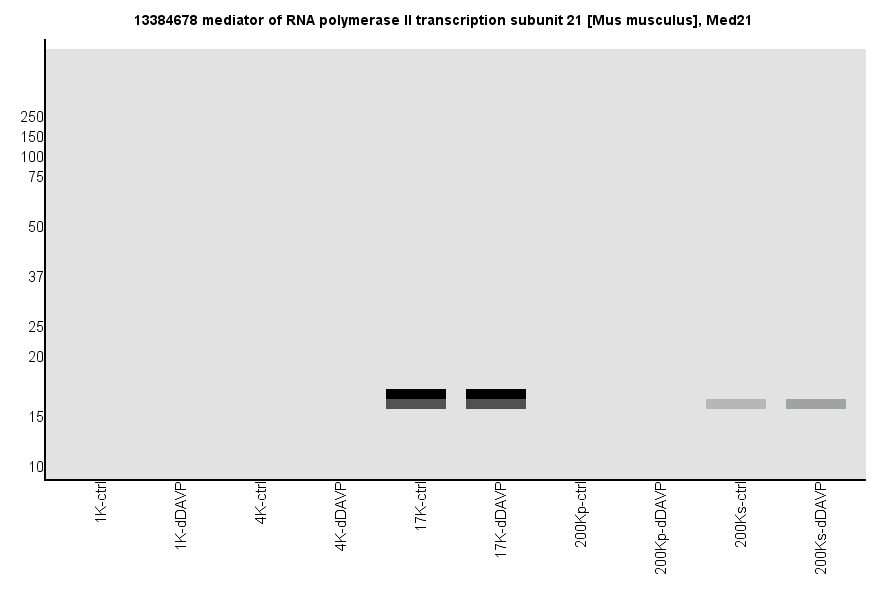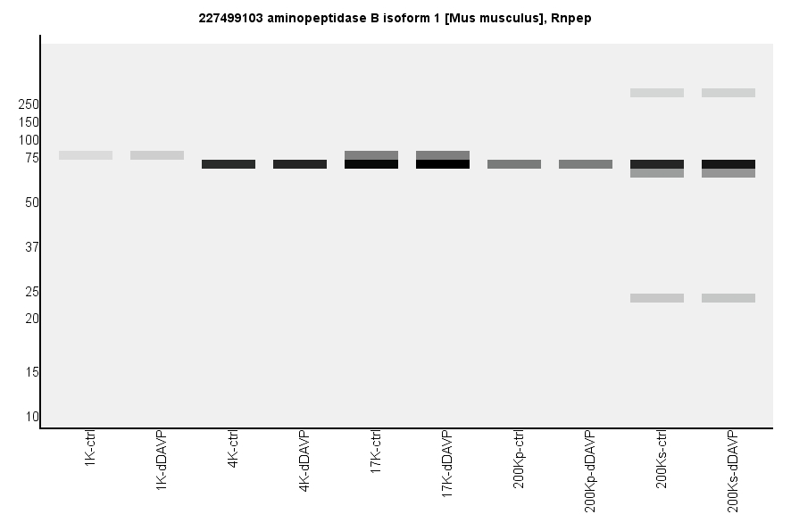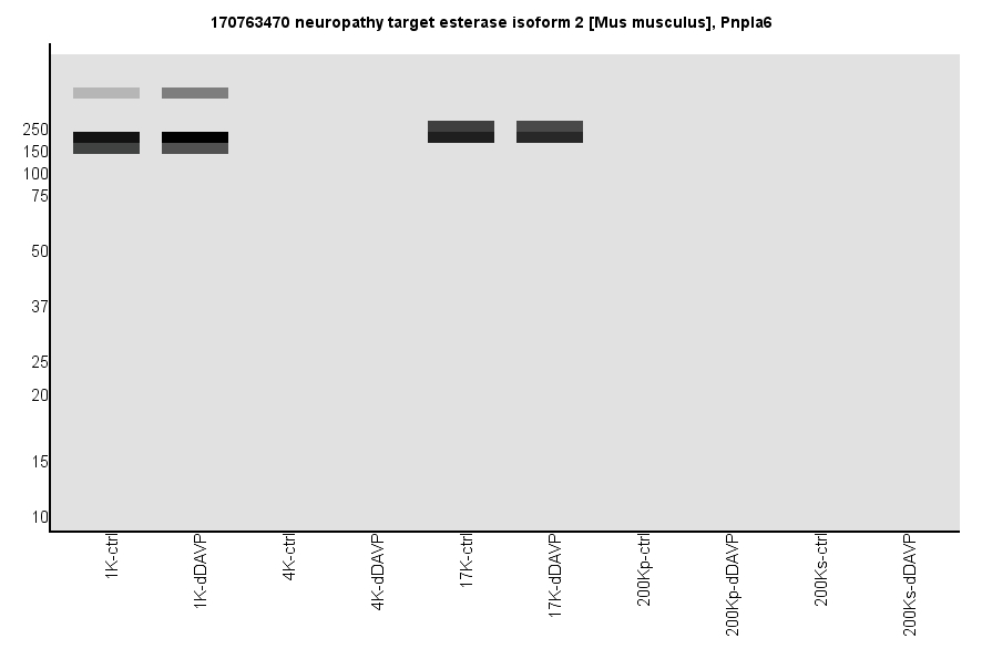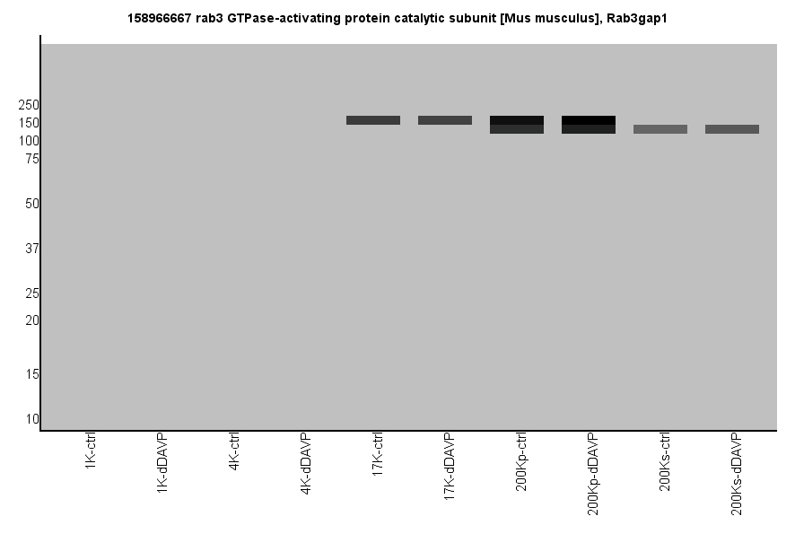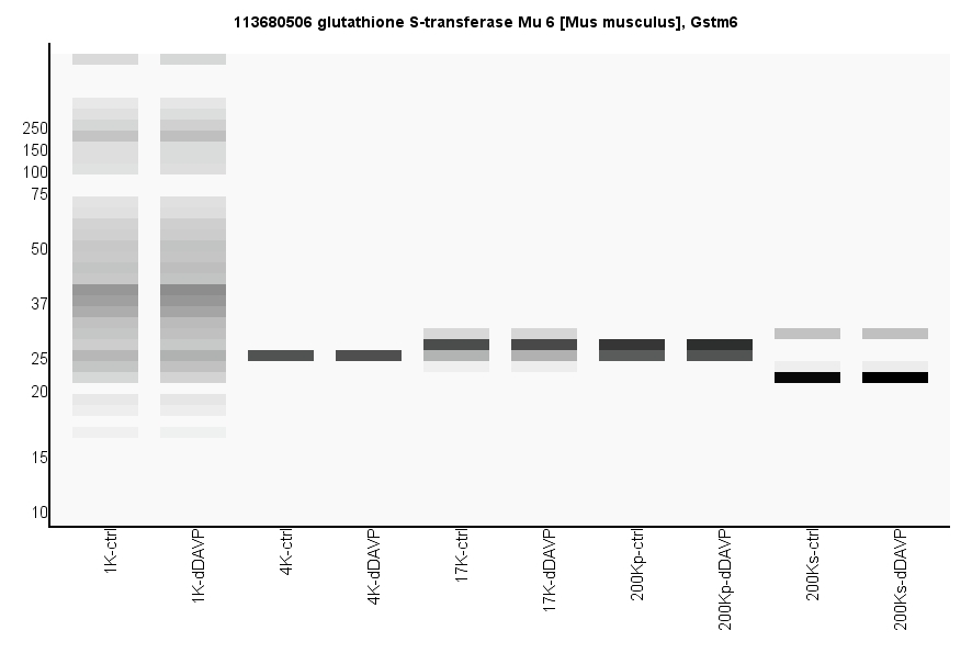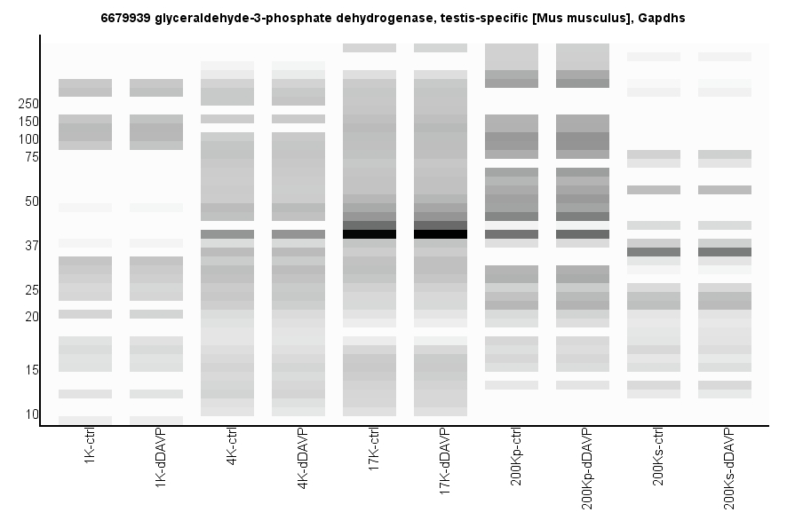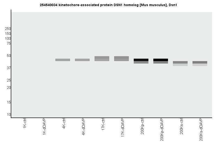 The virtual western blot images show data normalized using a logarithmic conversion scale to map peptide intensities to gray-scale levels. Using this conversion method, low-abundance peptides are generally visible in the blot images. Switch back to the default linear conversion scale database page.
