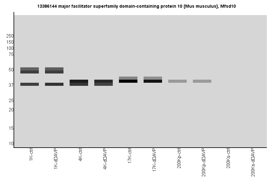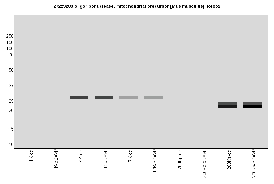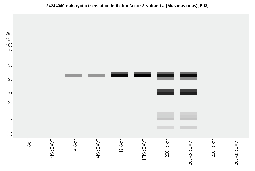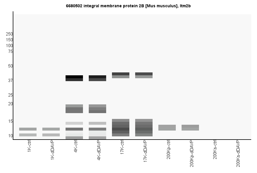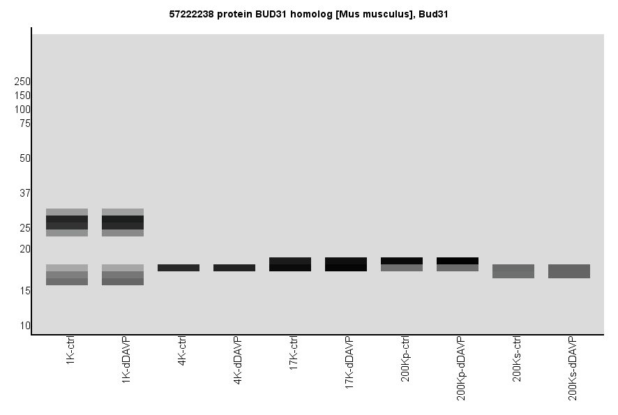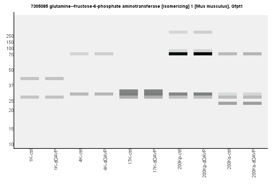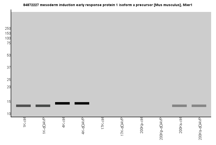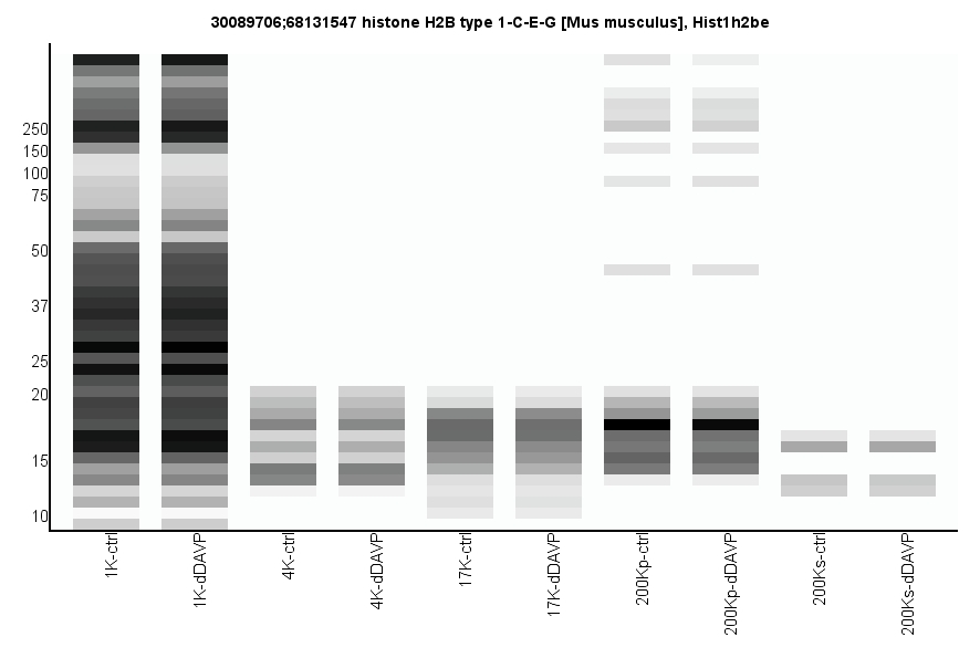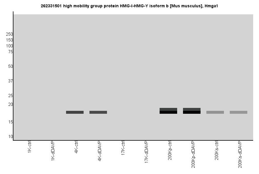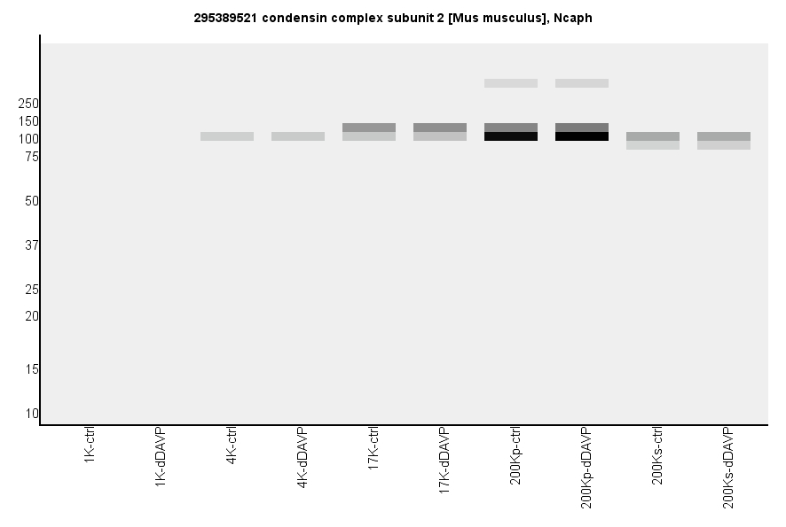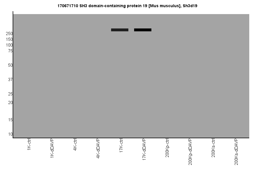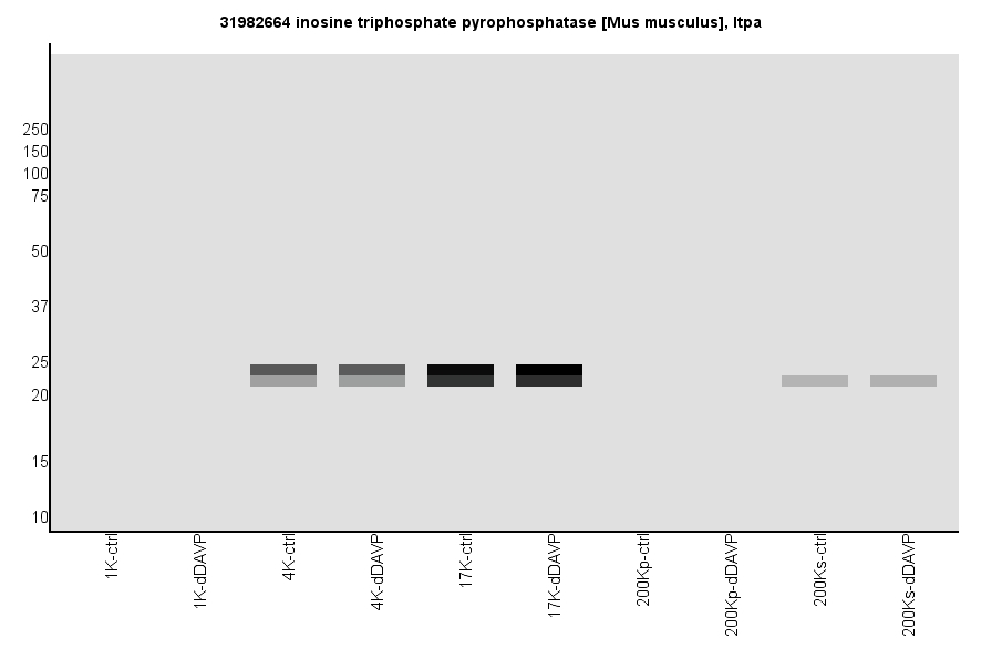 The virtual western blot images show data normalized using a logarithmic conversion scale to map peptide intensities to gray-scale levels. Using this conversion method, low-abundance peptides are generally visible in the blot images. Switch back to the default linear conversion scale database page.