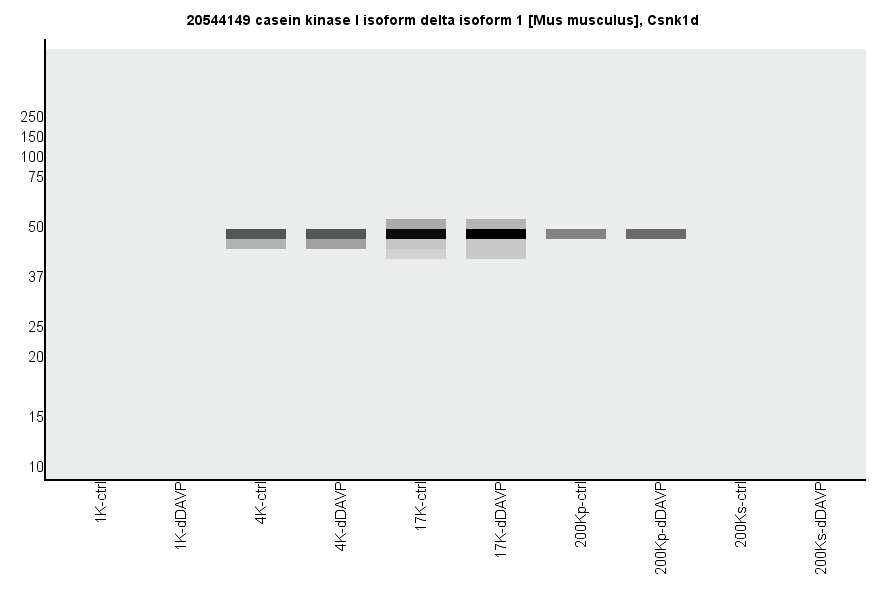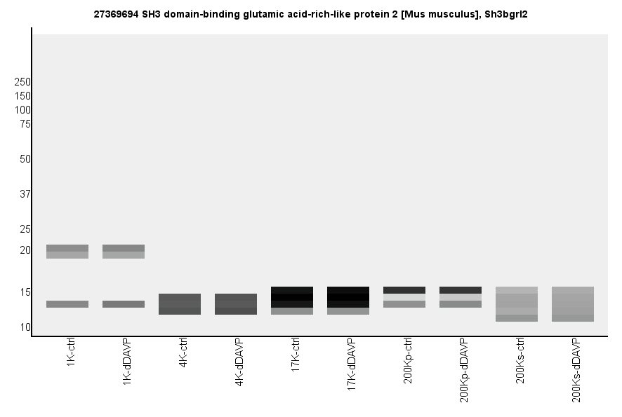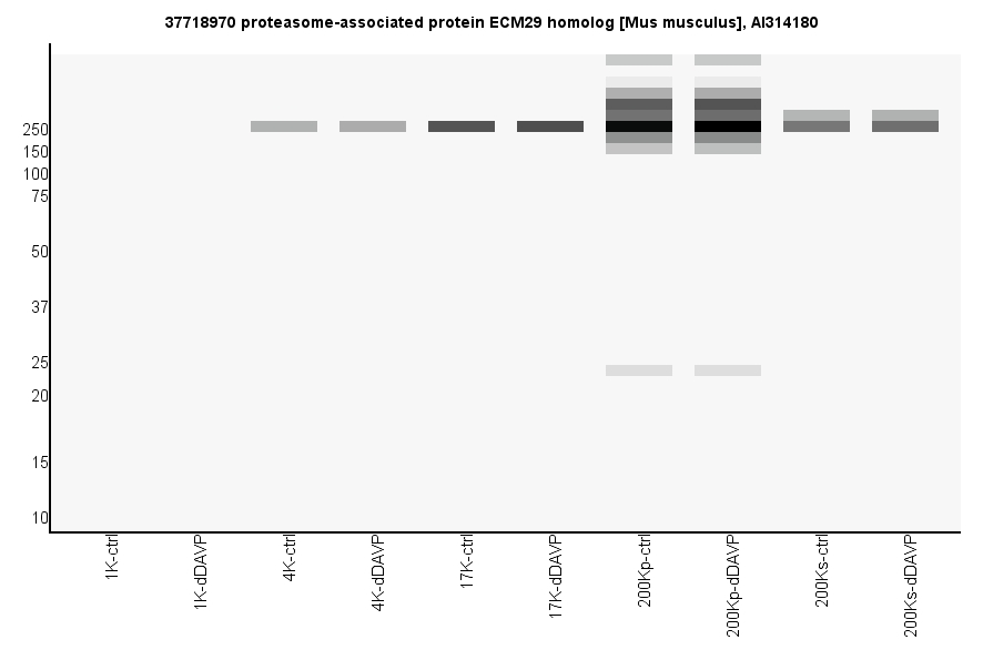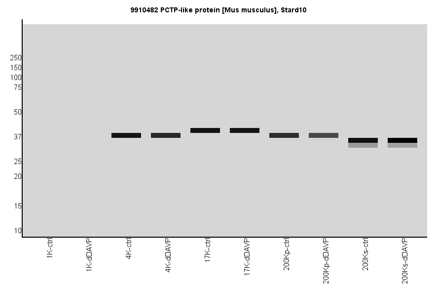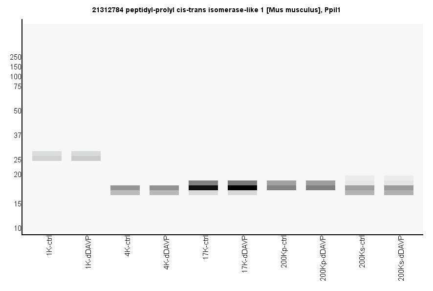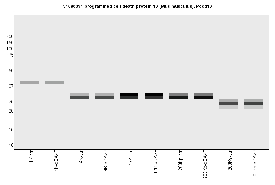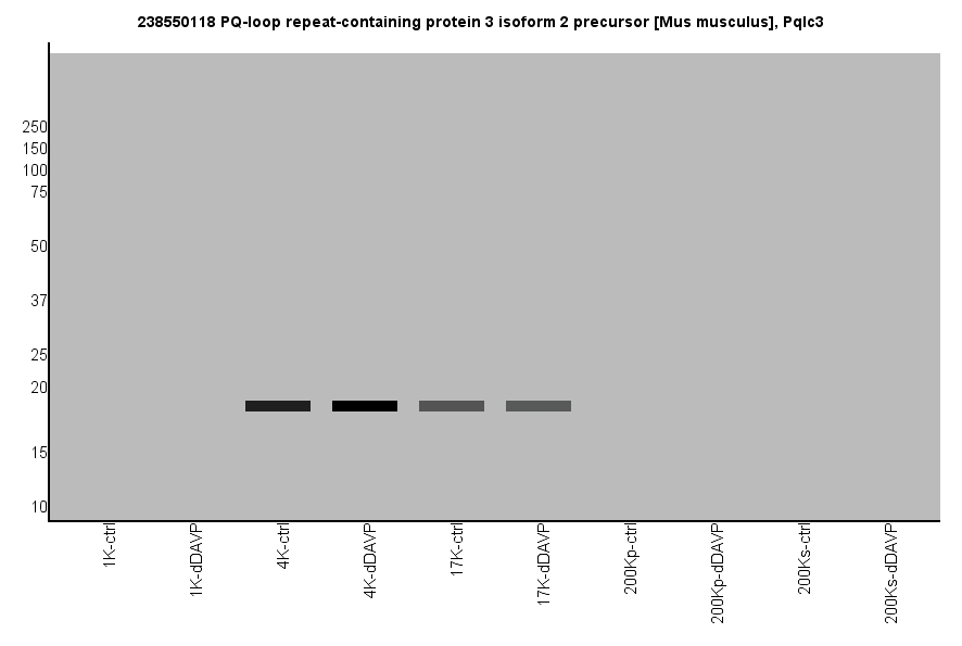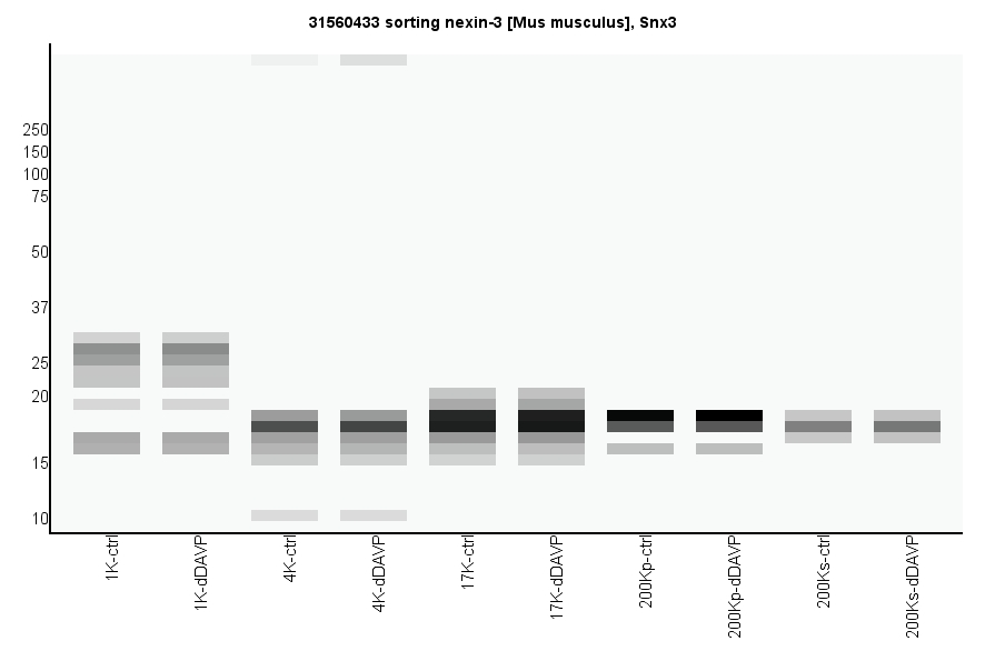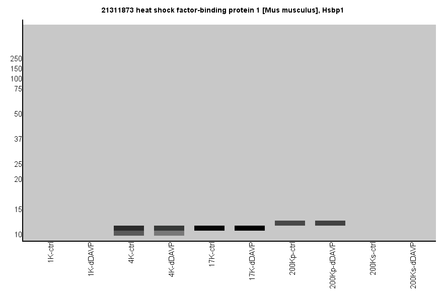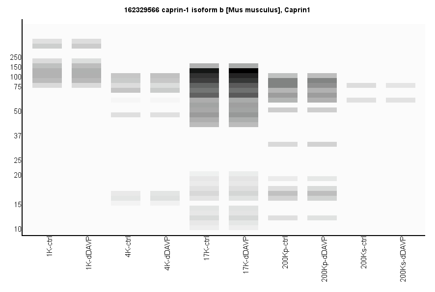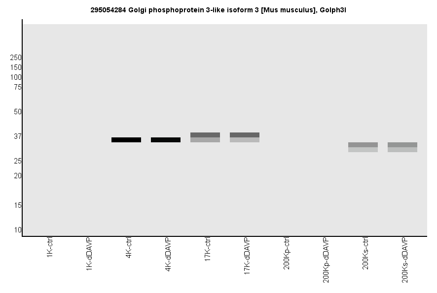 The virtual western blot images show data normalized using a logarithmic conversion scale to map peptide intensities to gray-scale levels. Using this conversion method, low-abundance peptides are generally visible in the blot images. Switch back to the default linear conversion scale database page.