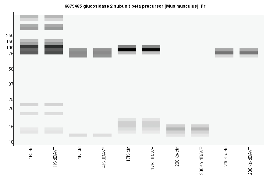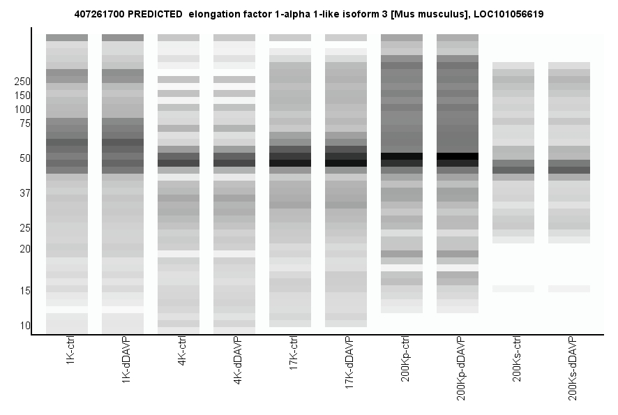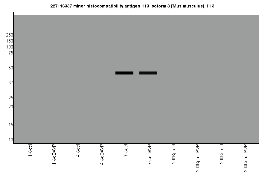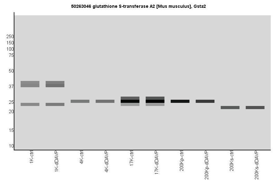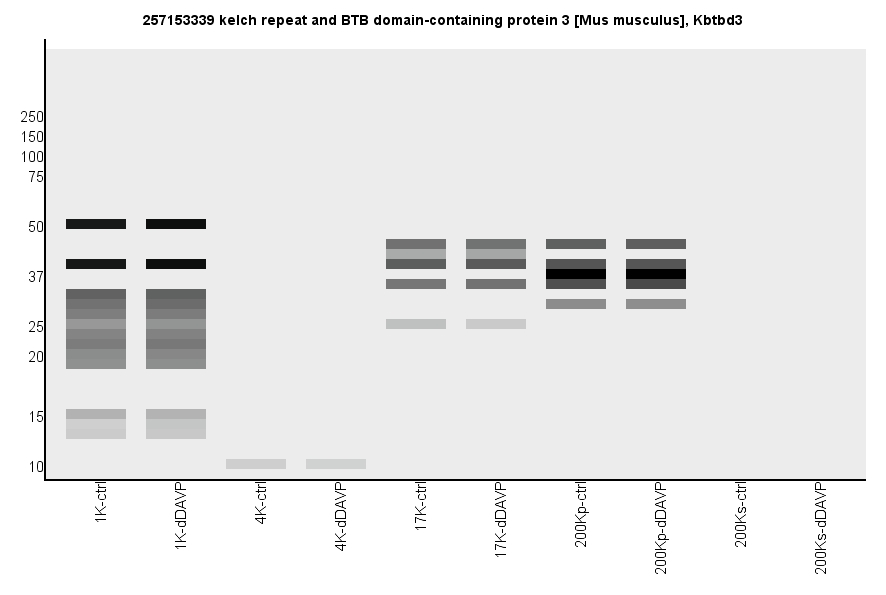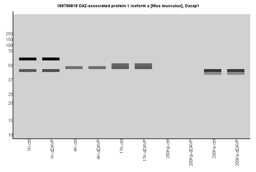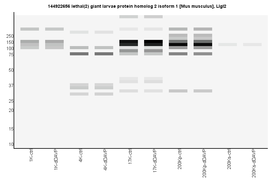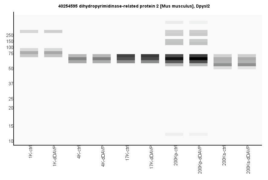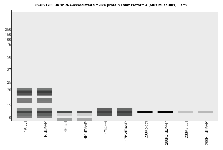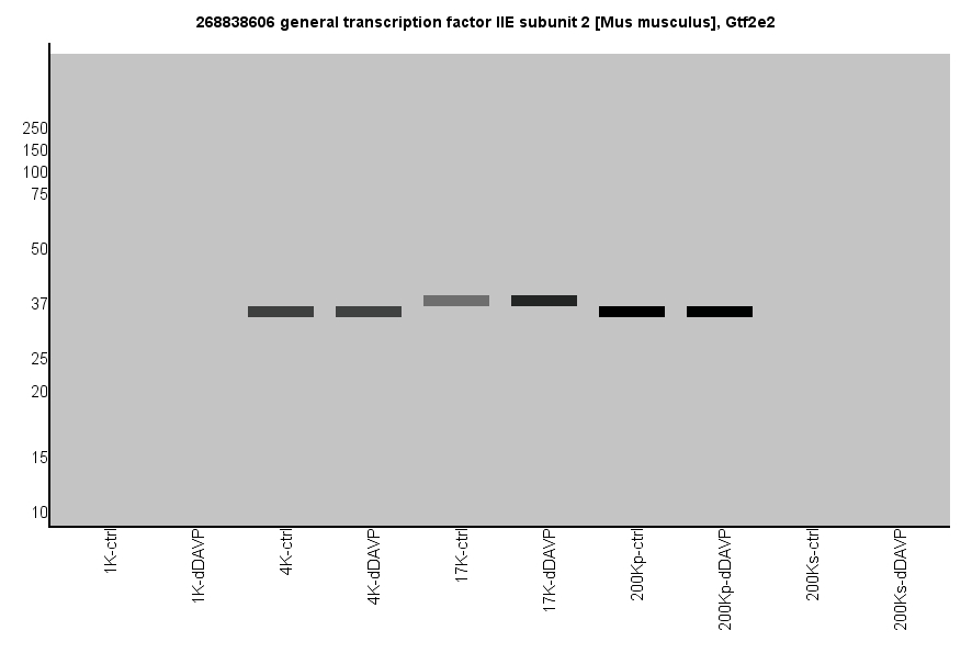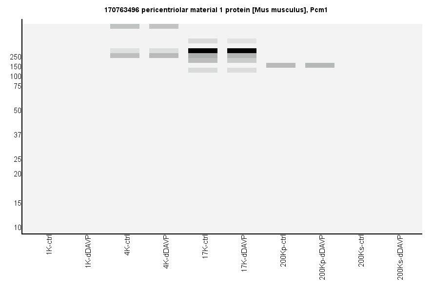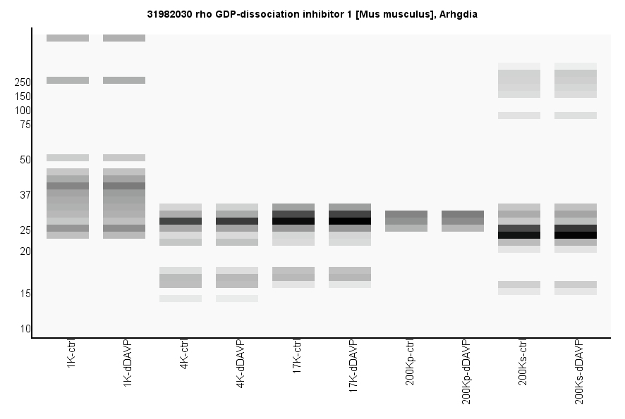 The virtual western blot images show data normalized using a logarithmic conversion scale to map peptide intensities to gray-scale levels. Using this conversion method, low-abundance peptides are generally visible in the blot images. Switch back to the default linear conversion scale database page.