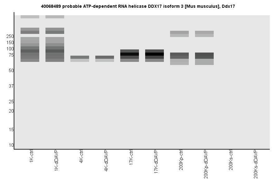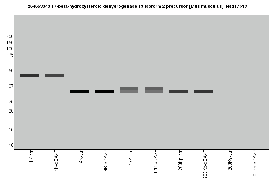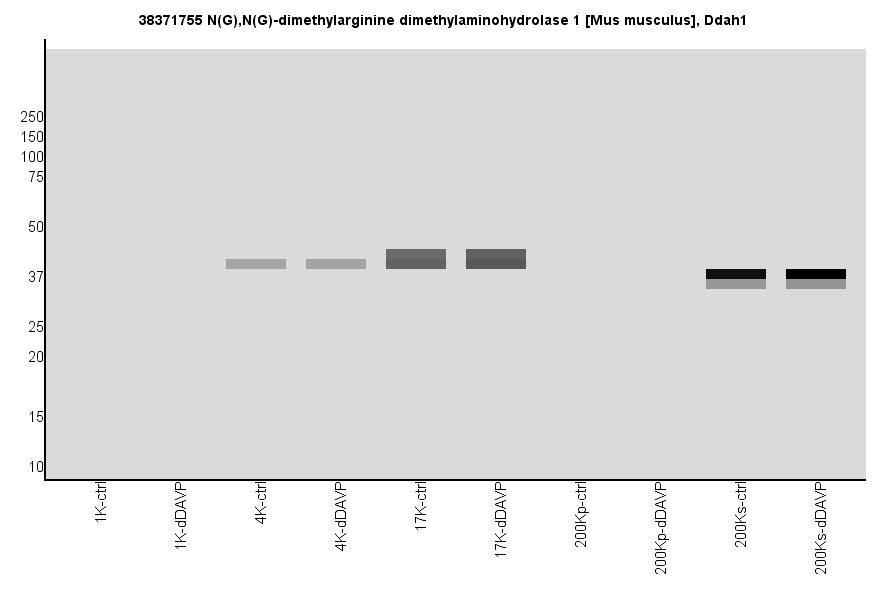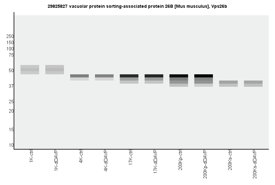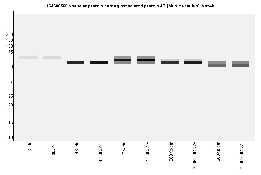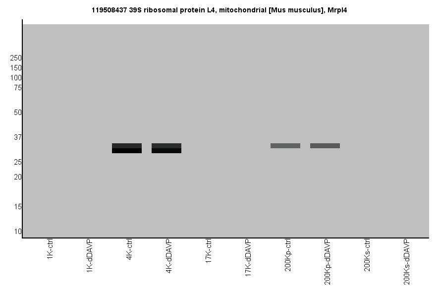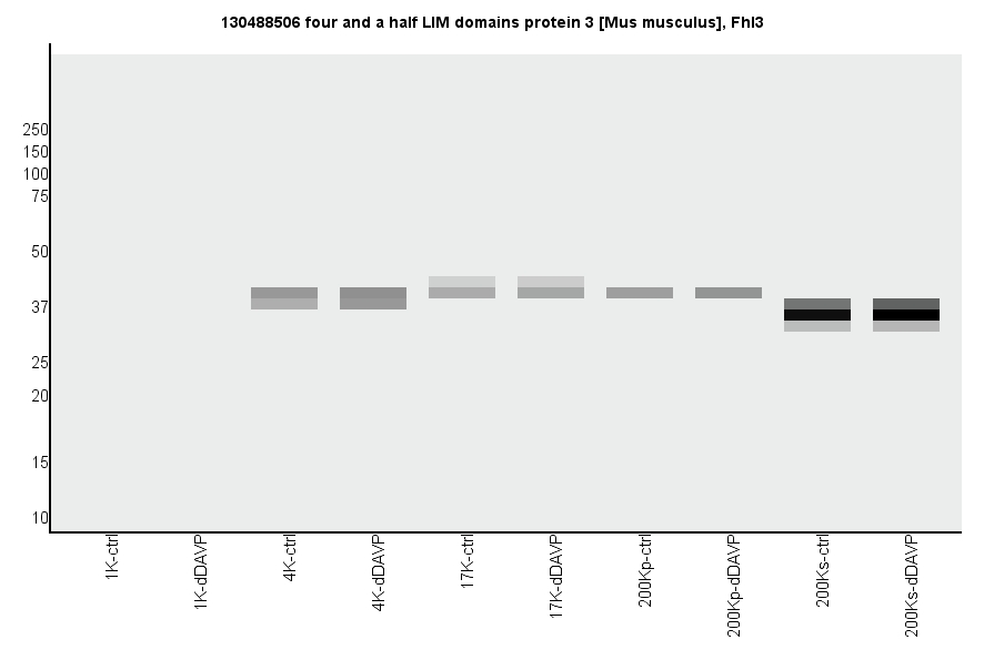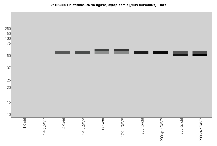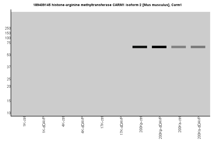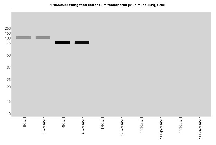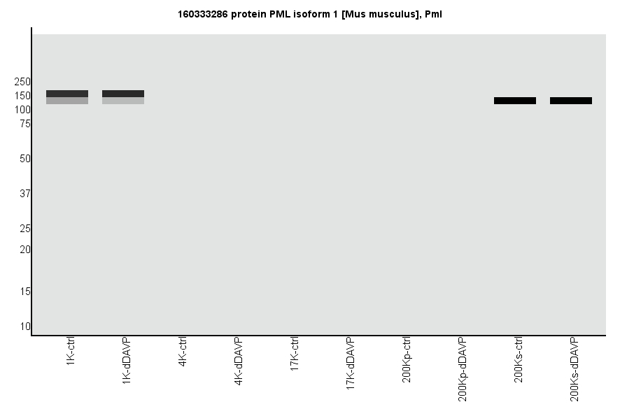 The virtual western blot images show data normalized using a logarithmic conversion scale to map peptide intensities to gray-scale levels. Using this conversion method, low-abundance peptides are generally visible in the blot images. Switch back to the default linear conversion scale database page.