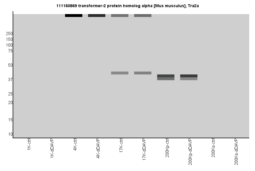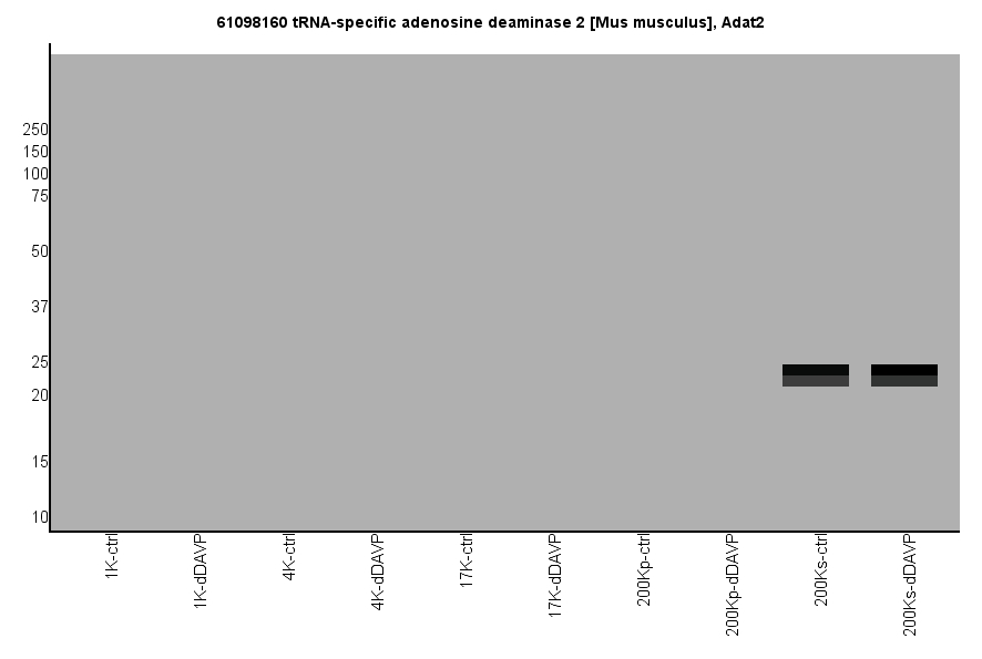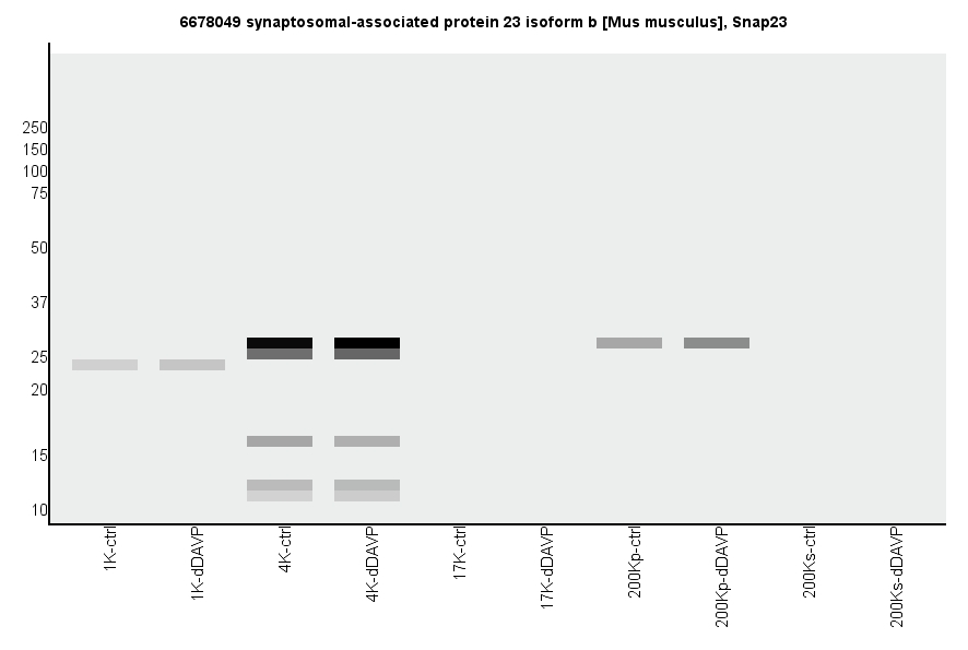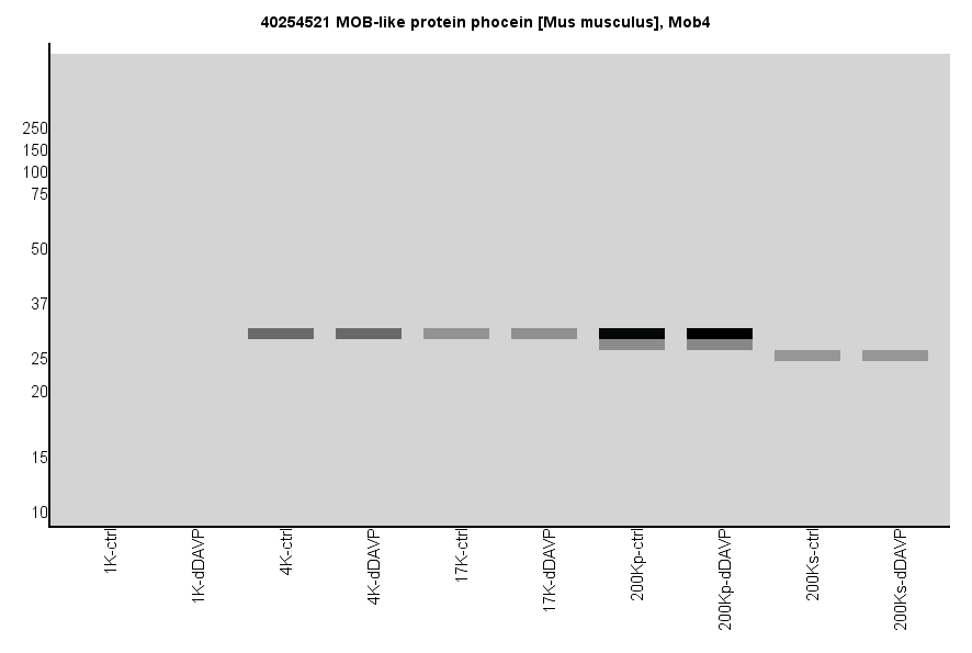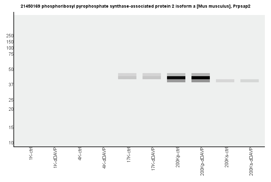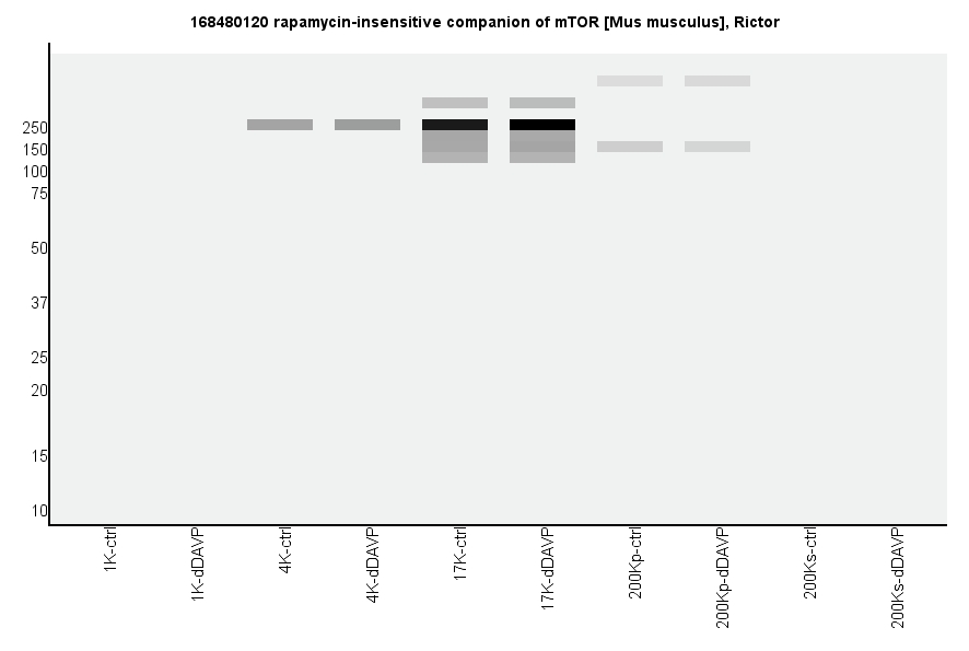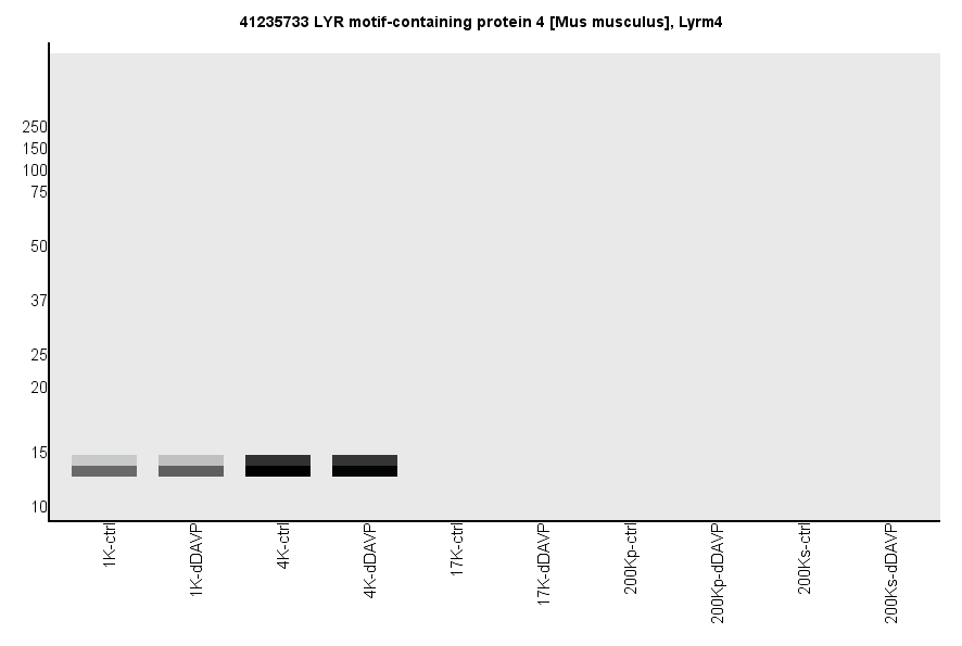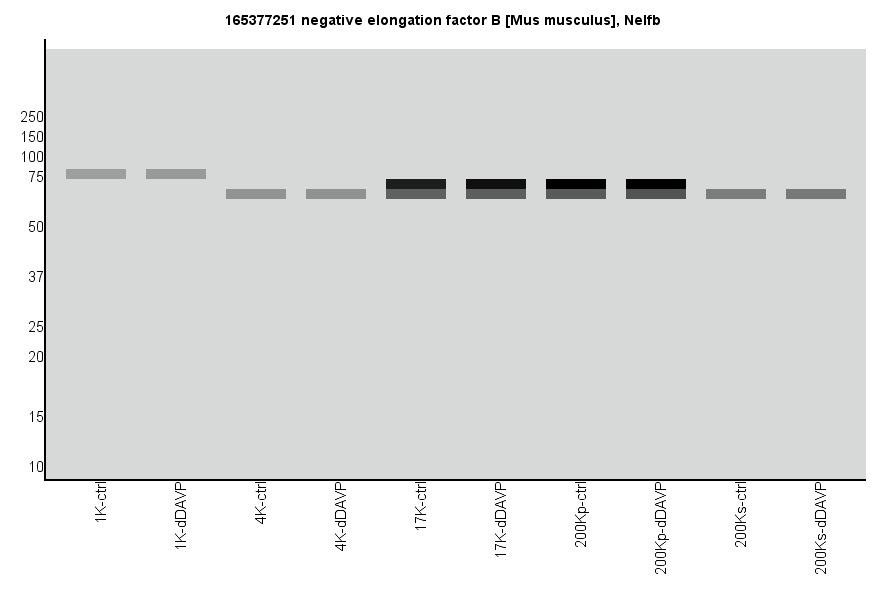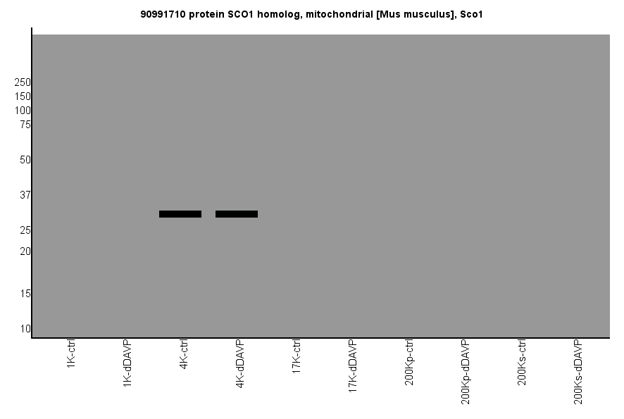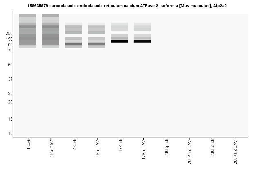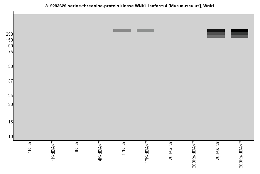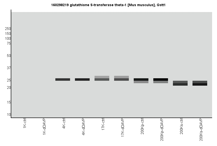 The virtual western blot images show data normalized using a logarithmic conversion scale to map peptide intensities to gray-scale levels. Using this conversion method, low-abundance peptides are generally visible in the blot images. Switch back to the default linear conversion scale database page.