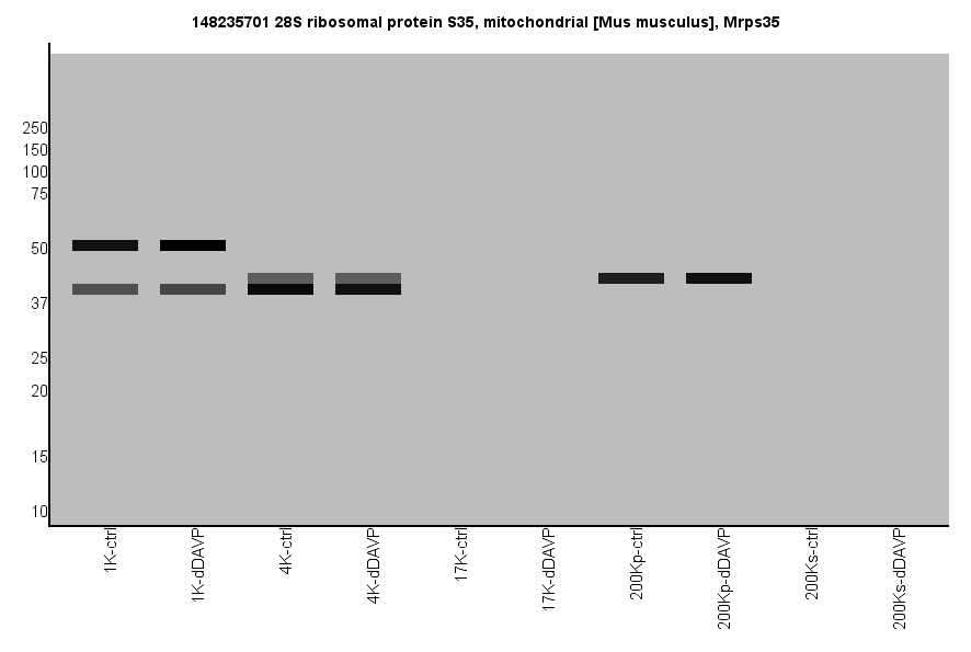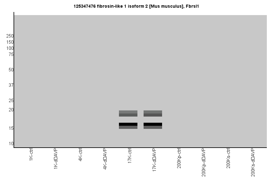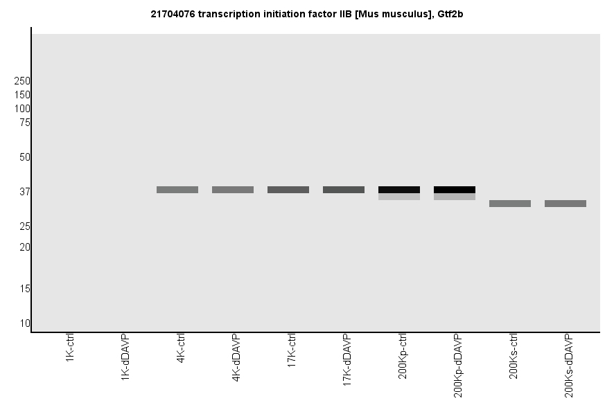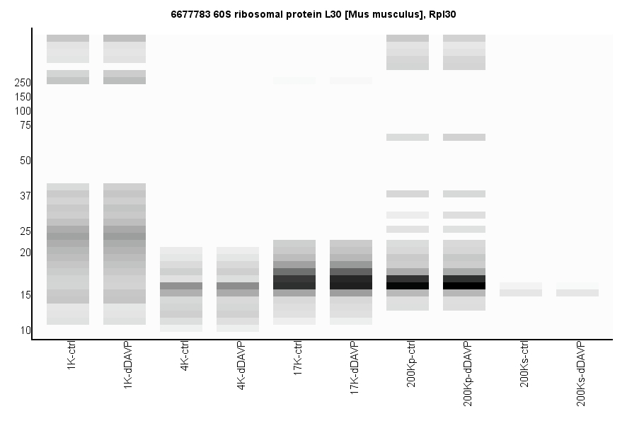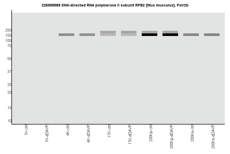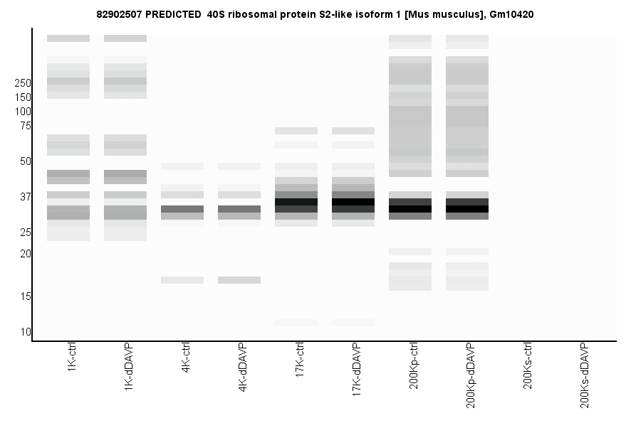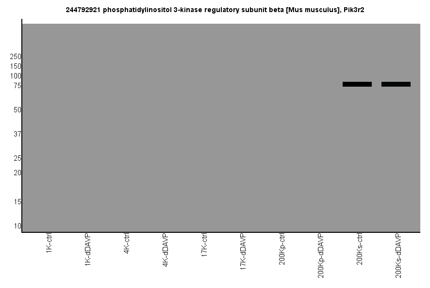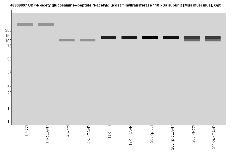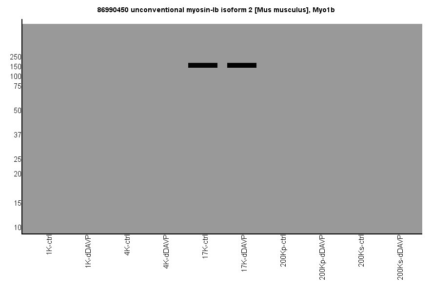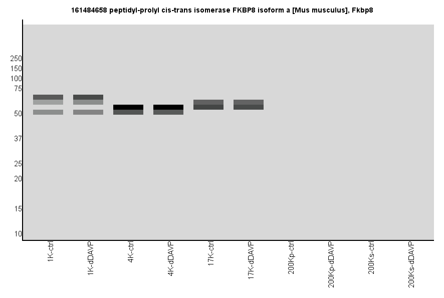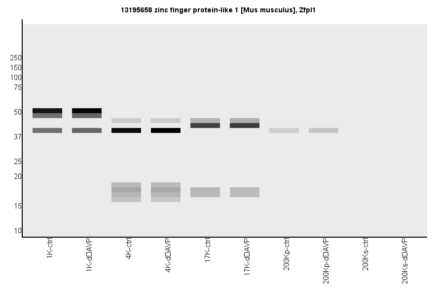 The virtual western blot images show data normalized using a logarithmic conversion scale to map peptide intensities to gray-scale levels. Using this conversion method, low-abundance peptides are generally visible in the blot images. Switch back to the default linear conversion scale database page.
