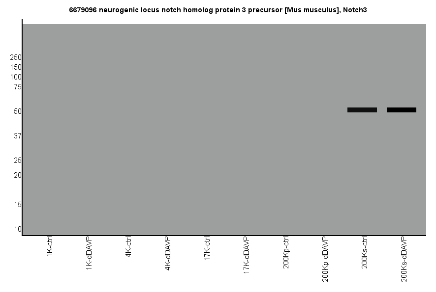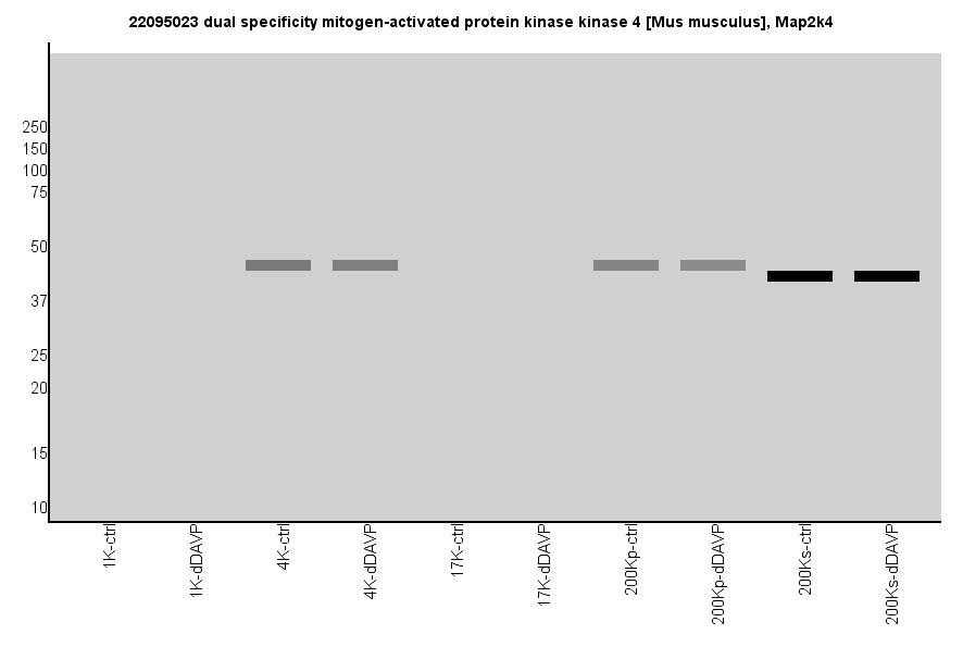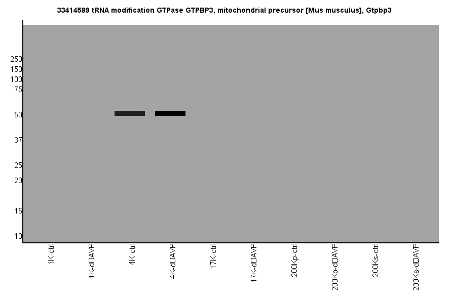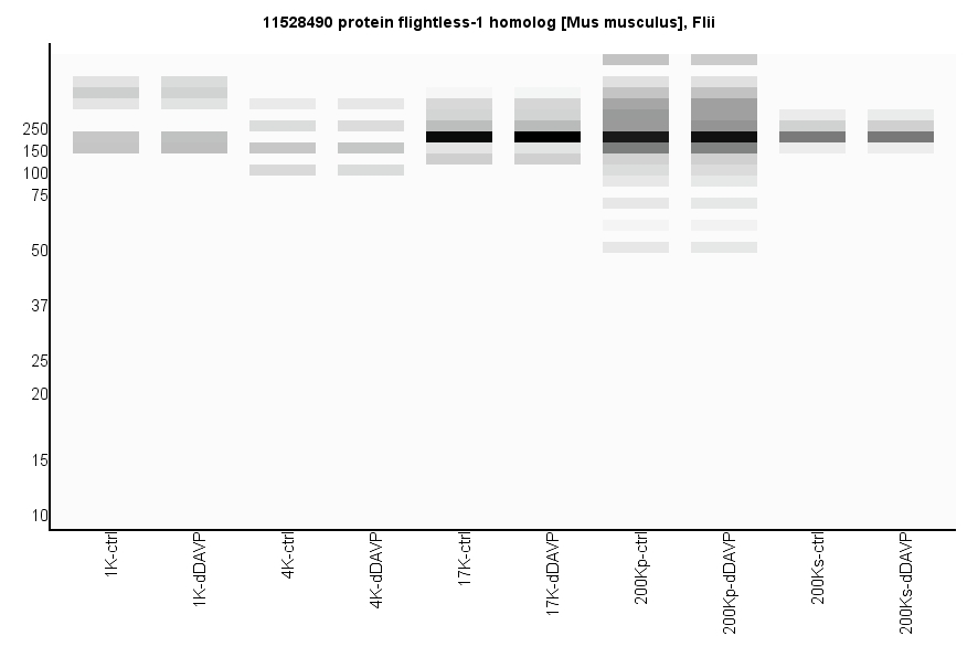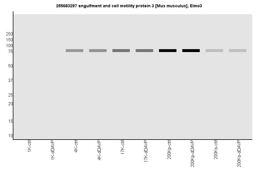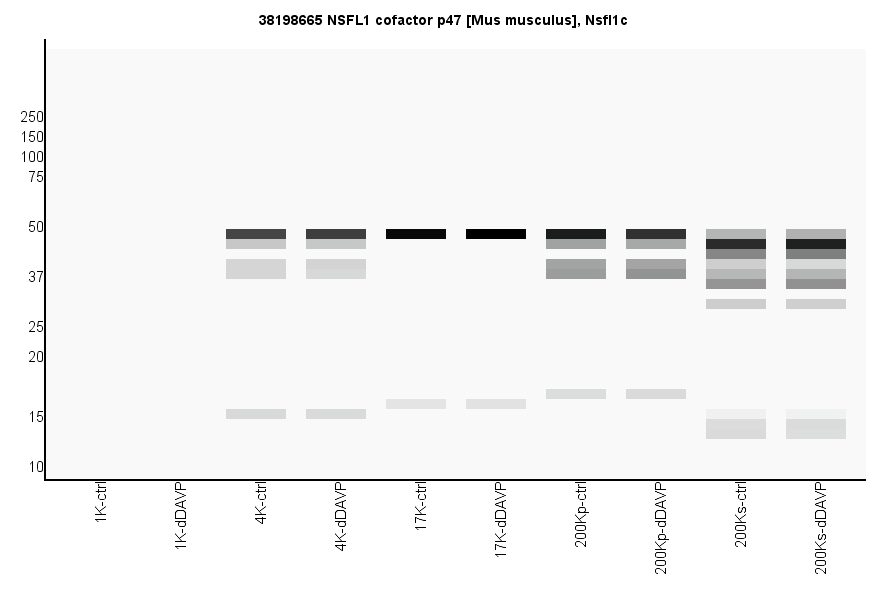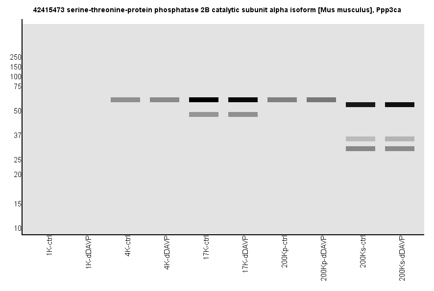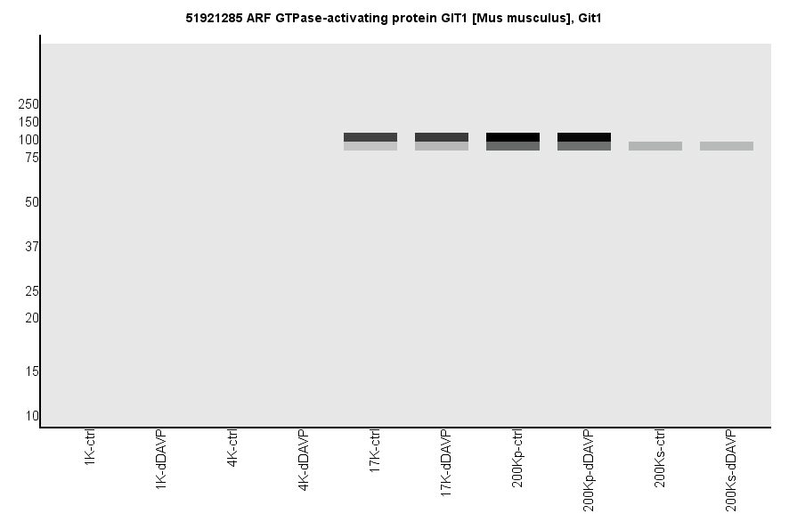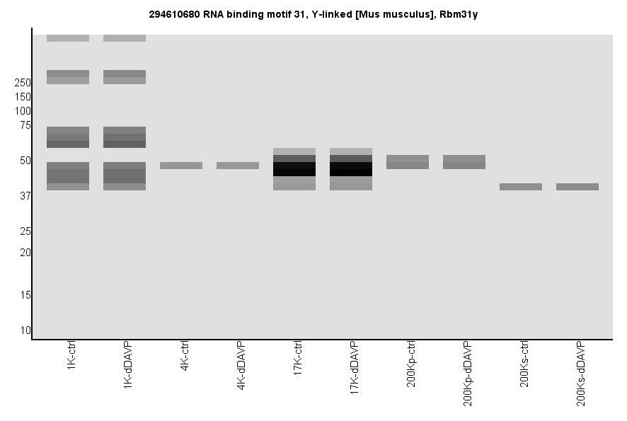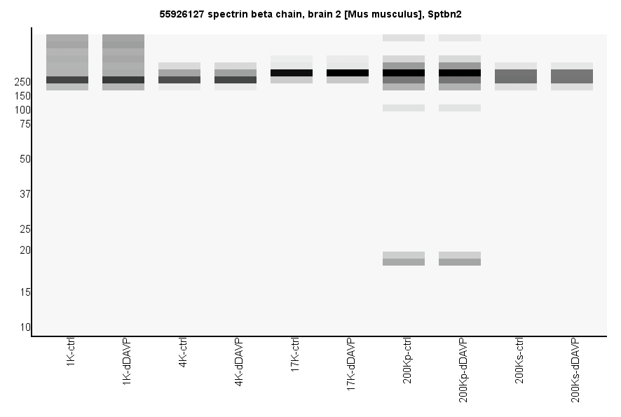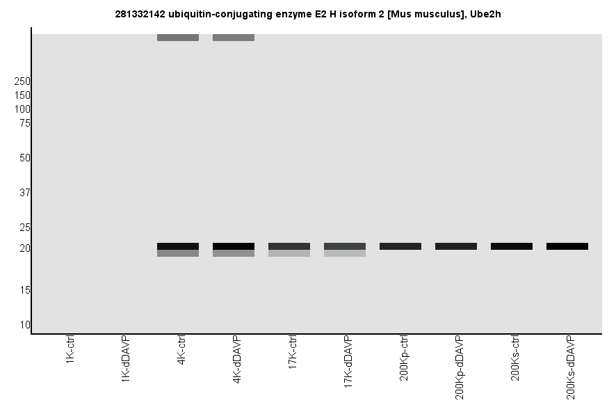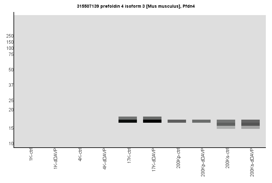 The virtual western blot images show data normalized using a logarithmic conversion scale to map peptide intensities to gray-scale levels. Using this conversion method, low-abundance peptides are generally visible in the blot images. Switch back to the default linear conversion scale database page.