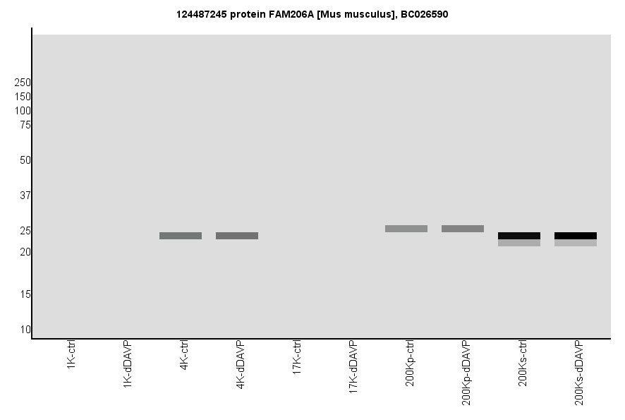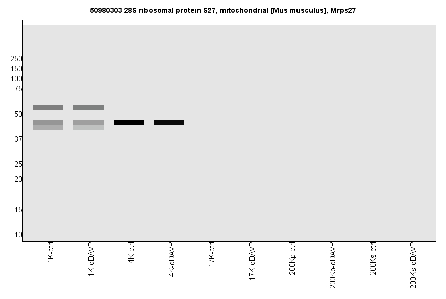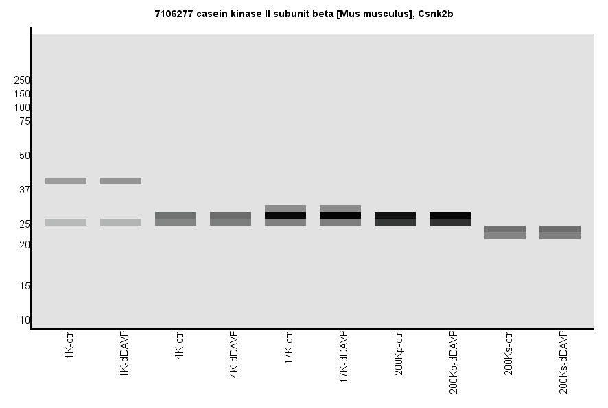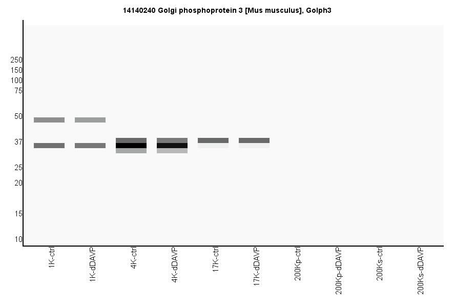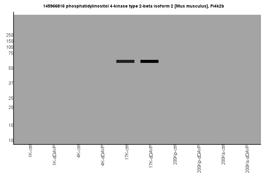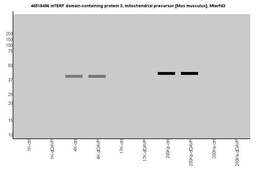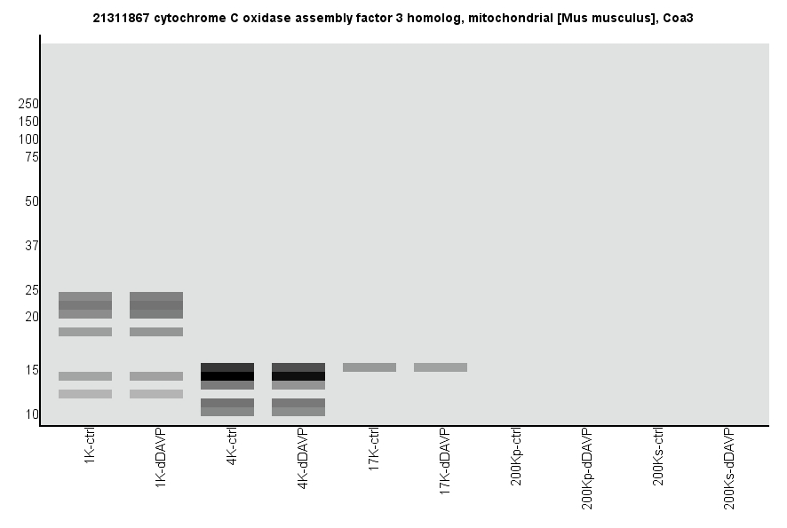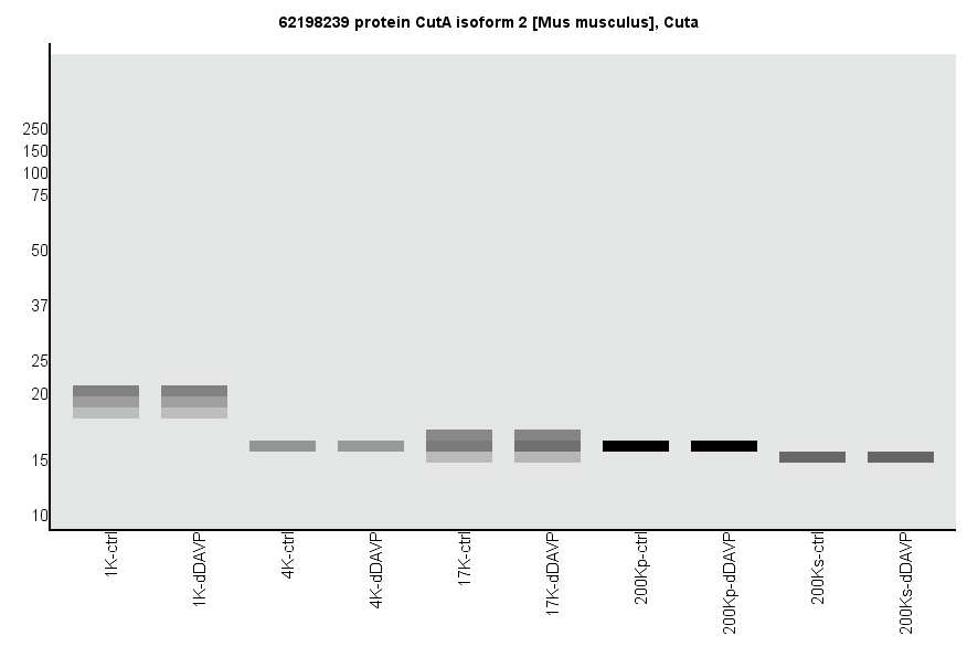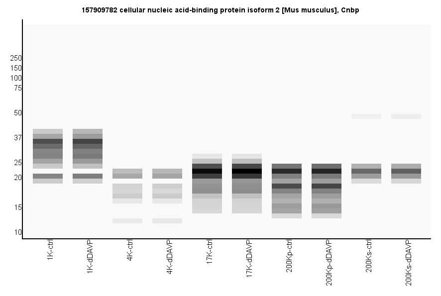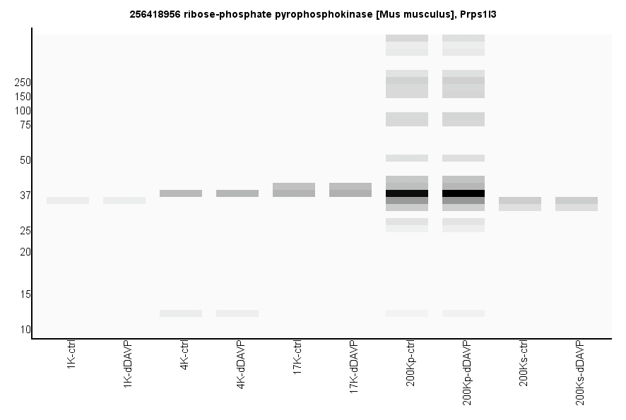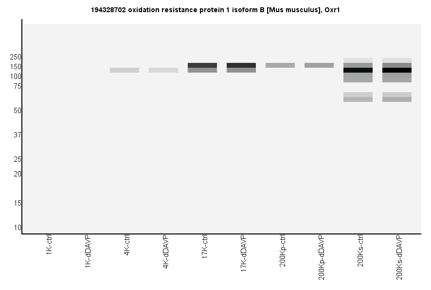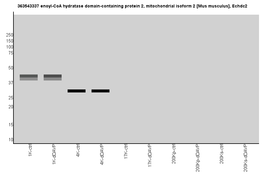 The virtual western blot images show data normalized using a logarithmic conversion scale to map peptide intensities to gray-scale levels. Using this conversion method, low-abundance peptides are generally visible in the blot images. Switch back to the default linear conversion scale database page.