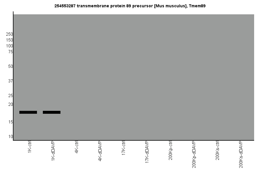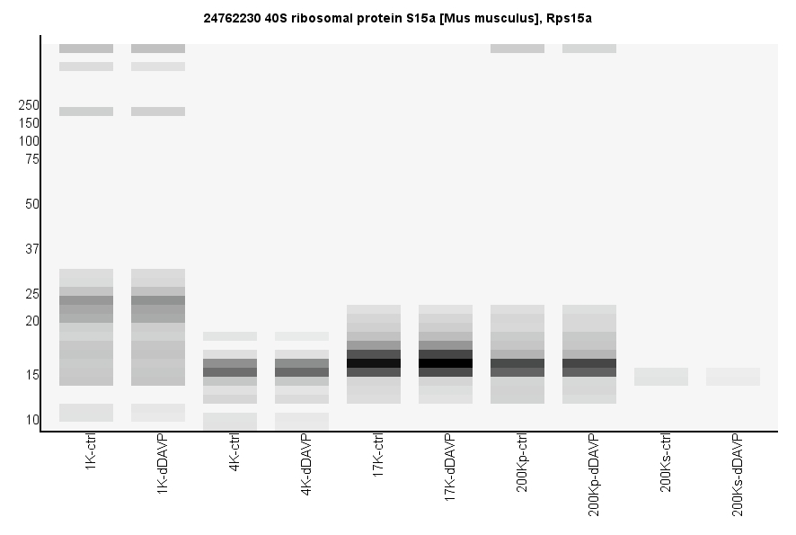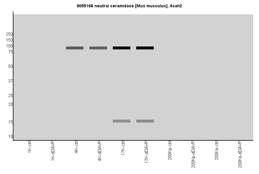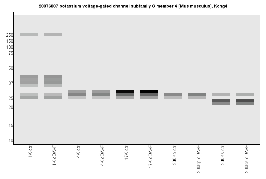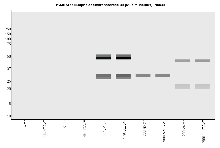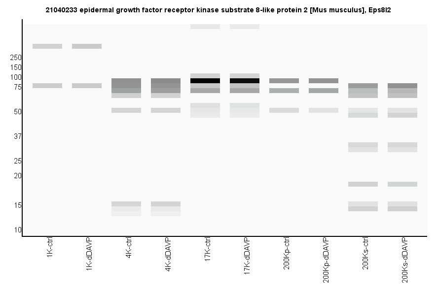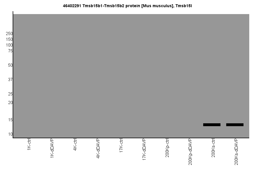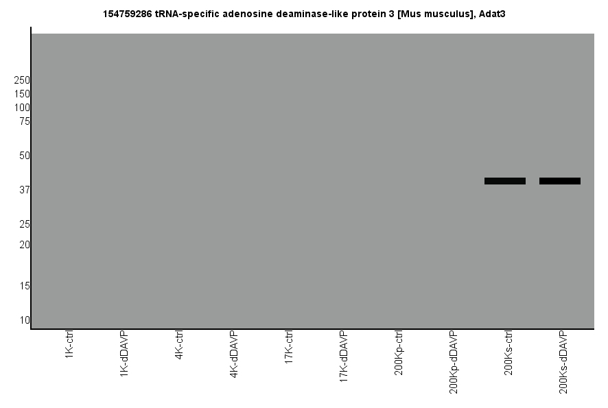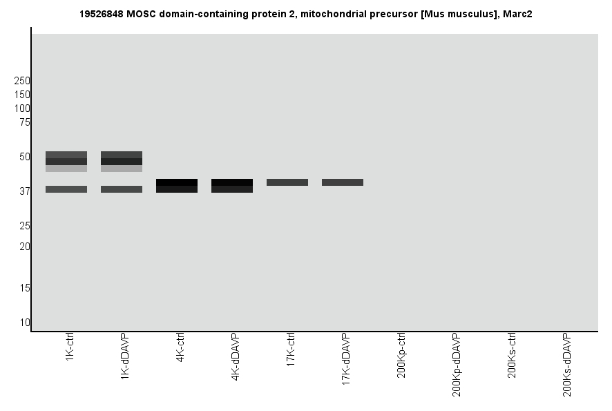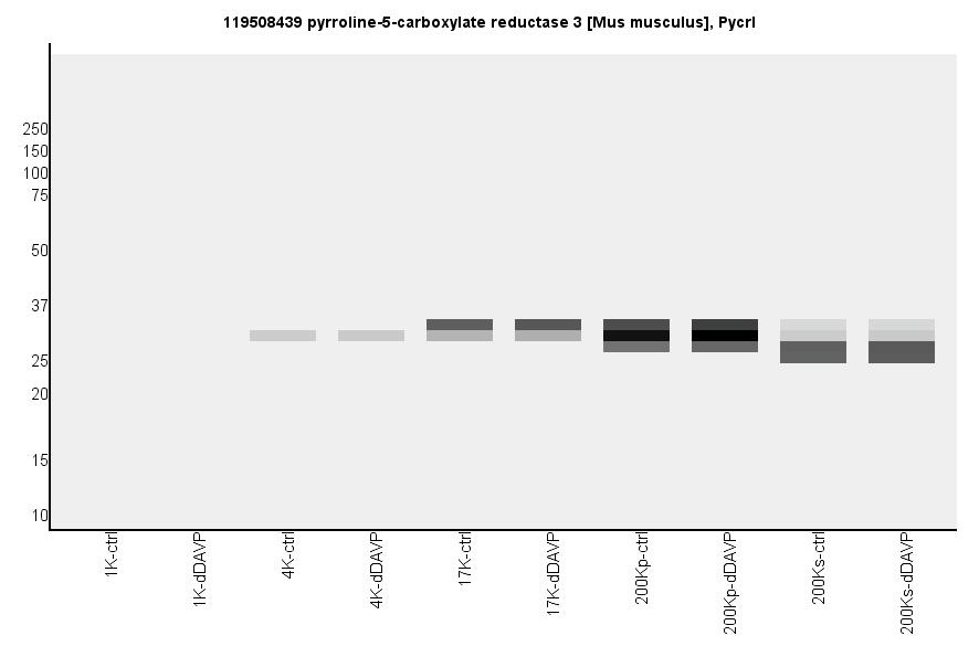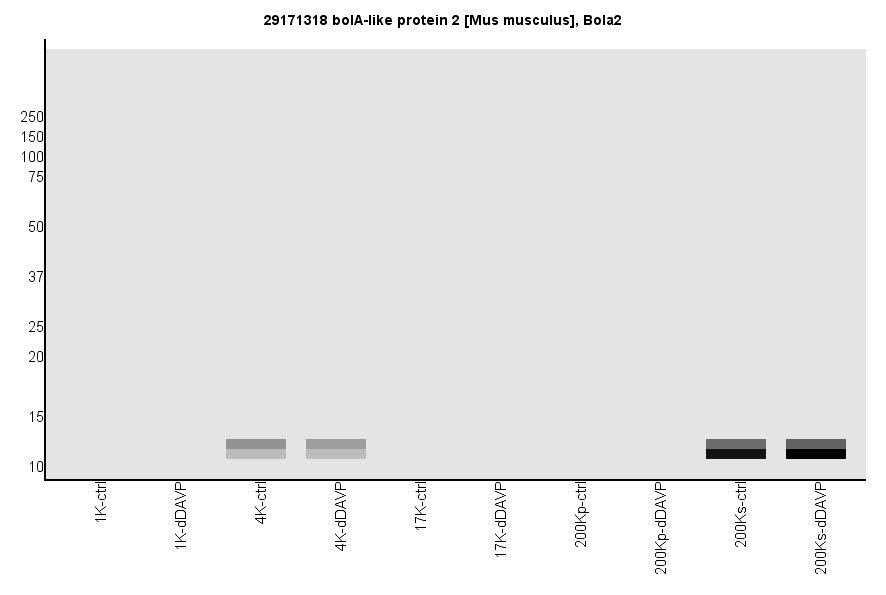 The virtual western blot images show data normalized using a logarithmic conversion scale to map peptide intensities to gray-scale levels. Using this conversion method, low-abundance peptides are generally visible in the blot images. Switch back to the default linear conversion scale database page.