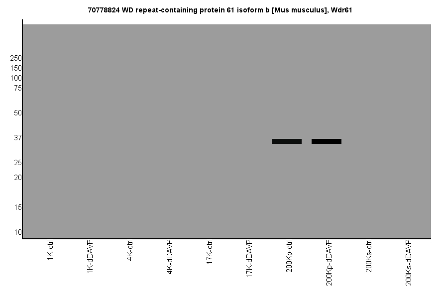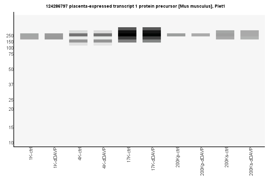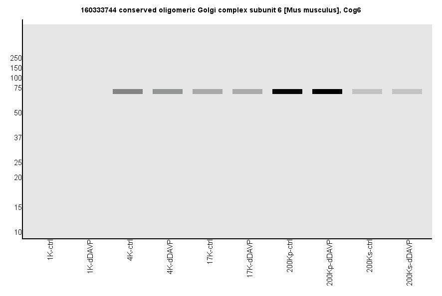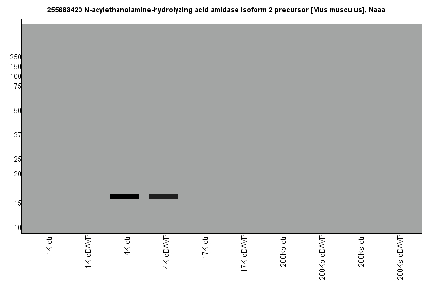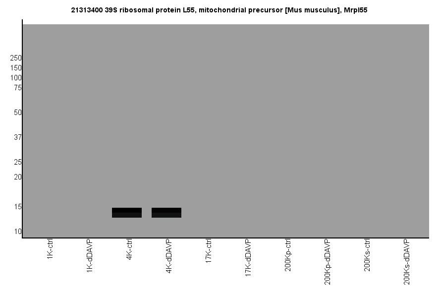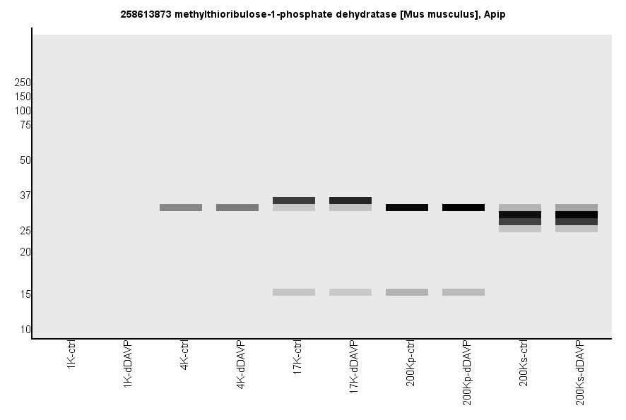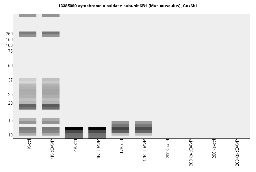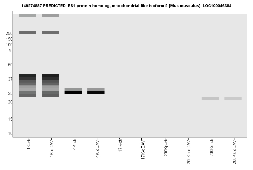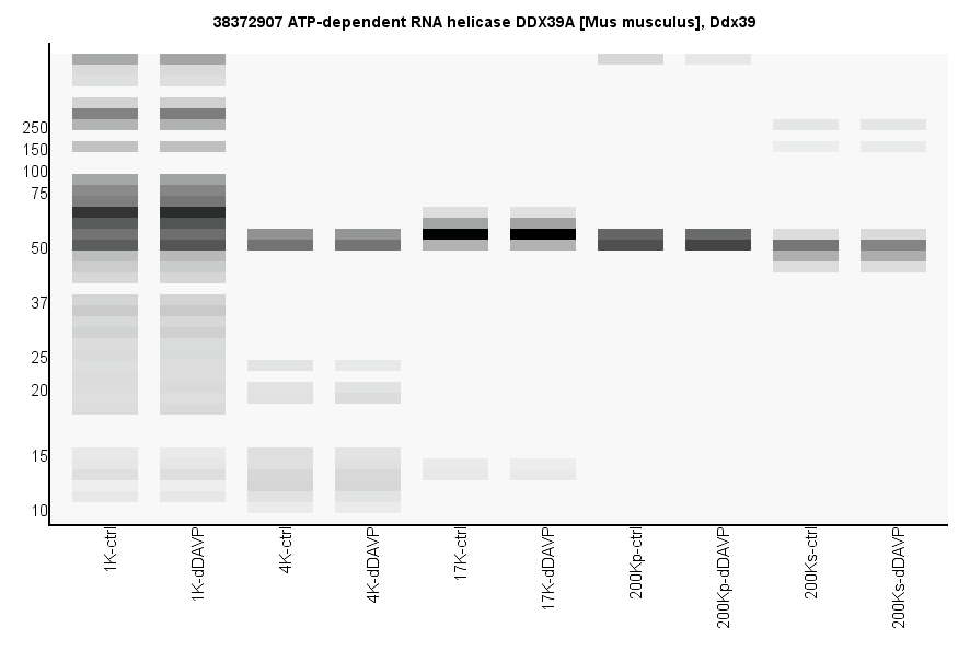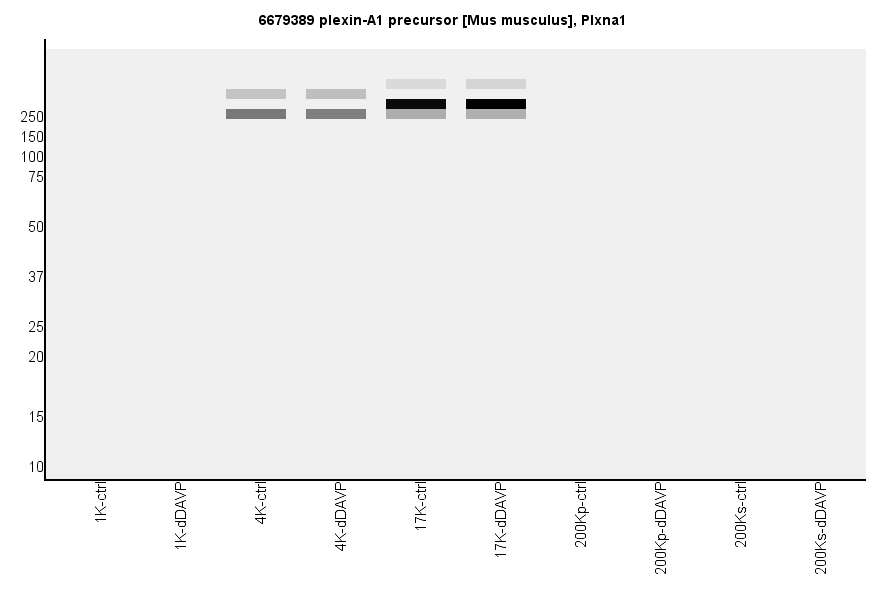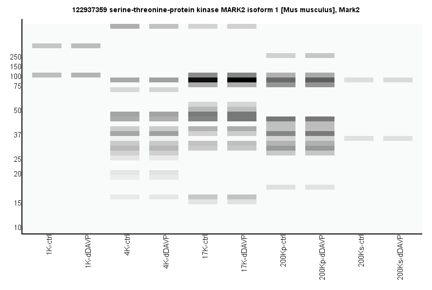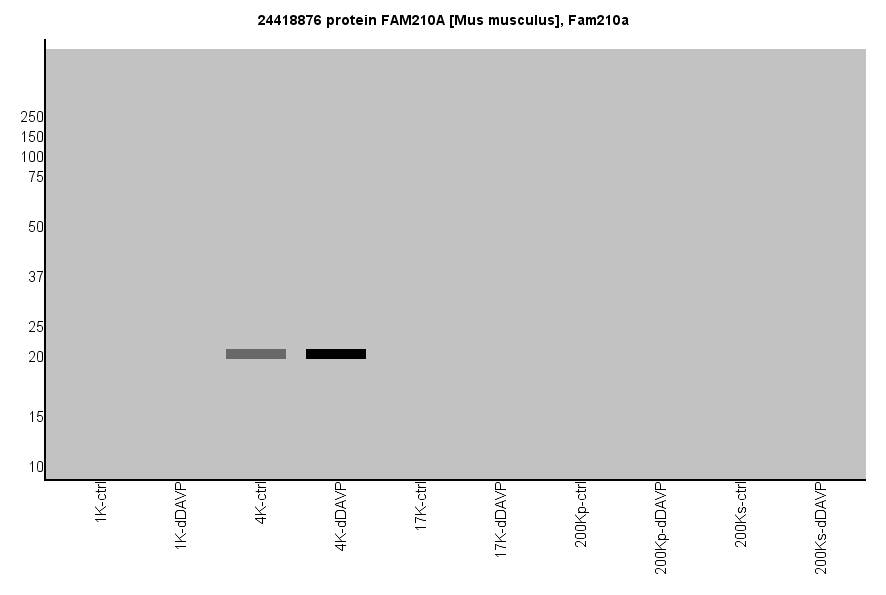 The virtual western blot images show data normalized using a logarithmic conversion scale to map peptide intensities to gray-scale levels. Using this conversion method, low-abundance peptides are generally visible in the blot images. Switch back to the default linear conversion scale database page.