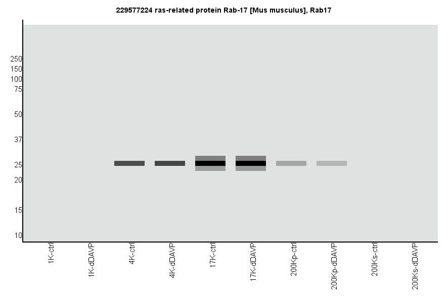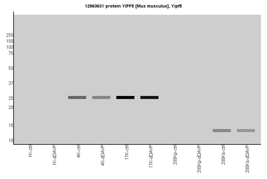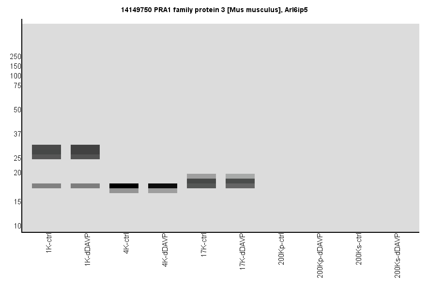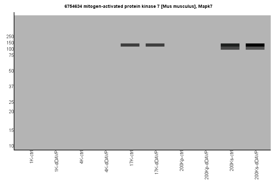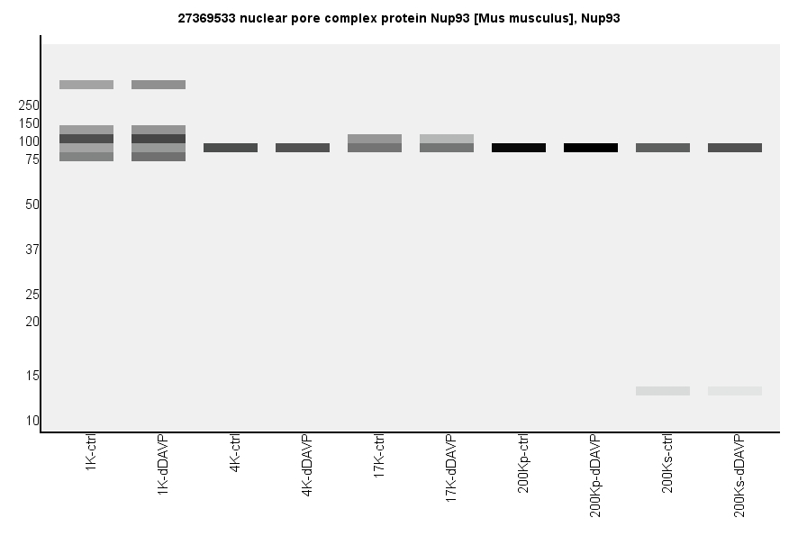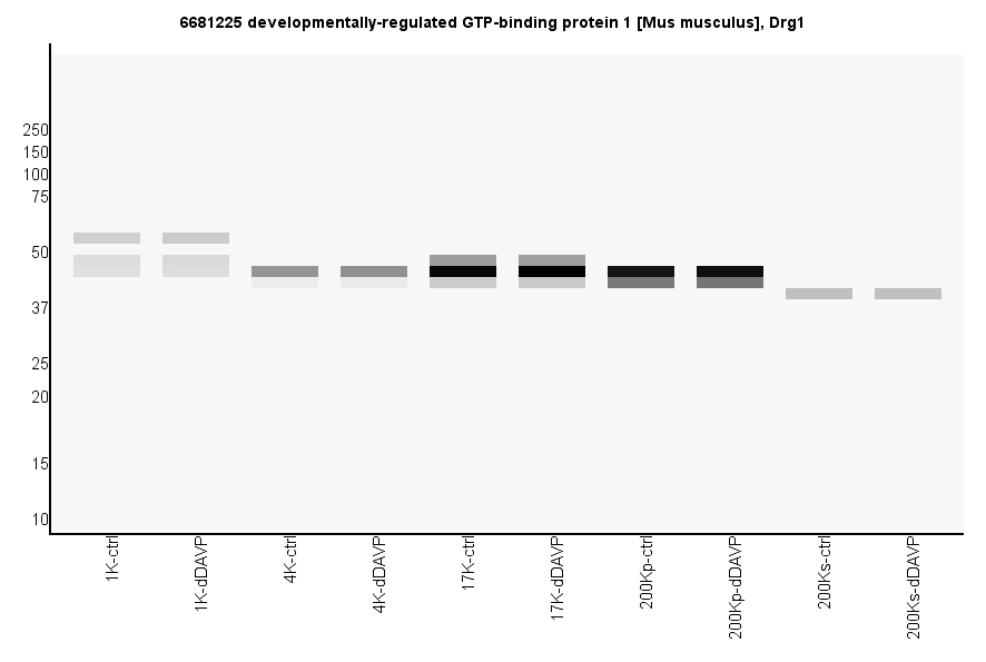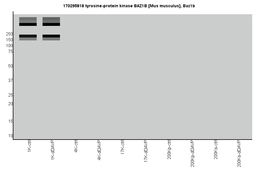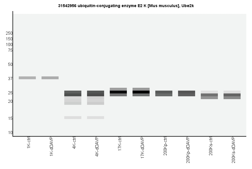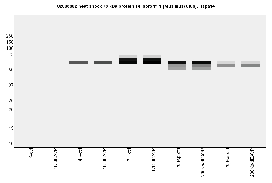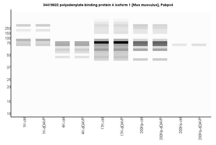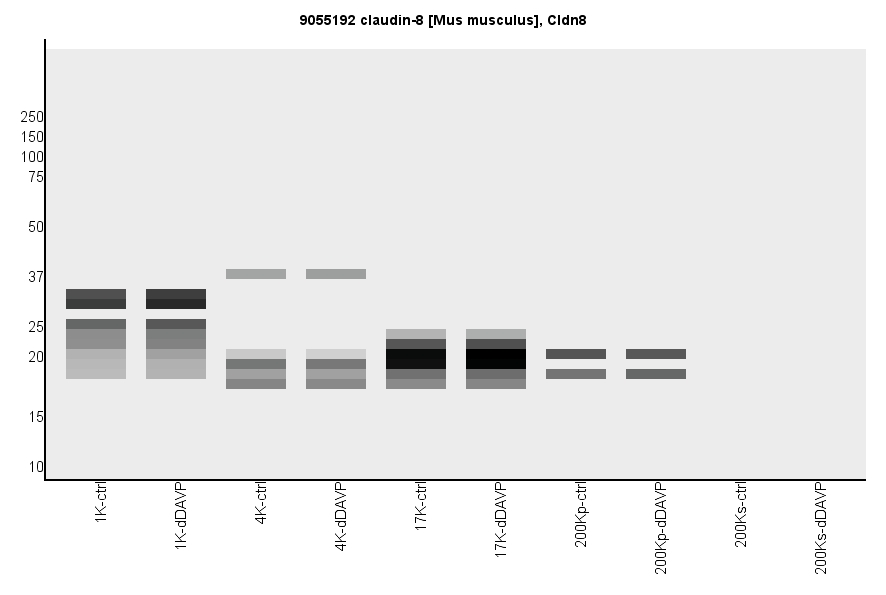 The virtual western blot images show data normalized using a logarithmic conversion scale to map peptide intensities to gray-scale levels. Using this conversion method, low-abundance peptides are generally visible in the blot images. Switch back to the default linear conversion scale database page.