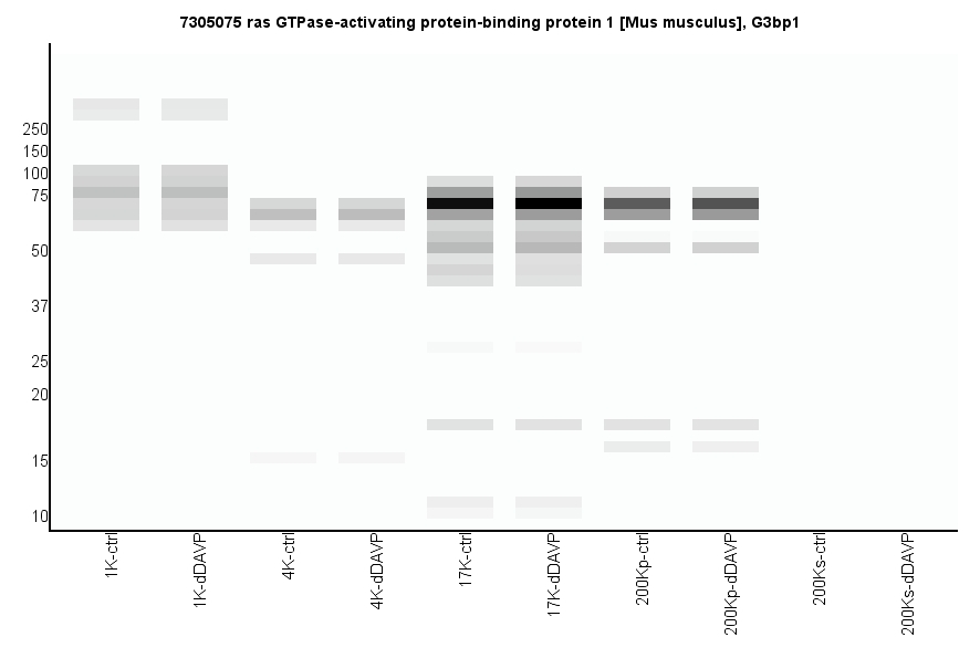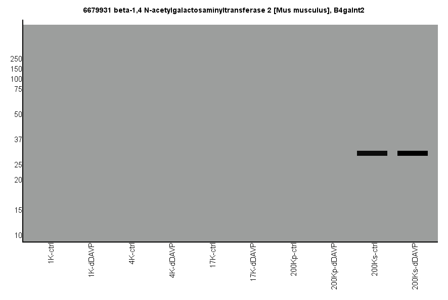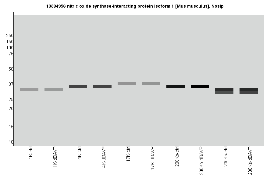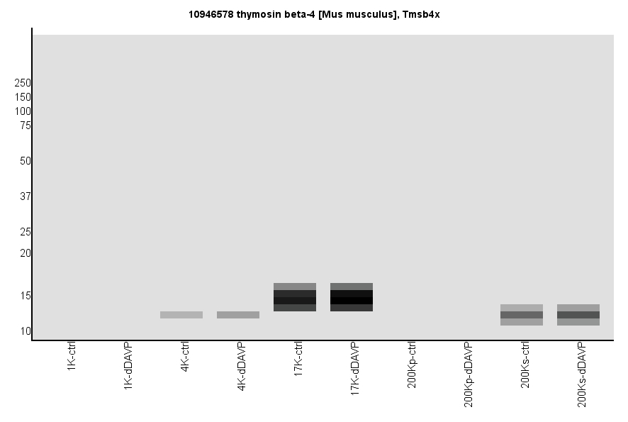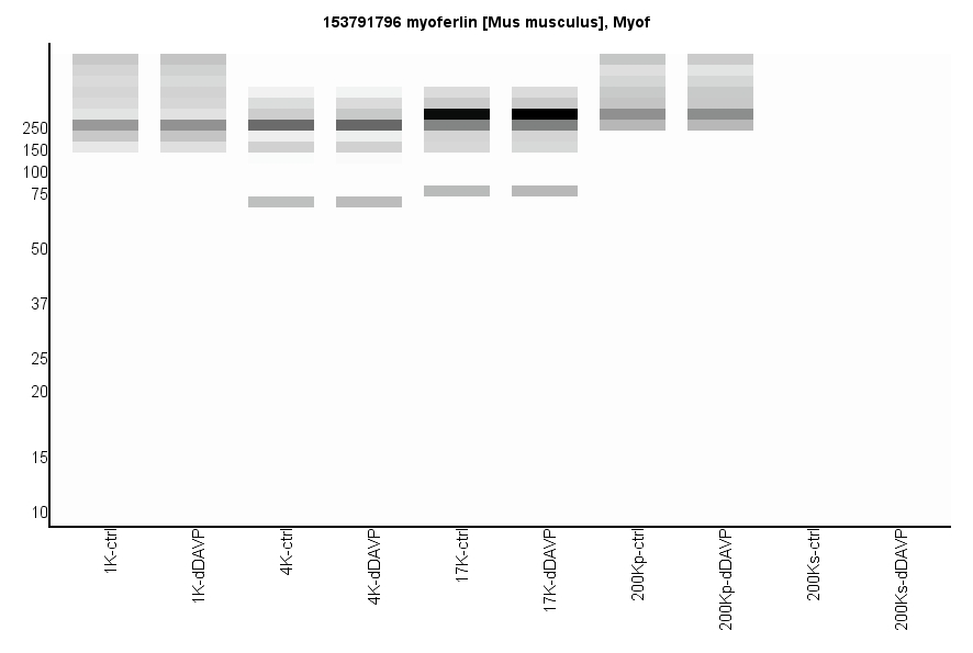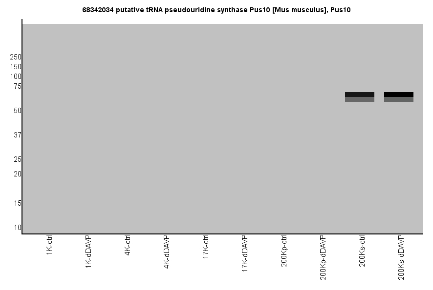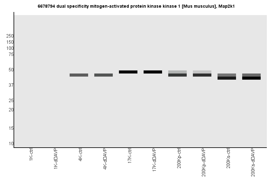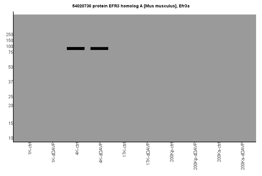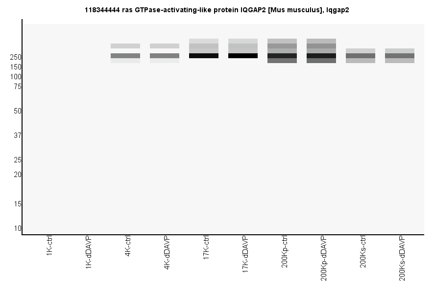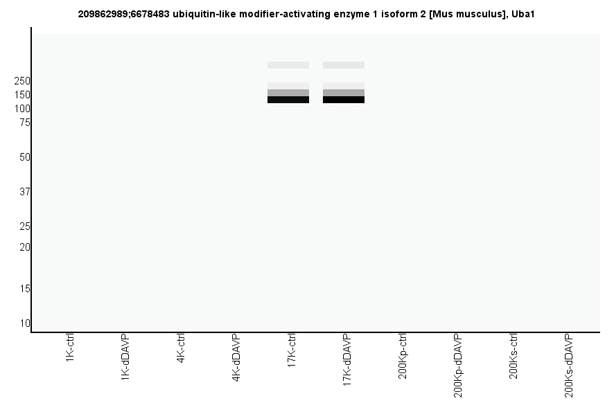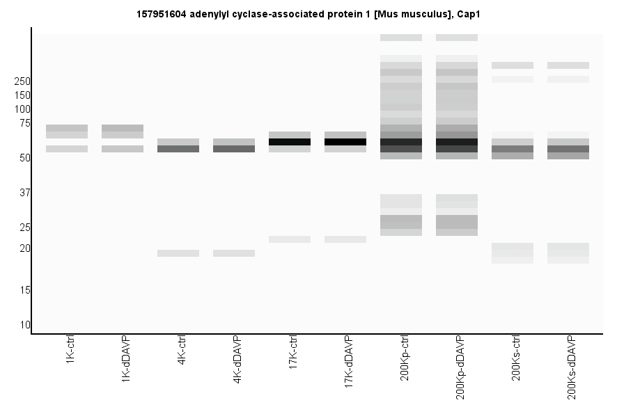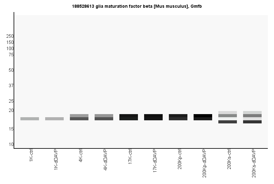 The virtual western blot images show data normalized using a logarithmic conversion scale to map peptide intensities to gray-scale levels. Using this conversion method, low-abundance peptides are generally visible in the blot images. Switch back to the default linear conversion scale database page.
