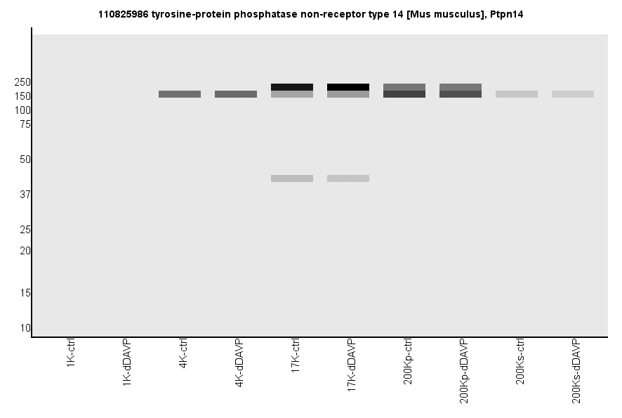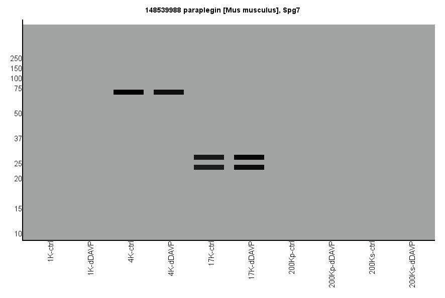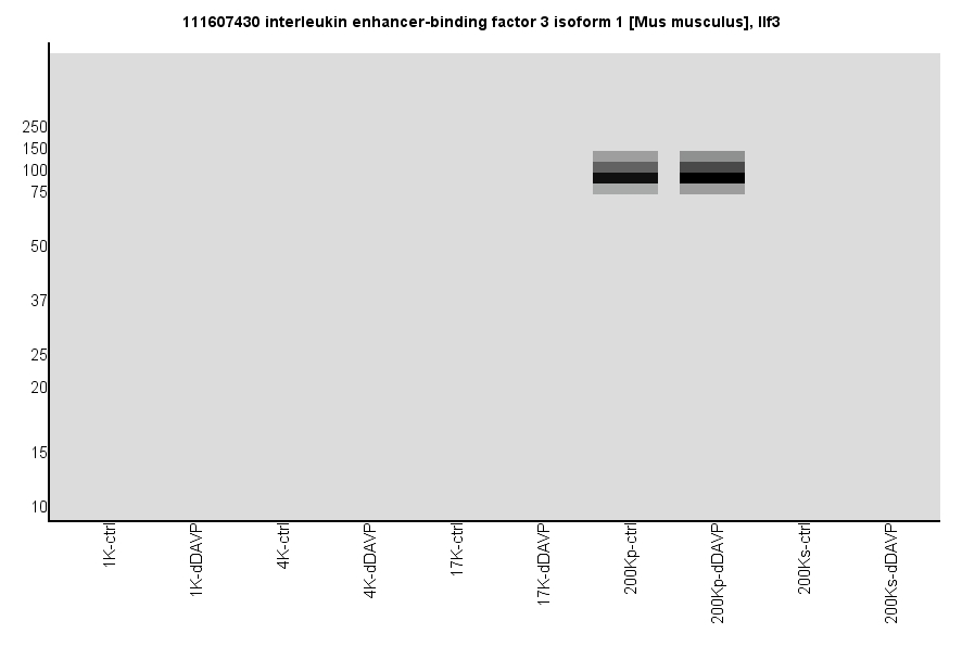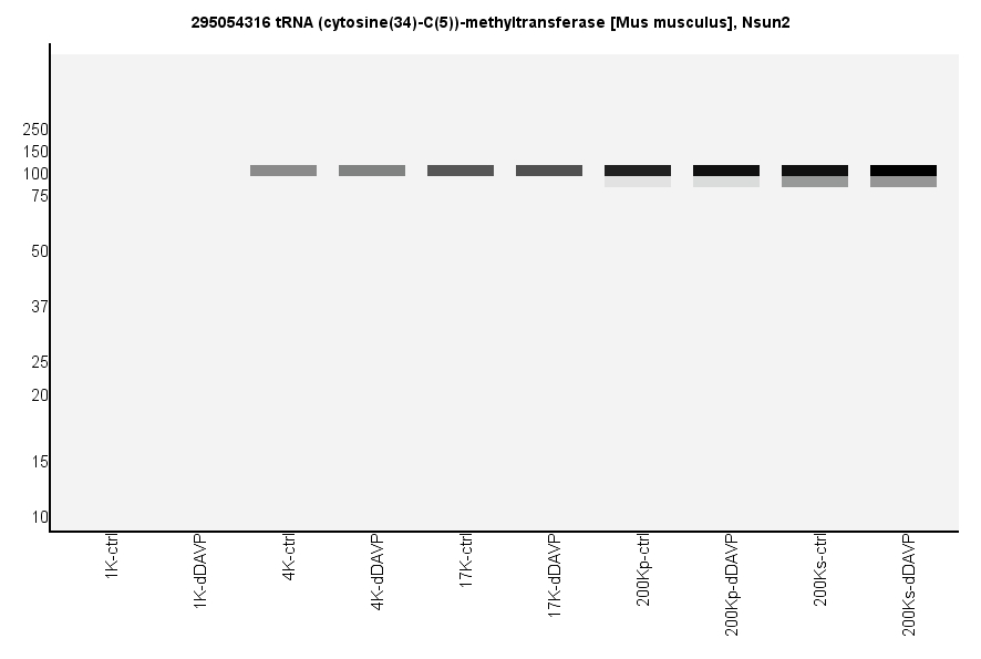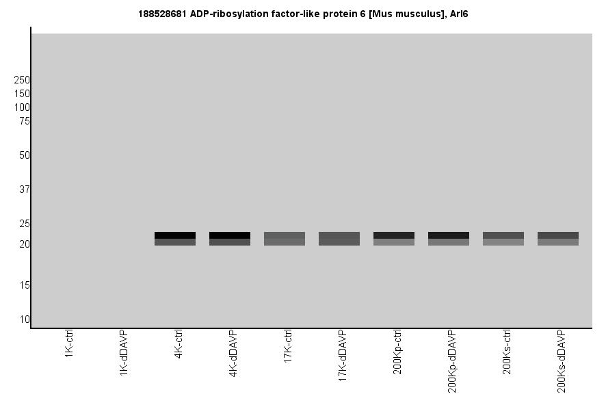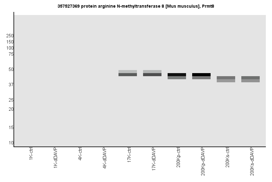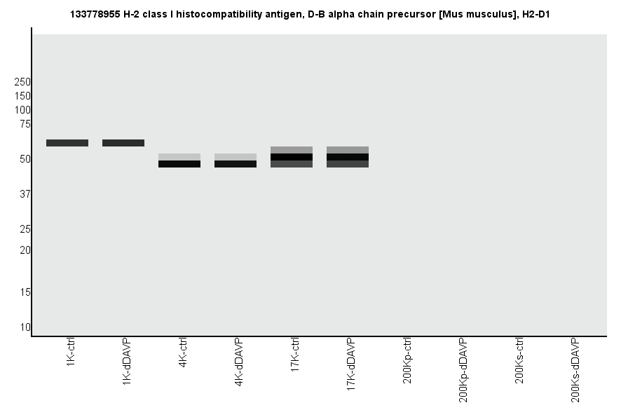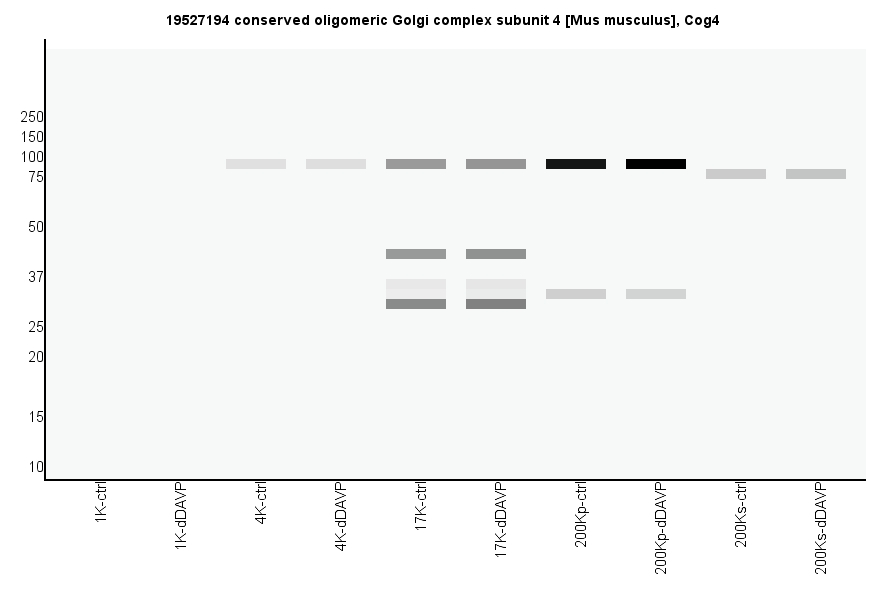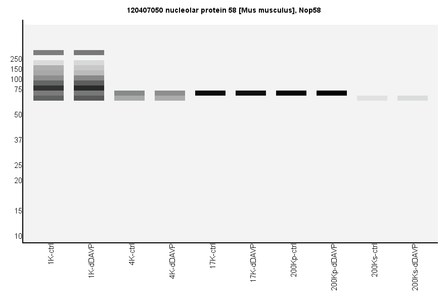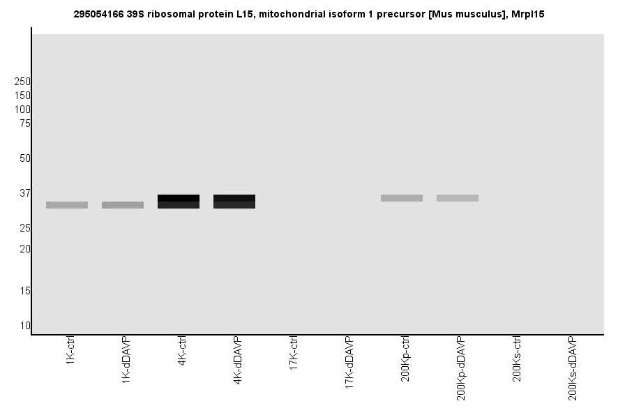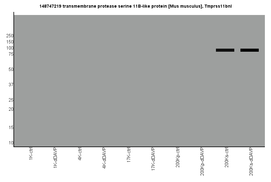 The virtual western blot images show data normalized using a logarithmic conversion scale to map peptide intensities to gray-scale levels. Using this conversion method, low-abundance peptides are generally visible in the blot images. Switch back to the default linear conversion scale database page.