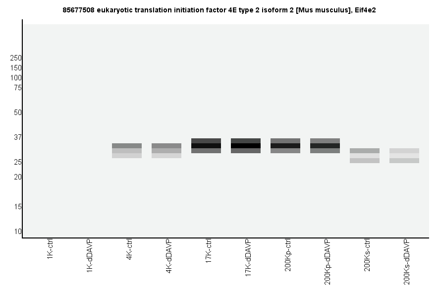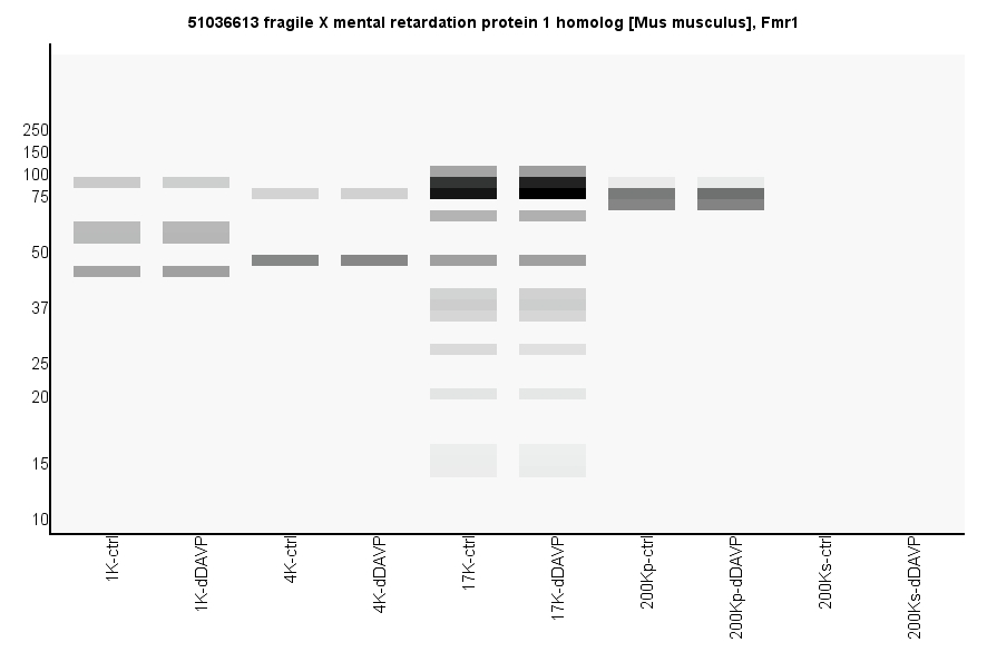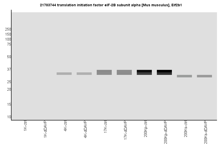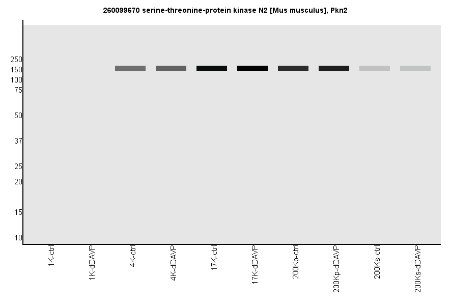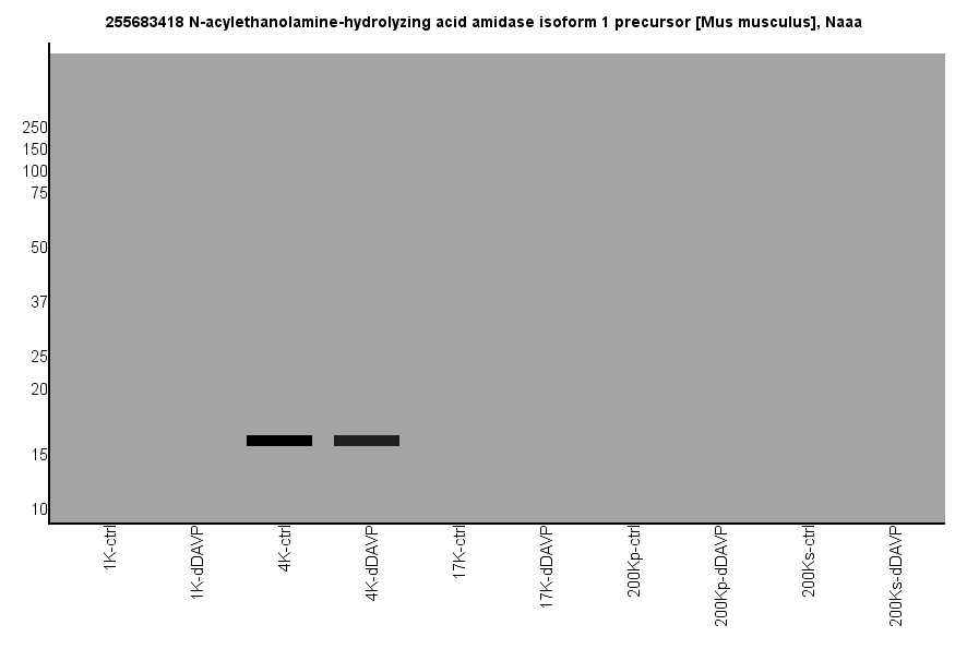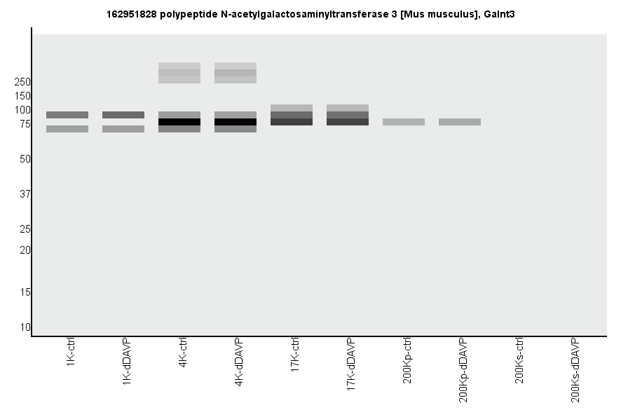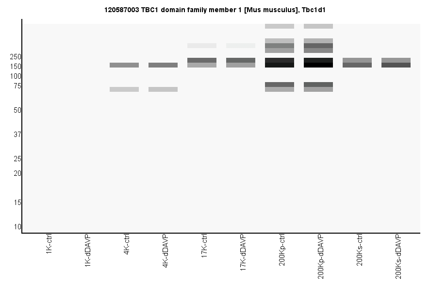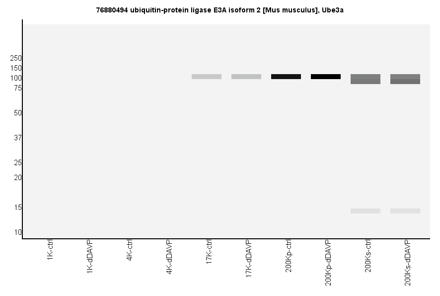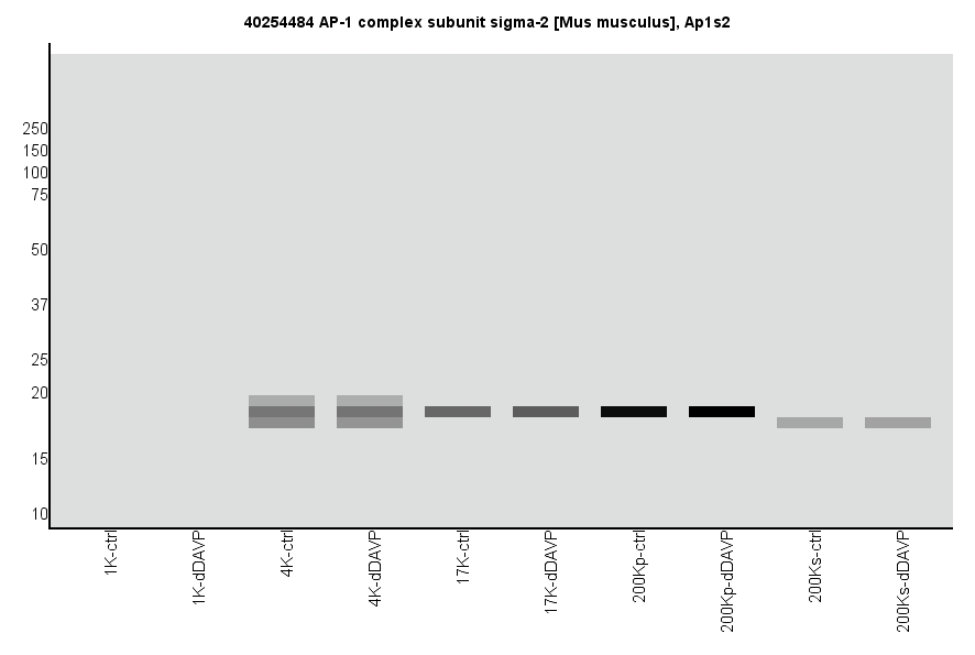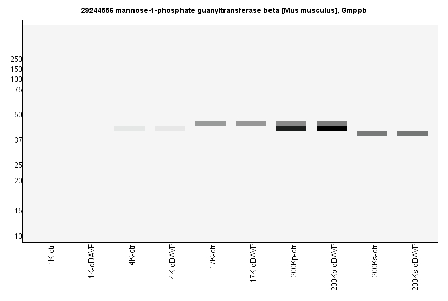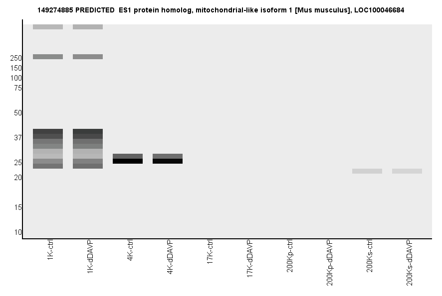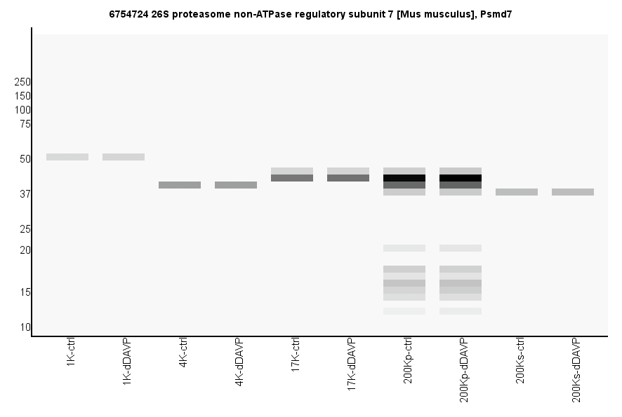 The virtual western blot images show data normalized using a logarithmic conversion scale to map peptide intensities to gray-scale levels. Using this conversion method, low-abundance peptides are generally visible in the blot images. Switch back to the default linear conversion scale database page.