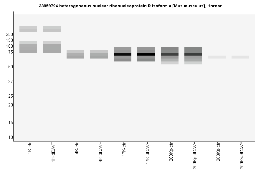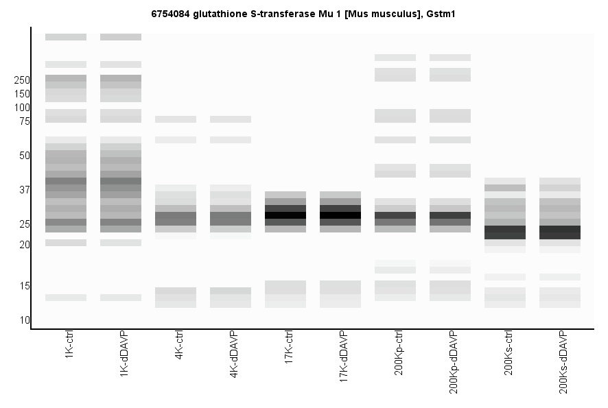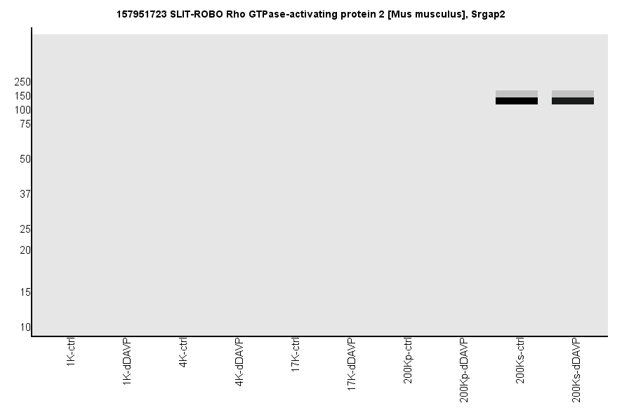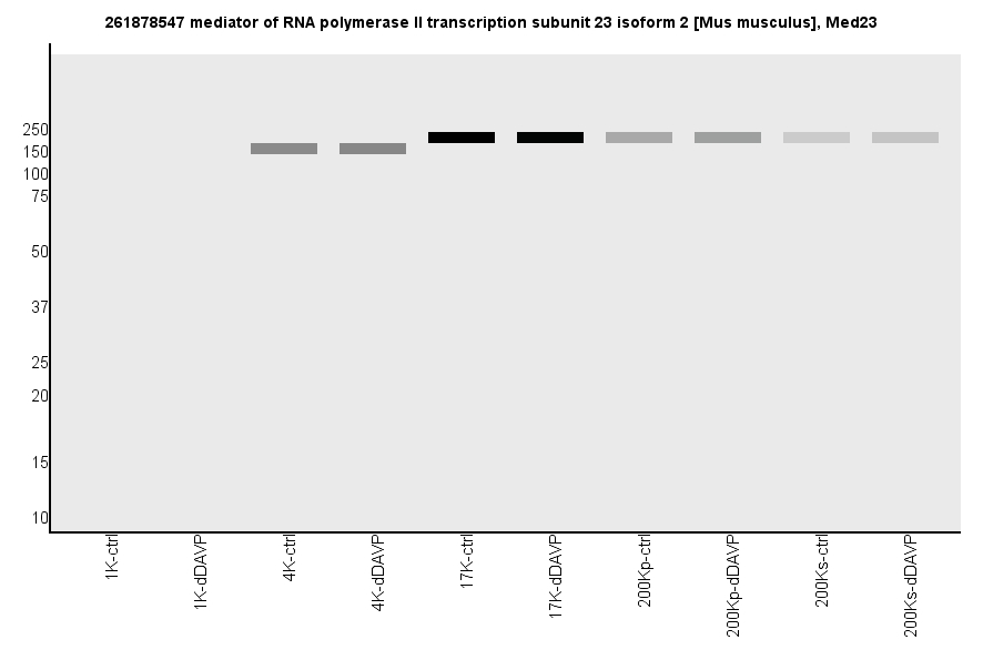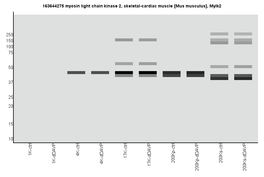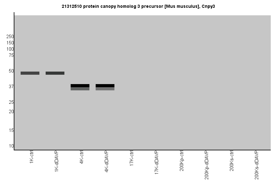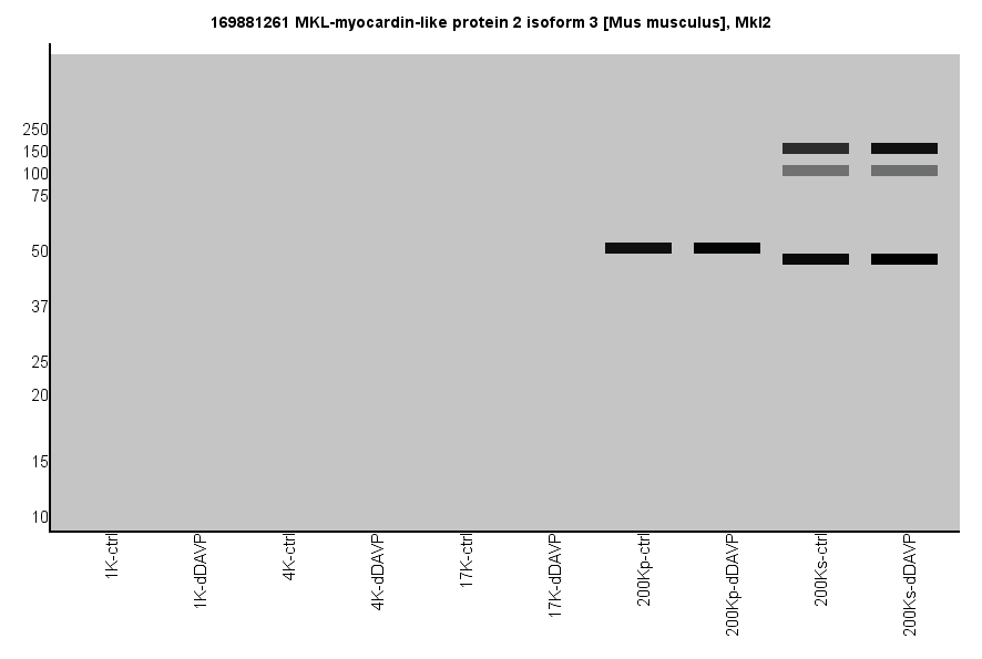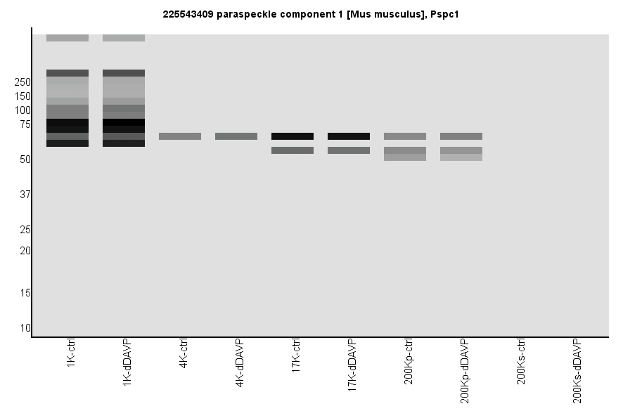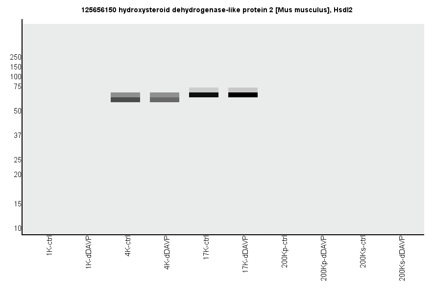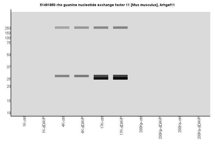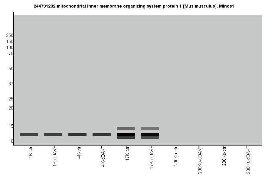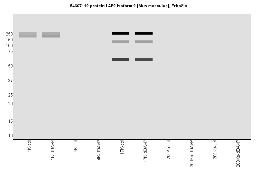 The virtual western blot images show data normalized using a logarithmic conversion scale to map peptide intensities to gray-scale levels. Using this conversion method, low-abundance peptides are generally visible in the blot images. Switch back to the default linear conversion scale database page.
