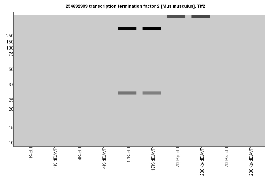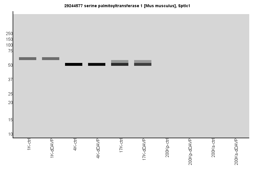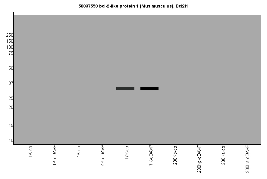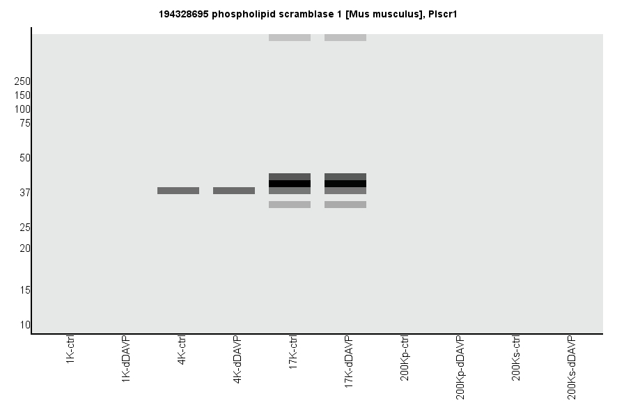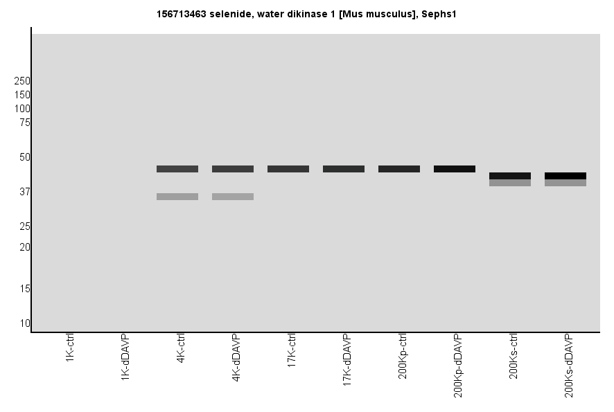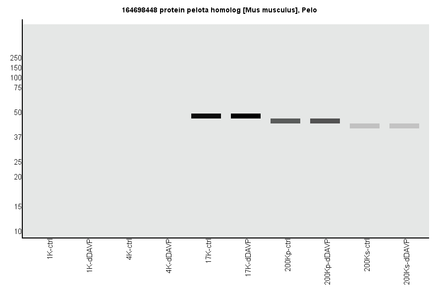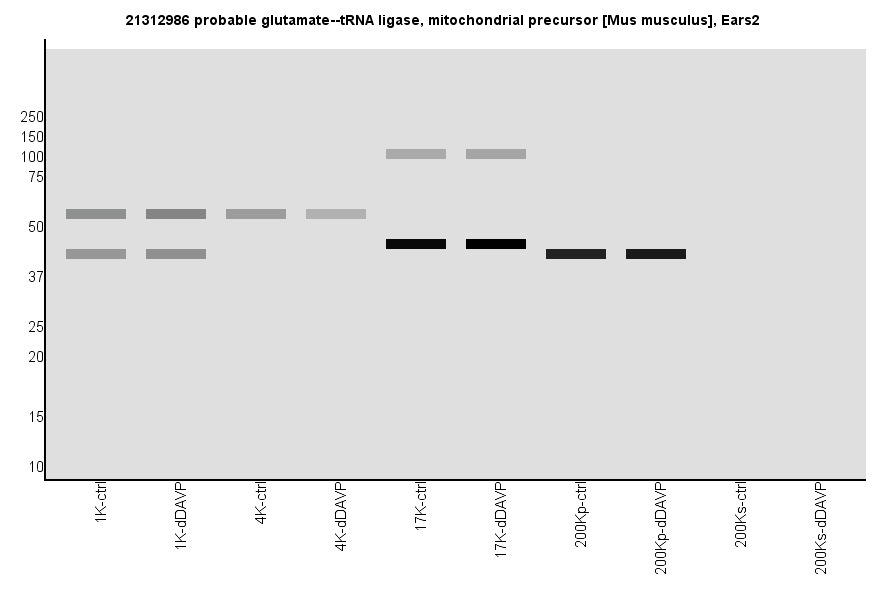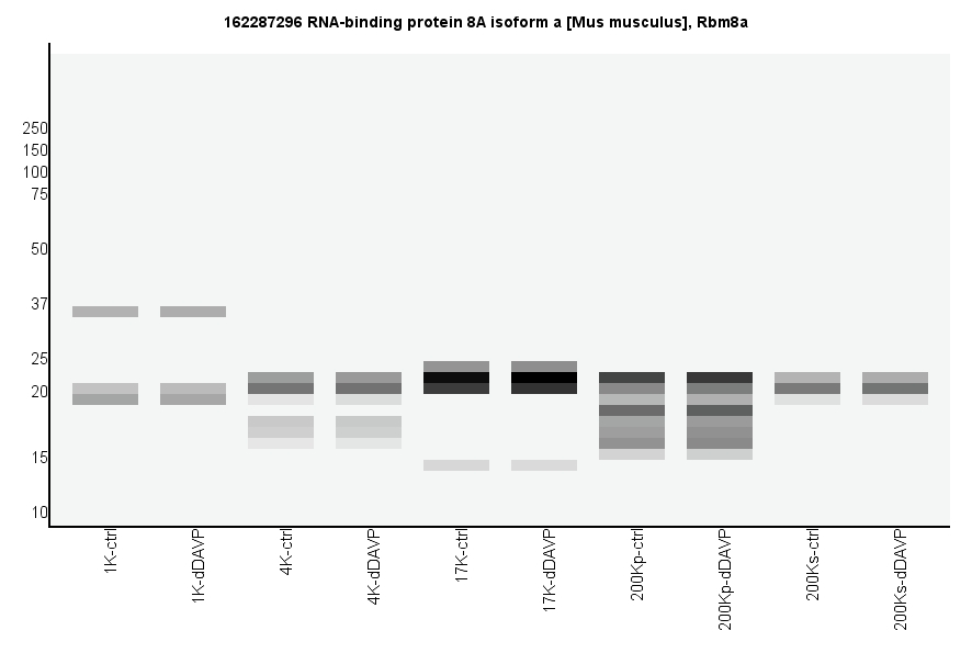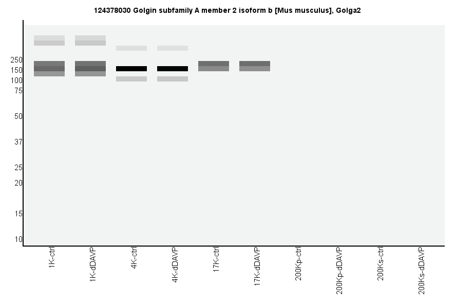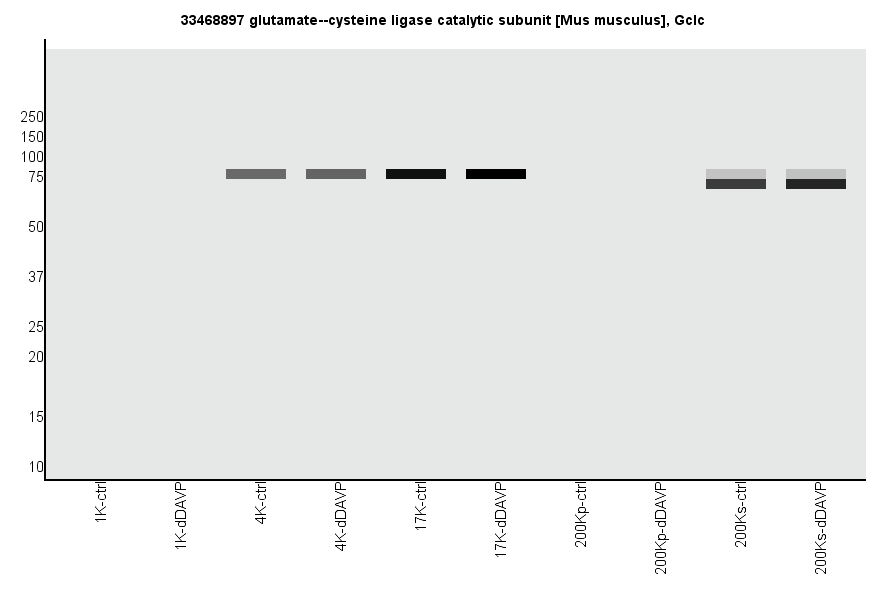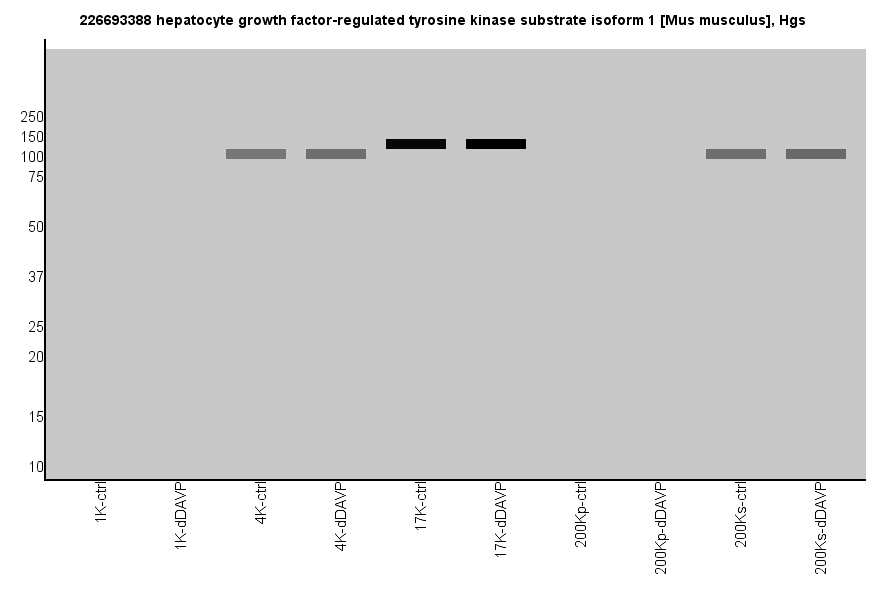 The virtual western blot images show data normalized using a logarithmic conversion scale to map peptide intensities to gray-scale levels. Using this conversion method, low-abundance peptides are generally visible in the blot images. Switch back to the default linear conversion scale database page.