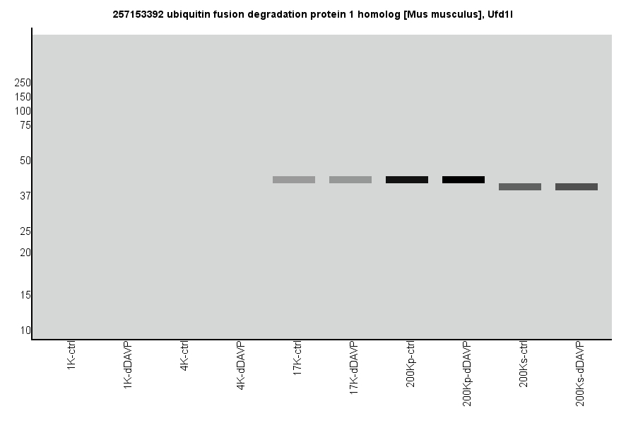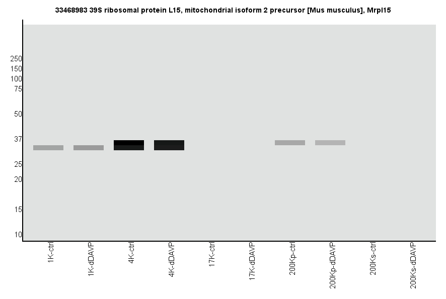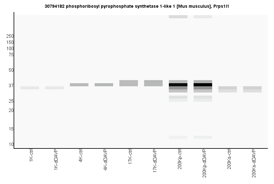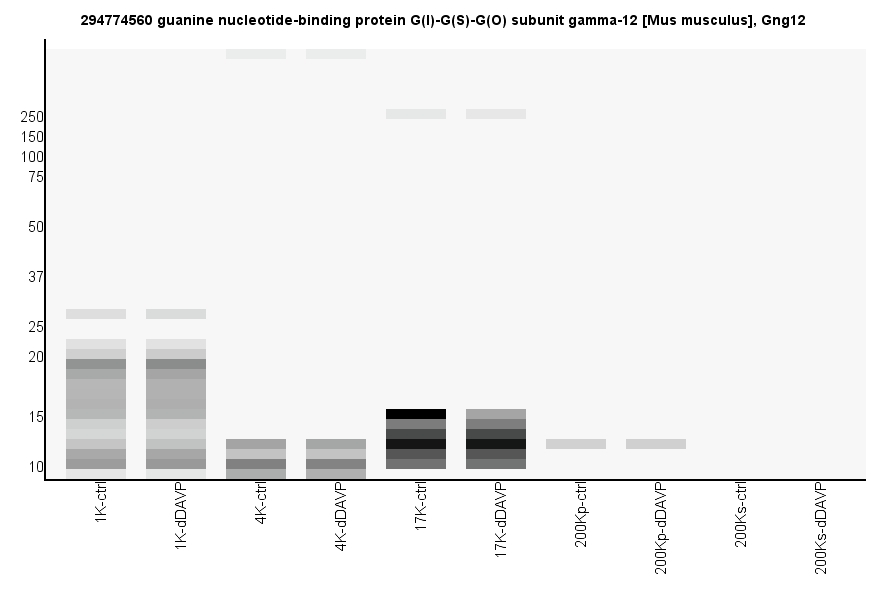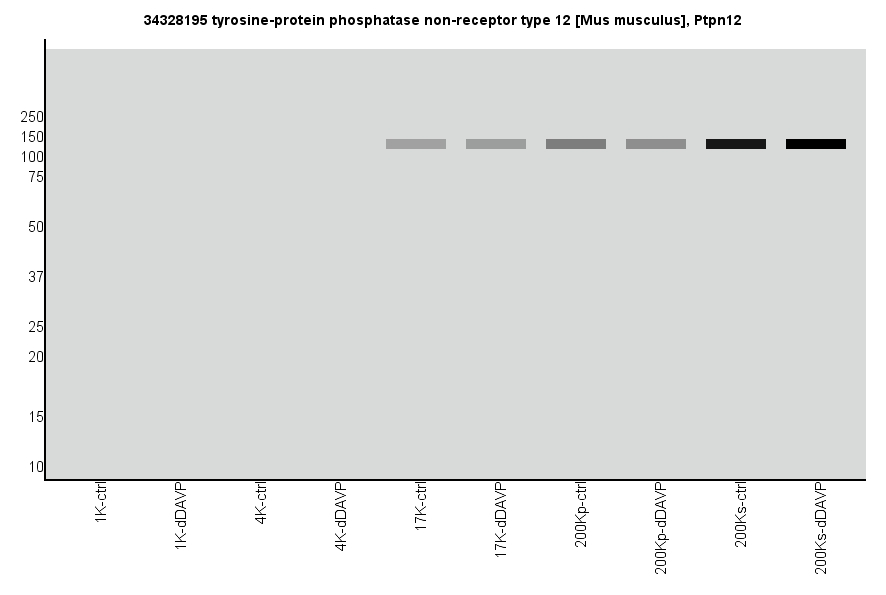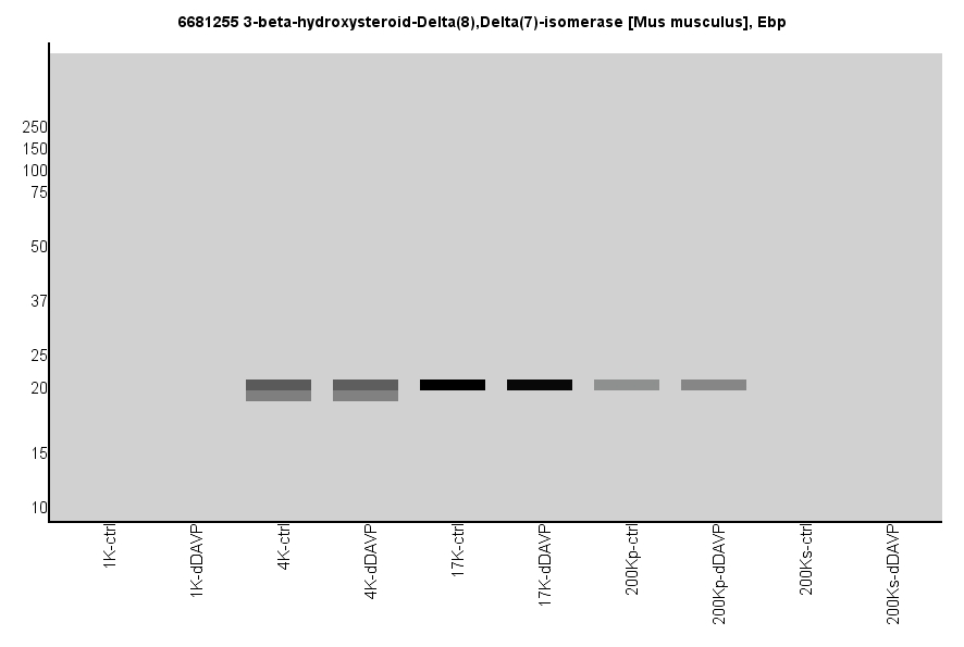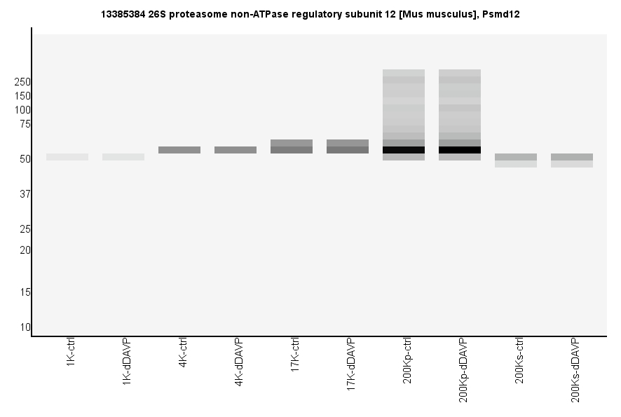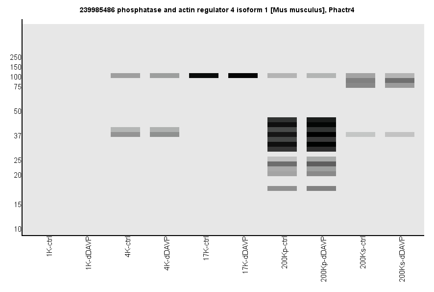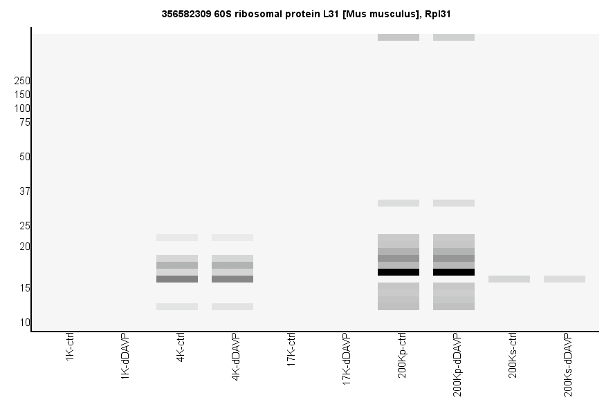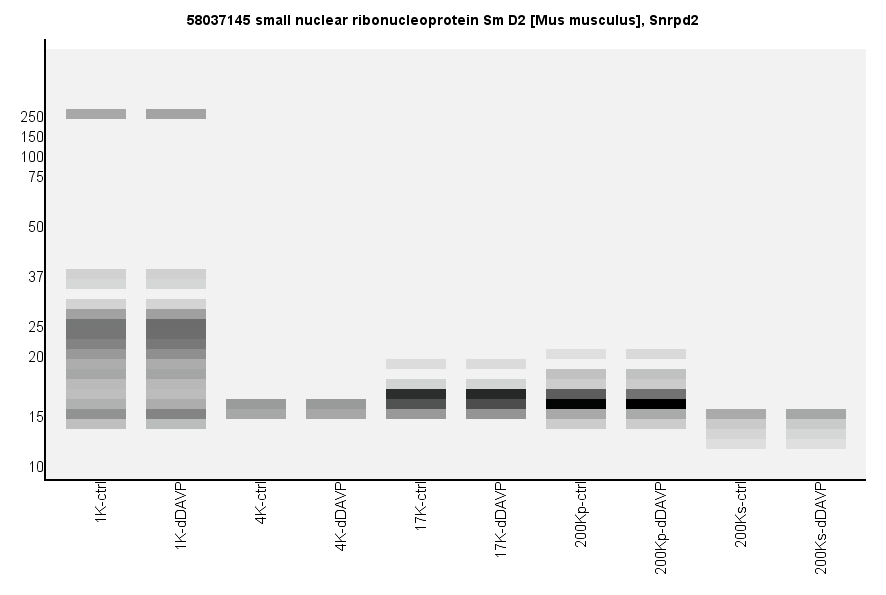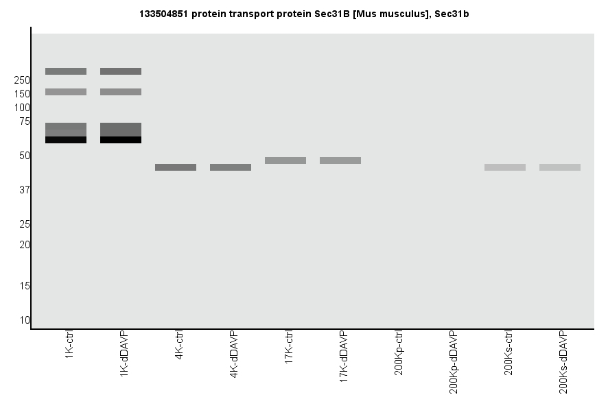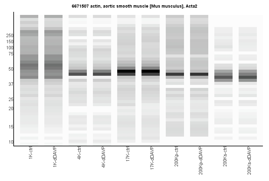 The virtual western blot images show data normalized using a logarithmic conversion scale to map peptide intensities to gray-scale levels. Using this conversion method, low-abundance peptides are generally visible in the blot images. Switch back to the default linear conversion scale database page.