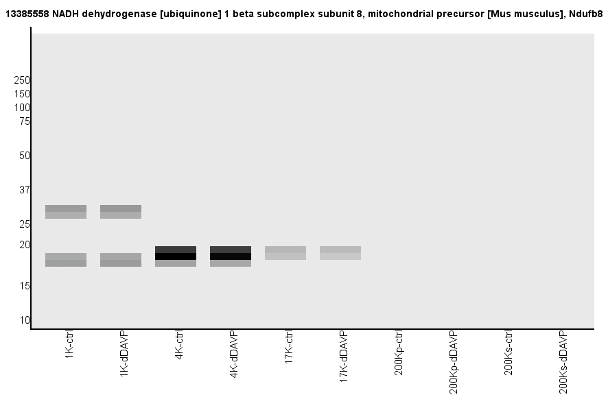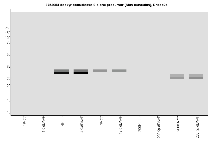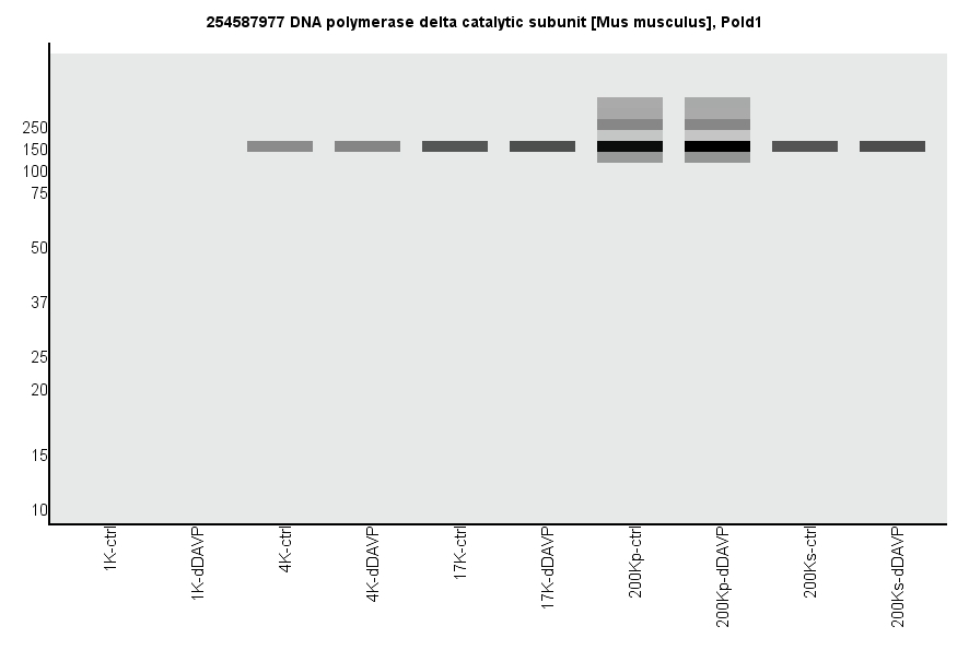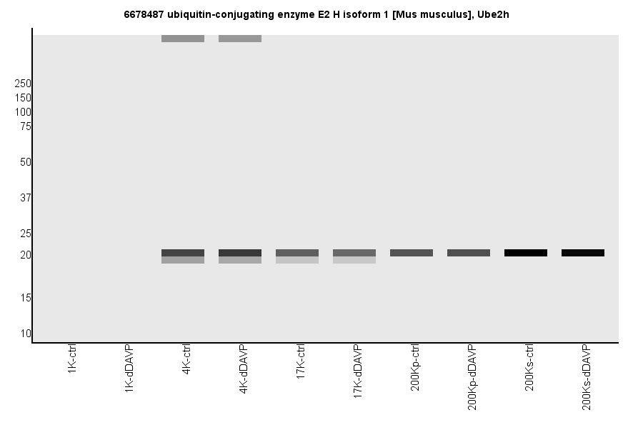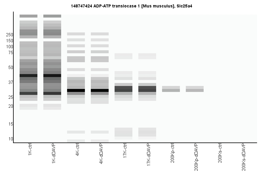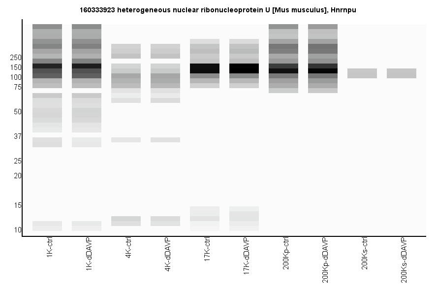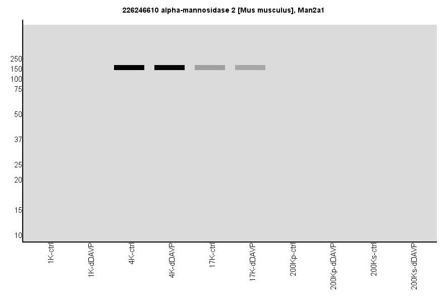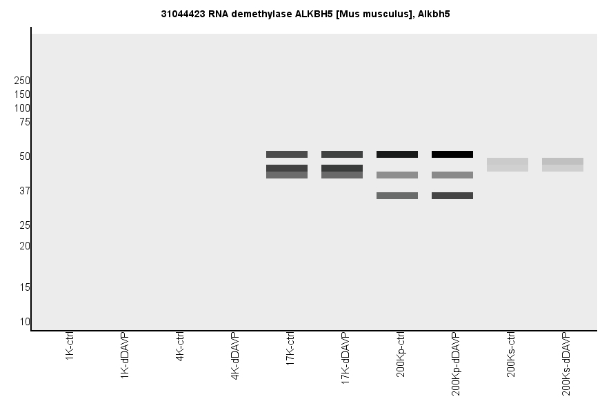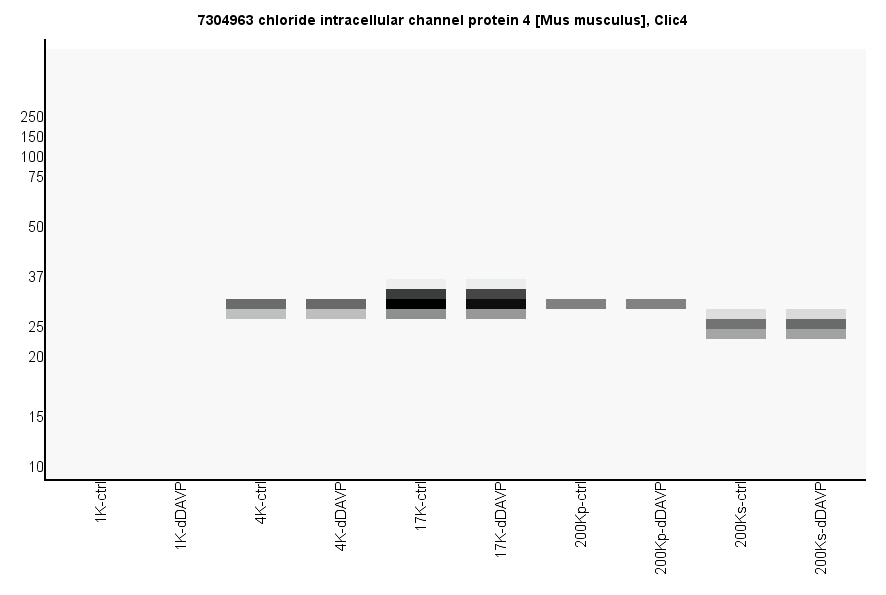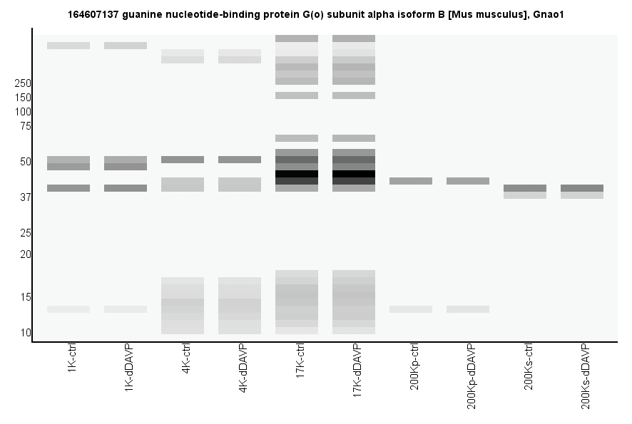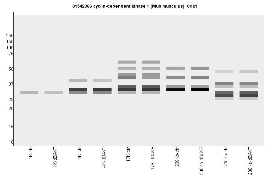 The virtual western blot images show data normalized using a logarithmic conversion scale to map peptide intensities to gray-scale levels. Using this conversion method, low-abundance peptides are generally visible in the blot images. Switch back to the default linear conversion scale database page.