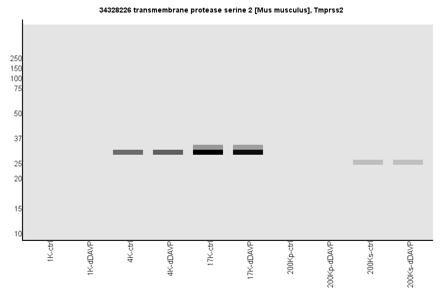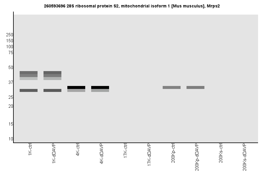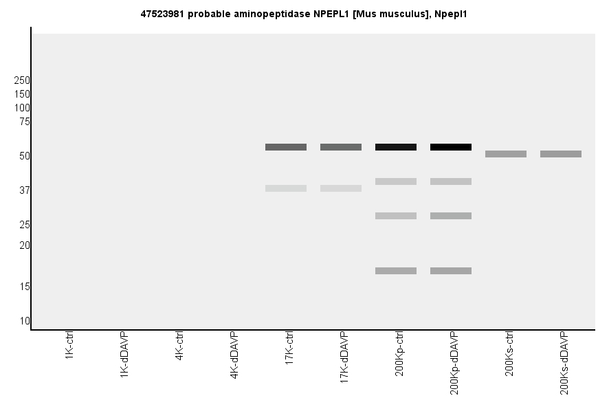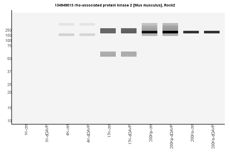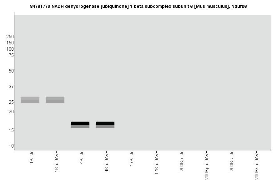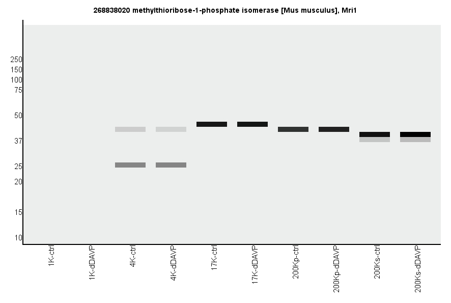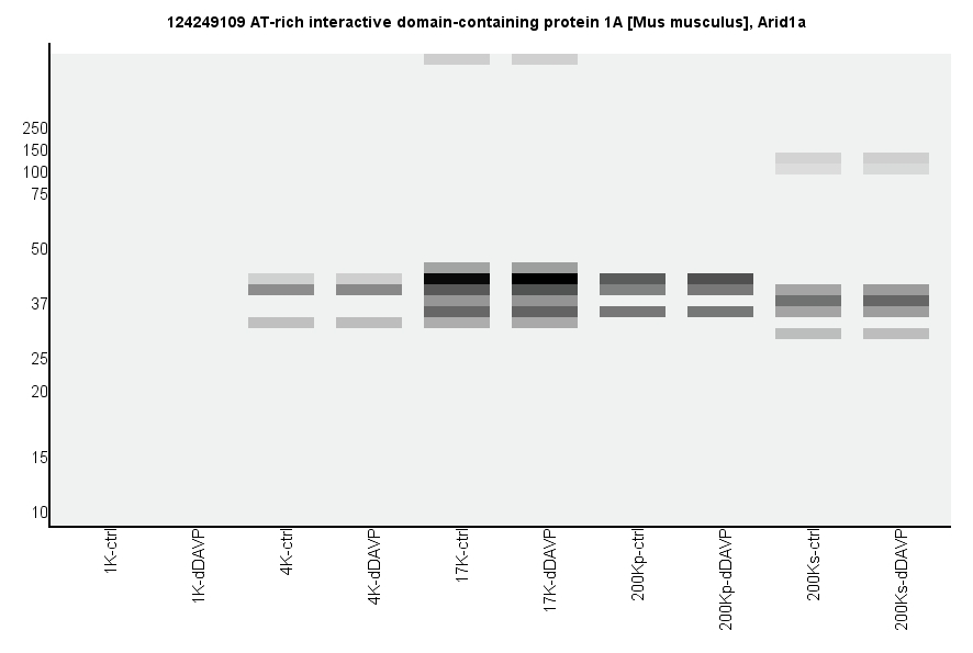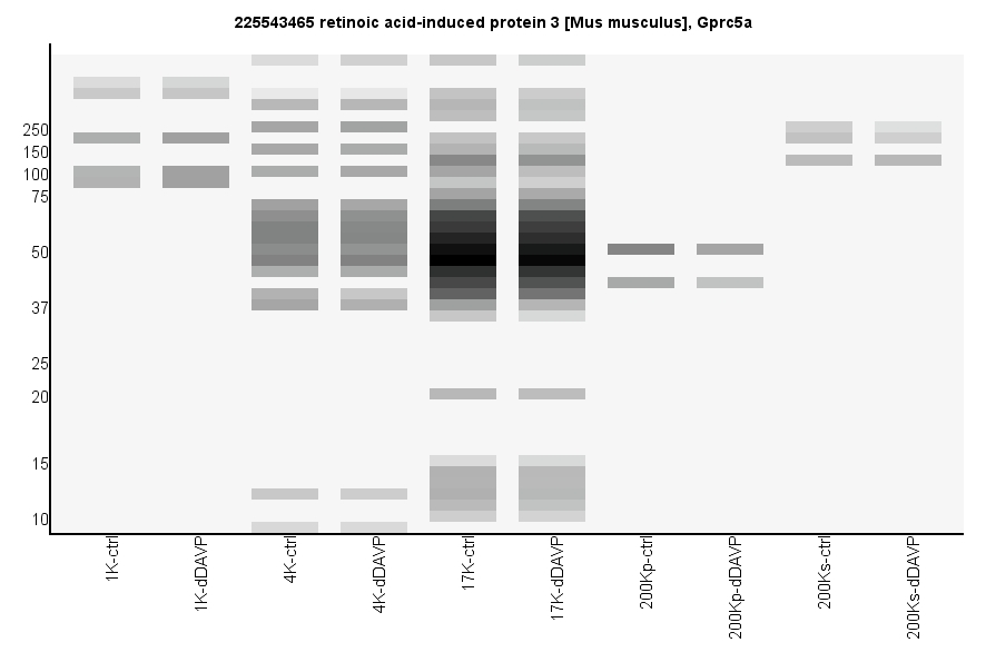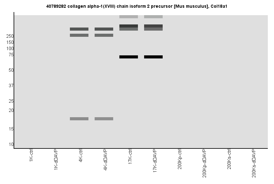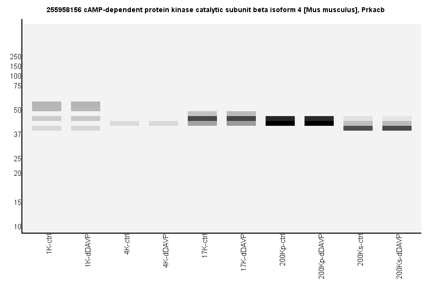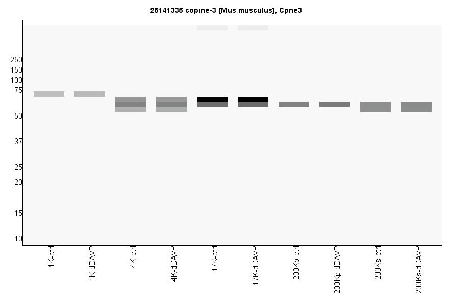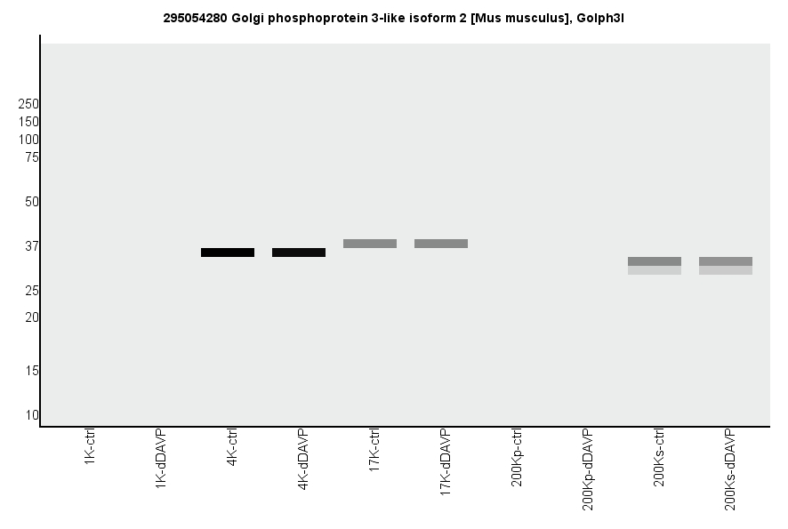 The virtual western blot images show data normalized using a logarithmic conversion scale to map peptide intensities to gray-scale levels. Using this conversion method, low-abundance peptides are generally visible in the blot images. Switch back to the default linear conversion scale database page.