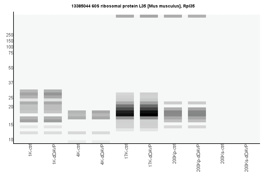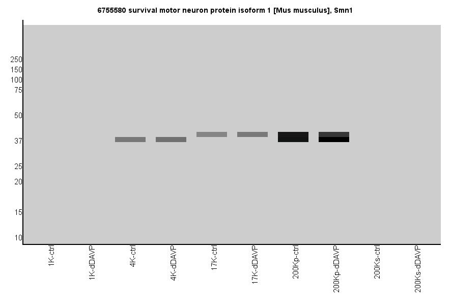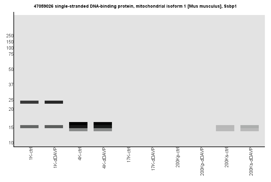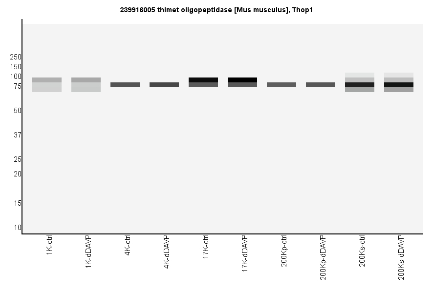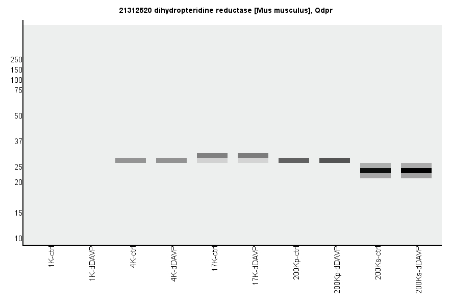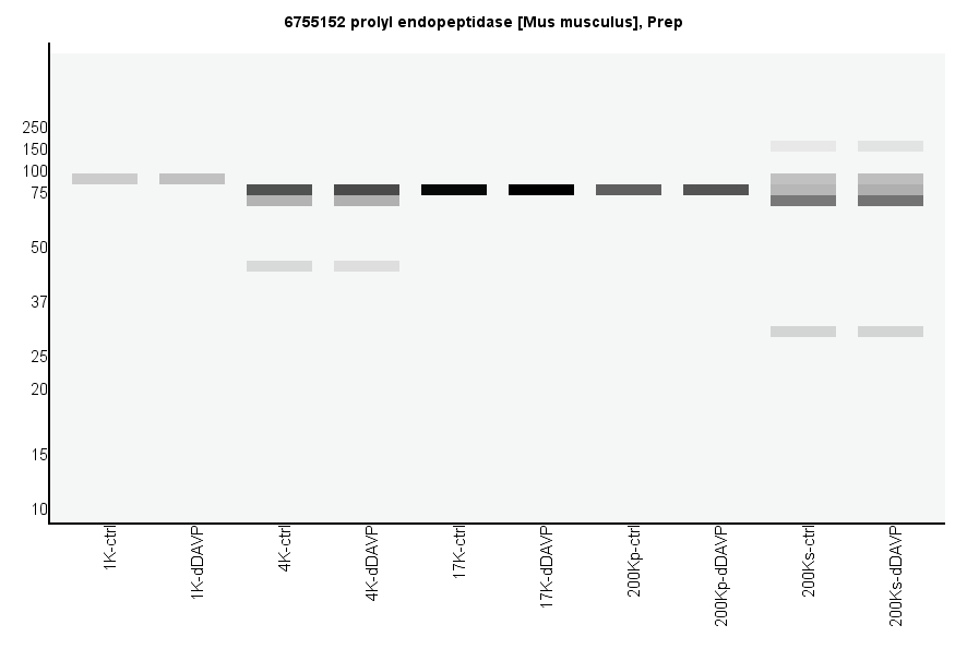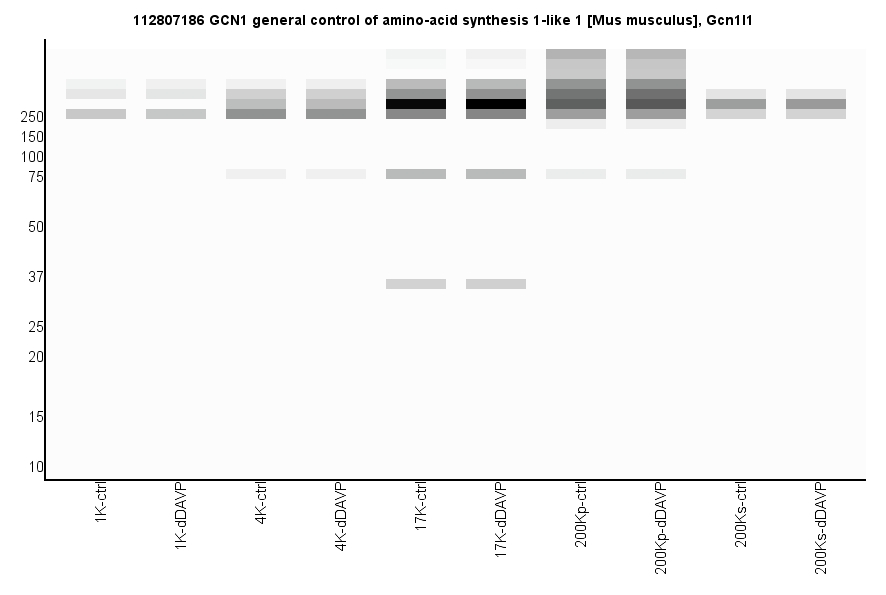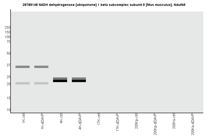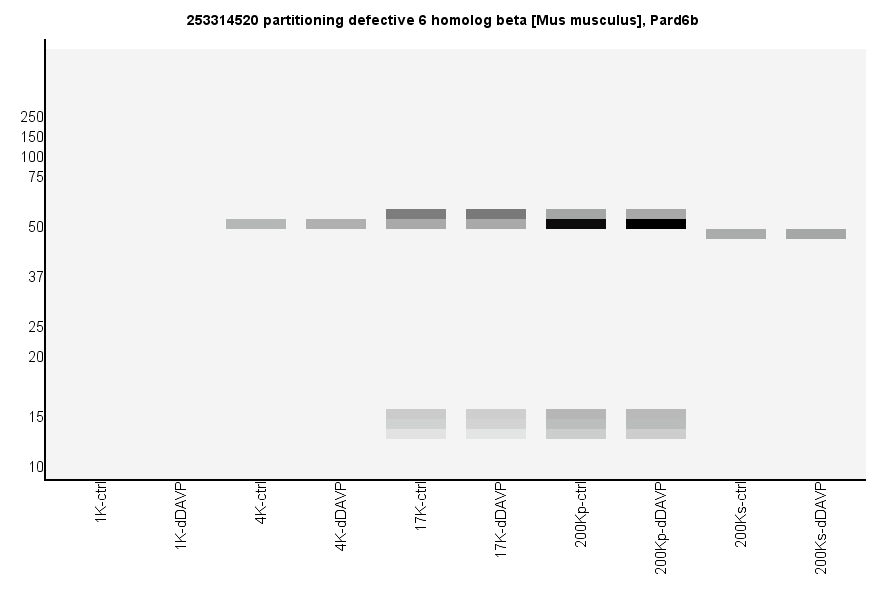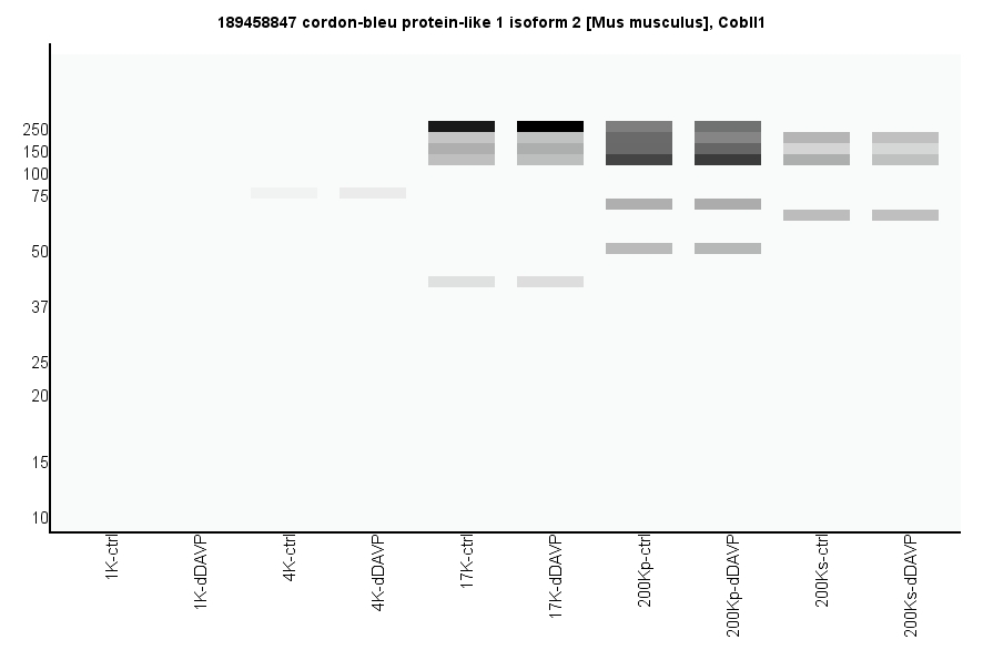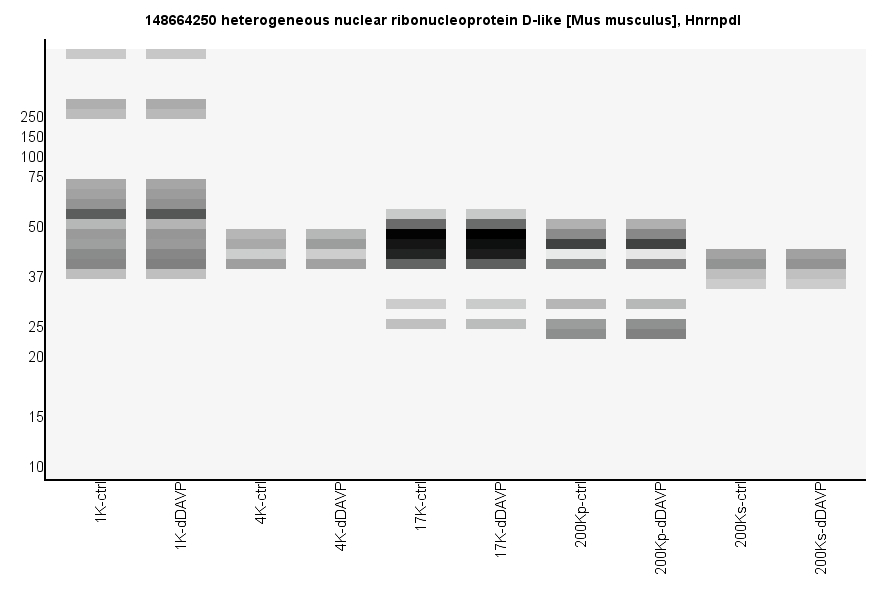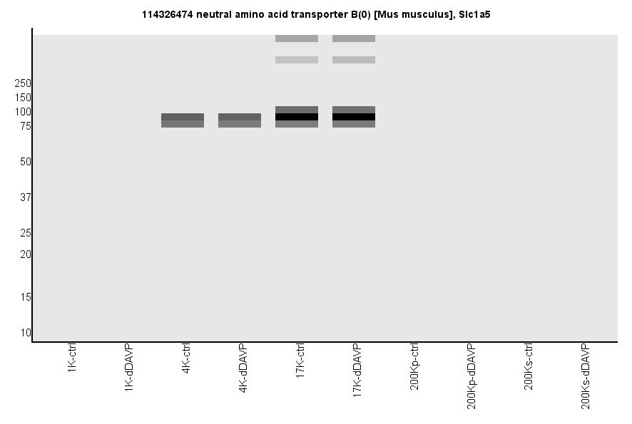 The virtual western blot images show data normalized using a logarithmic conversion scale to map peptide intensities to gray-scale levels. Using this conversion method, low-abundance peptides are generally visible in the blot images. Switch back to the default linear conversion scale database page.