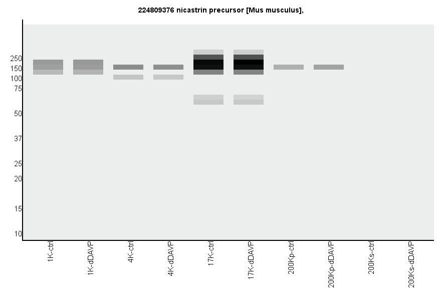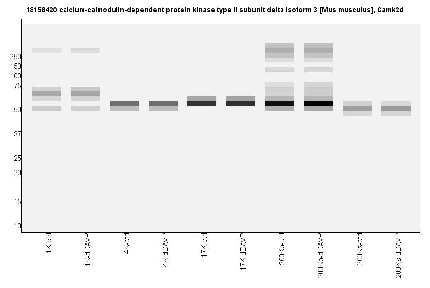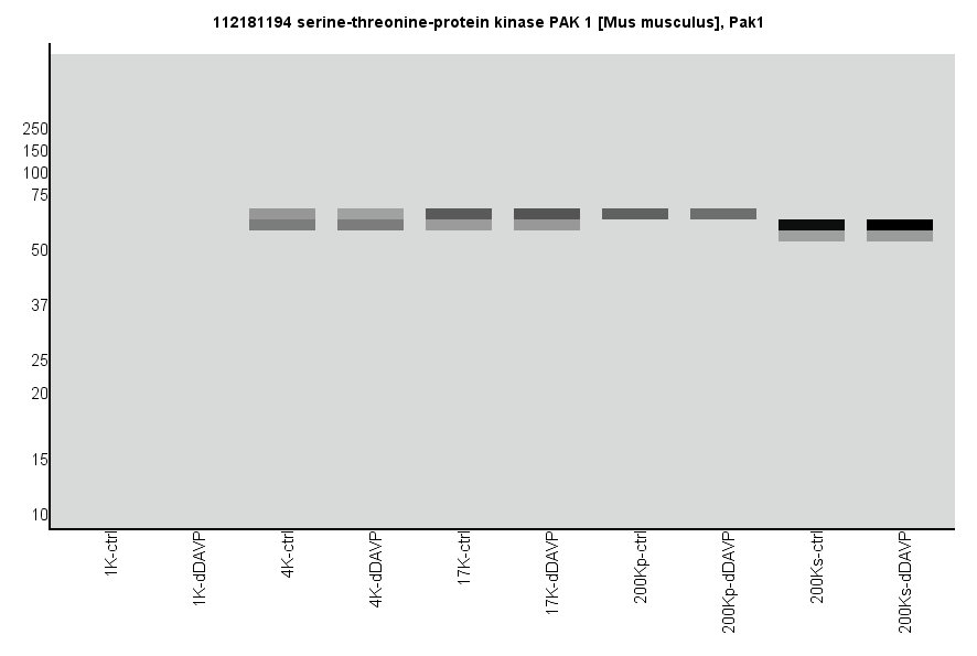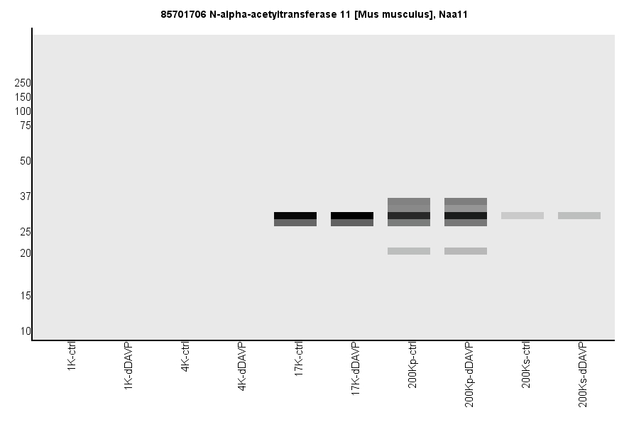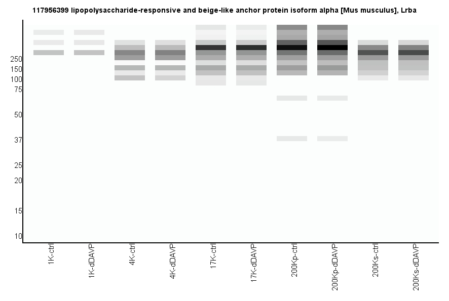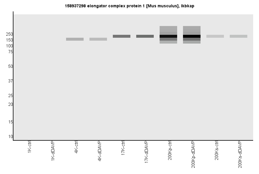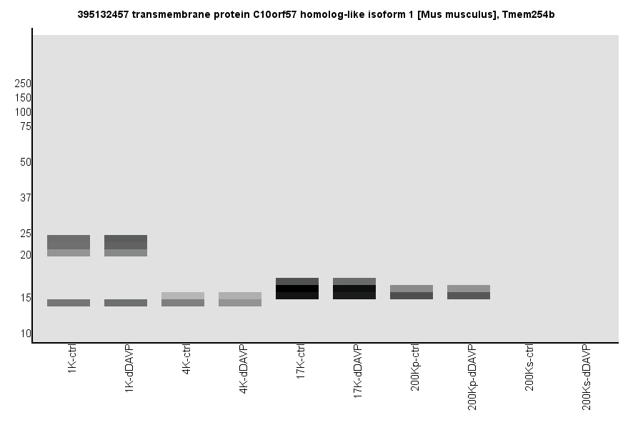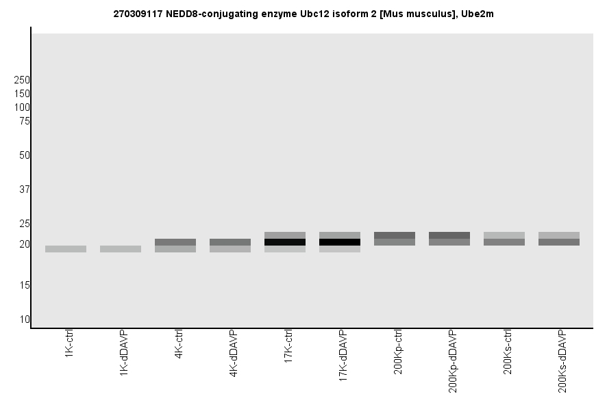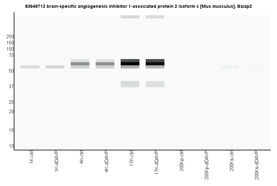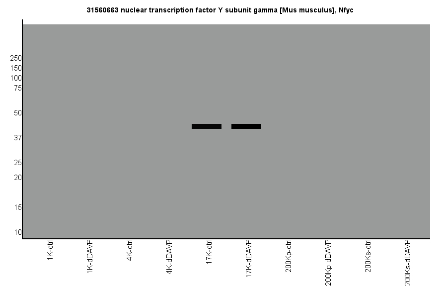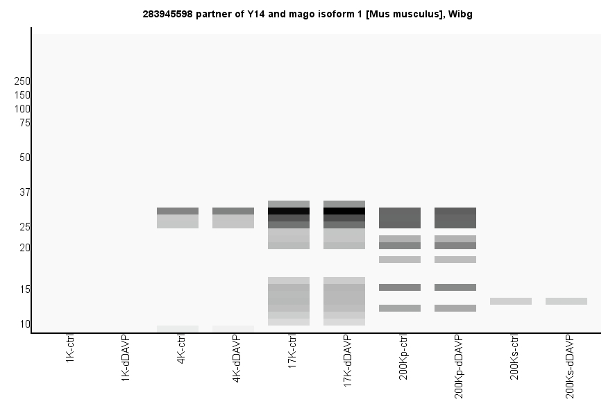 The virtual western blot images show data normalized using a logarithmic conversion scale to map peptide intensities to gray-scale levels. Using this conversion method, low-abundance peptides are generally visible in the blot images. Switch back to the default linear conversion scale database page.