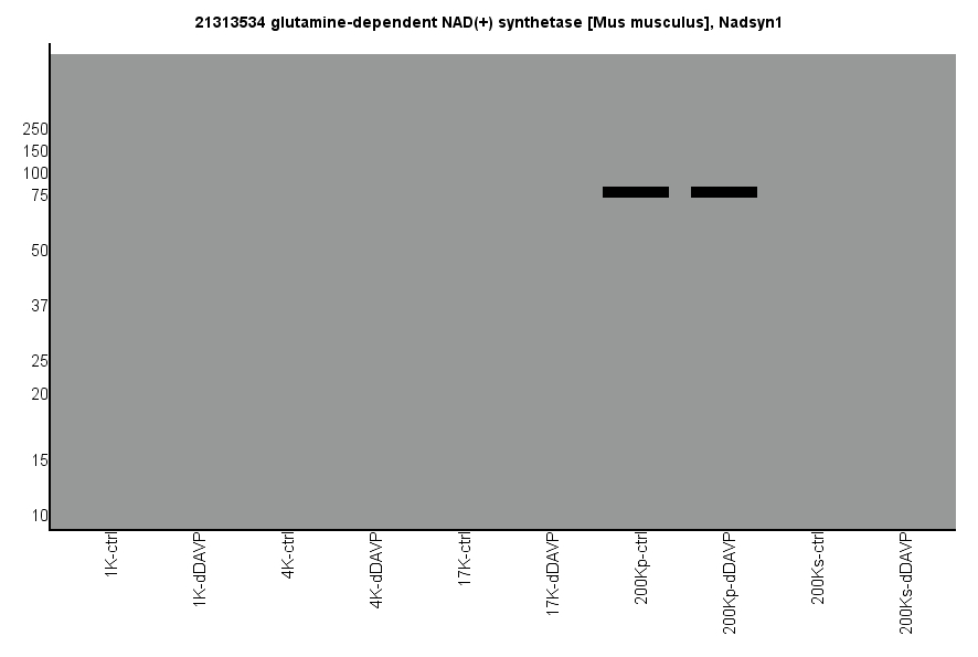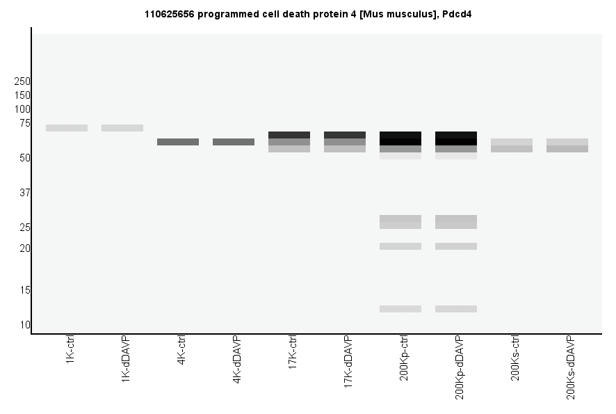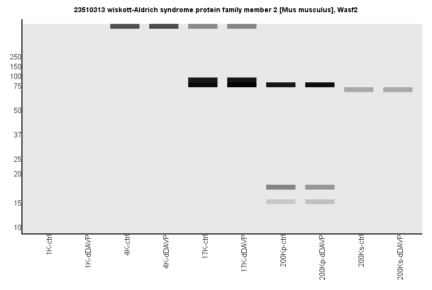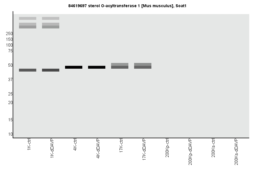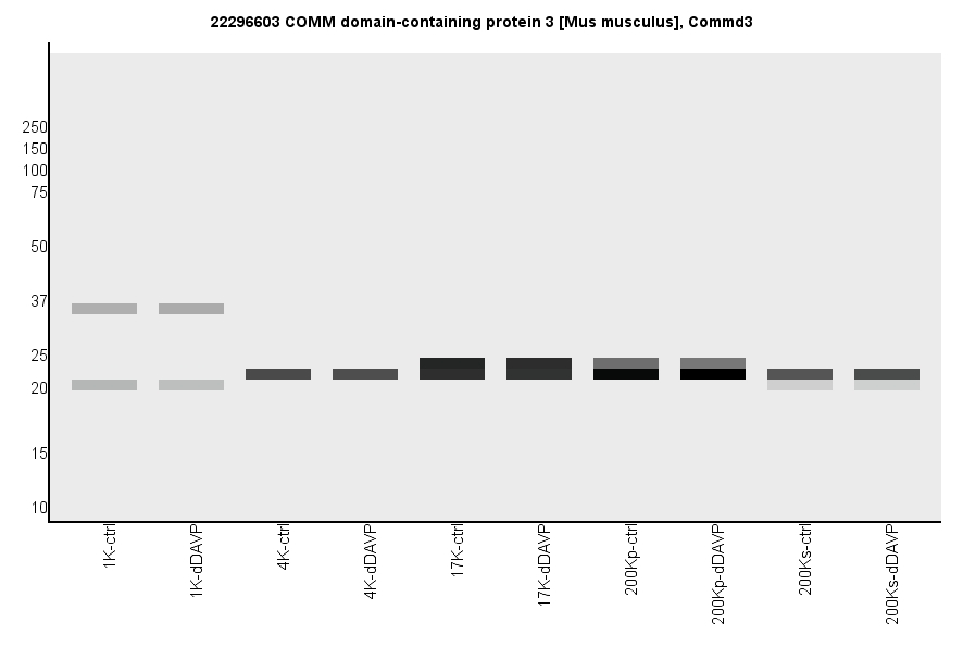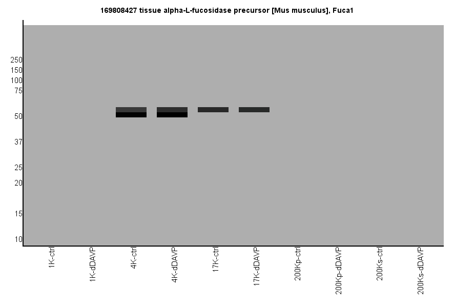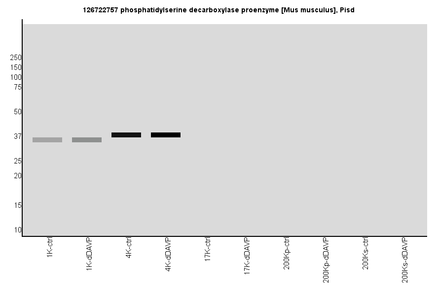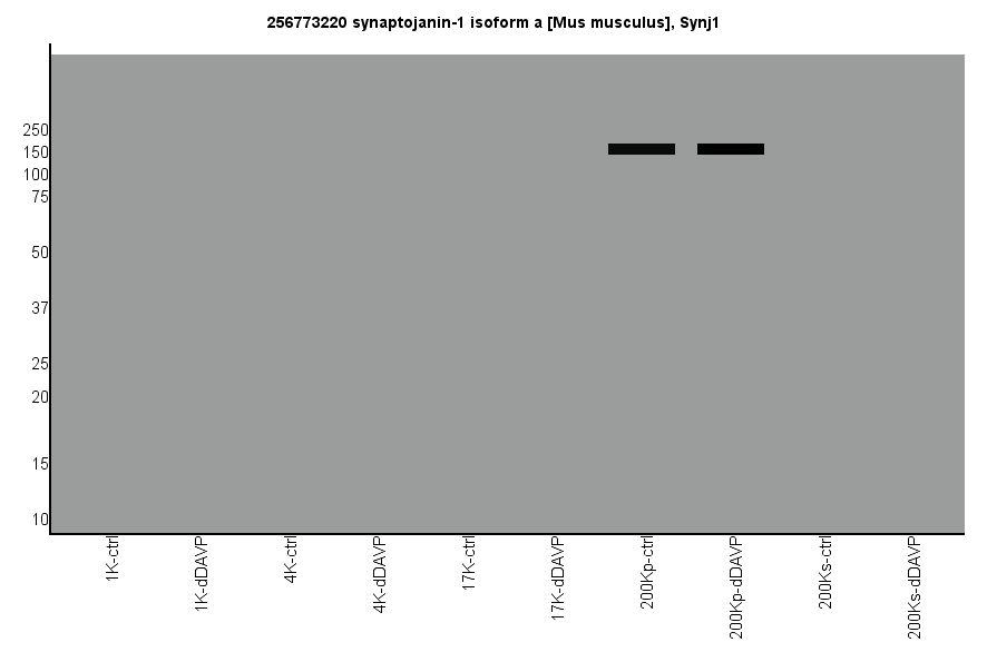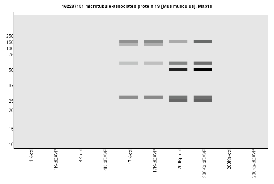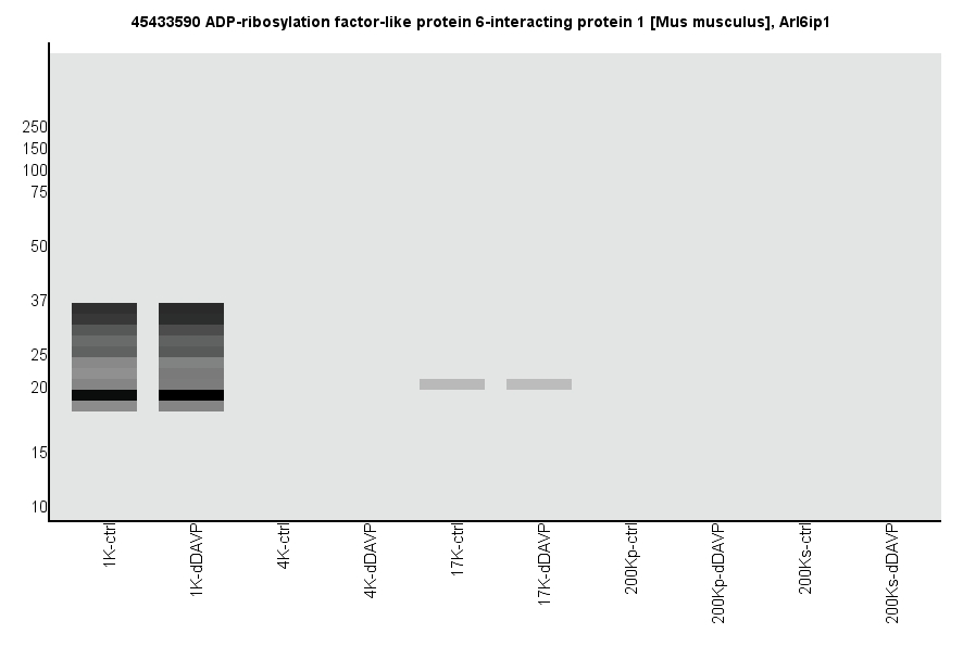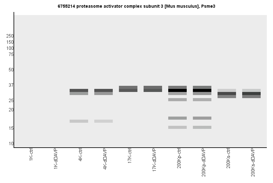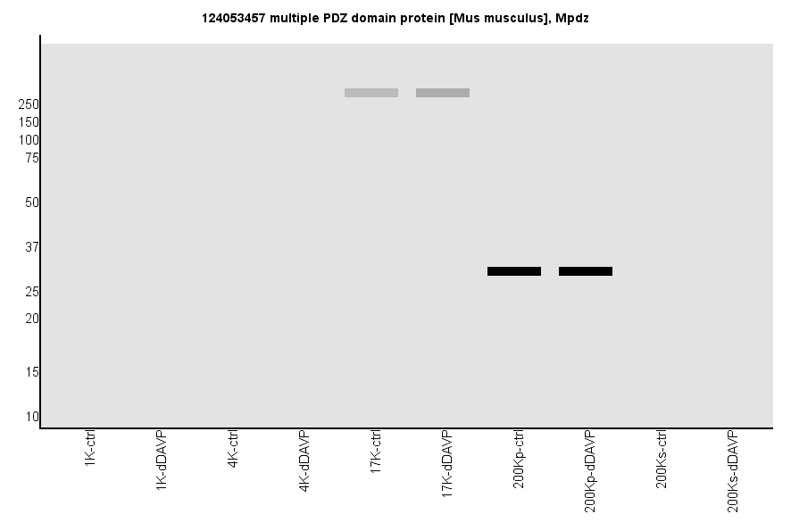 The virtual western blot images show data normalized using a logarithmic conversion scale to map peptide intensities to gray-scale levels. Using this conversion method, low-abundance peptides are generally visible in the blot images. Switch back to the default linear conversion scale database page.
