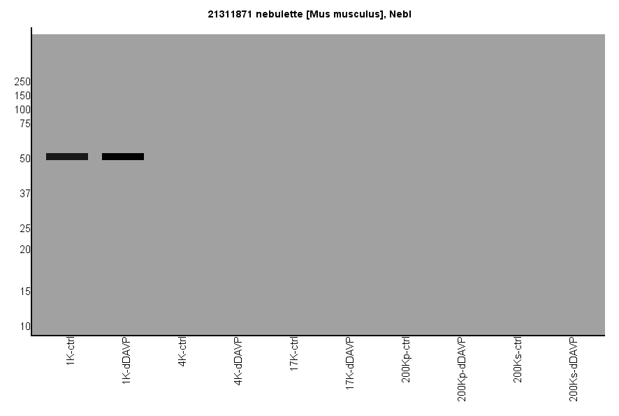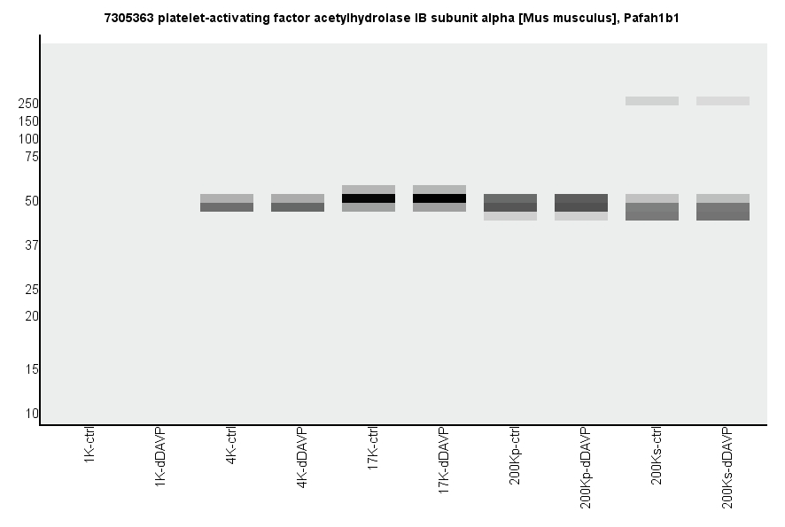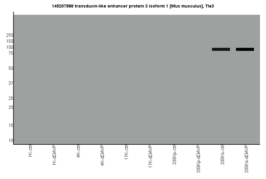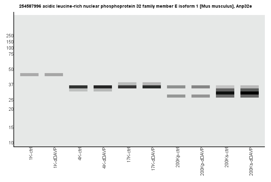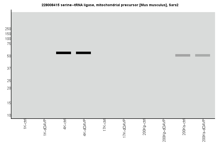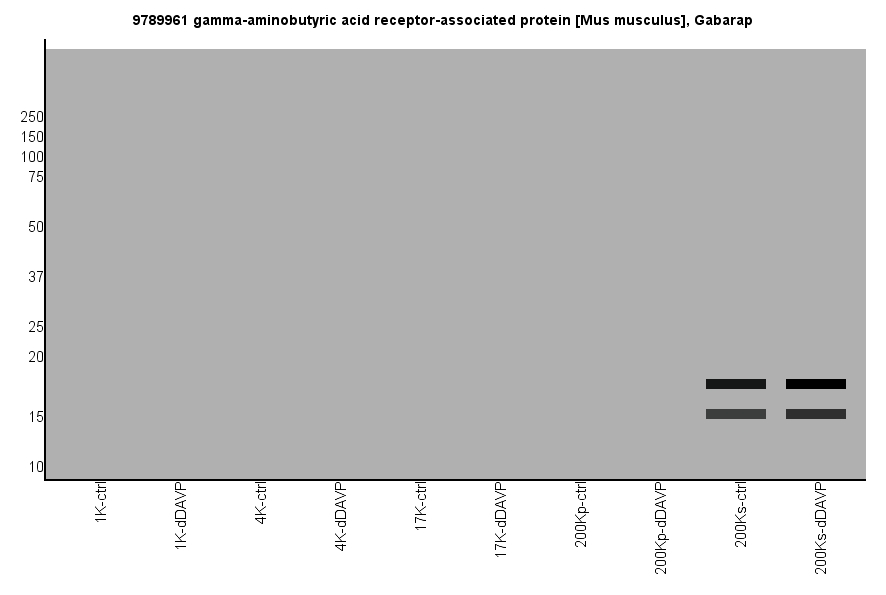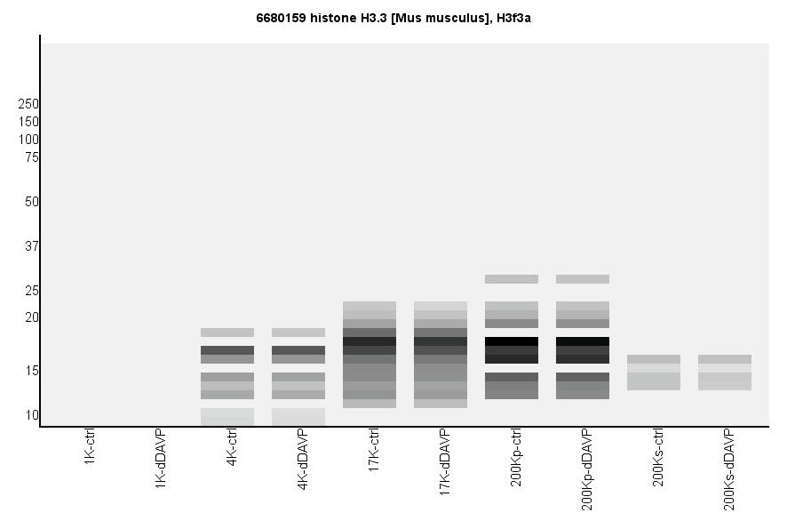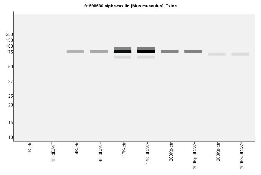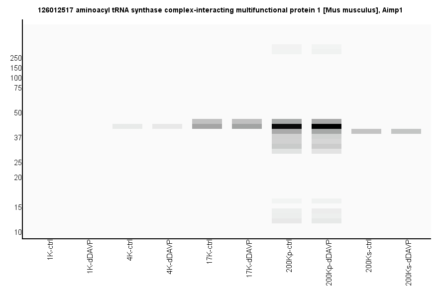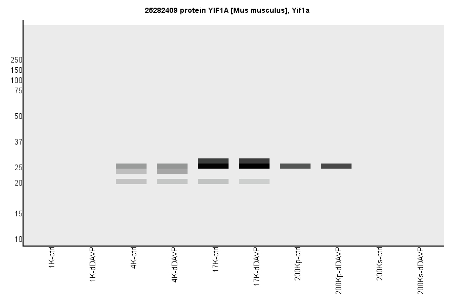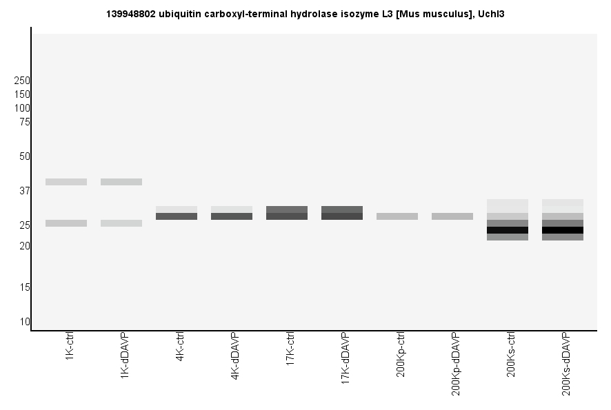 The virtual western blot images show data normalized using a logarithmic conversion scale to map peptide intensities to gray-scale levels. Using this conversion method, low-abundance peptides are generally visible in the blot images. Switch back to the default linear conversion scale database page.