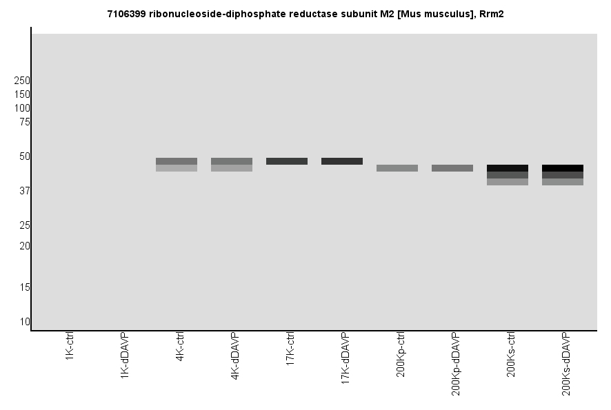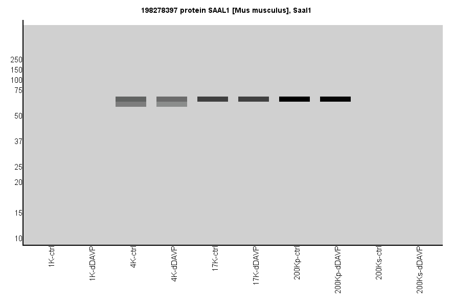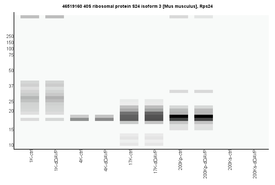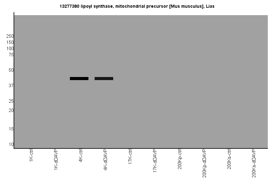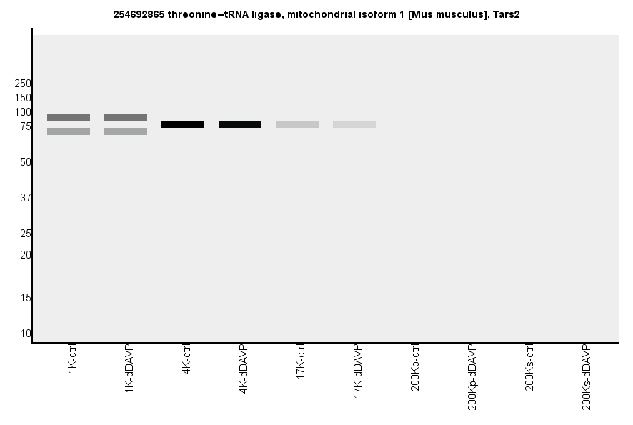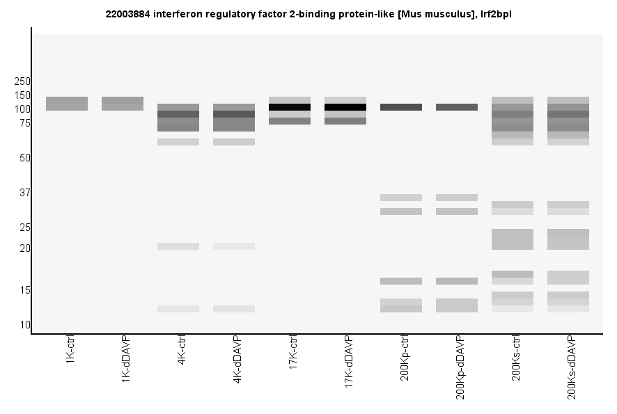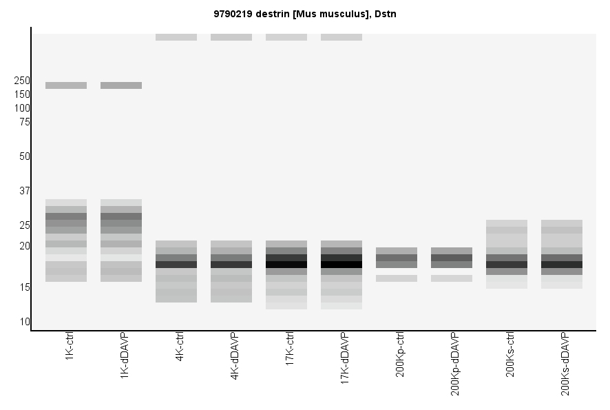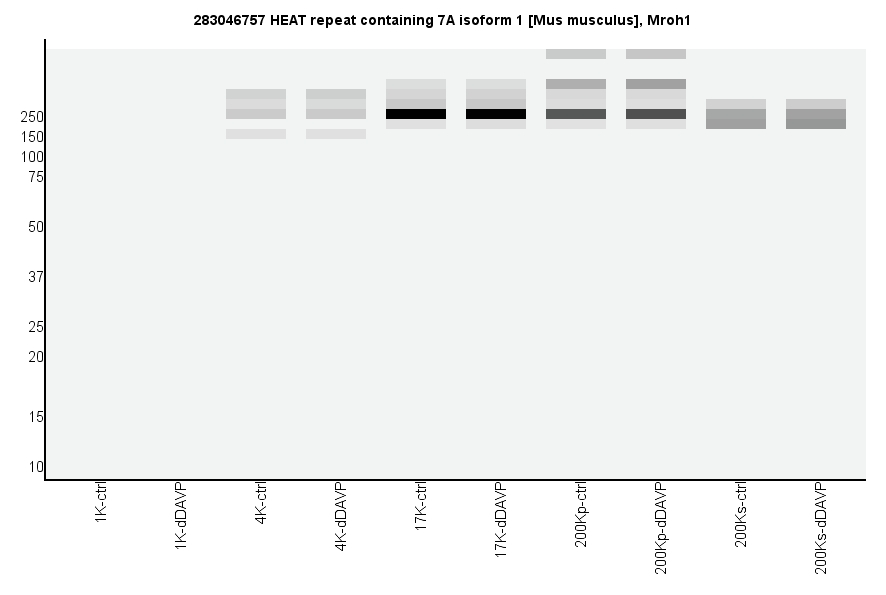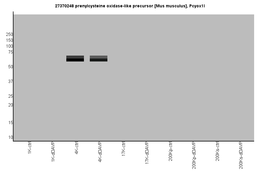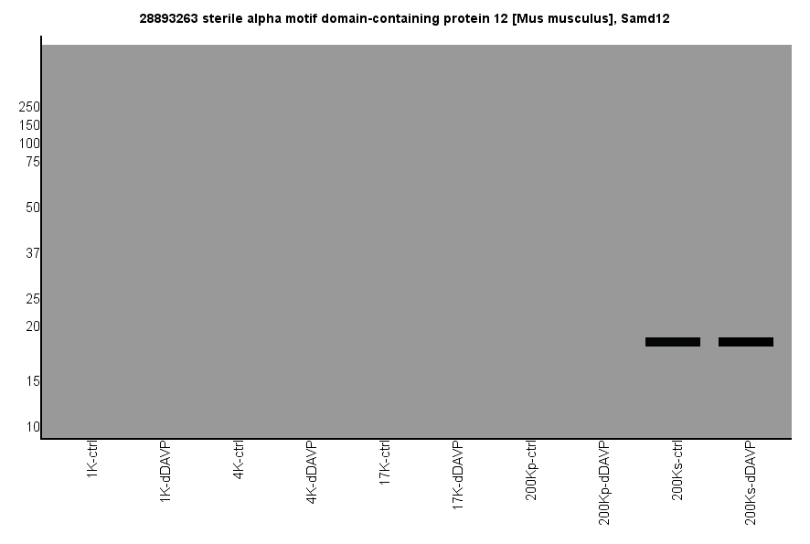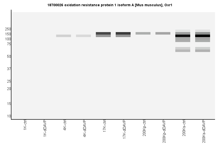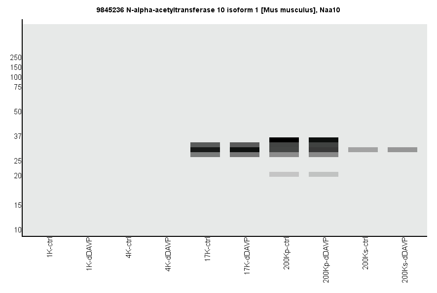 The virtual western blot images show data normalized using a logarithmic conversion scale to map peptide intensities to gray-scale levels. Using this conversion method, low-abundance peptides are generally visible in the blot images. Switch back to the default linear conversion scale database page.