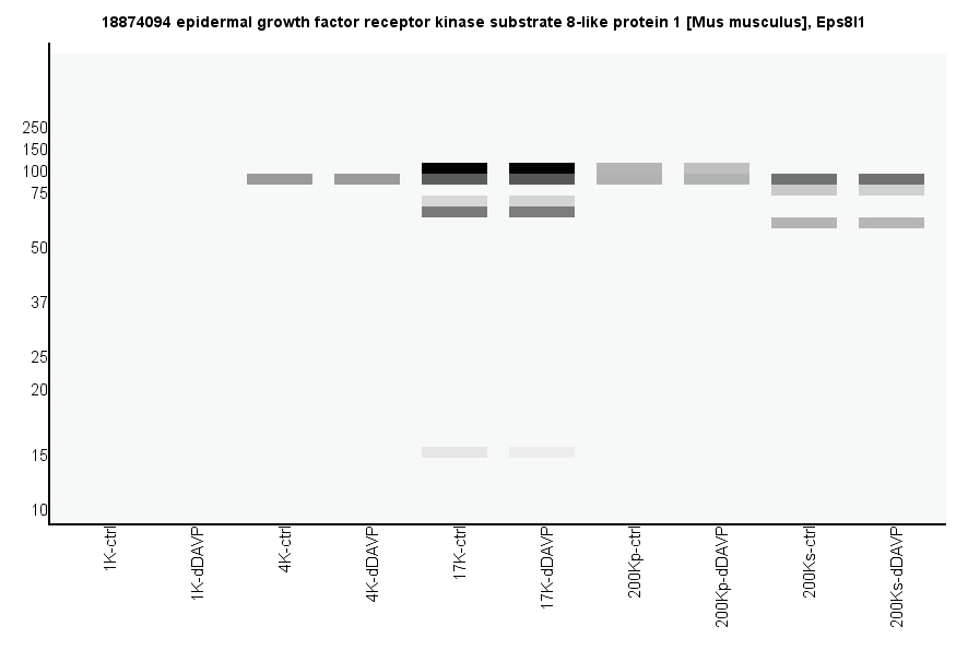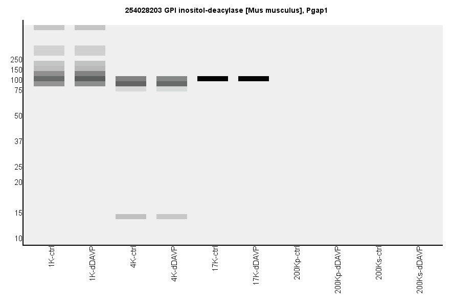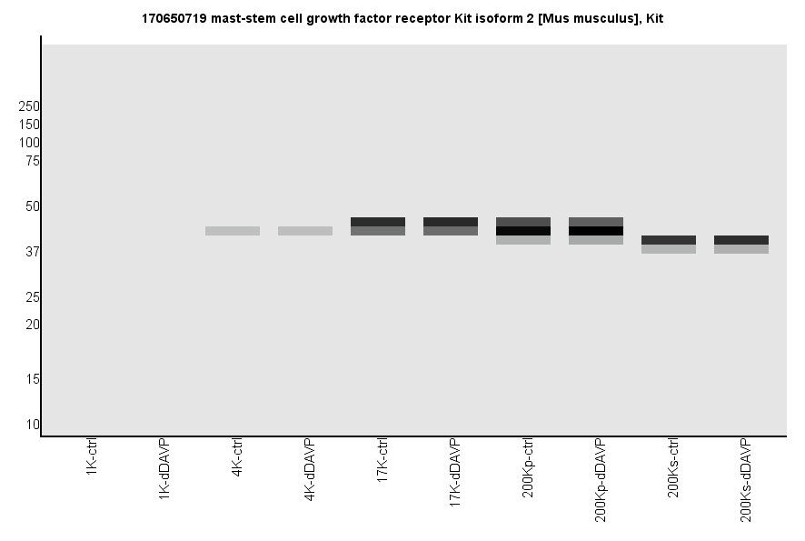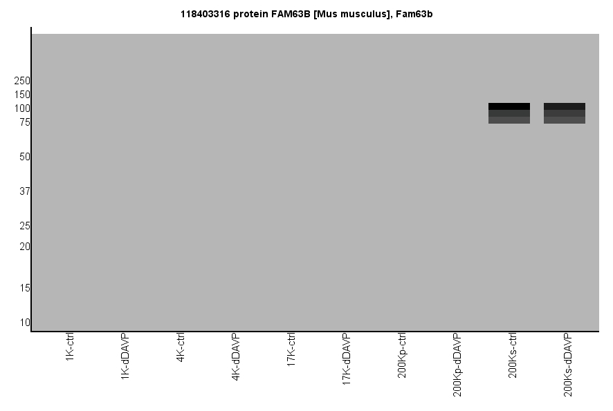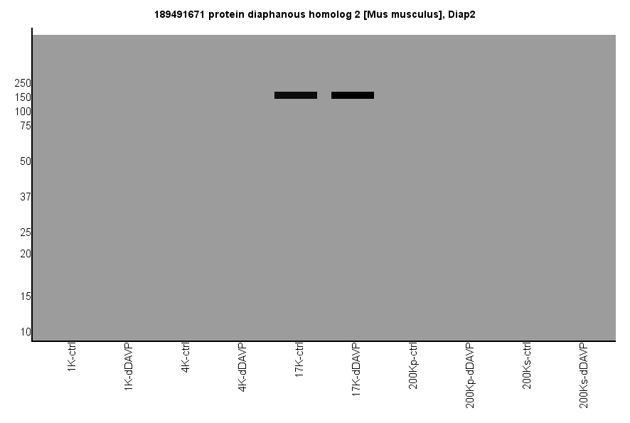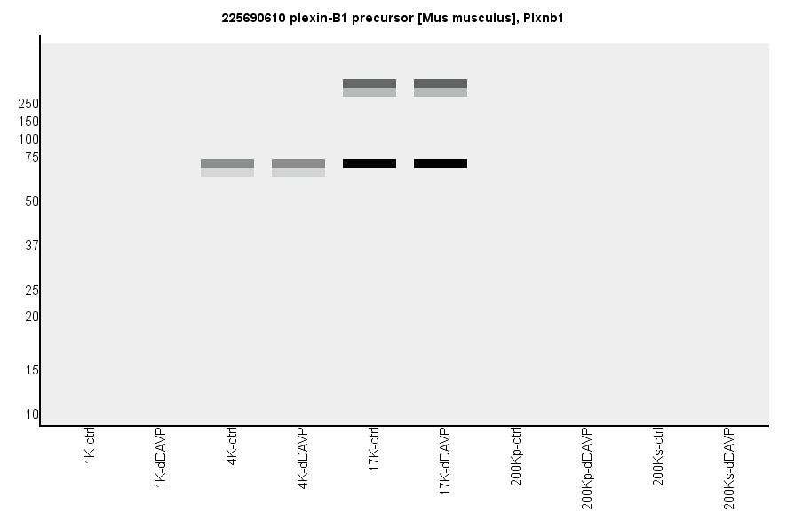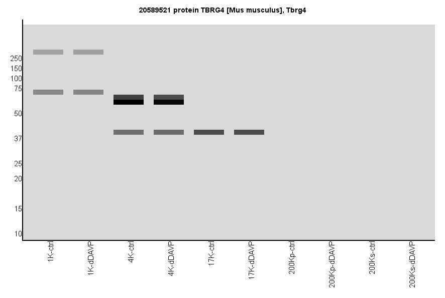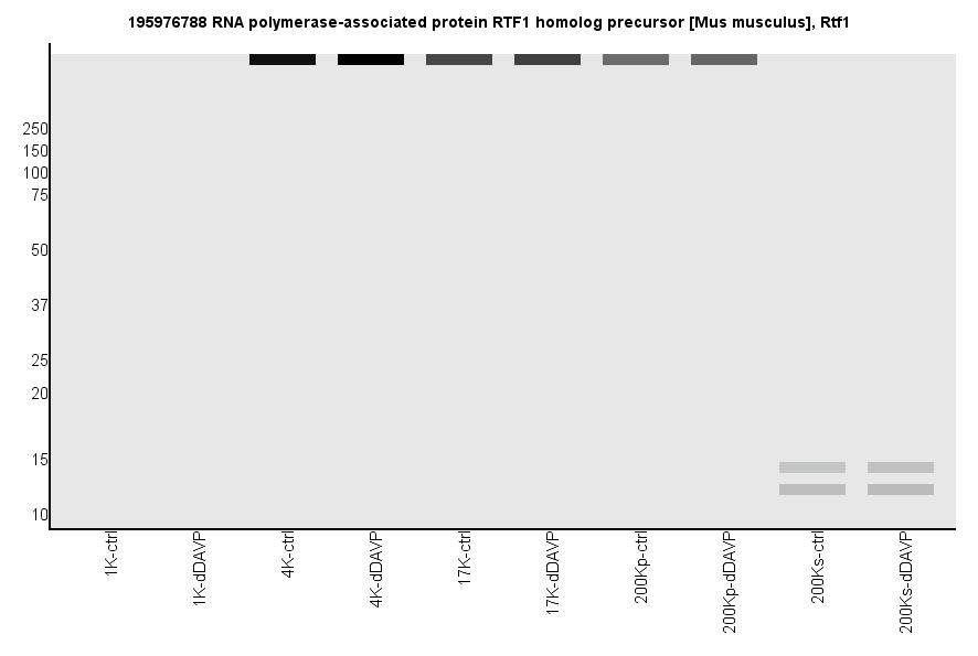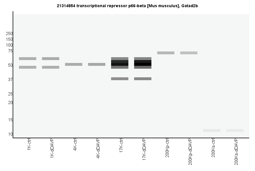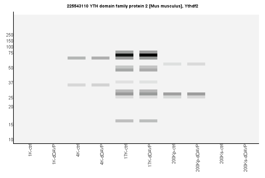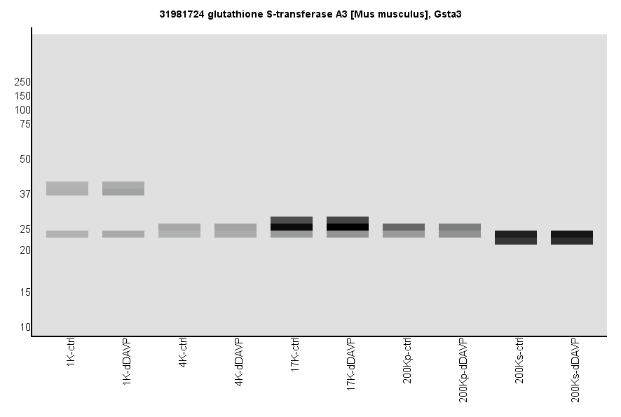 The virtual western blot images show data normalized using a logarithmic conversion scale to map peptide intensities to gray-scale levels. Using this conversion method, low-abundance peptides are generally visible in the blot images. Switch back to the default linear conversion scale database page.